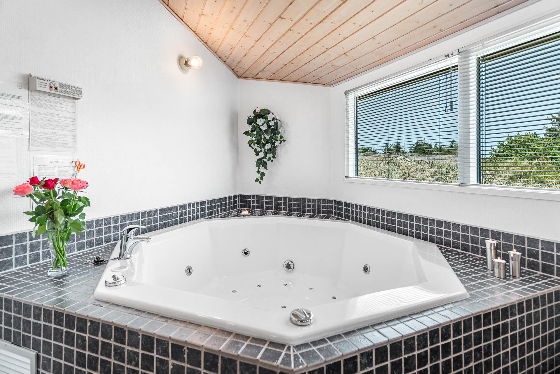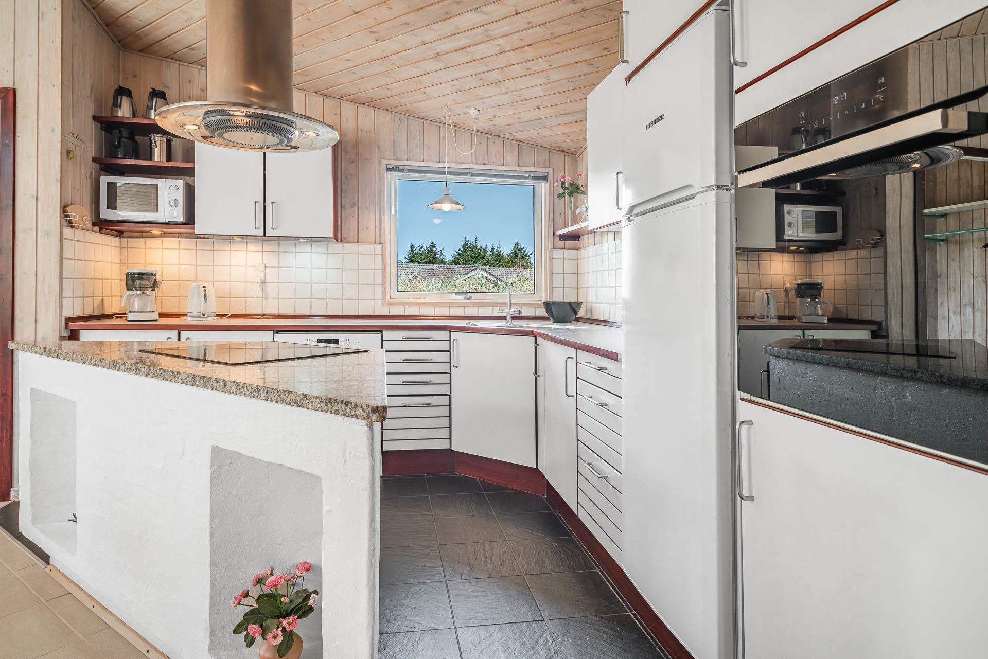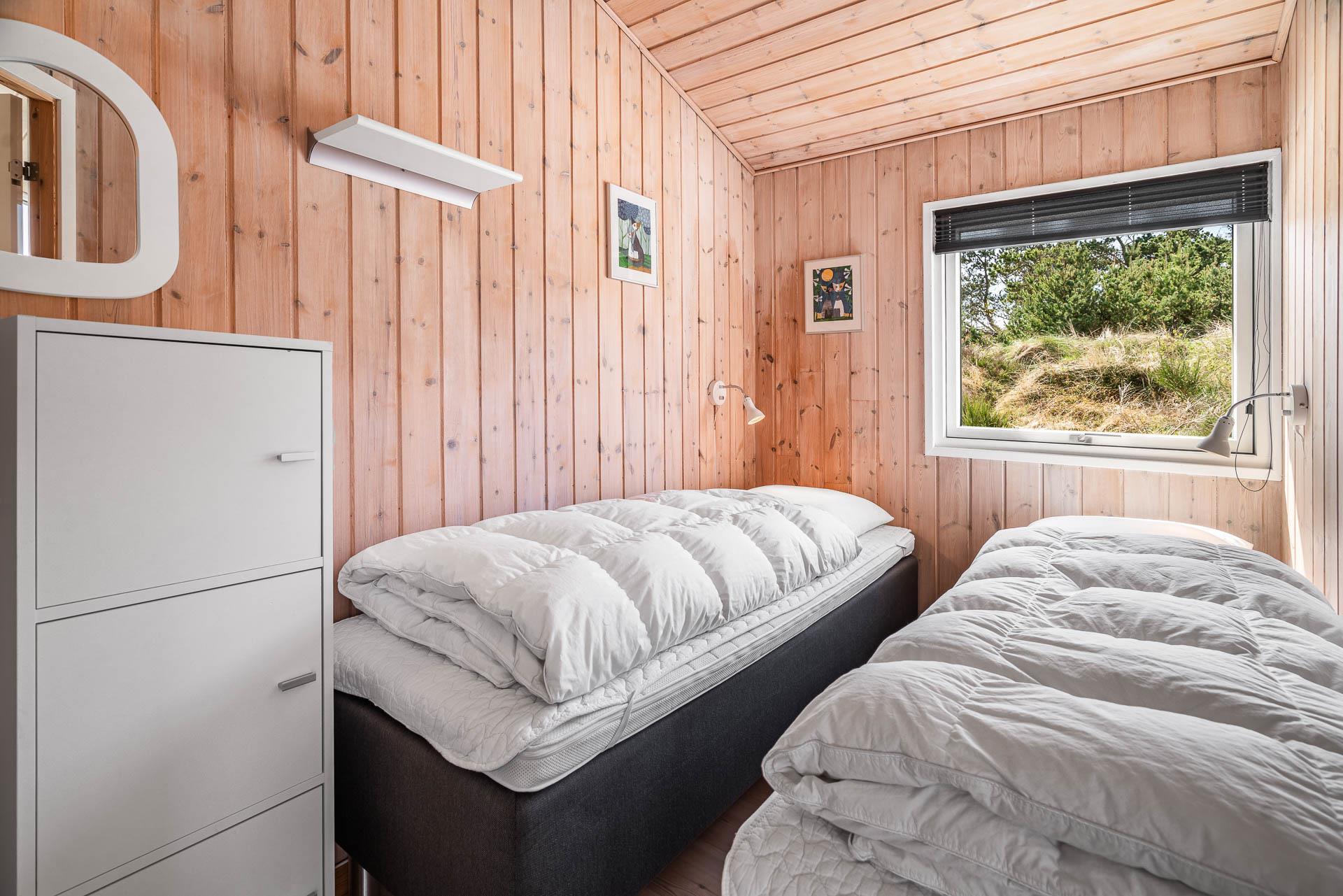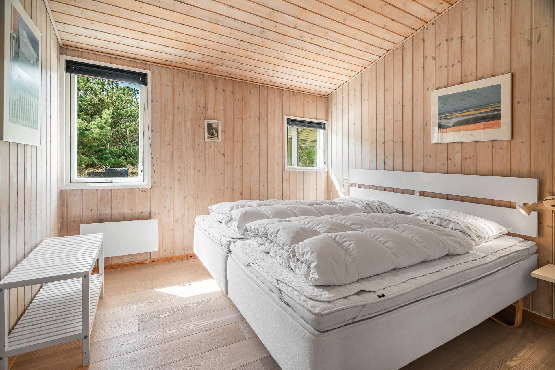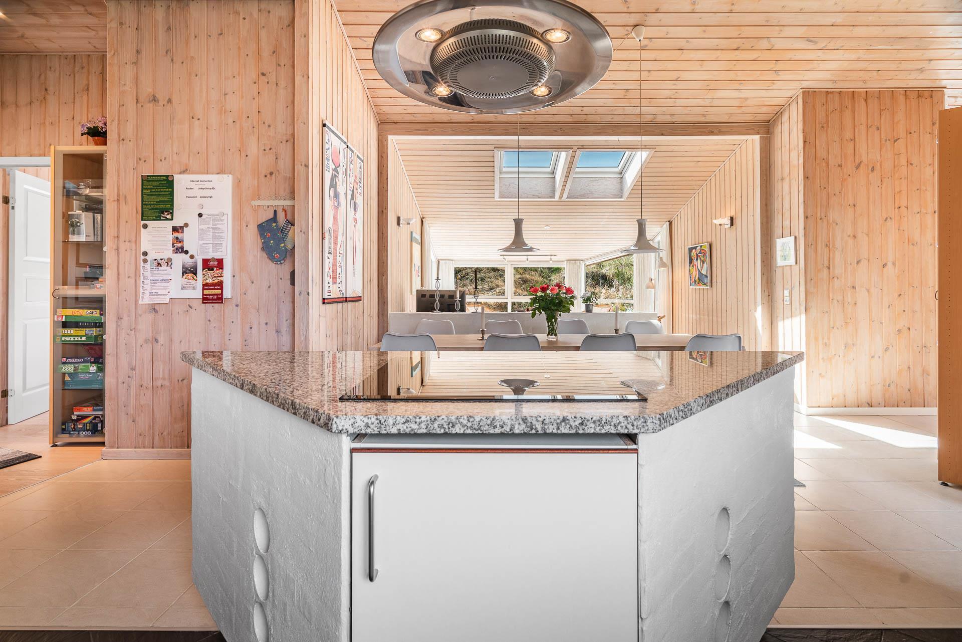 Med en unik beliggenhed og ikke langt fra strand og Henne Strand By ligger dette dejlige og meget vedligeholdte sommerhushus med en dejlig lyst udestue. Hyggelig smagfuldt møbleret pejsestue, hvor I kan slappe af og nyde den behagelige varme med udsigt til den kupere naturgrund. Flot lyst funktionelt køkken med kogeø. En halvmur fra køkken til havestuen adskiller spisestuen fra den hyggelige udestue. Omkring feriehuset er der anlagt flere dejlige terrasser, hvor der altid er mulighed for at finde læ og dermed nyde døgnets lyse timer. Godt redskabsrum til cykler, golfsæt og lignende hvor disse kan opbevares. Gratis golf på Henne samt Outrup Golfklub.