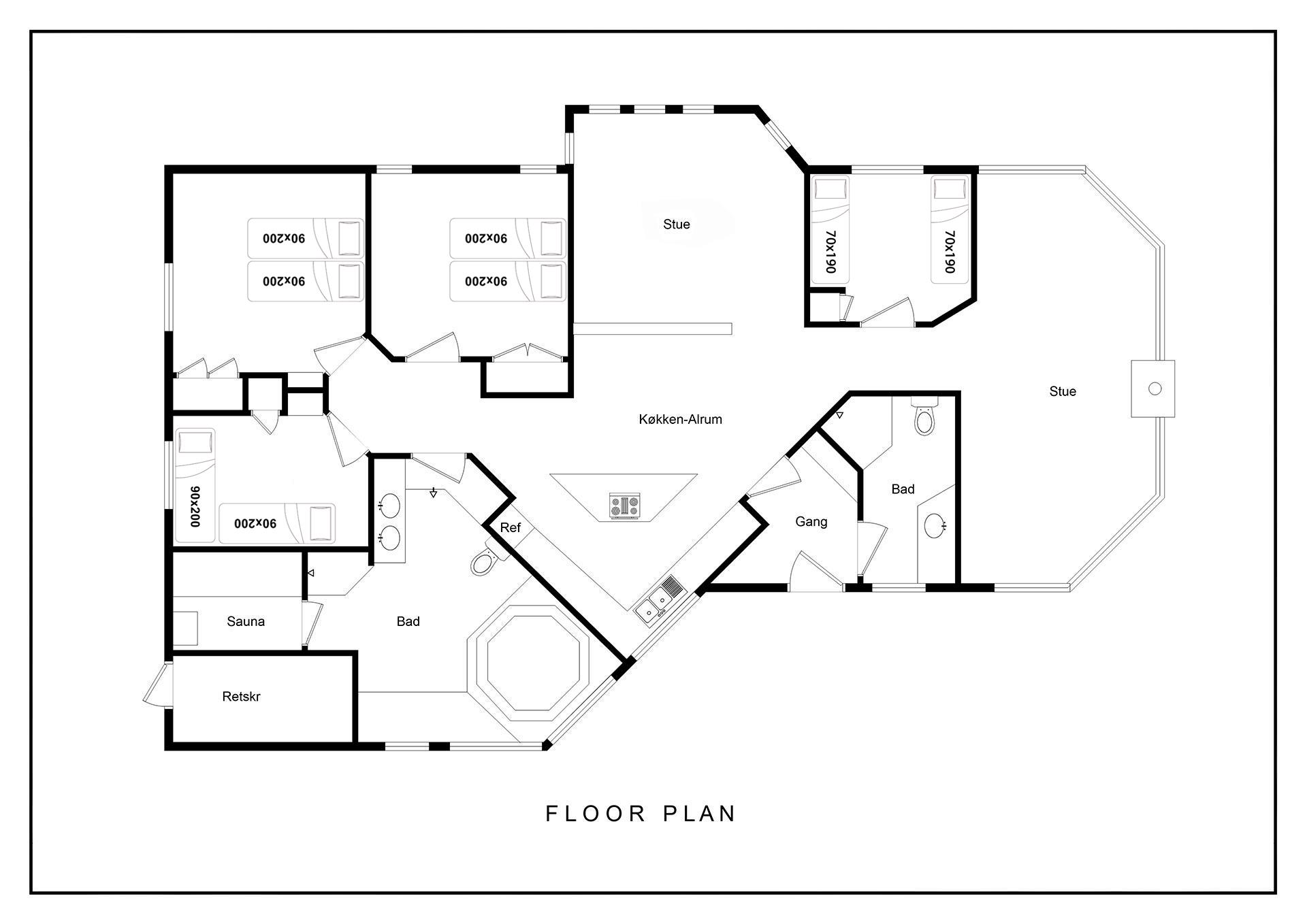 Sengestørrelse: 2 dobbeltsenge med 2 madrasser 90 x 200 cm + 2 enkeltsenge 90 x 200 cm + 2 enkeltsenge 70 x 190 cm.