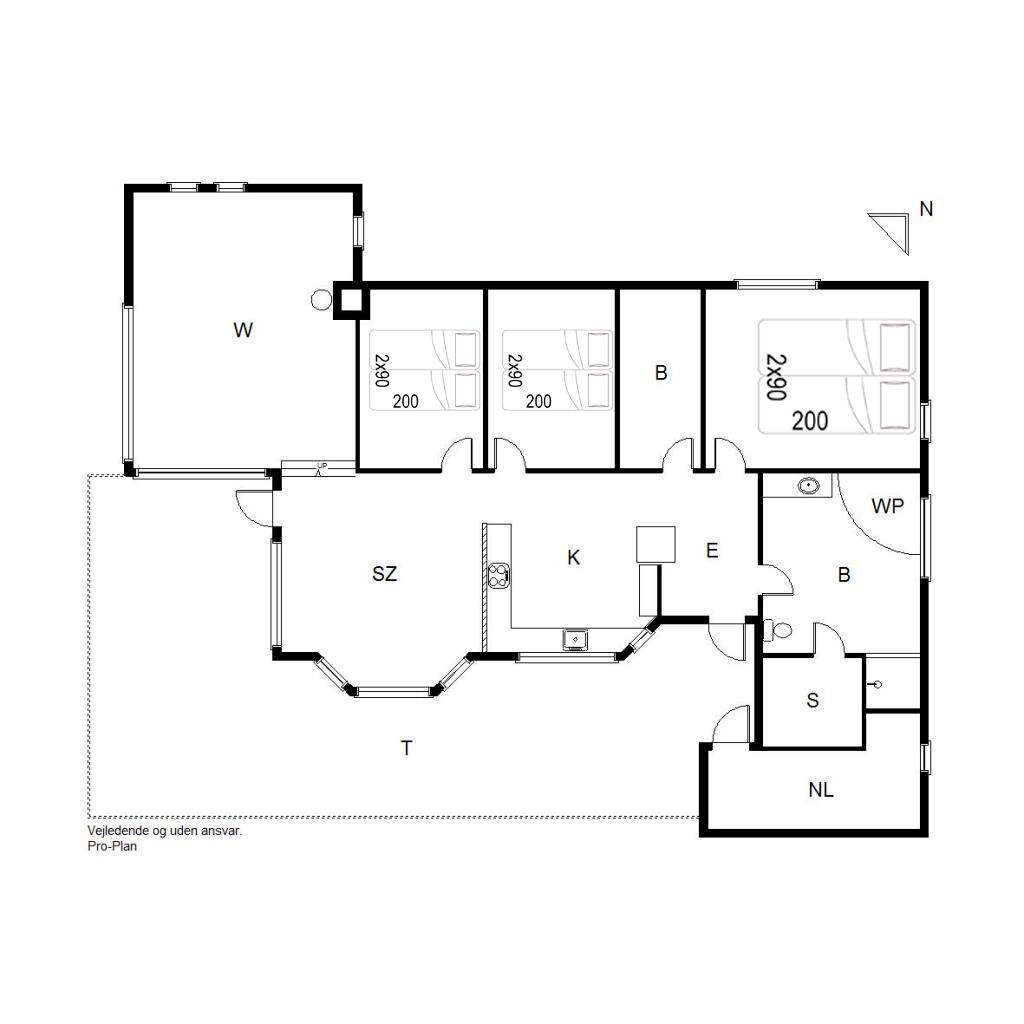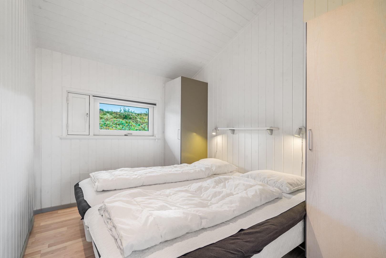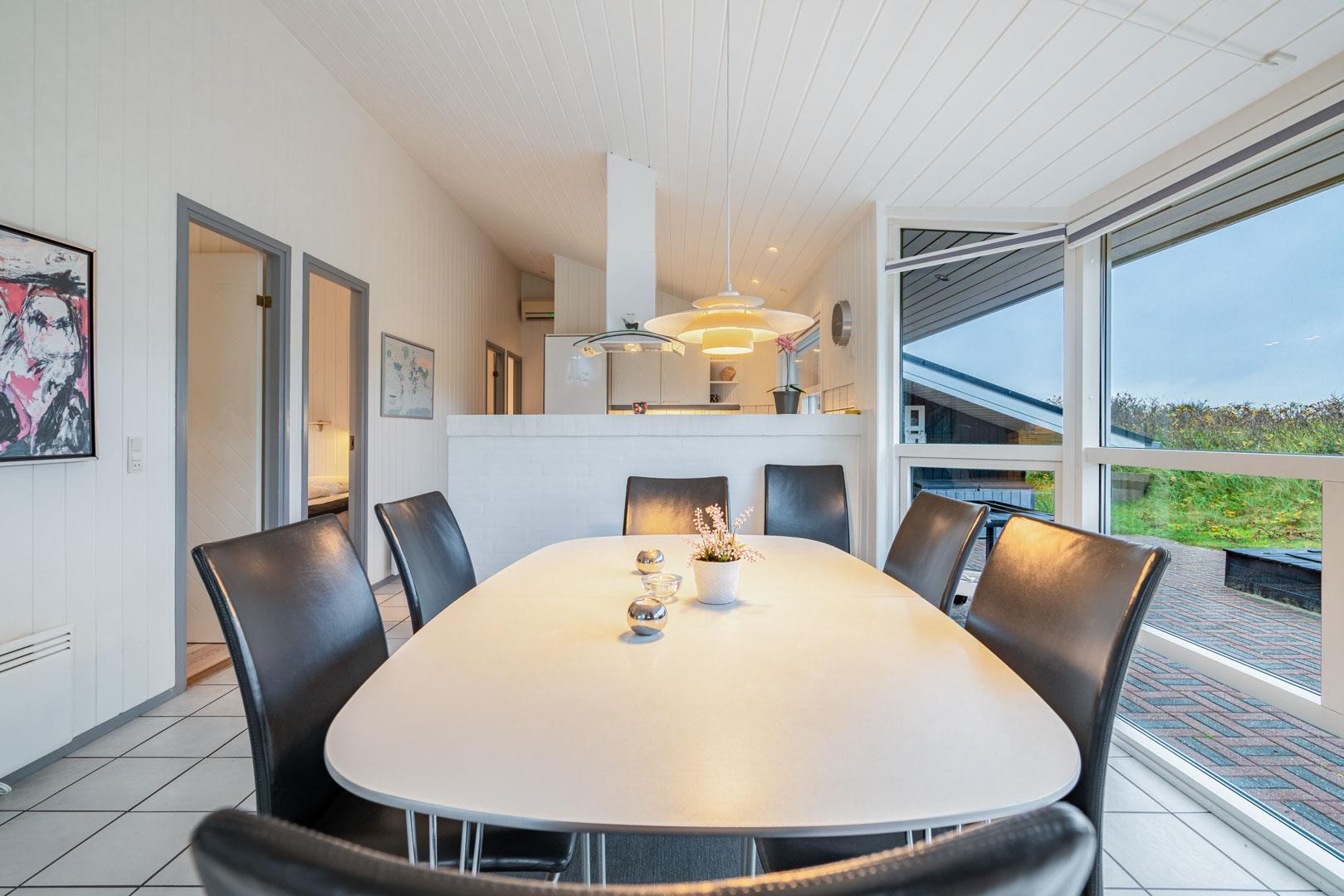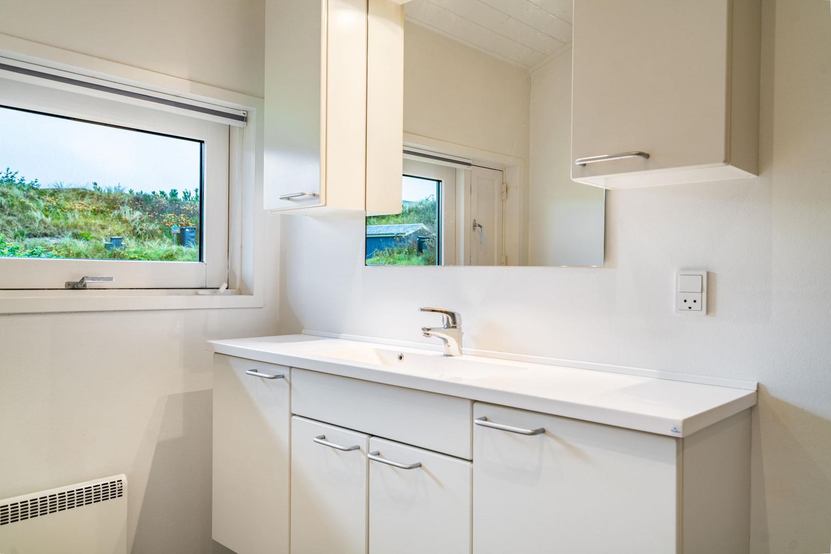 Velholdt og velindrettet feriehus beliggende på en pragtfuld og ugeneret klitgrund få hundrede meter fra Vesterhavet. Veludstyret køkken som er kombineret med spisestuen, her fra går man ned i pænt møbleret stue. Fra spisestuen er der udgang til stor delvis overdækket terrasse. Pænt badeværelse med spa og sauna. Huset har 3 gode soveværelser alle med dobbeltsenge.