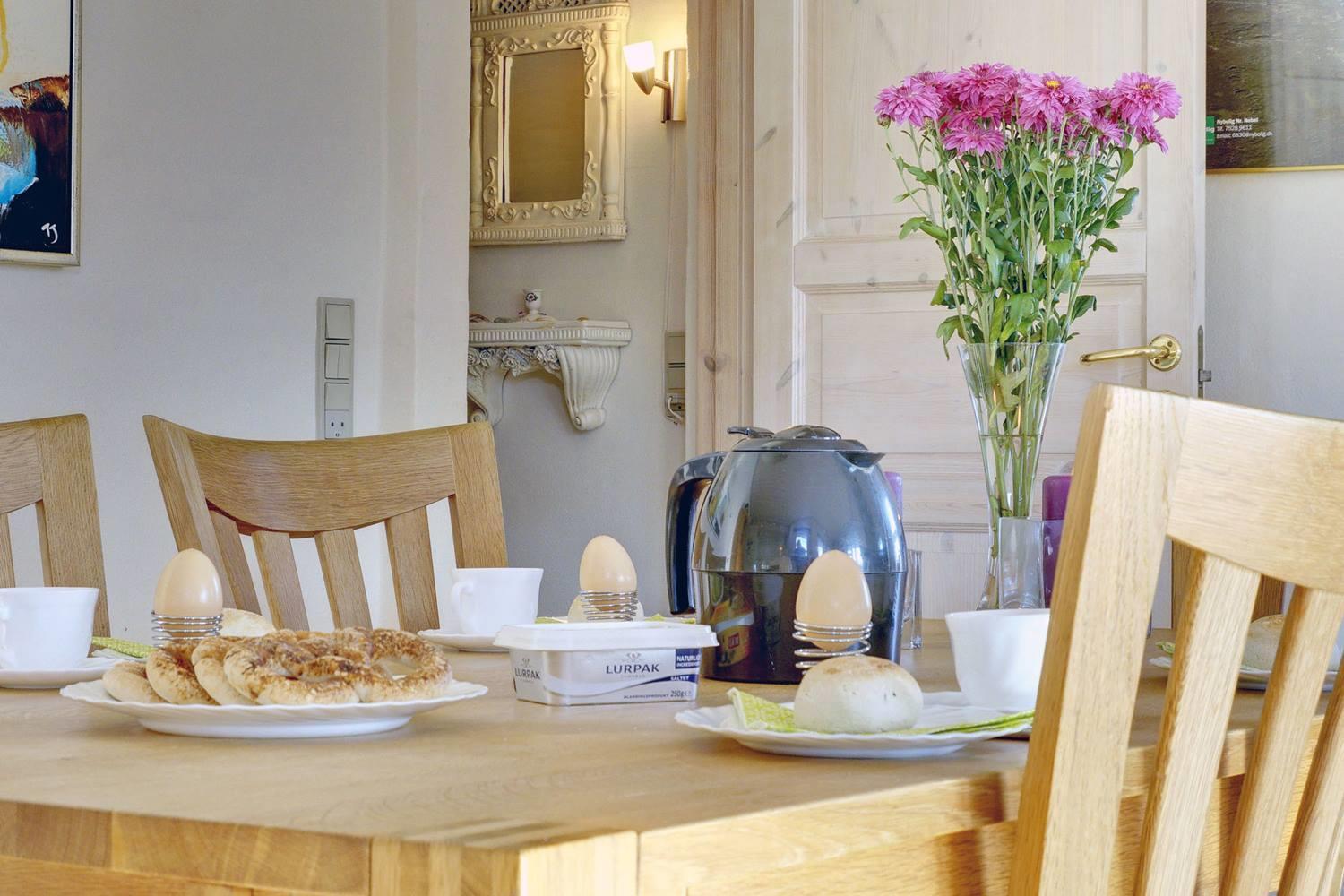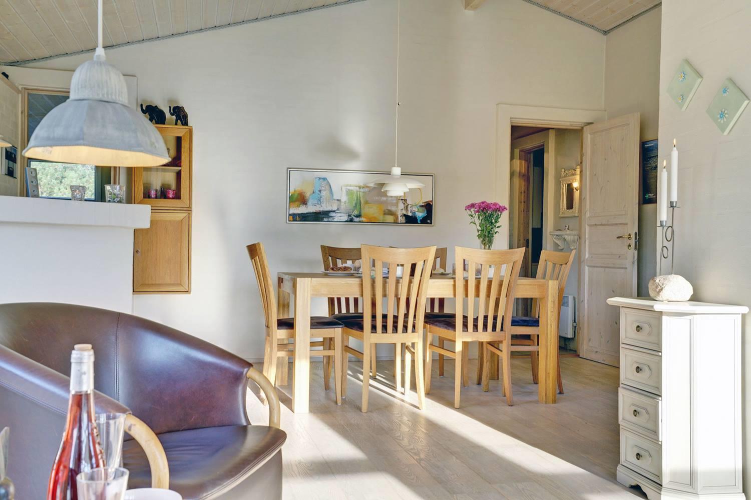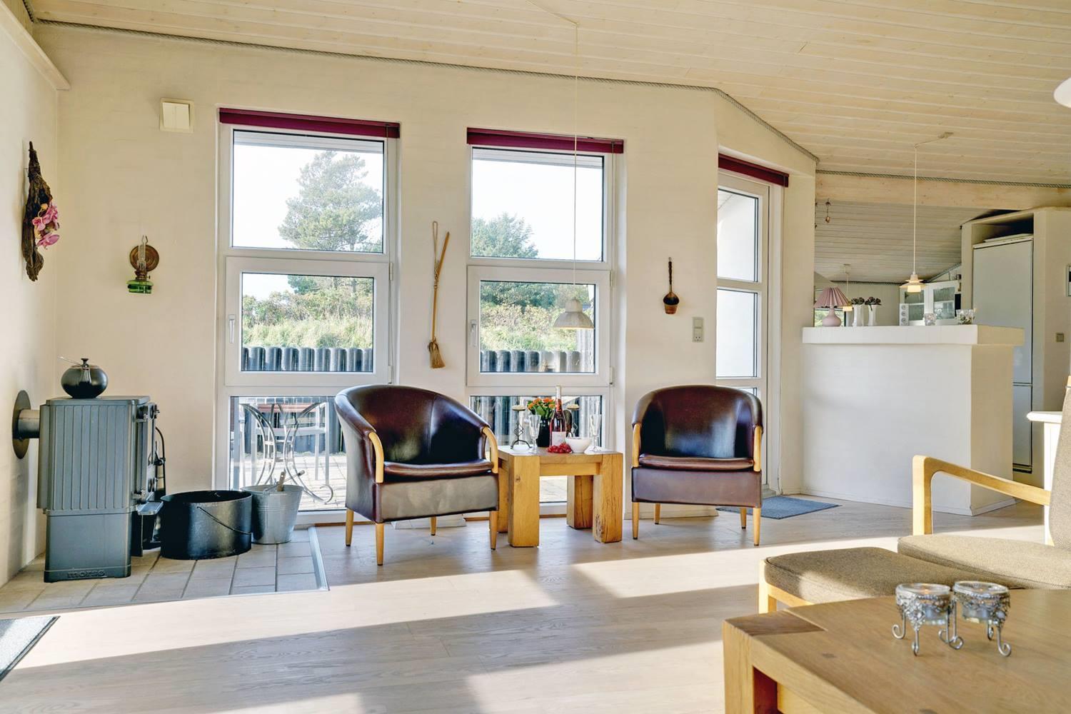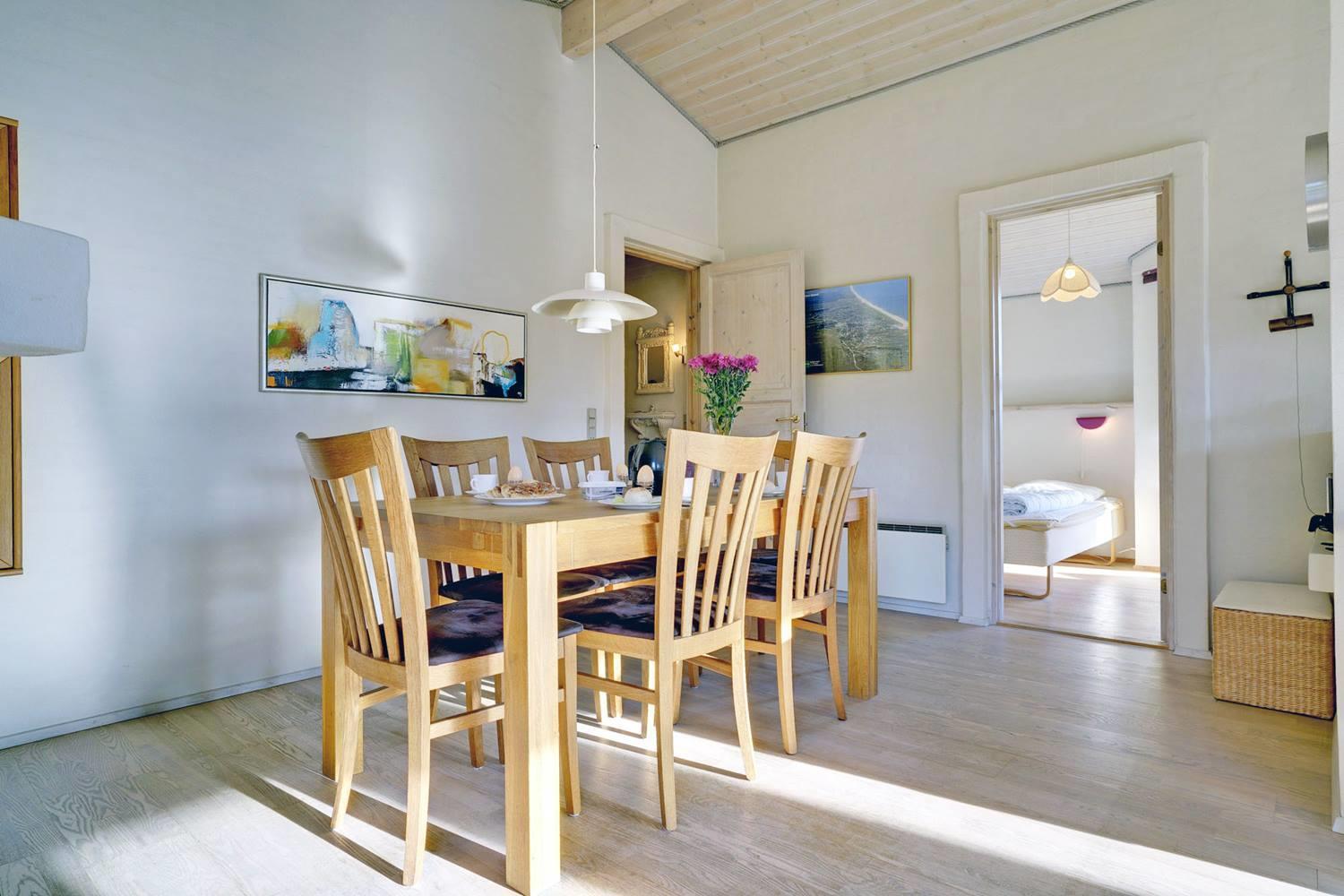 Det moderne køkken er veludstyret med opvaskemaskine, moderne hvidevarer og gulvvarme, så madlavningen bliver en fornøjelse – også i ferien. Her kan I samles om måltiderne og nyde friske råvarer fra Henne Strand.
