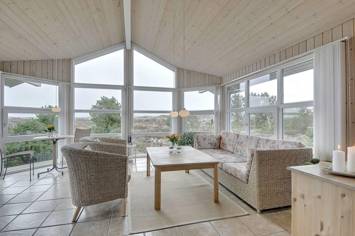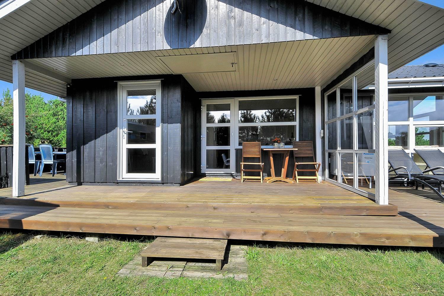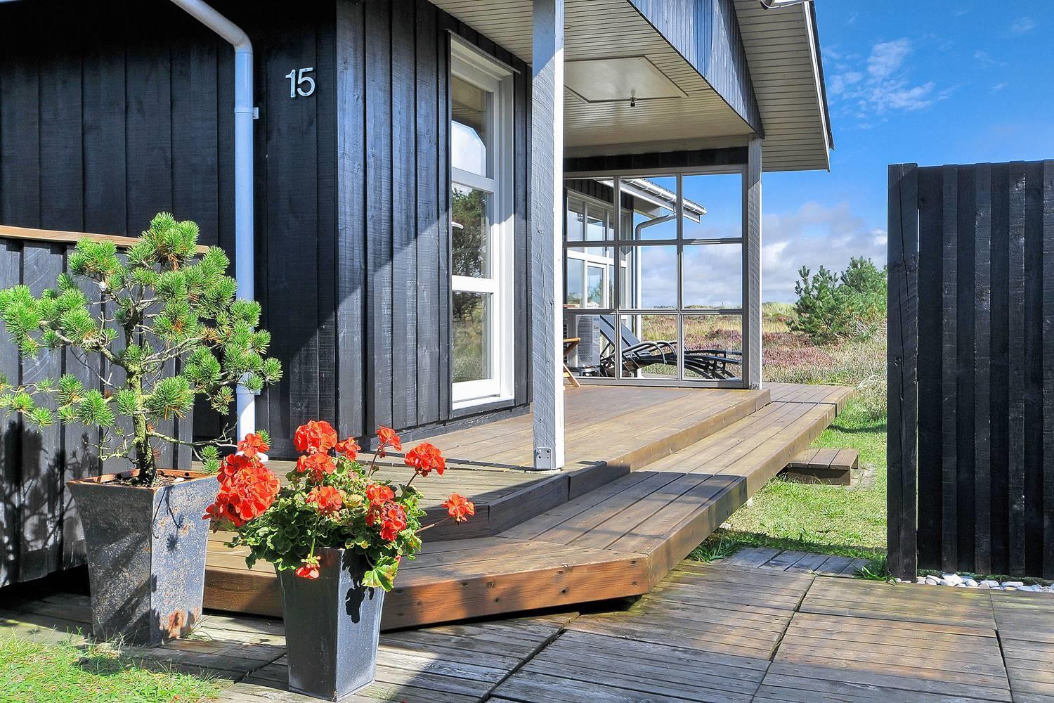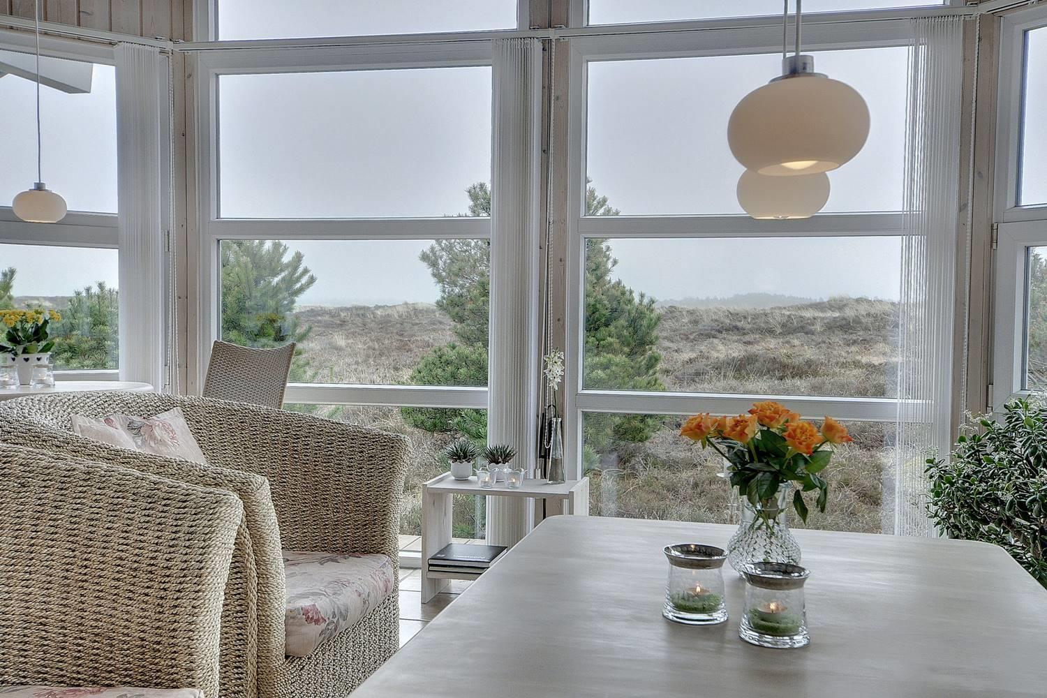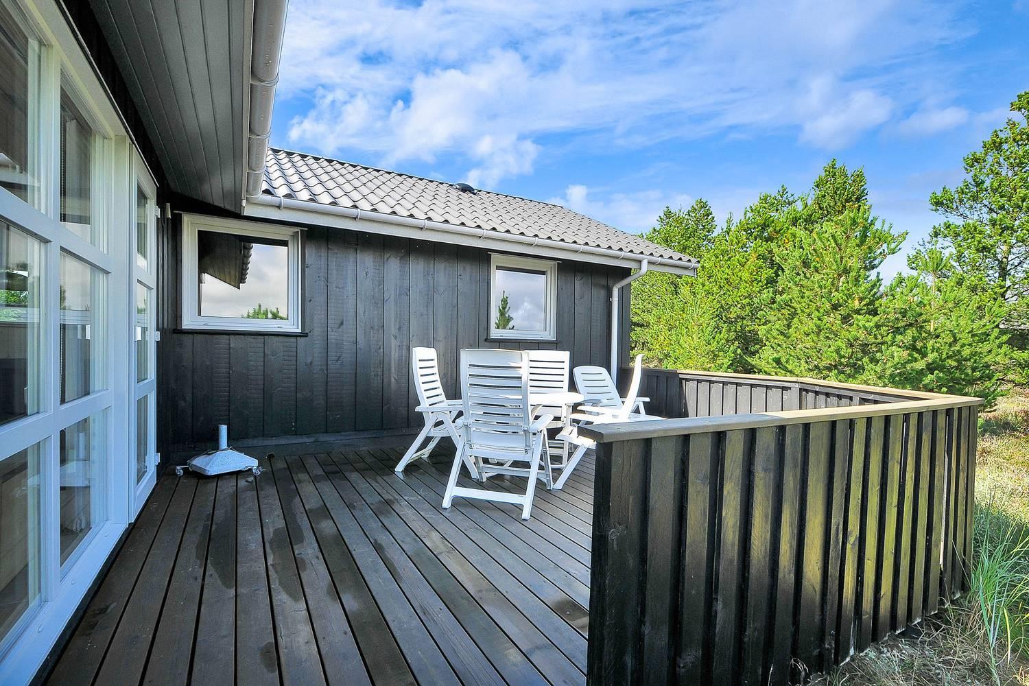 Feriehus på klitgrund med ugenert terrasse og udsigt til fredet hedeområde nær Henne Strand.