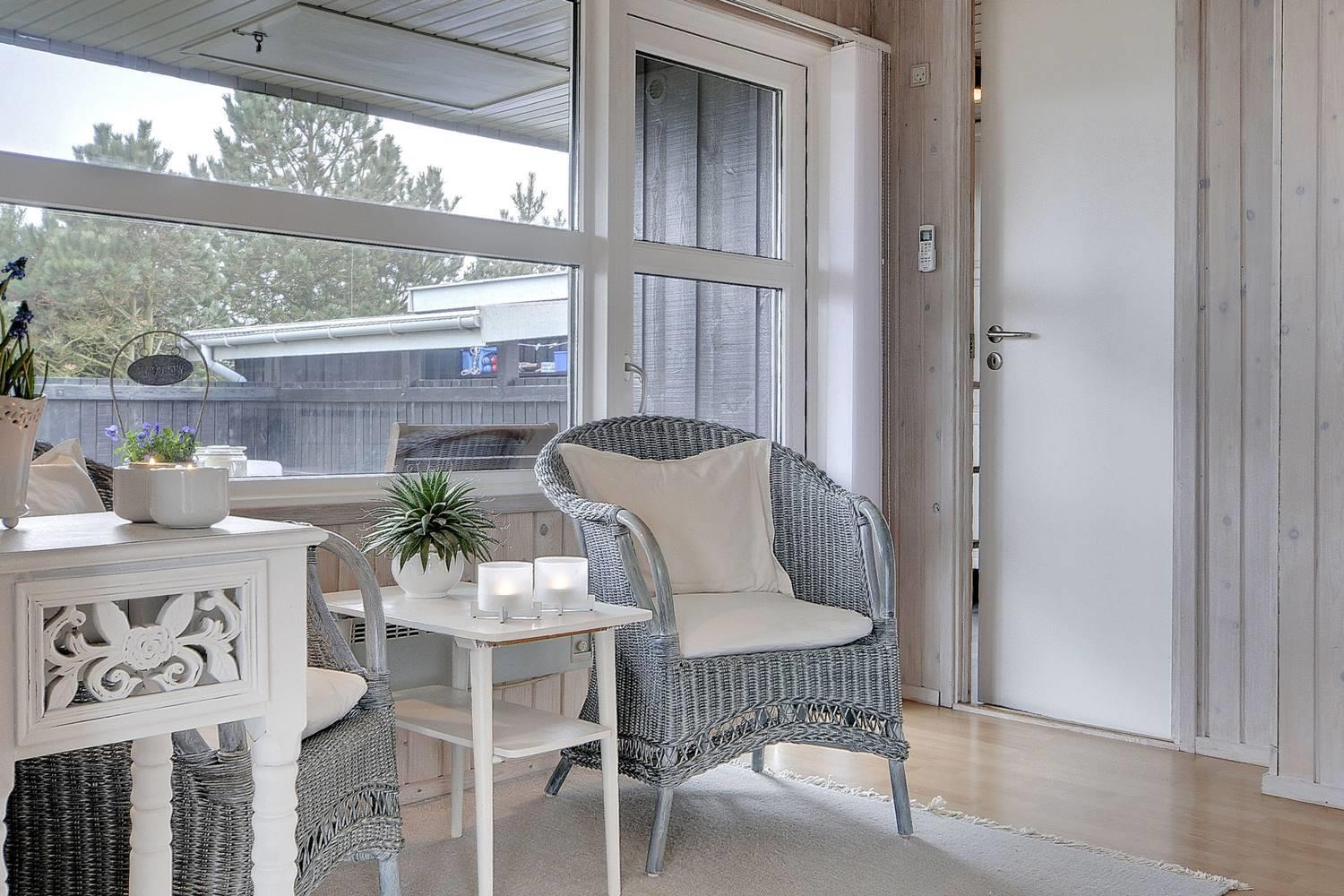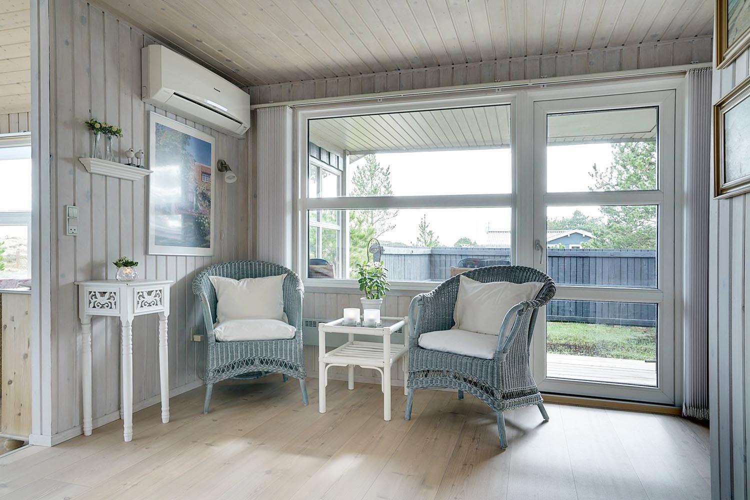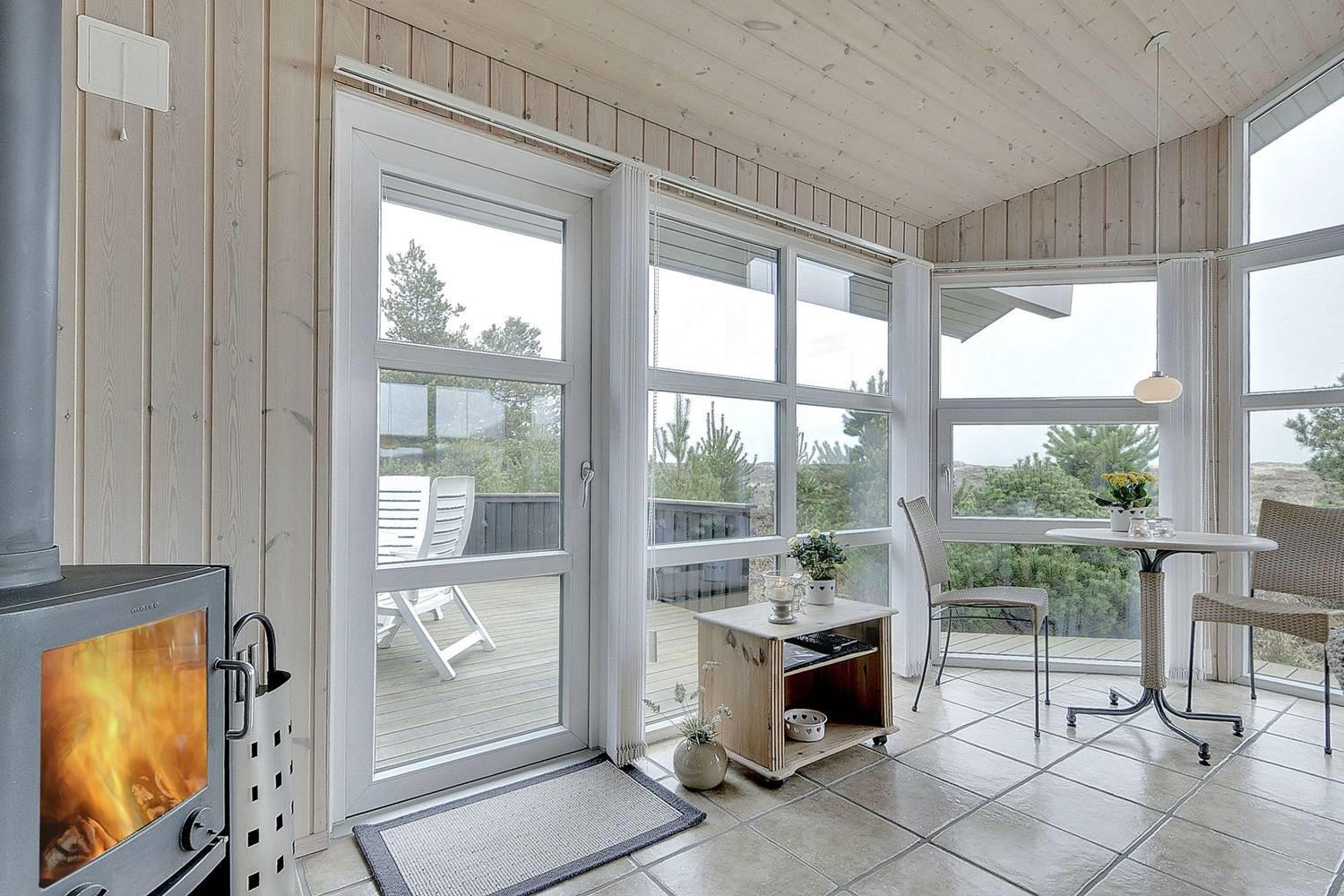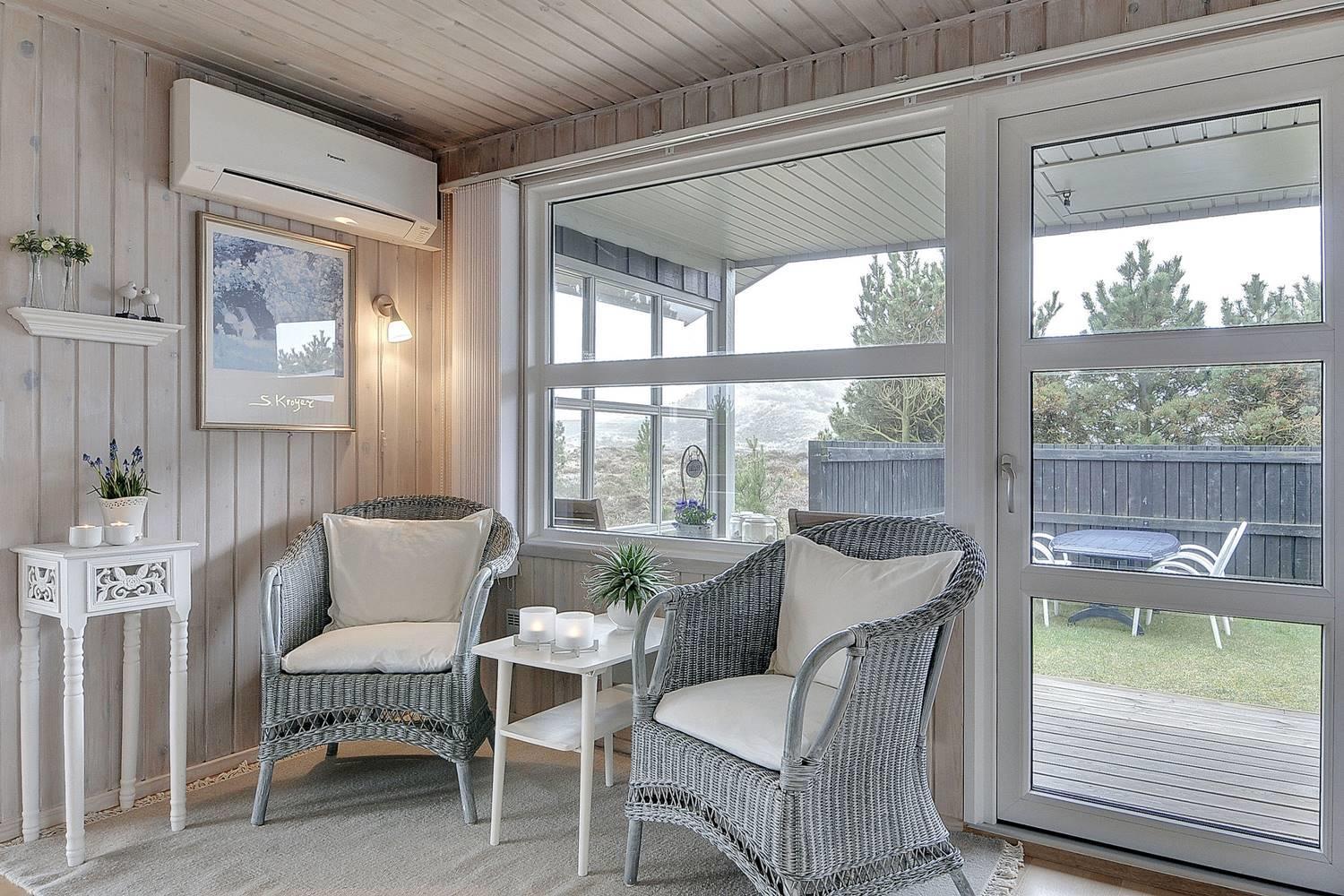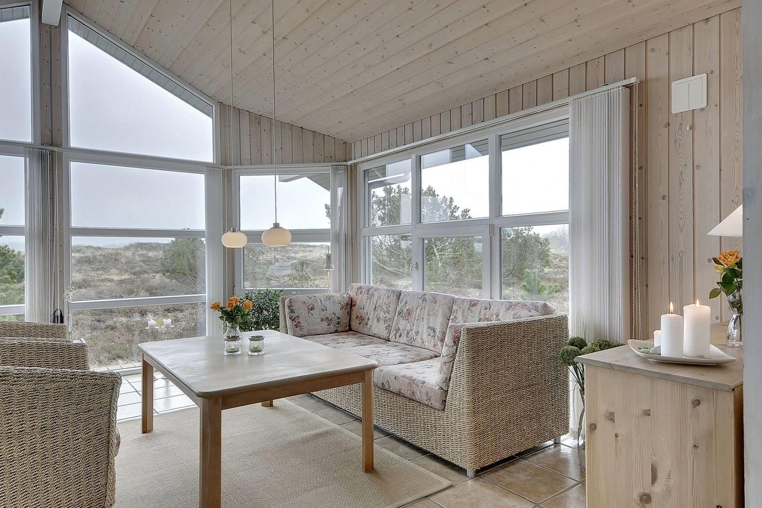 Feriehus på klitgrund med ugenert terrasse og udsigt til fredet hedeområde nær Henne Strand.
