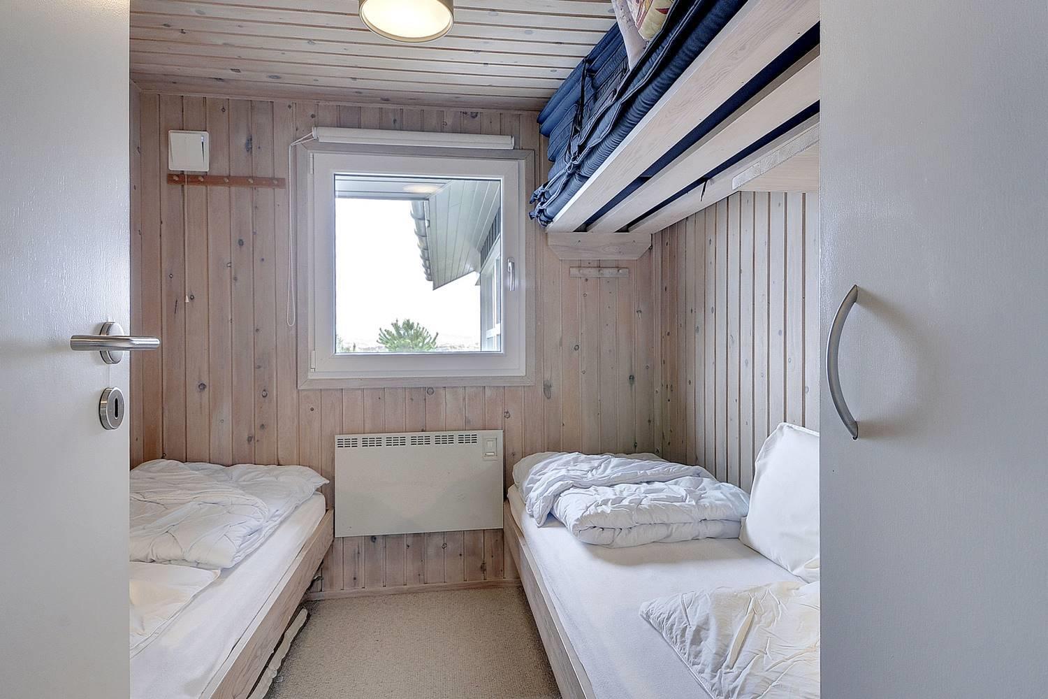 Sengestørrelse: 1 dobbeltseng med 2 madrasser 90 x 200 cm + 1 dobbeltseng 140 x 200 cm + 2 enkeltsenge 80 x 190 cm