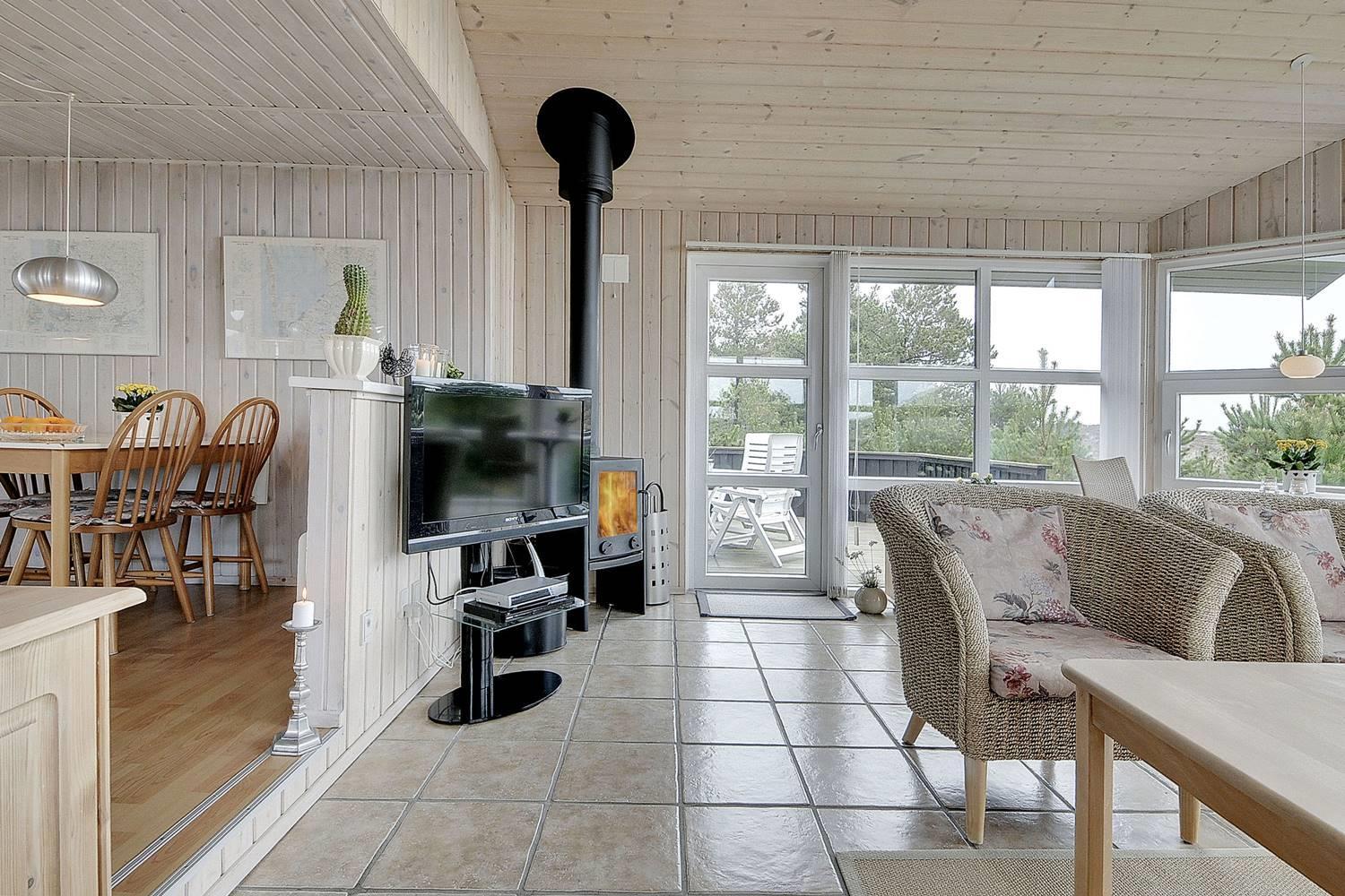 På en enestående klitgrund for enden af blind vej ligger dette pragtfulde feriehus. Fra stuen er der super flot udsigt ud til stort fredet hedeområde og udgang til ugenert terrasse. Der er træ-terrasse hele vejen rundt om huset. Flot badeværelse med bruseniche samt ekstra lille toilet. Nyere flot køkken. Fra indkørslen er der 2 trin op til husets indgang.