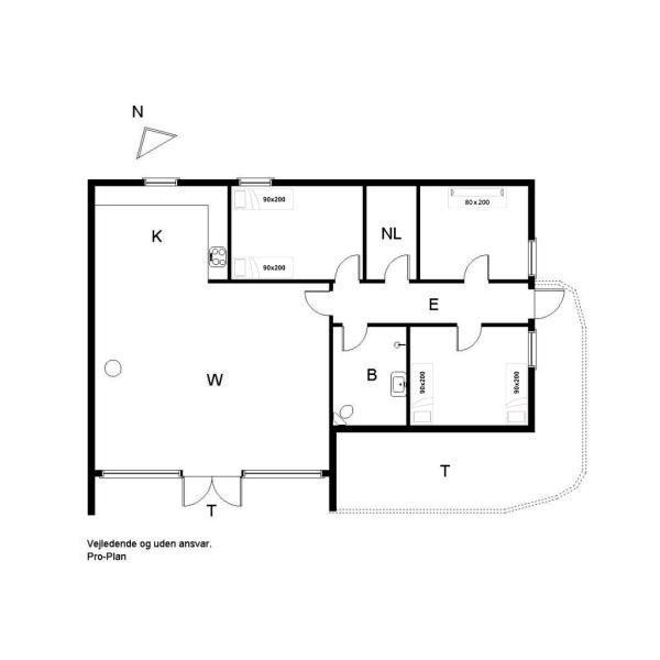 Sengestørrelser: 4 enkeltsenge 90 x 200 cm + 1 sovesofa 80 x 200 cm.