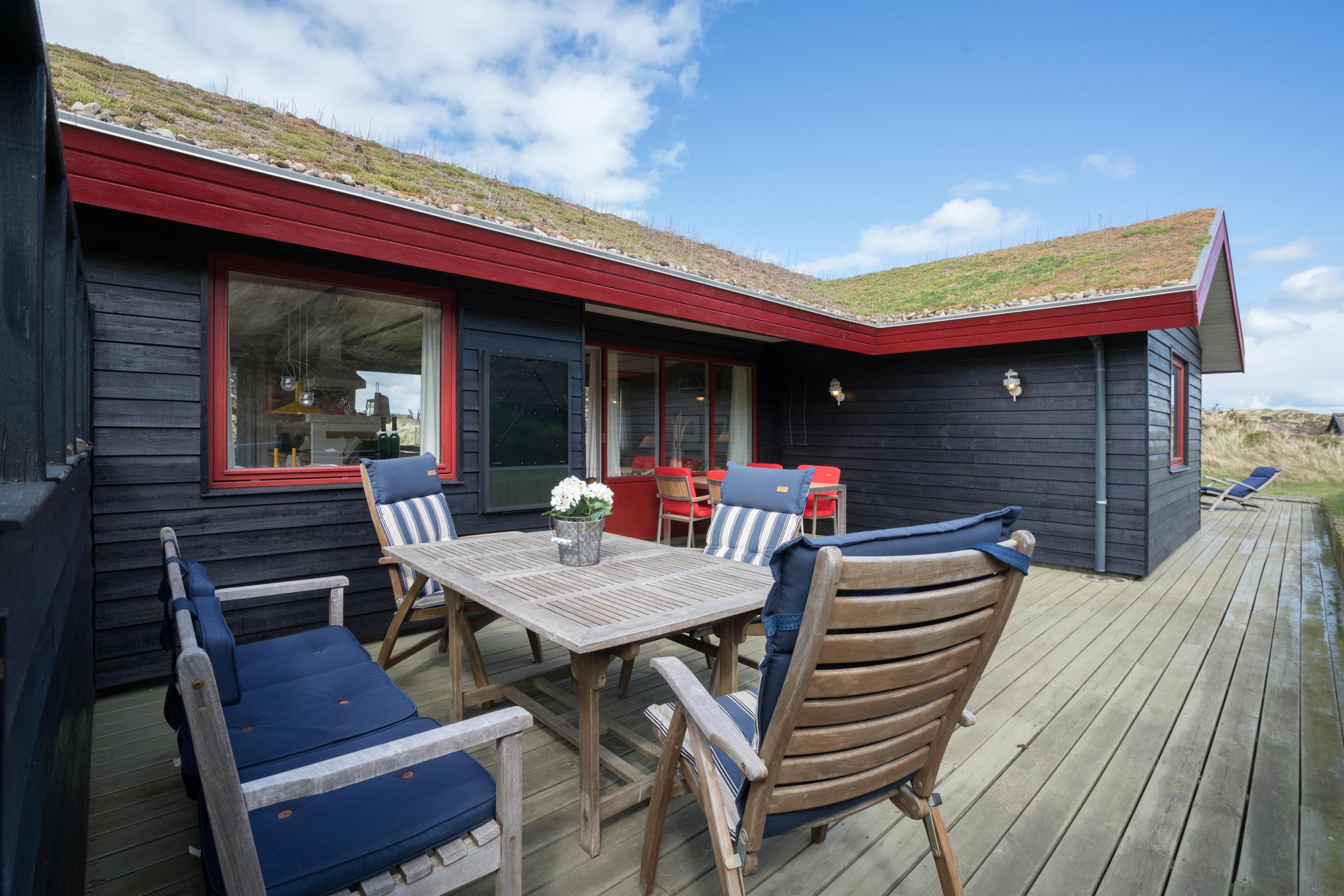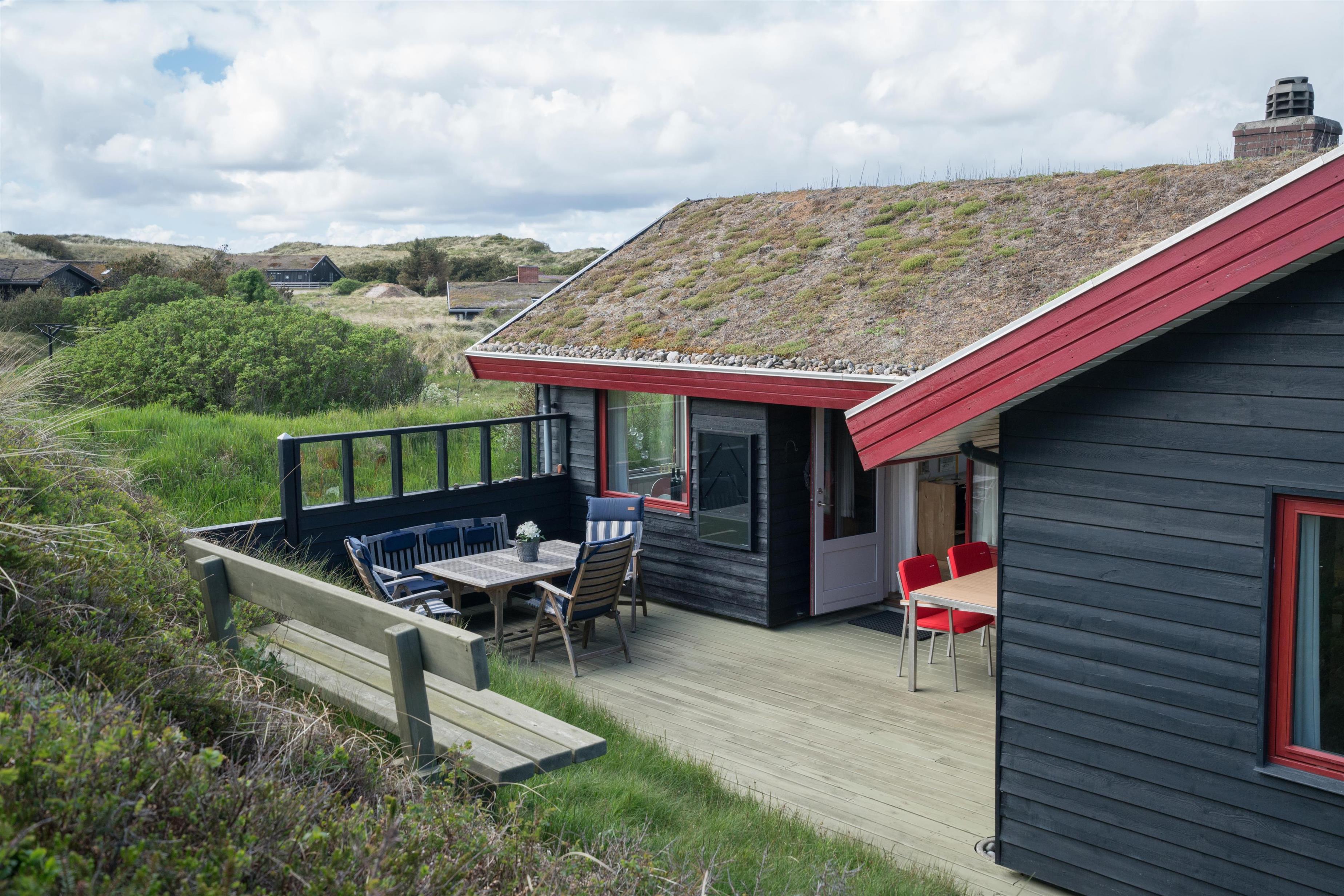 Med en af de bedre beliggenheder, tæt på Vesterhavet, har vi her et hyggeligt, charmerende og meget personligt indrettet feriehus. Grunden er delvis omkranset af bevoksede klitter, en rigtig pragtfuld beliggenhed midt i den flotte natur. 3 gode værelser og veludstyret køkken som er i åben forbindelse med den hyggelig indrettede stue. Fra stuen er der udgang til ugeneret og læ fuld træterrasse.