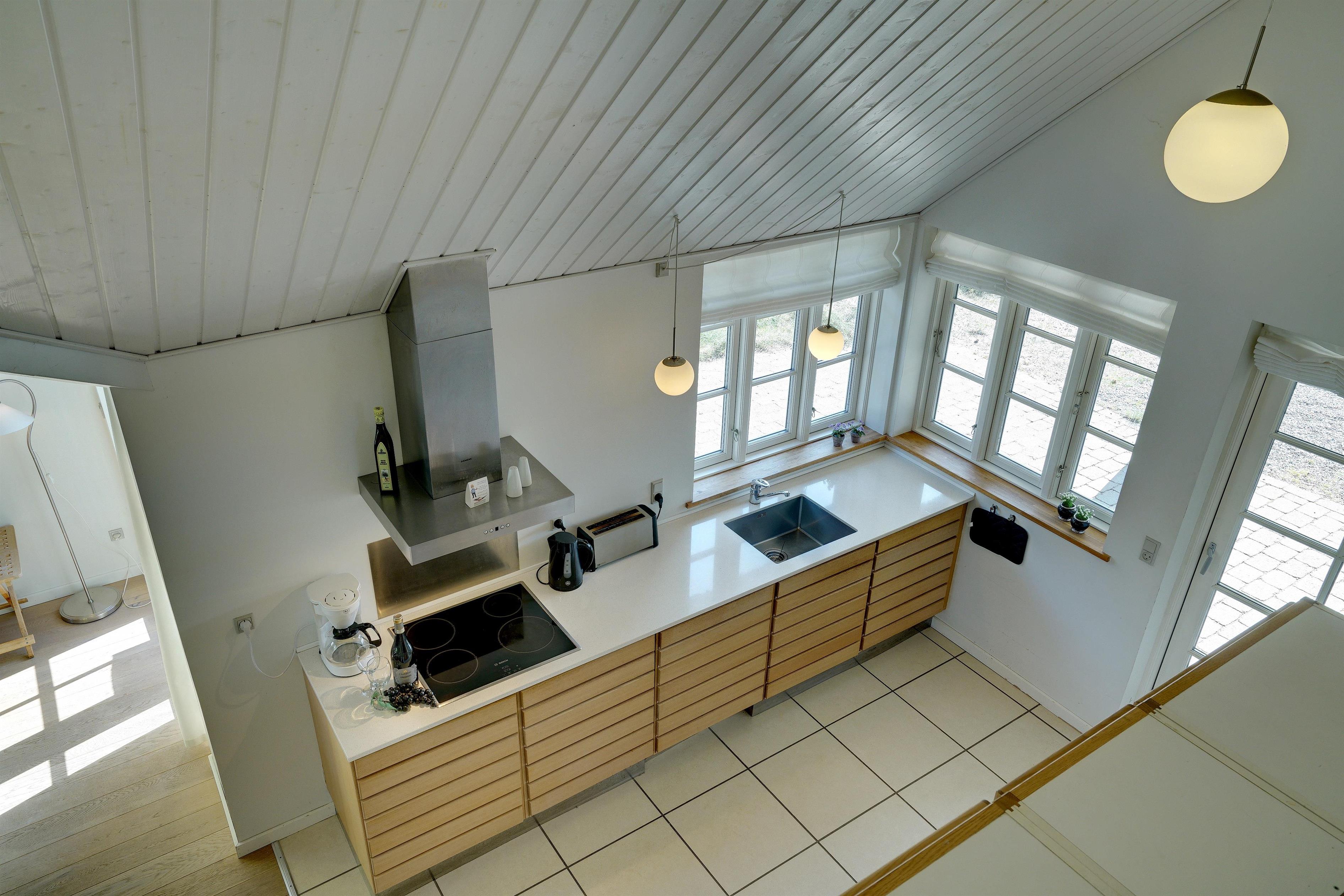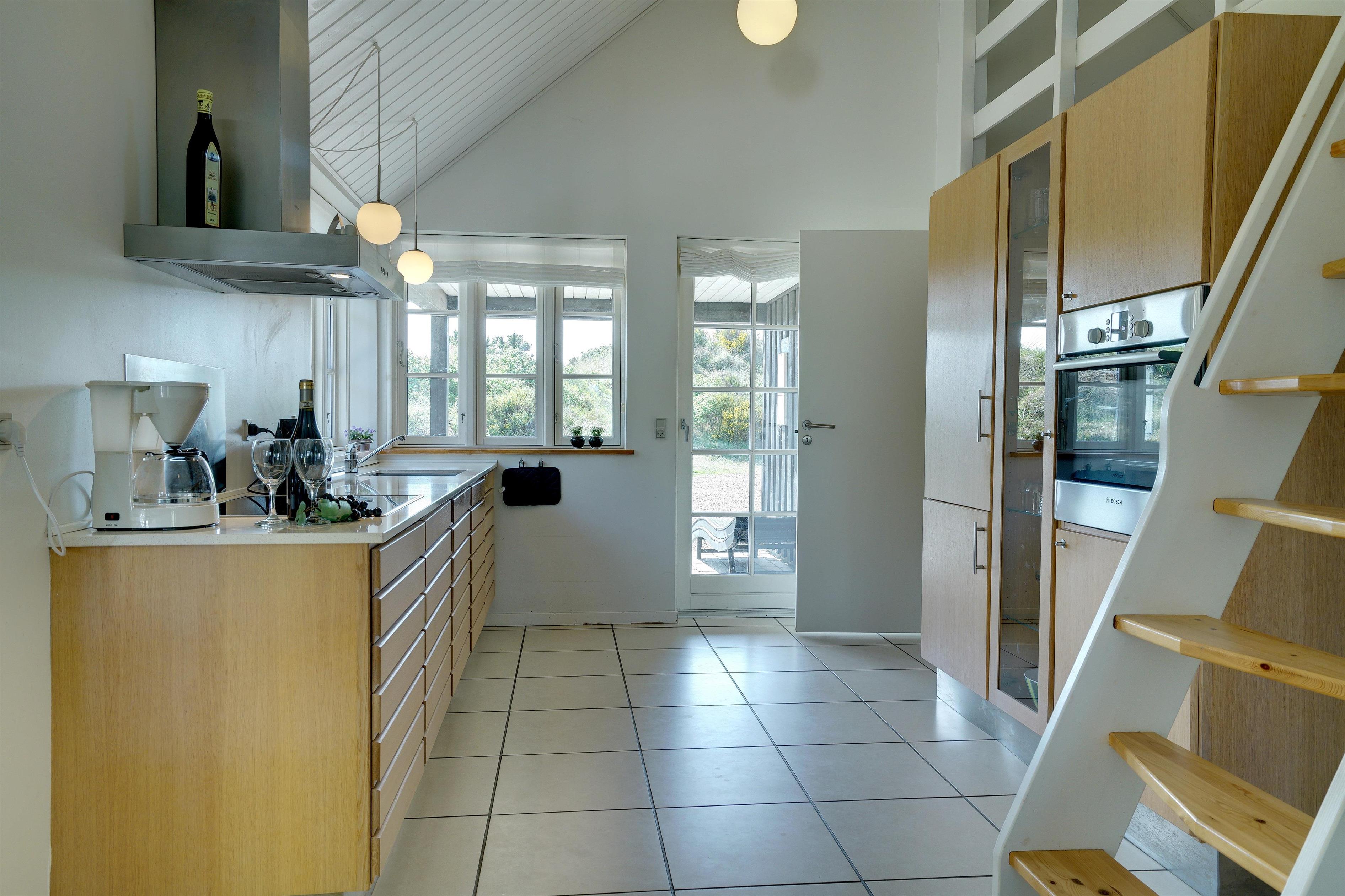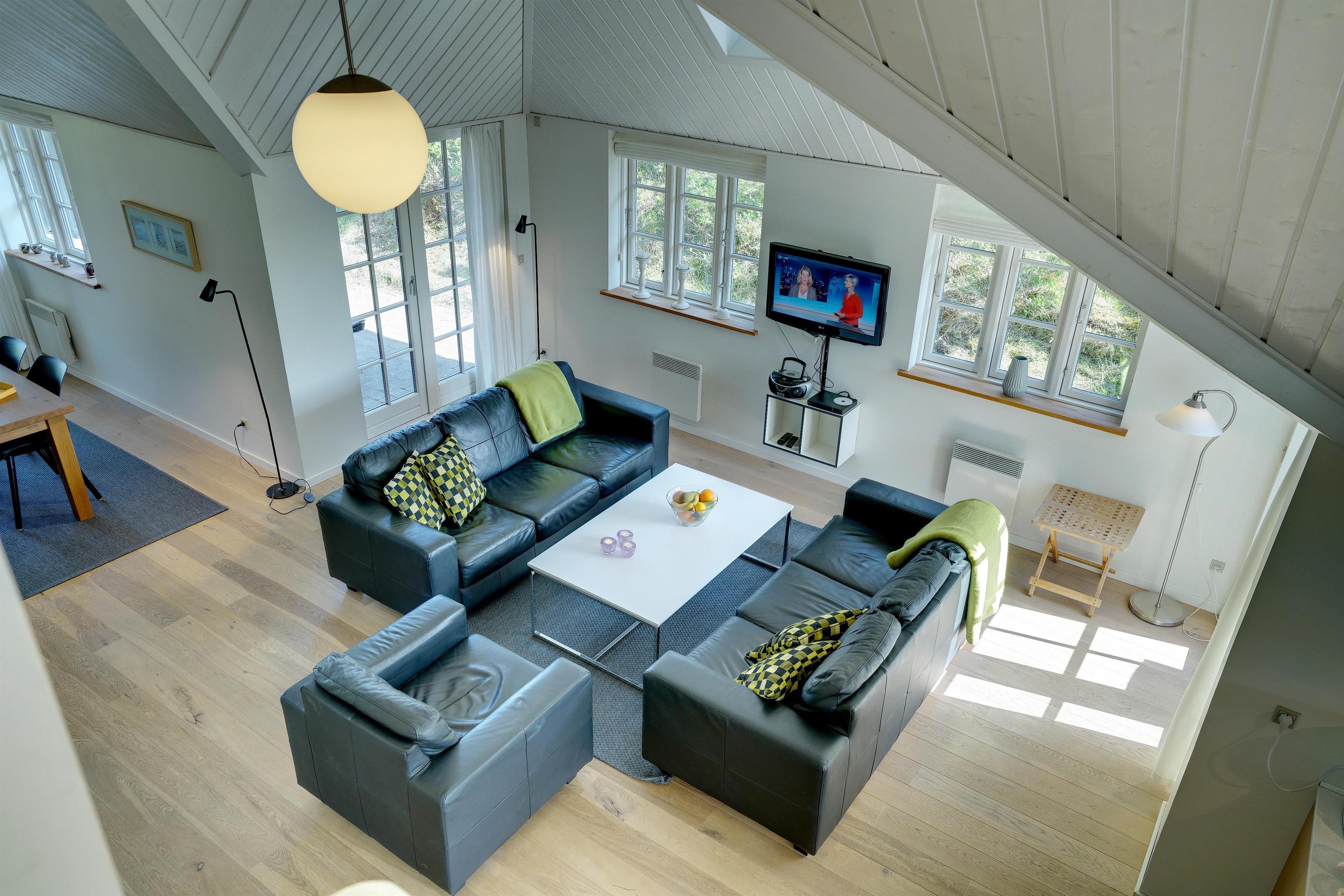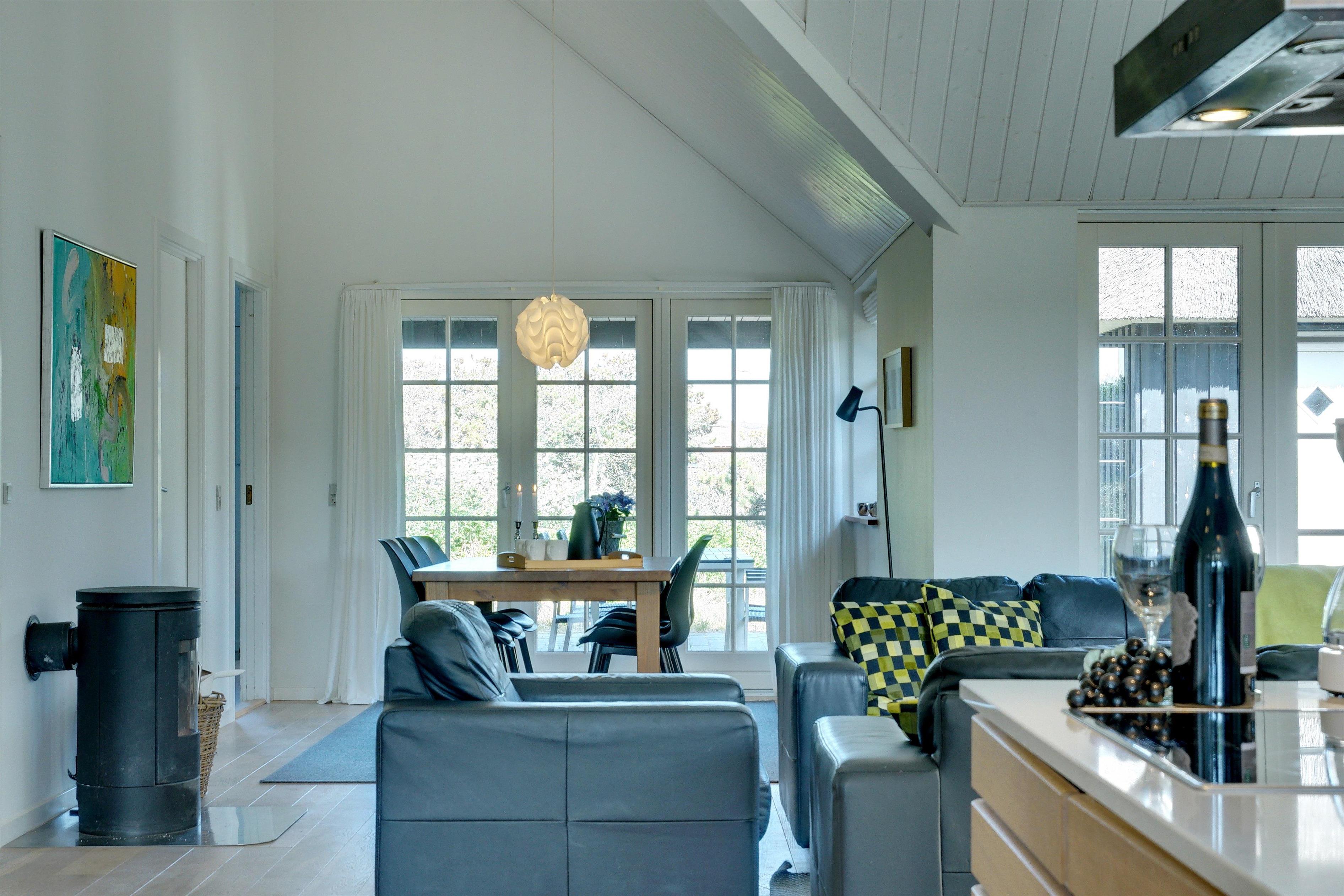 Dejligt feriehus med stråtag og bygget i bondehus stil, beliggende på en dejlig og ugeneret klitgrund for enden af blind stikvej i skønne omgivelser i læ for vinden, kun få minutters gang til Vesterhavet. Huset indeholder stort lækkert køkken med separat fryser og opvaskemaskine. Stue med fladskærms TV og brændeovn. Der forefindes hems. I huset er der loft til kip og vinduer i loftet sørger for et godt lys. Herudover 3 soveværelser med dobbeltsenge, fordelt på 2 afdelinger. Stue samt alle værelser er med trægulve, køkken og gang med klinker. Her tilbydes 2 badeværelser, det ene med spa, sauna, vaskemaskine og tørretumbler. Dejlig entre og stort depotrum. Ugenerede og læfulde terrasser som både er åbne og overdækkede.