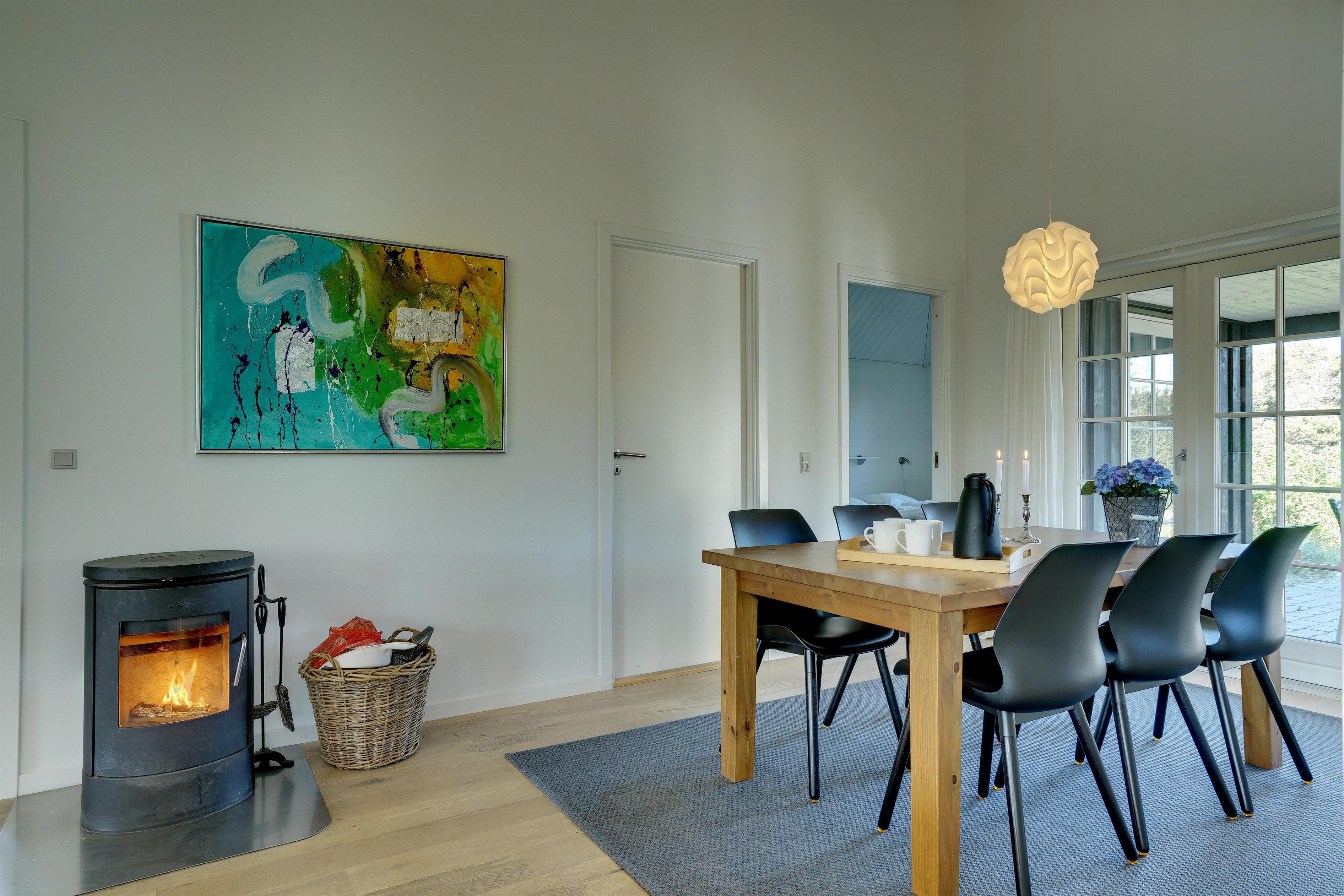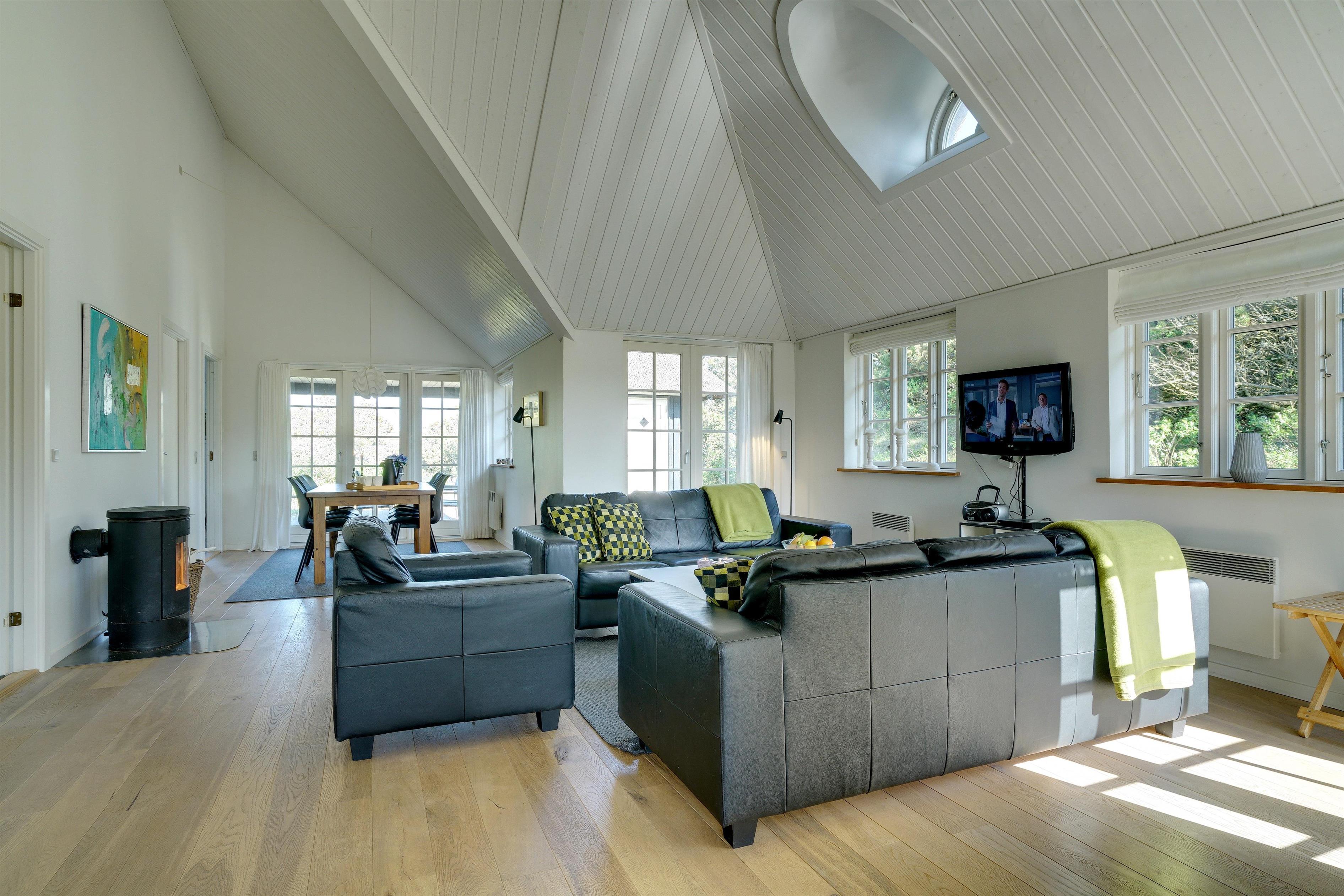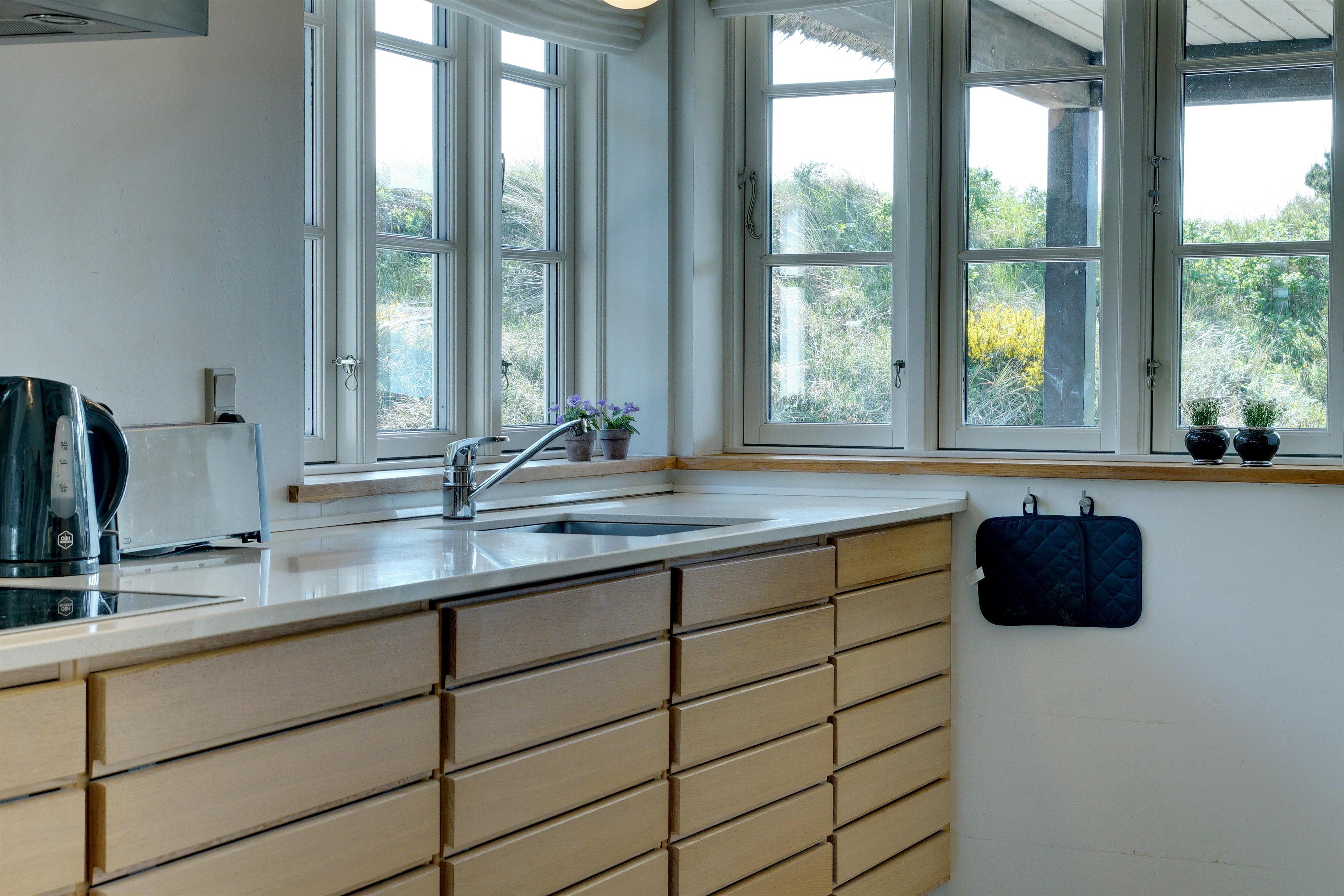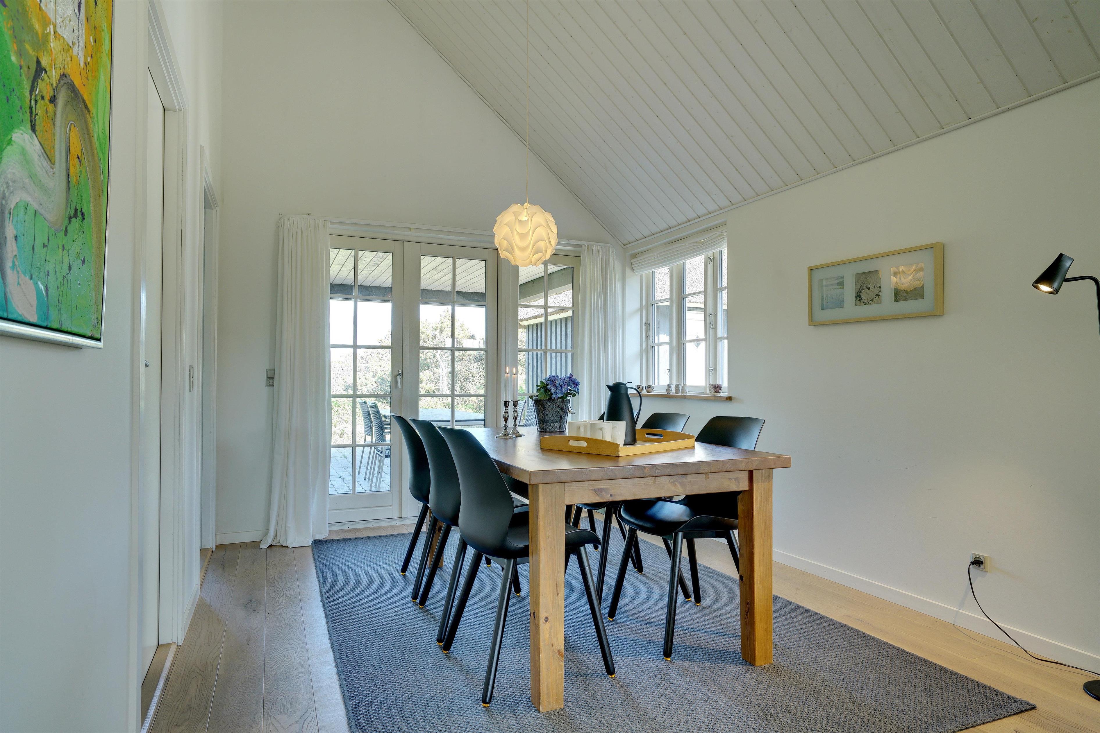 Dejligt feriehus med stråtag og bygget i bondehus stil, beliggende på en dejlig og ugeneret klitgrund for enden af blind stikvej i skønne omgivelser i læ for vinden, kun få minutters gang til Vesterhavet. Huset indeholder stort lækkert køkken med separat fryser og opvaskemaskine. Stue med fladskærms TV og brændeovn. Der forefindes hems. I huset er der loft til kip og vinduer i loftet sørger for et godt lys. Herudover 3 soveværelser med dobbeltsenge, fordelt på 2 afdelinger. Stue samt alle værelser er med trægulve, køkken og gang med klinker. Her tilbydes 2 badeværelser, det ene med spa, sauna, vaskemaskine og tørretumbler. Dejlig entre og stort depotrum. Ugenerede og læfulde terrasser som både er åbne og overdækkede.
