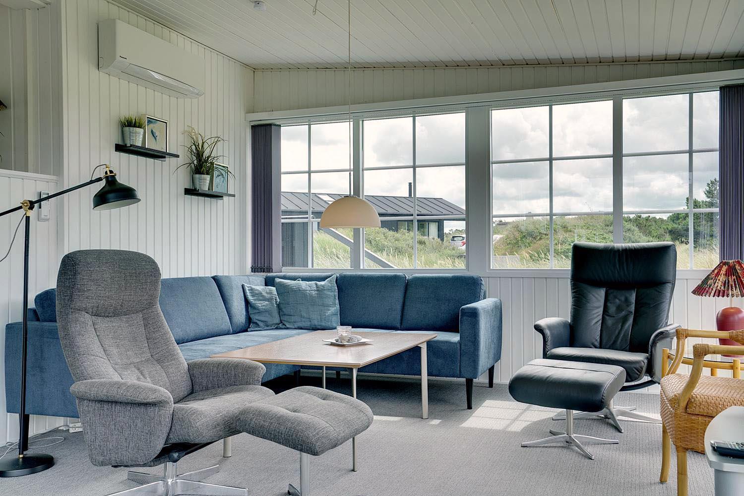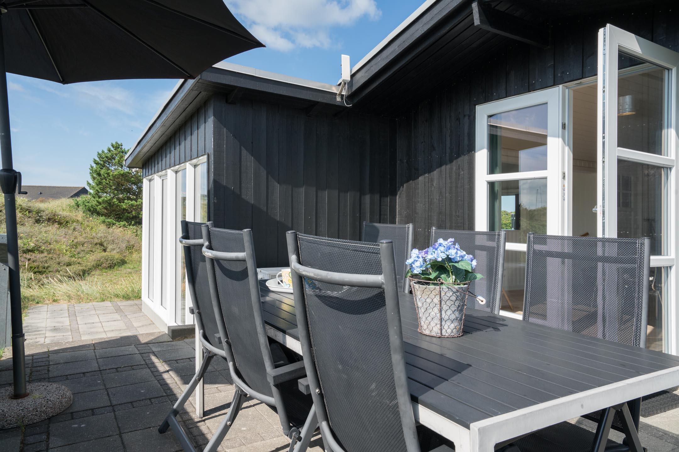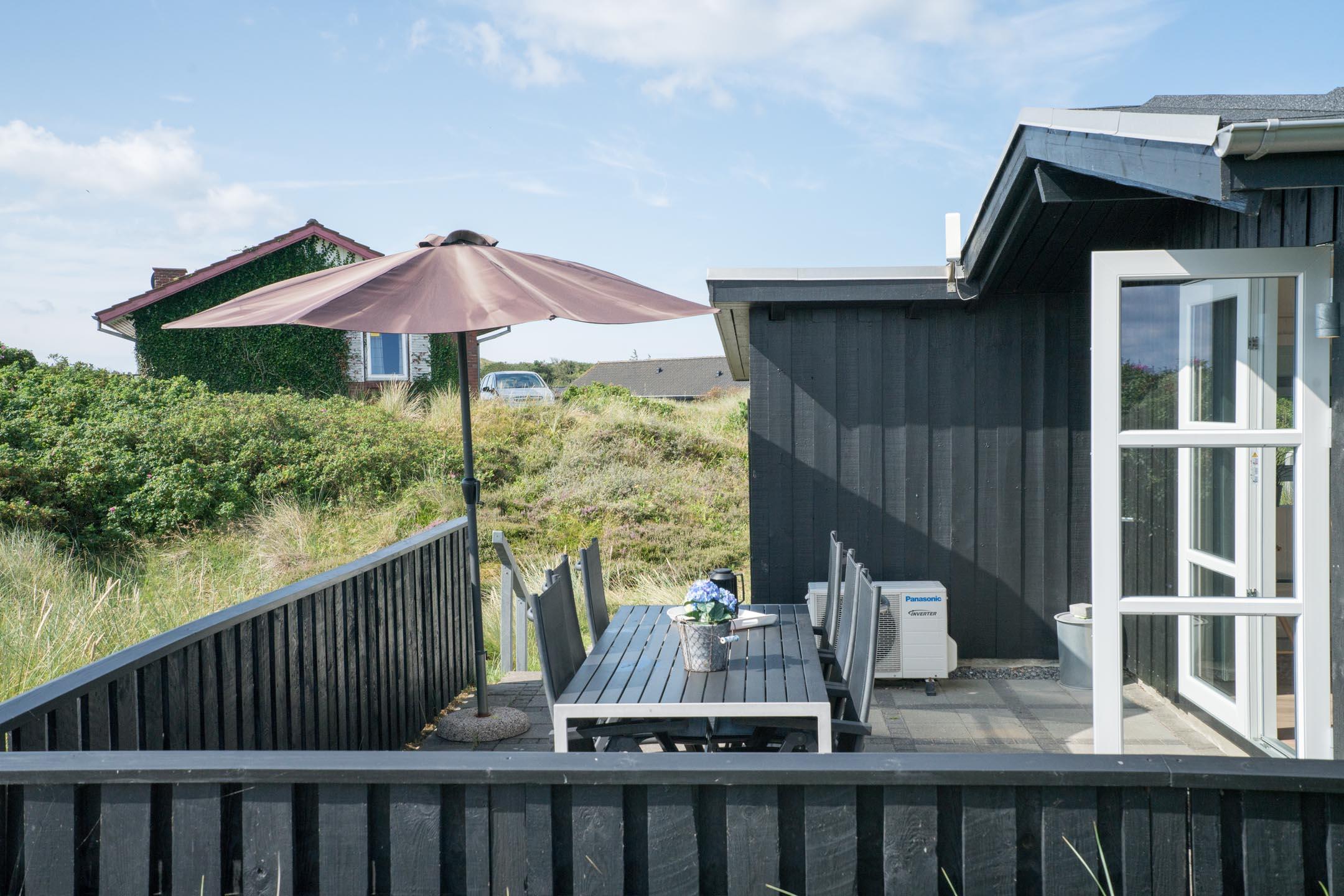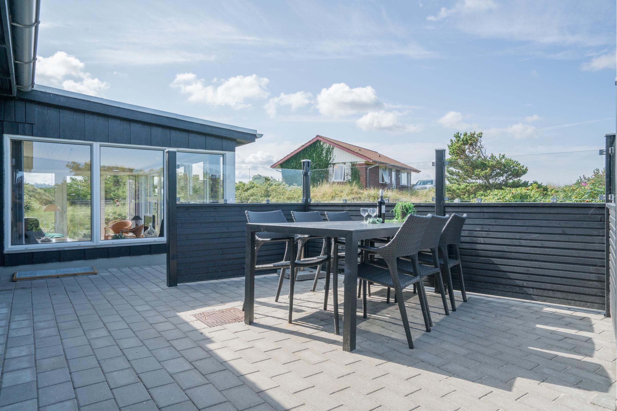 Dejligt feriehus beliggende på en kuperet klitgrund. Huset råder over 2 flotte badeværelser med bruser, i det ene er der ligeledes spa. Pænt kombineret køkken og spiseafdeling, hvorfra man kommer ned i den hyggelige lyse stue. Omkring huset er der flere gode terrasser. Det rigtigt dejlig, lyst og venligt feriehus.