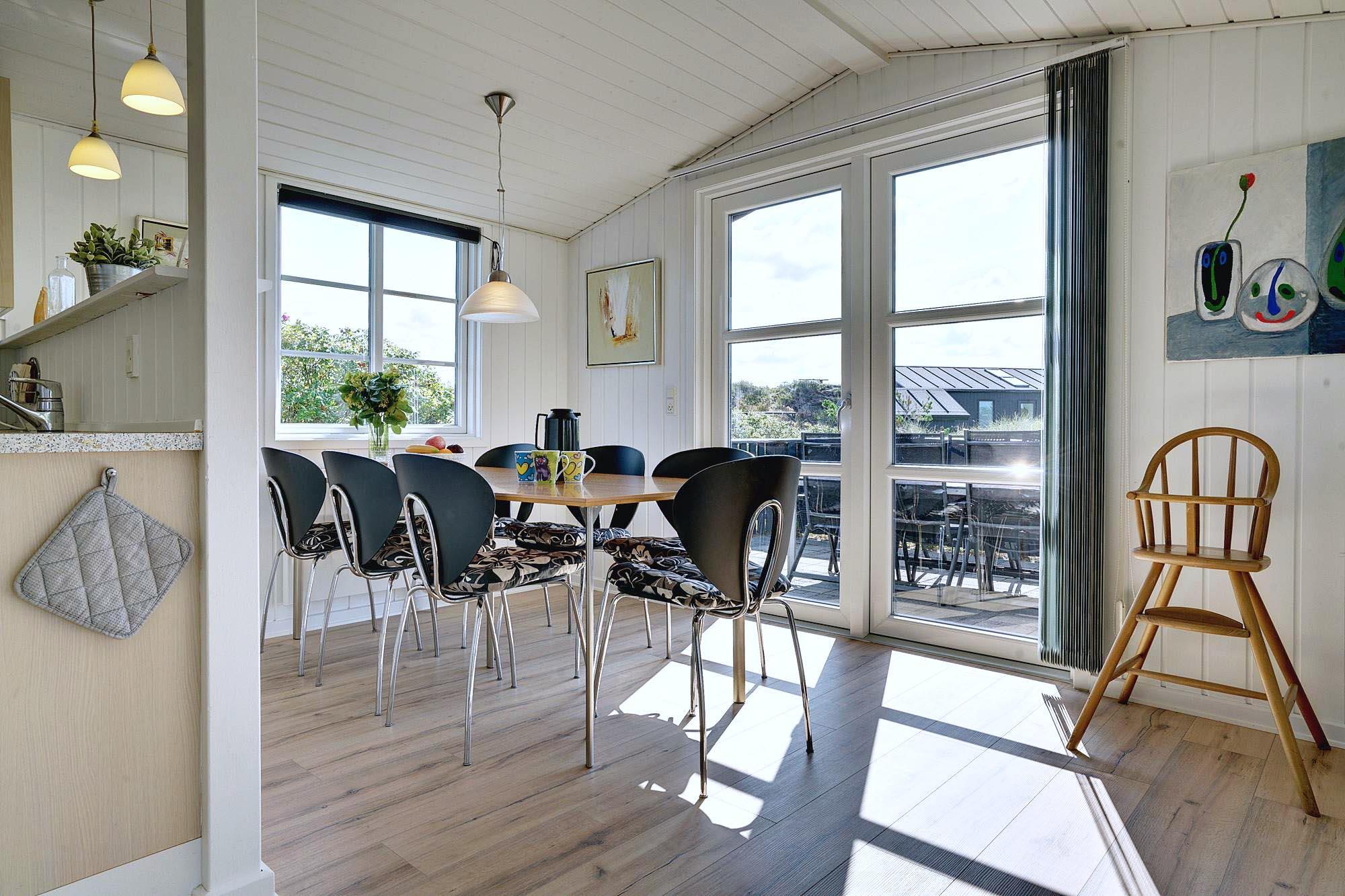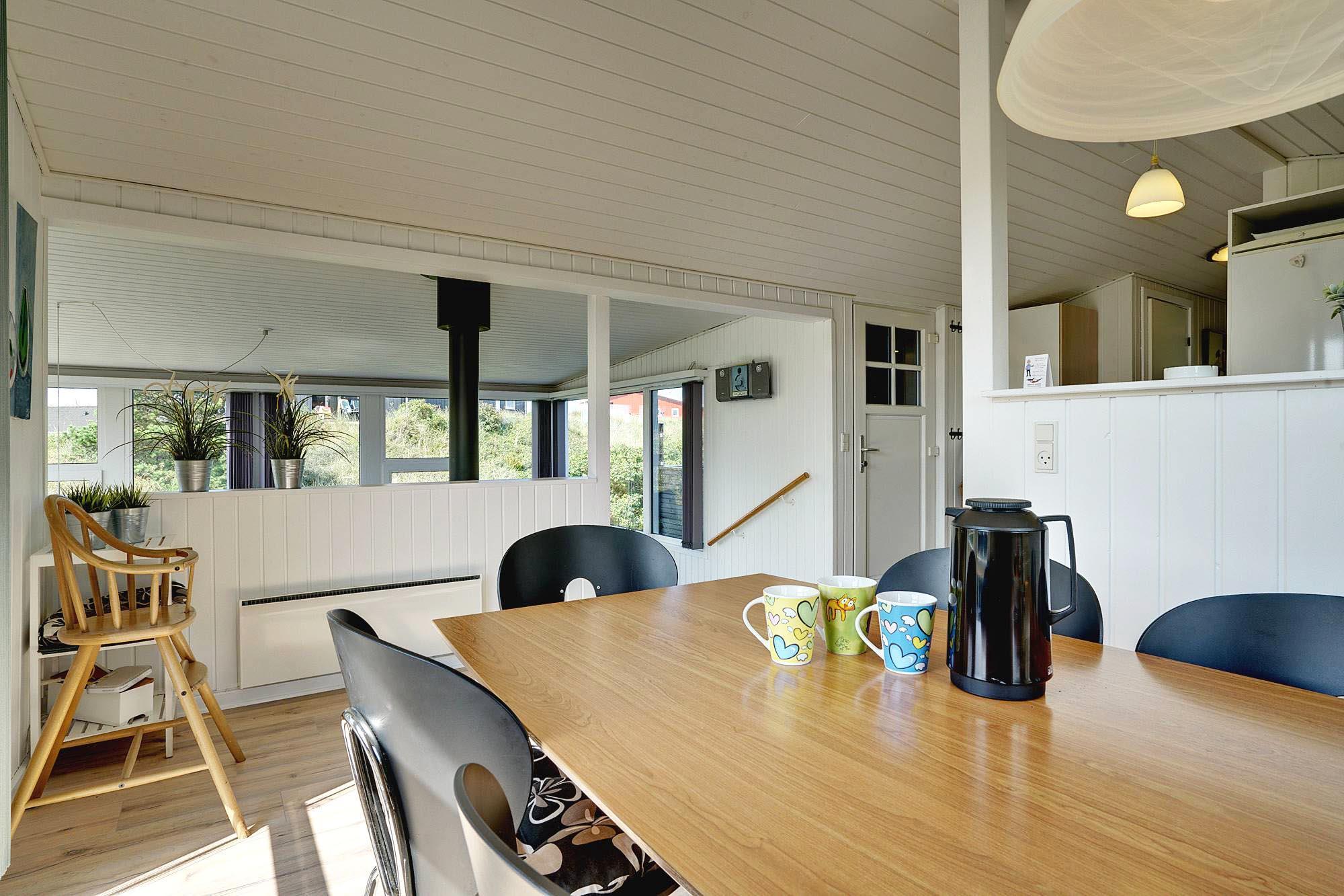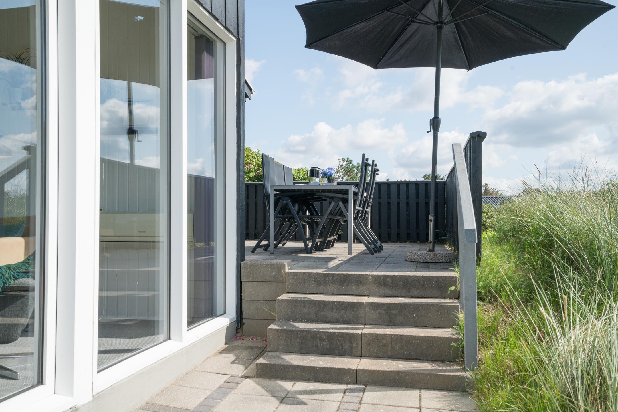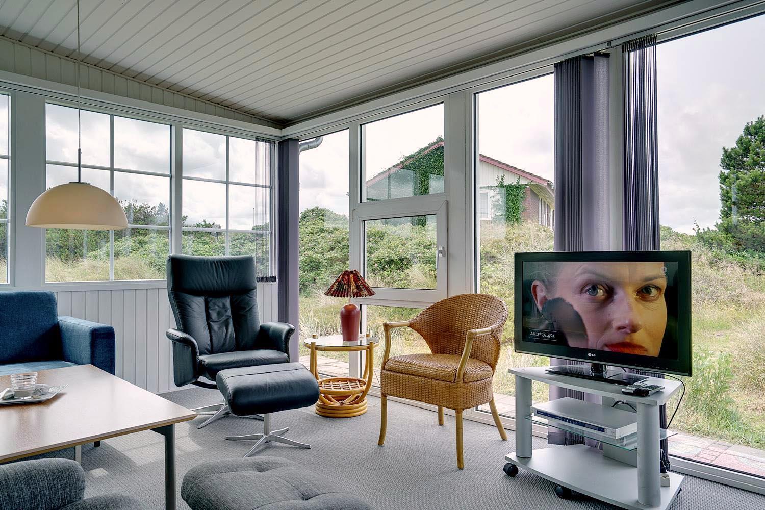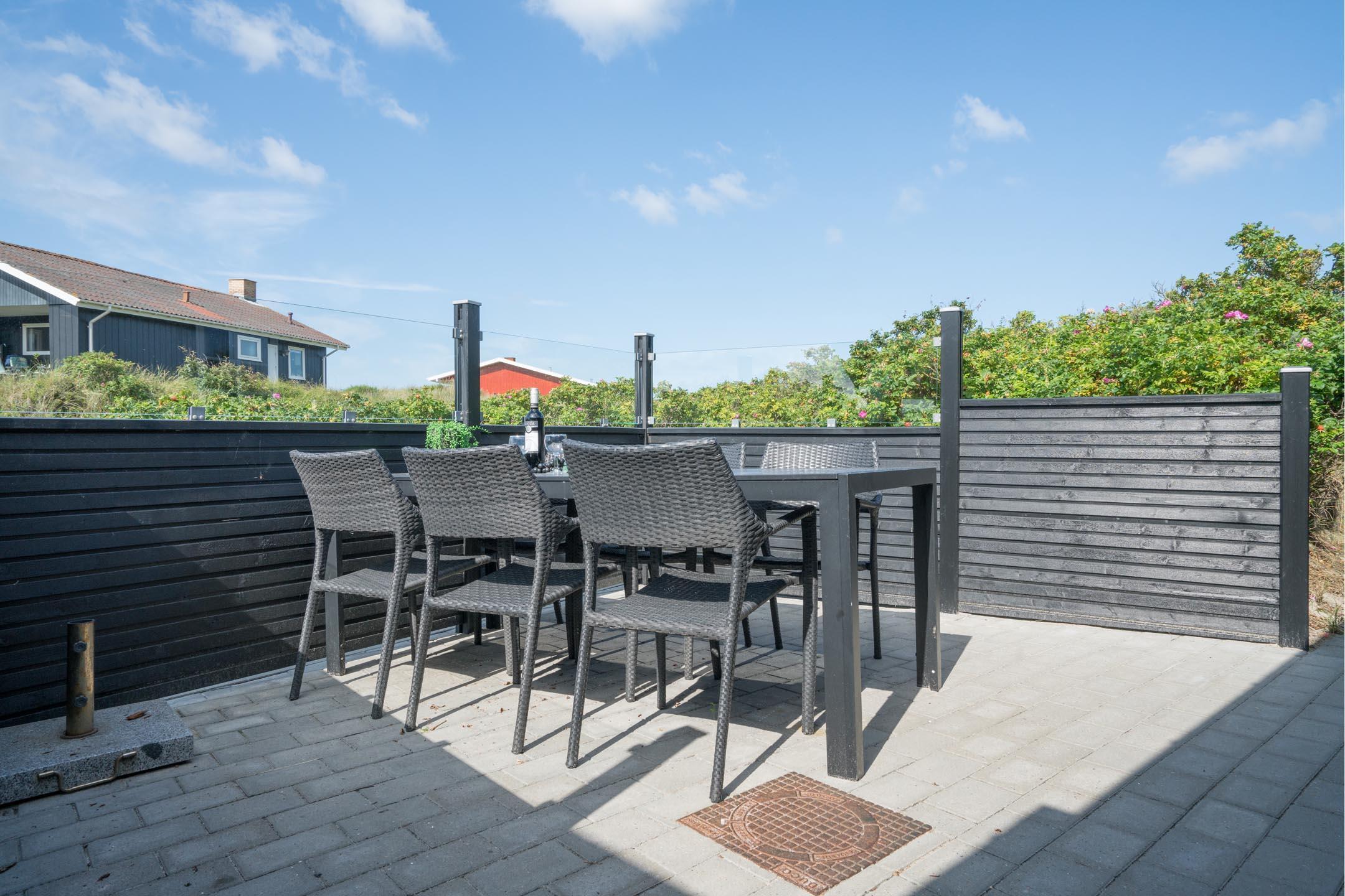 Dejligt feriehus beliggende på en kuperet klitgrund. Huset råder over 2 flotte badeværelser med bruser, i det ene er der ligeledes spa. Pænt kombineret køkken og spiseafdeling, hvorfra man kommer ned i den hyggelige lyse stue. Omkring huset er der flere gode terrasser. Det rigtigt dejlig, lyst og venligt feriehus.