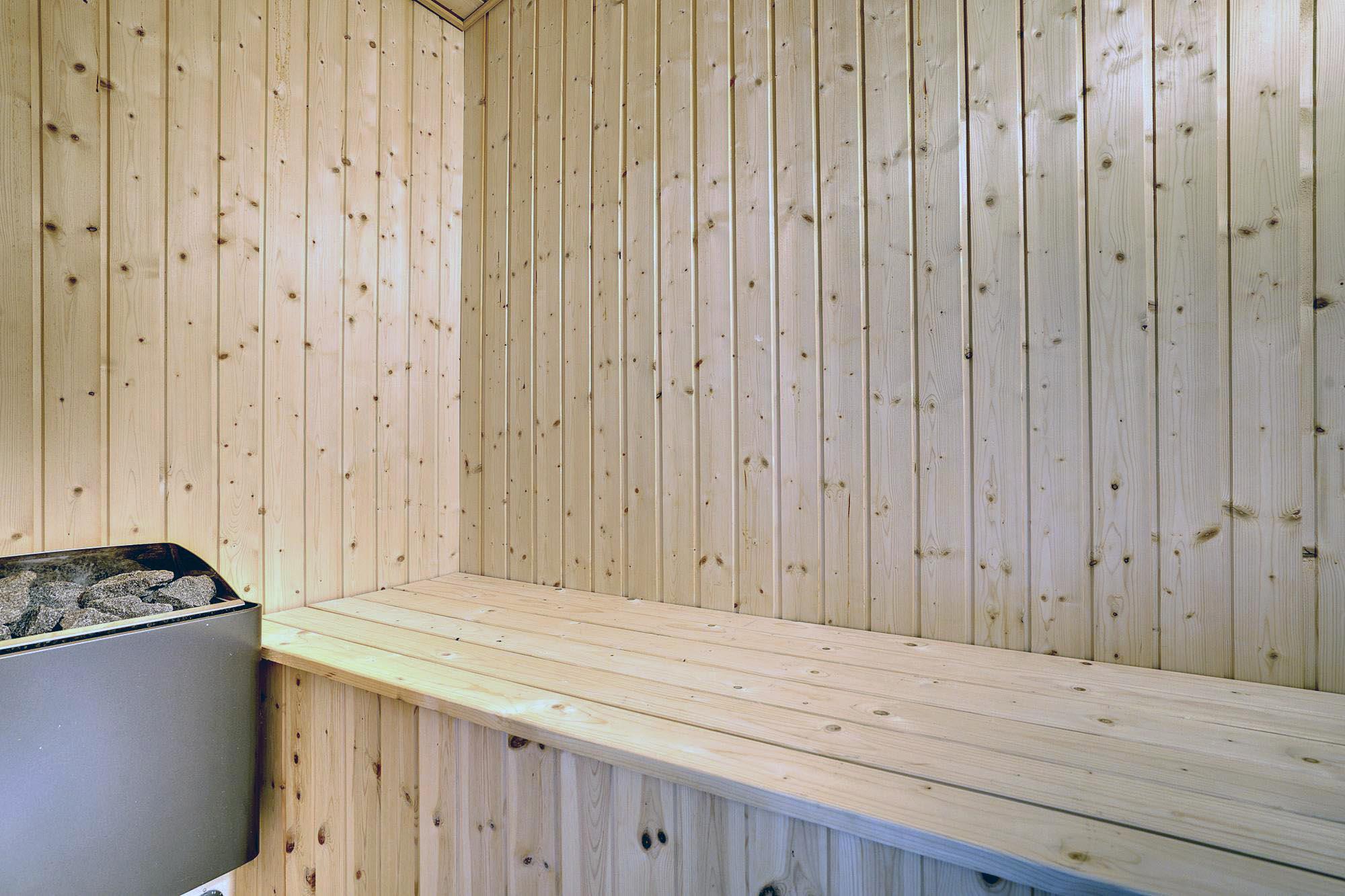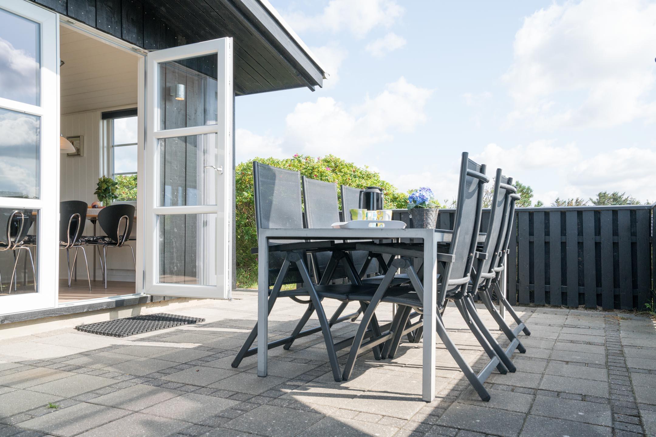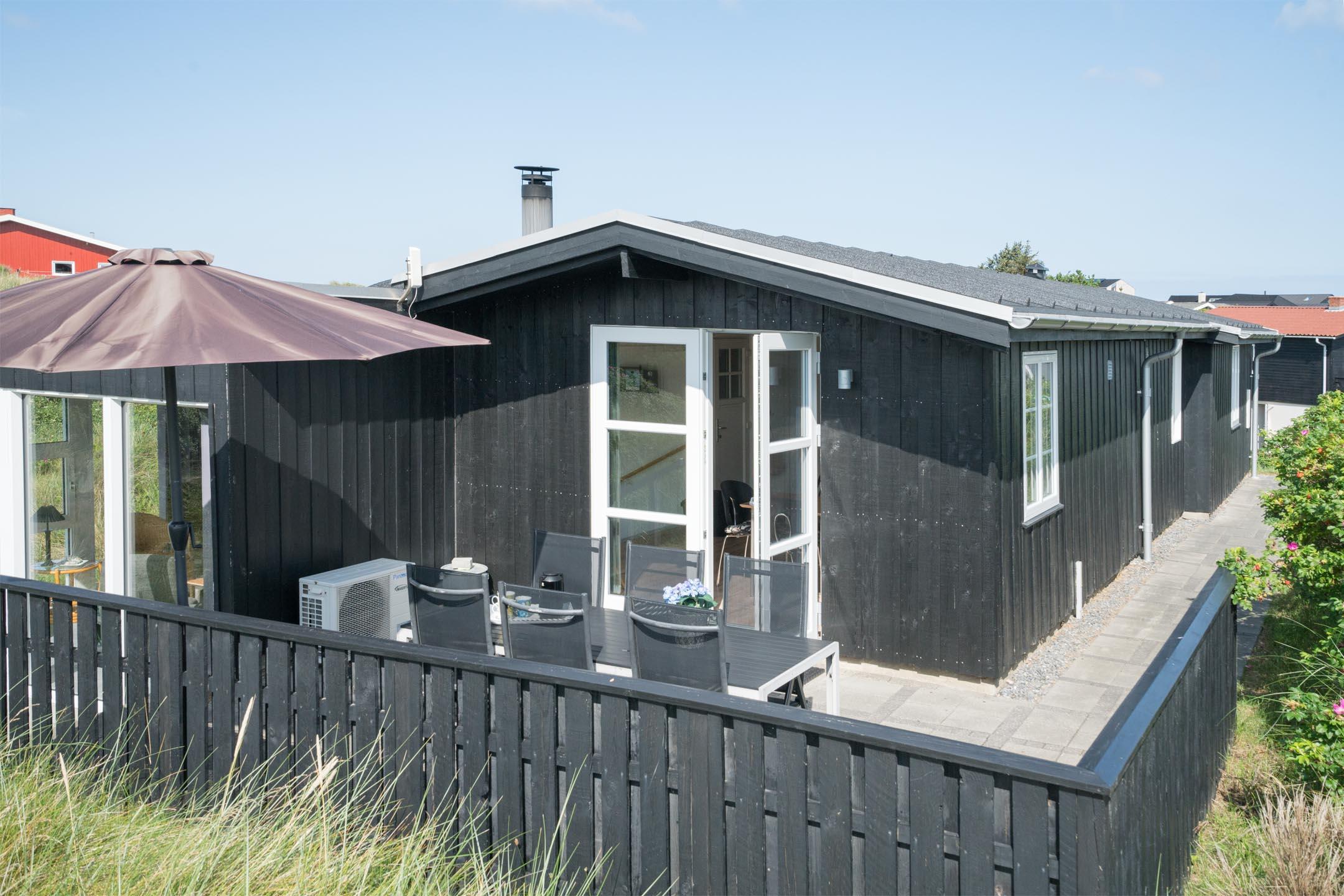 Hyggeligt feriehus i Henne Strand med spa, sauna, flere terrasser og tæt på strand og golf.