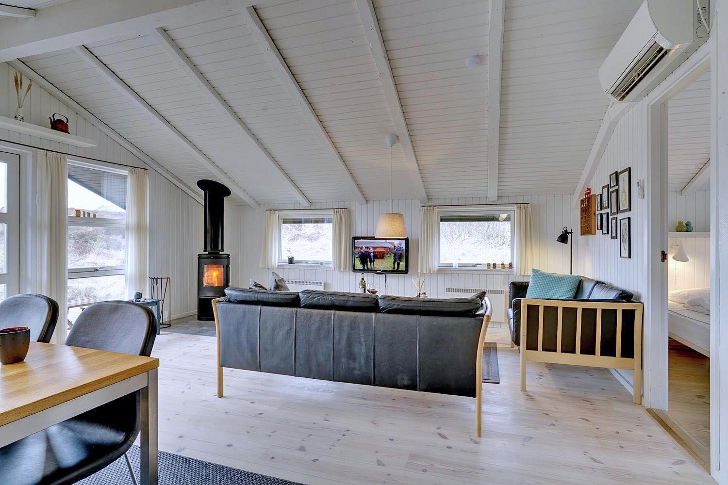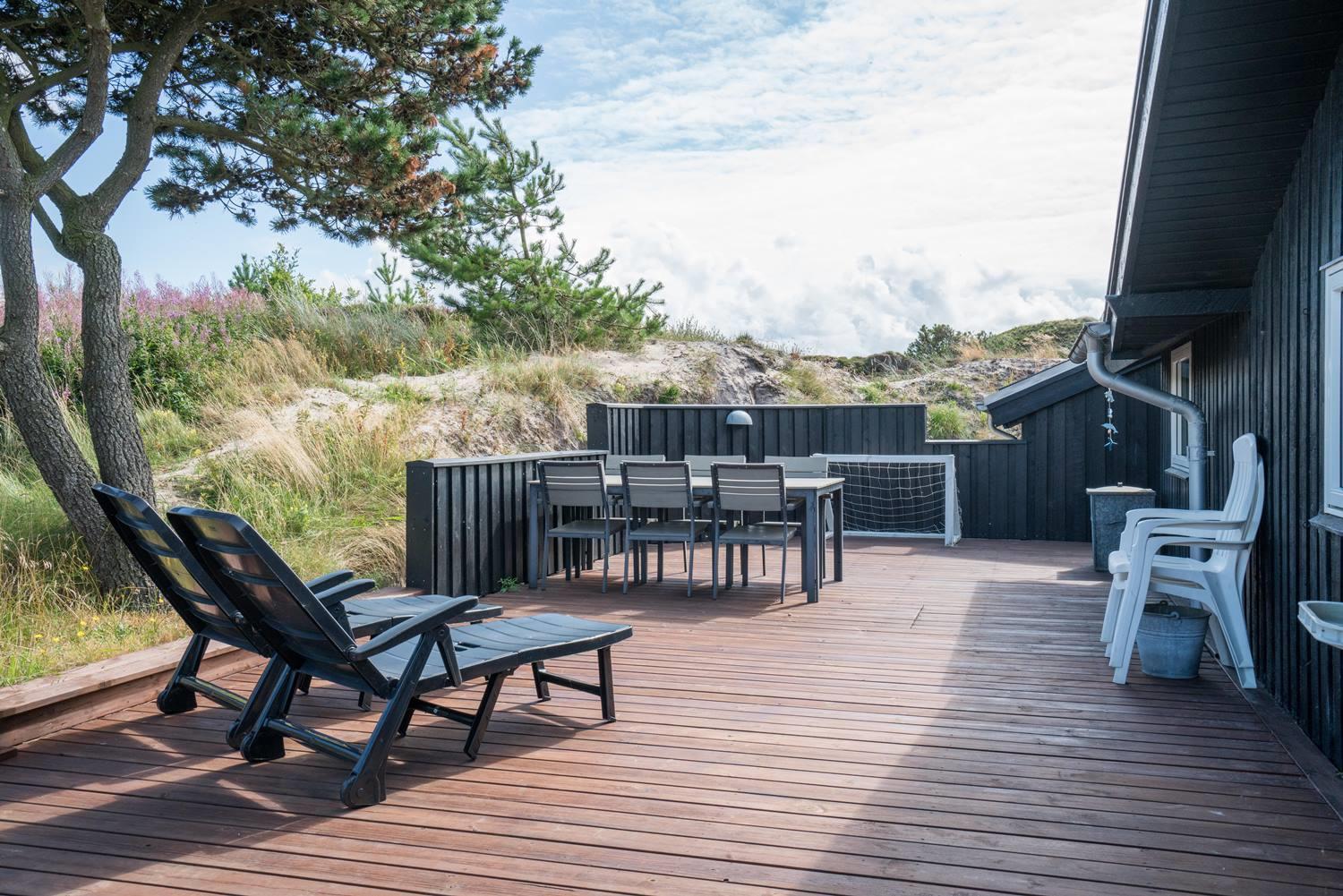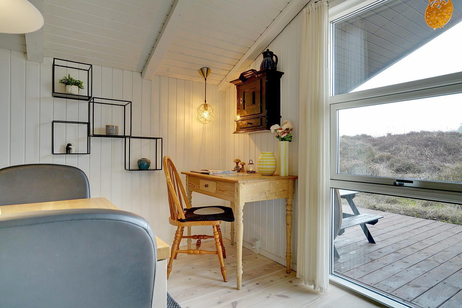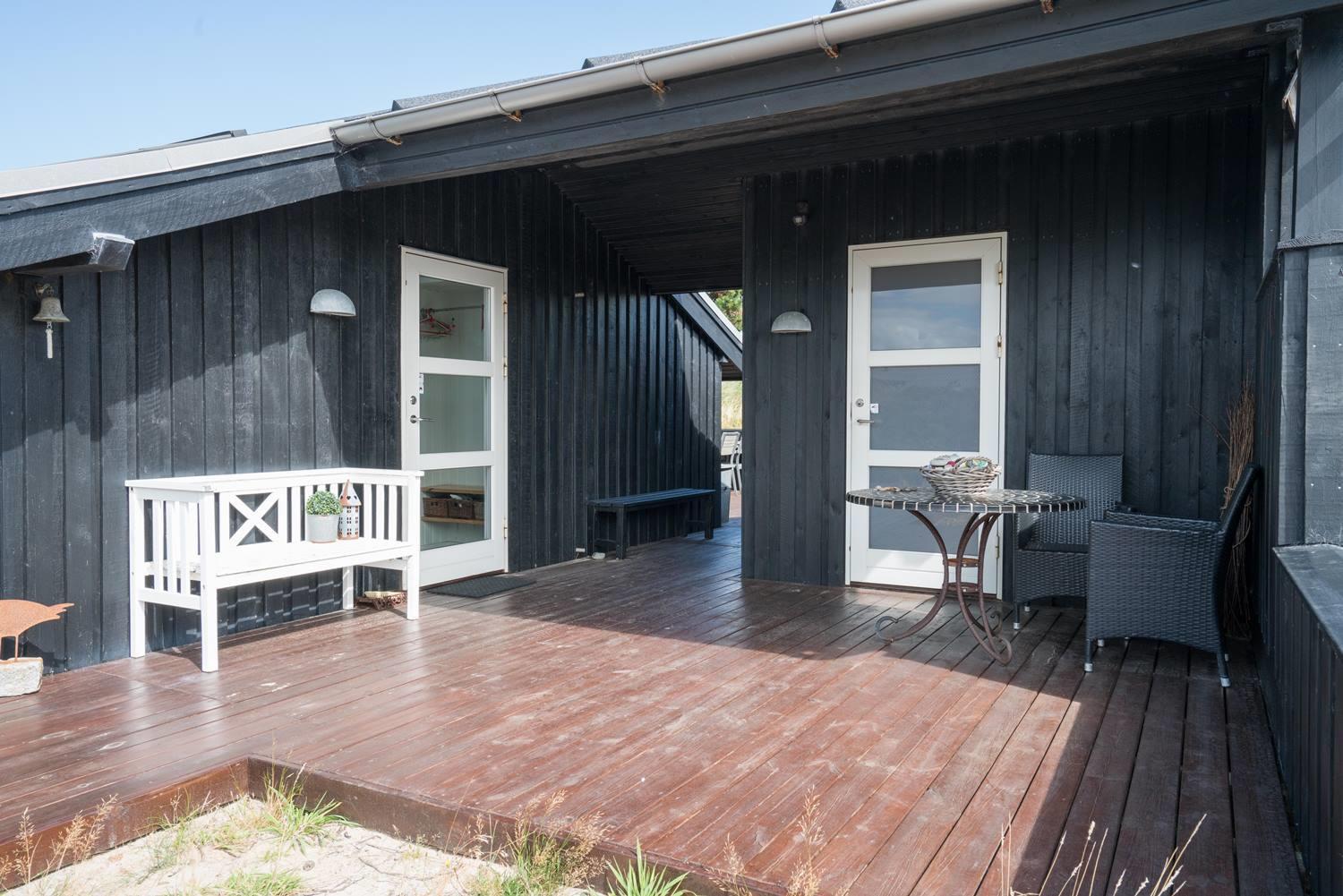Hyggeligt sommerhus i Henne Strand med overdækket terrasse, smagfuld indretning og skønt klitlandskab tæt på Henne Mølle Å.