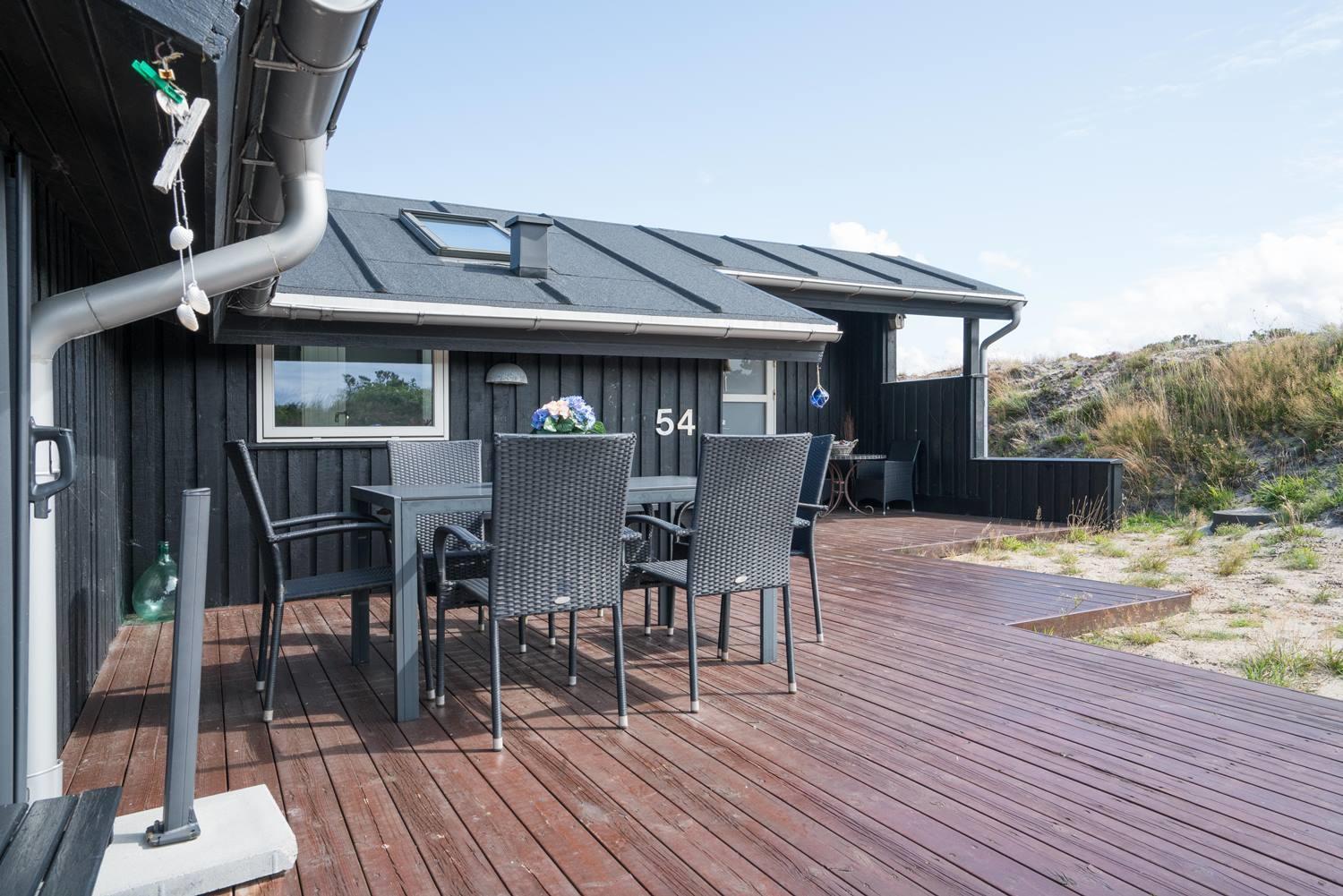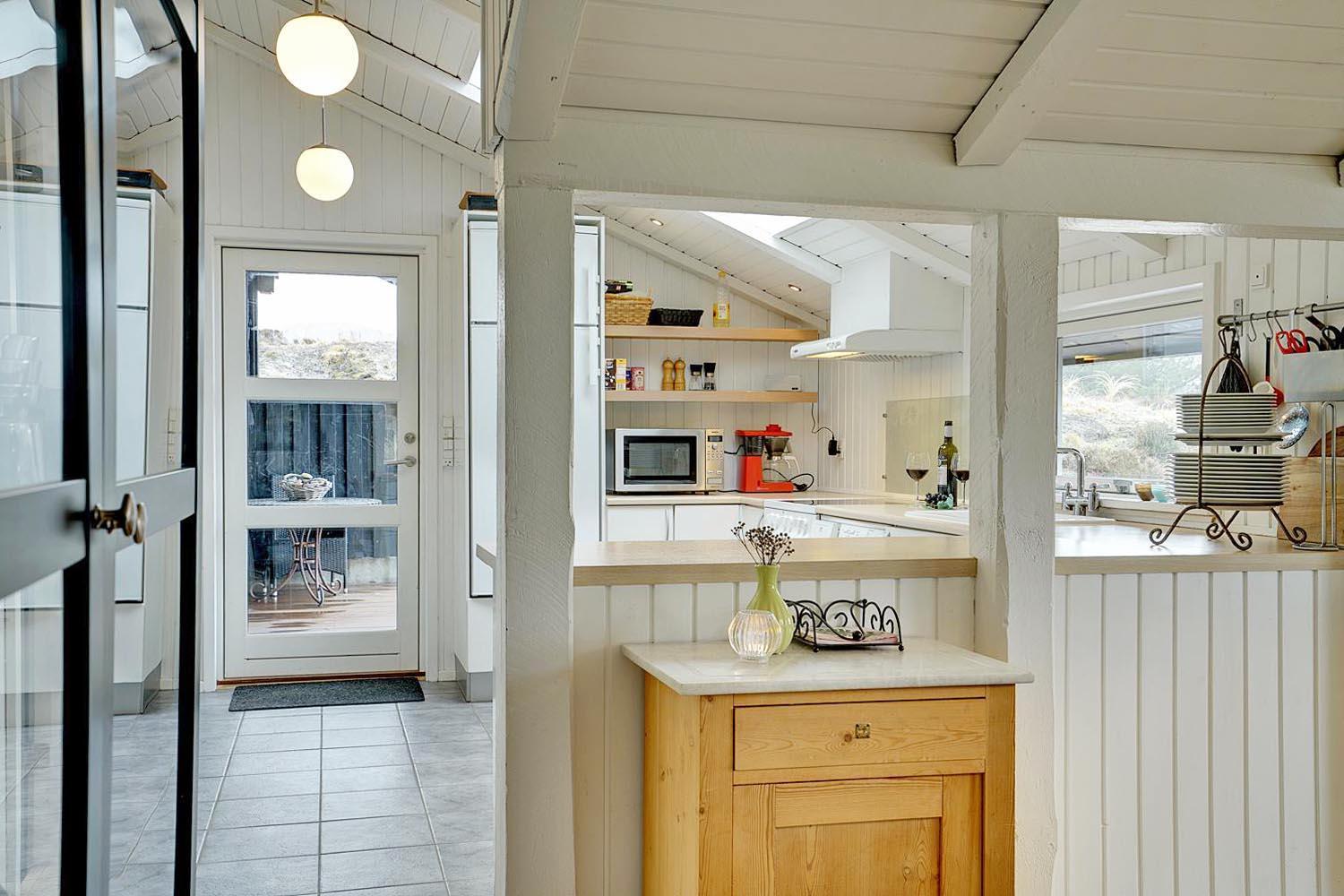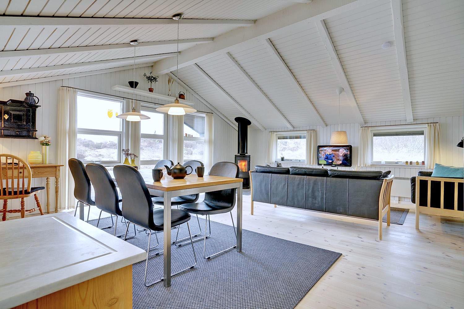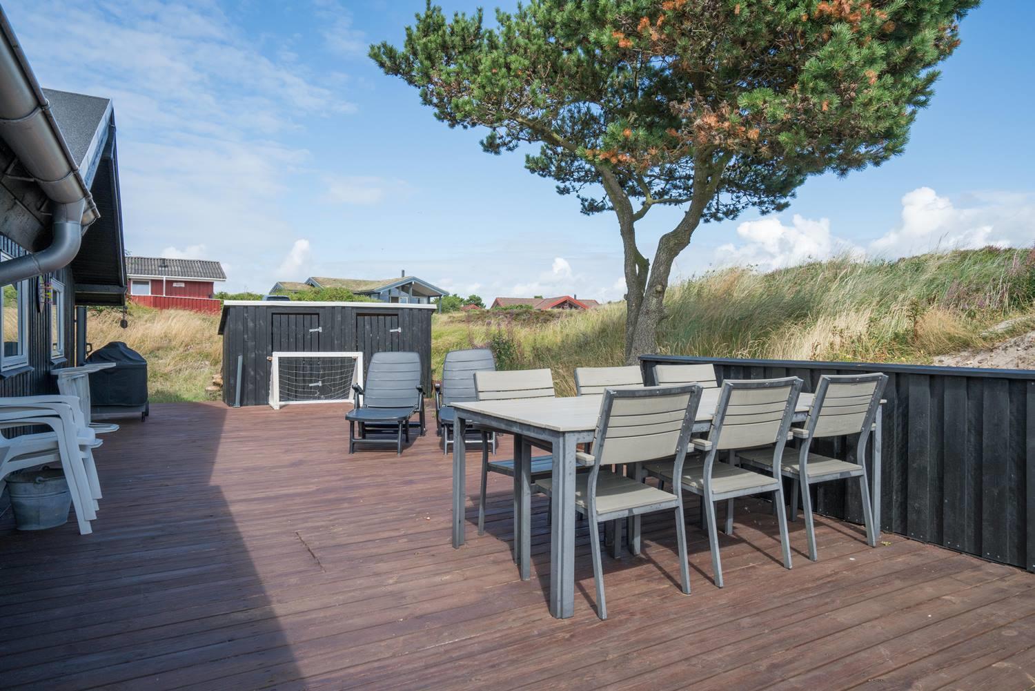 Hyggeligt sommerhus i Henne Strand med overdækket terrasse, smagfuld indretning og skønt klitlandskab tæt på Henne Mølle Å.