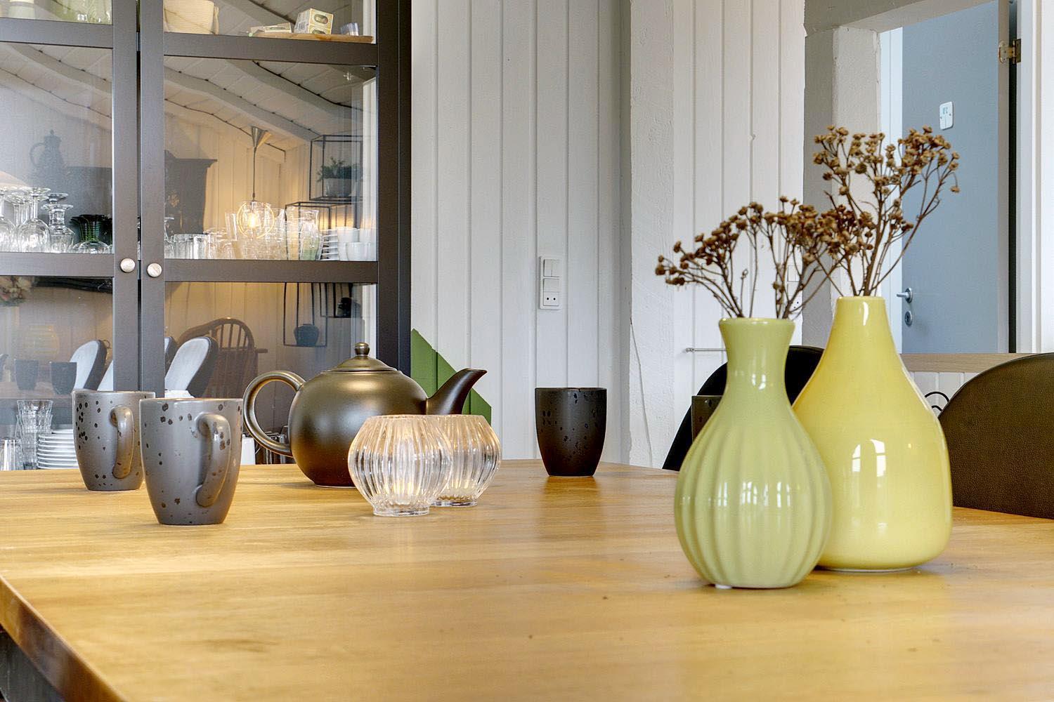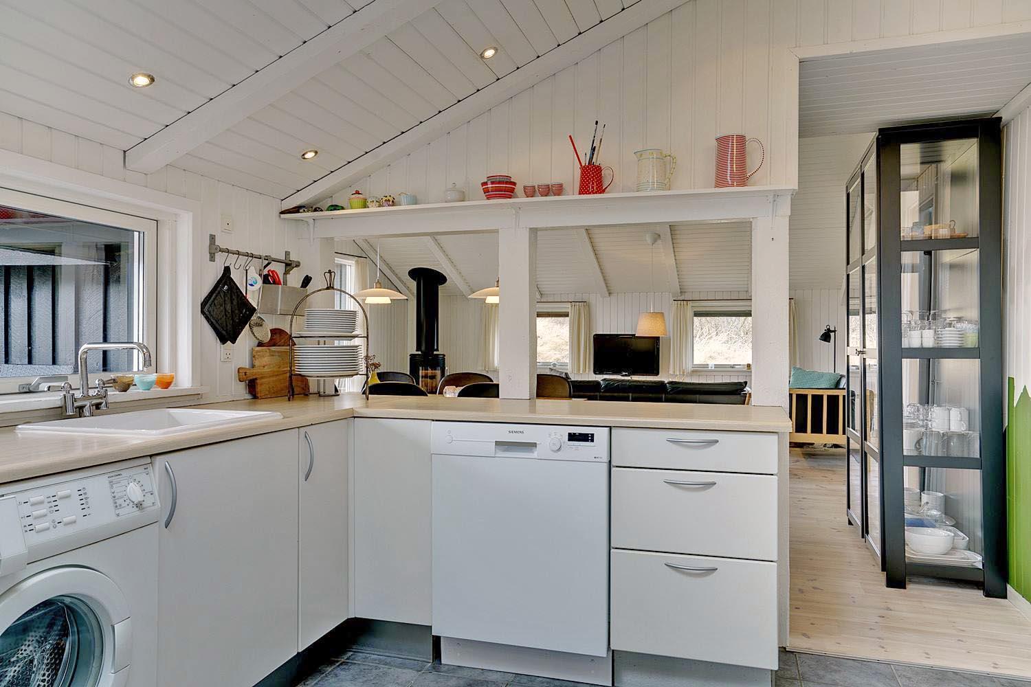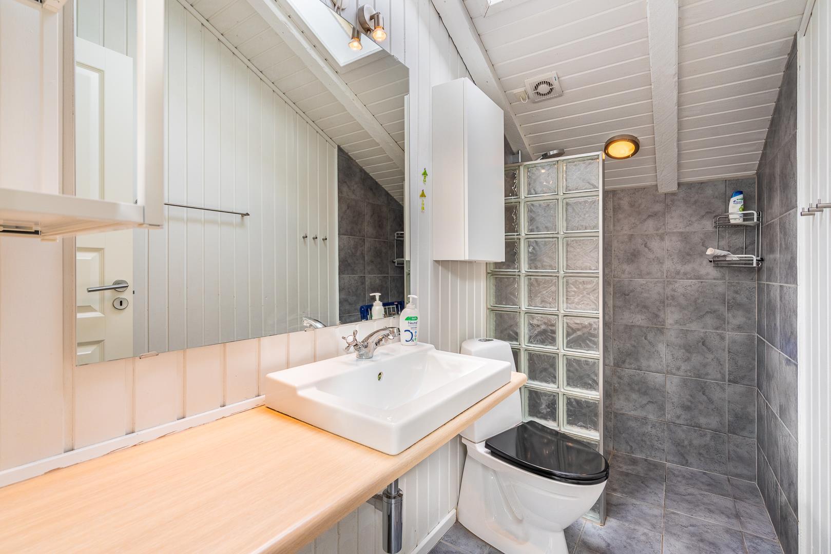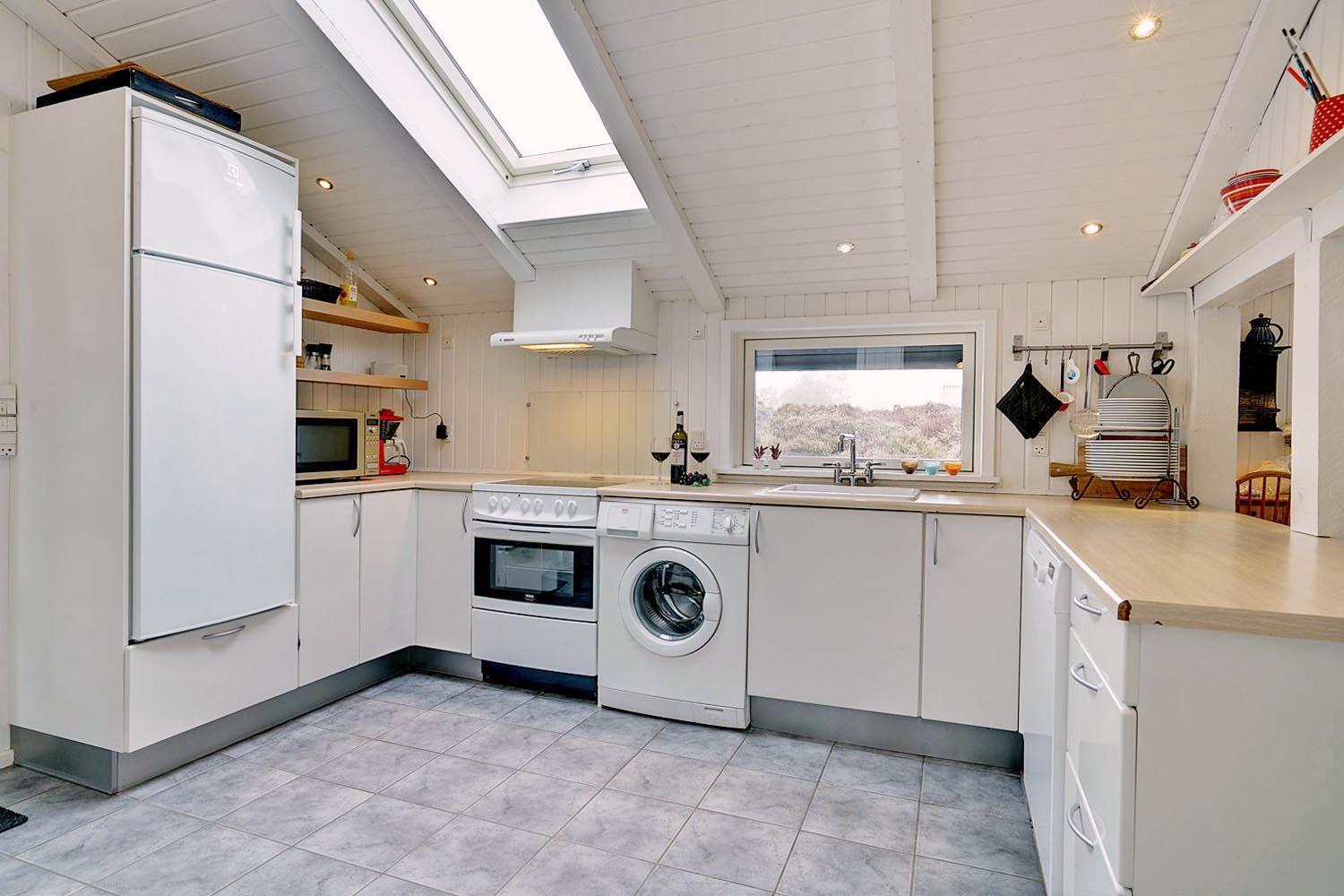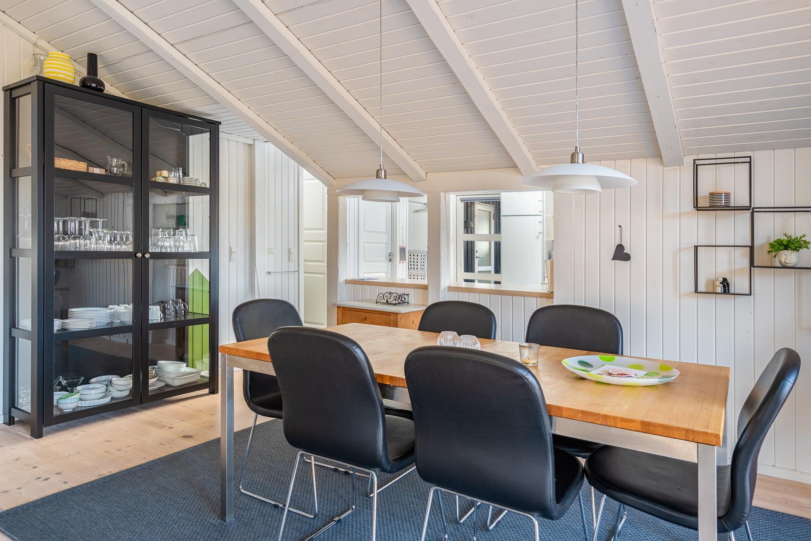 Flot køkken i åbne forbindelse med lyse stue gode møbler, hvorfra udgang til pragtfuld træterrasse som omkranser huset. malet i lyse, venlige farver og er indrettet med gode og flotte møbler. Badeværelse med gulvvarme.