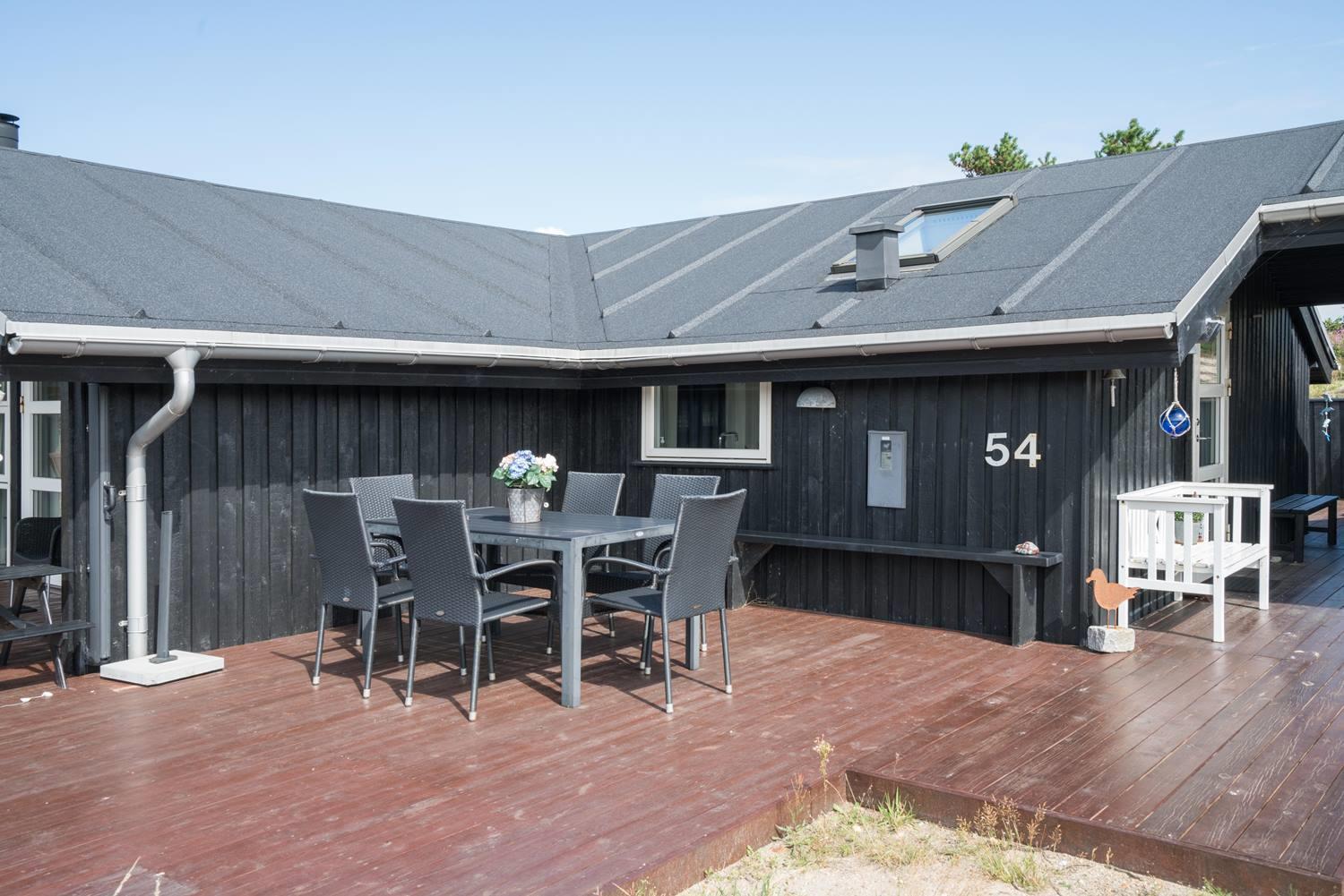 Gejlbjergvej 54 -Henne Strand ligger på en lukket vej i skønt klitlandskab tæt på Henne Mølle Å. Hyggelig indrettet med den helt rigtige "sommerhus stil" Meget smagfuldt indrettet feriehus med overdækket terrasse beliggende på en pragtfuld, ugeneret klitgrund.