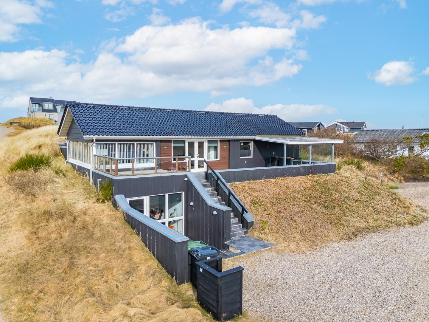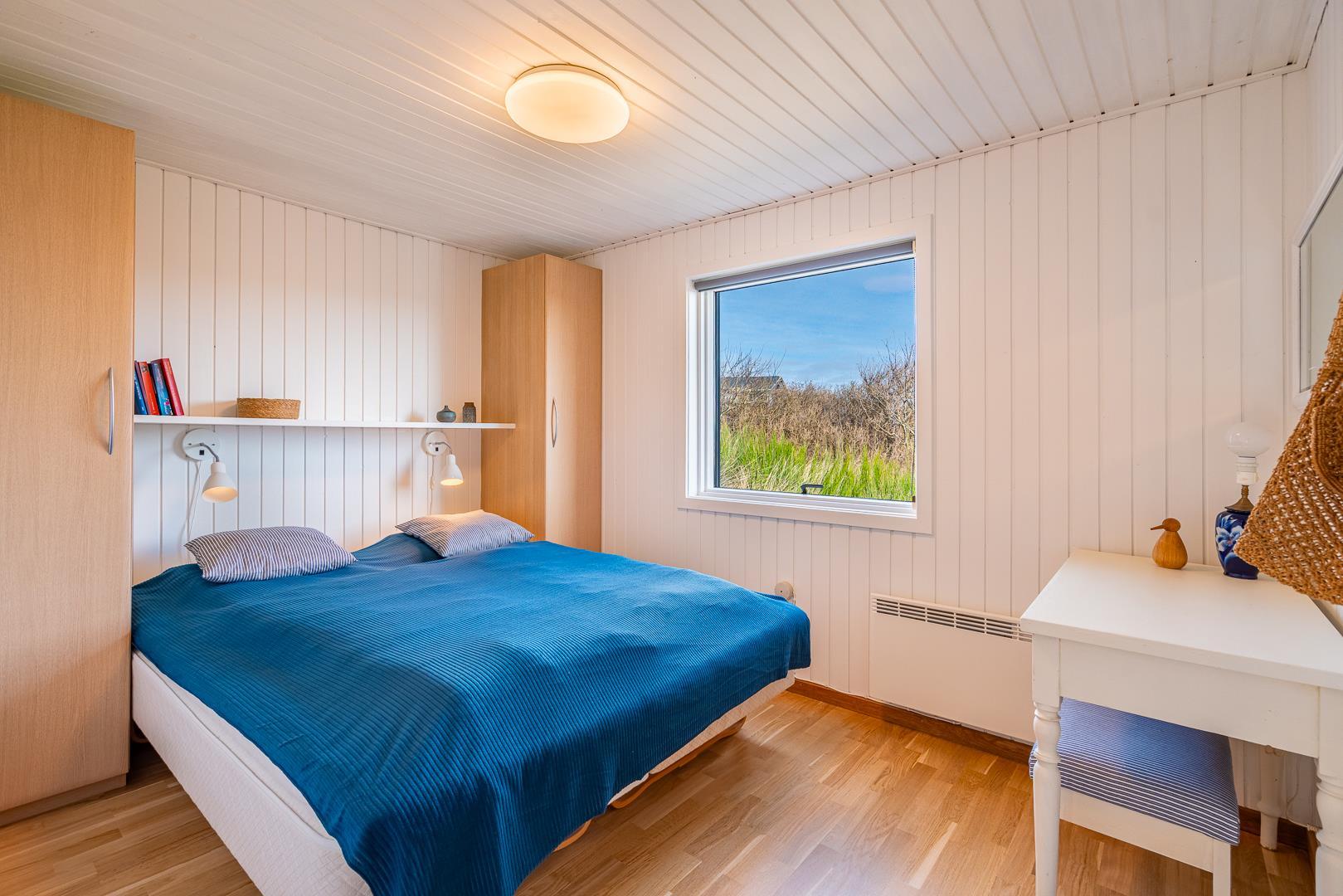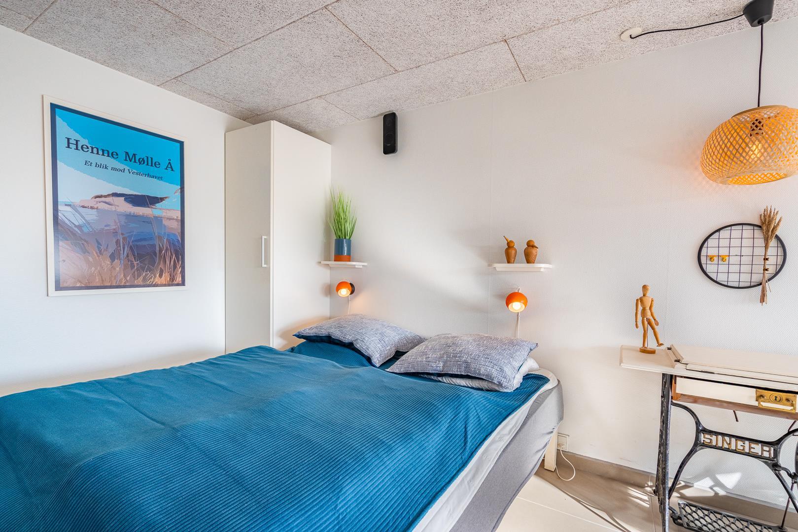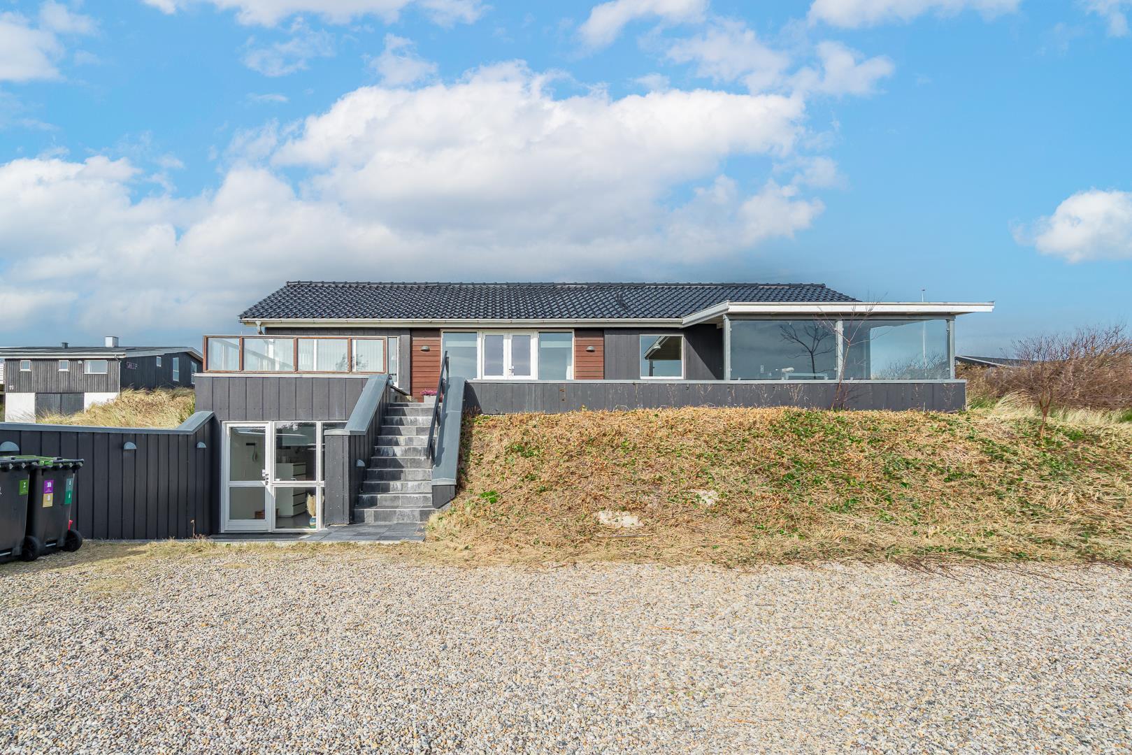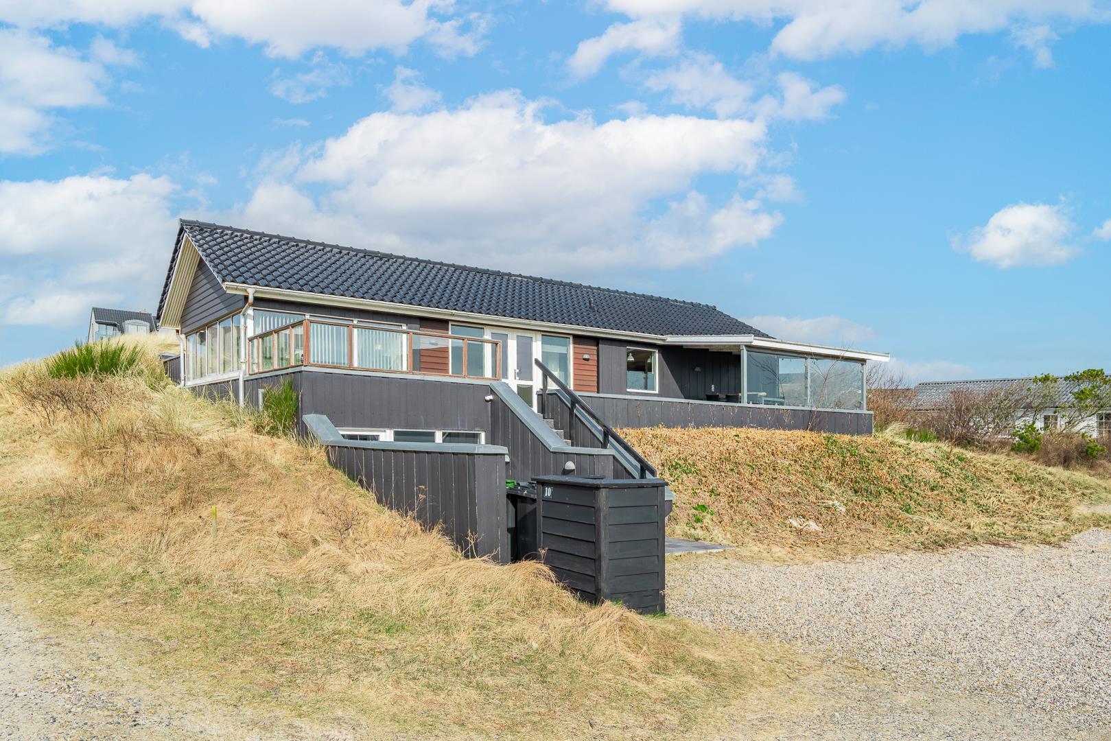 Dejligt og hyggeligt feriehus beliggende tæt på Vesterhavet og Henne Strand´s centrum. Særskilt 'lejlighed' m. dobbeltseng og badeværelse i kælderen, så huset råder over 110 m2 med 2 dejlige badeværelser. Der er ikke indgang til kælderen inde fra huset. Fra huset og dens mange terrasser kan man høre Vesterhavets brussen og nyde solen. Den ene terrasse mod vest er helt aflukket og omkranset af klit og buske. Terrassen mod øst er delvist overdækket og kan bruges i al slags vejr. Et 'super-hus hvor rammerne er til stede for en rigtig god ferie - hele året. Kun 2 P-pladser ved huset og gårdspladsen tilhører nabohuset og derfor er ophold her ikke tilladt.