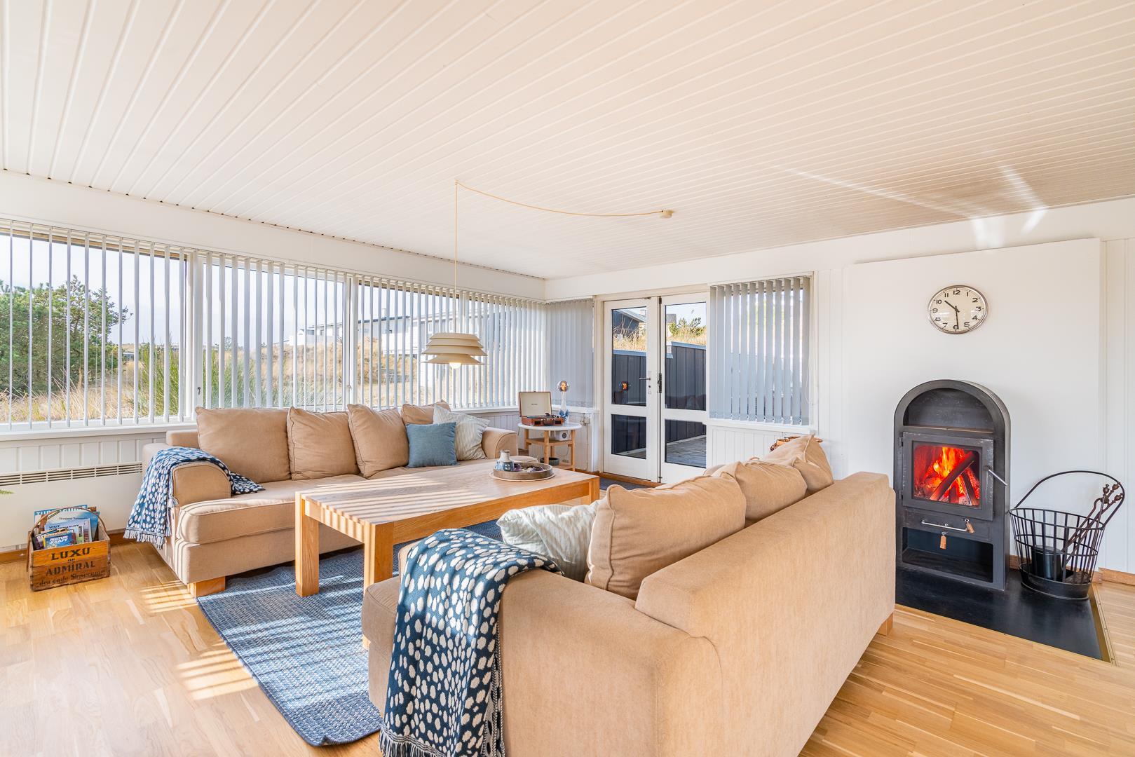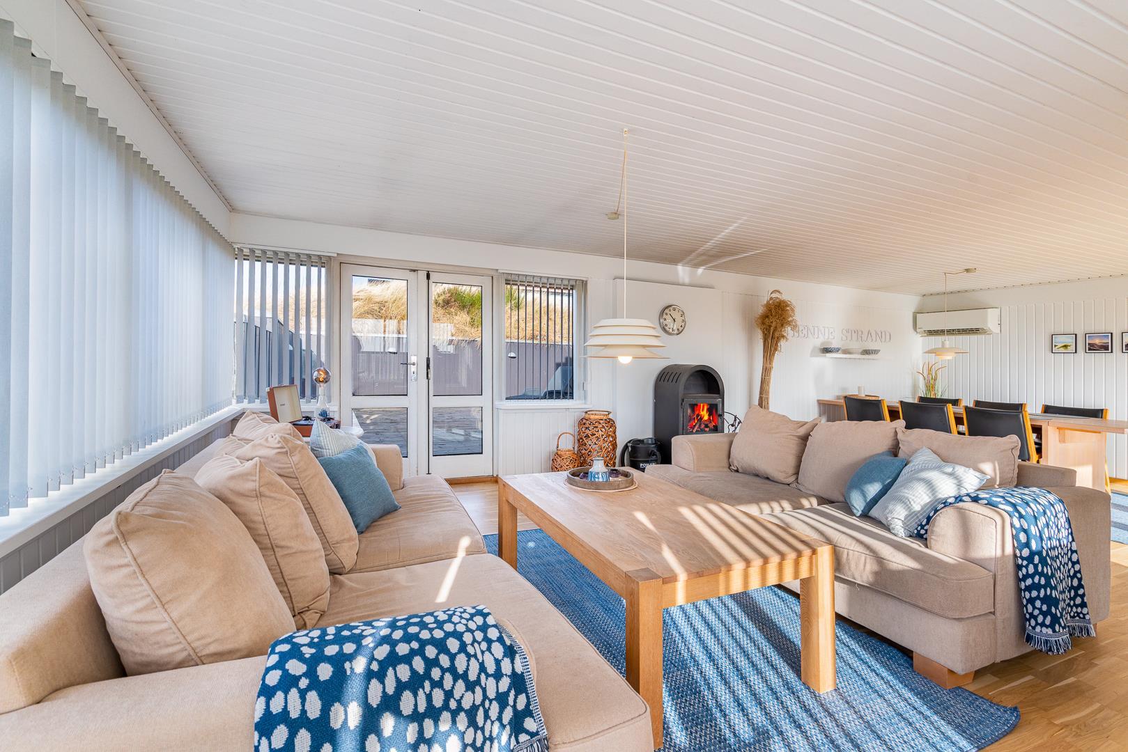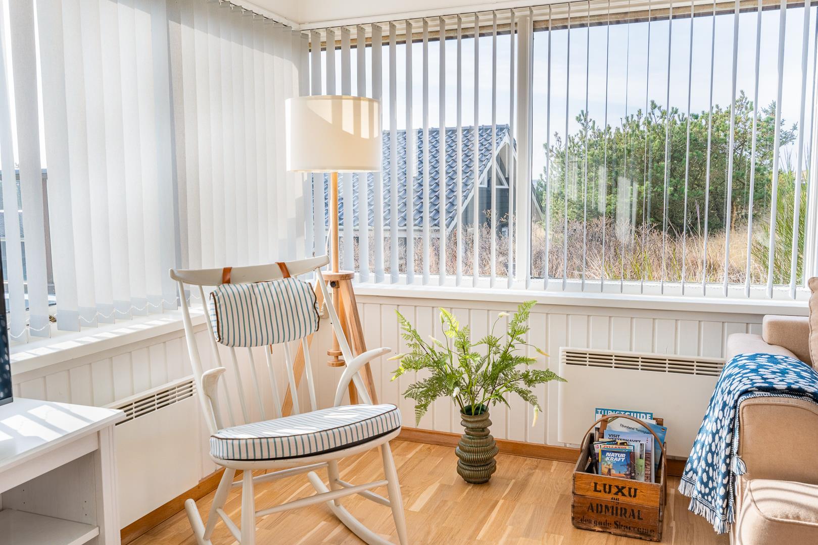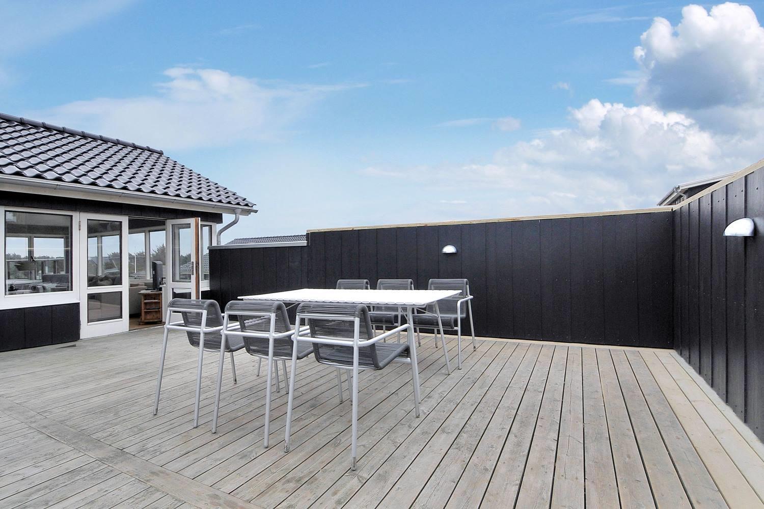 Hyggeligt feriehus med 110 m², tæt på Vesterhavet og Henne Strands centrum, med flere terrasser og 2 badeværelser.