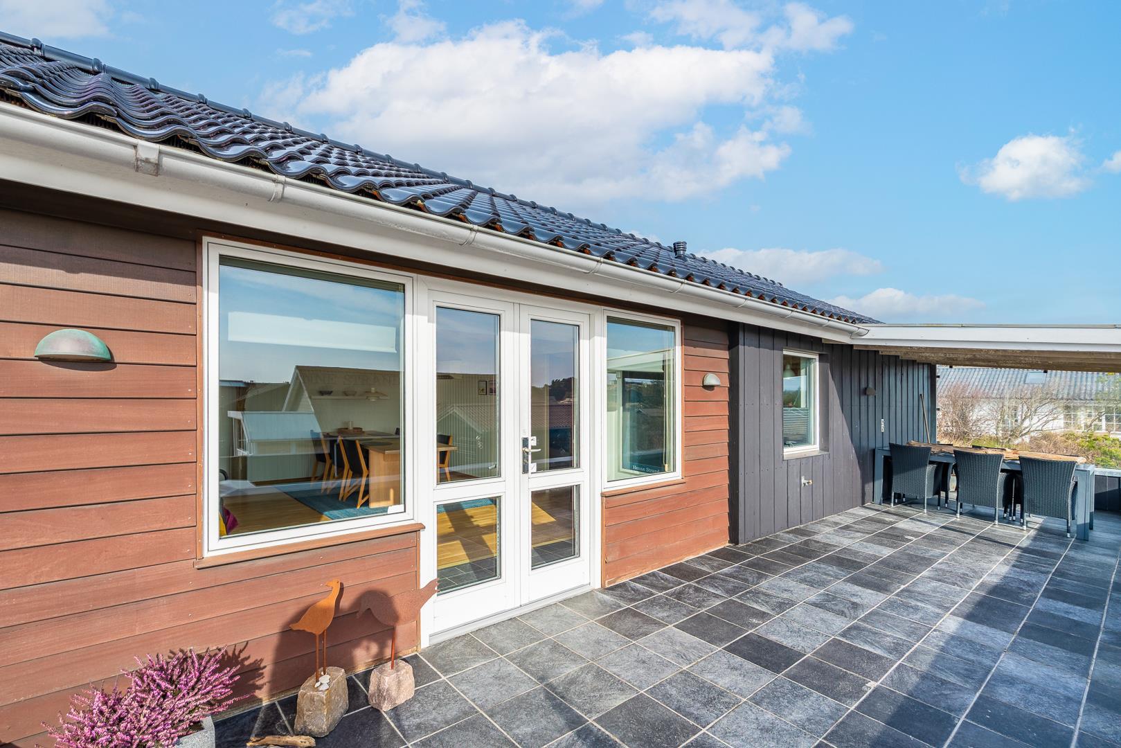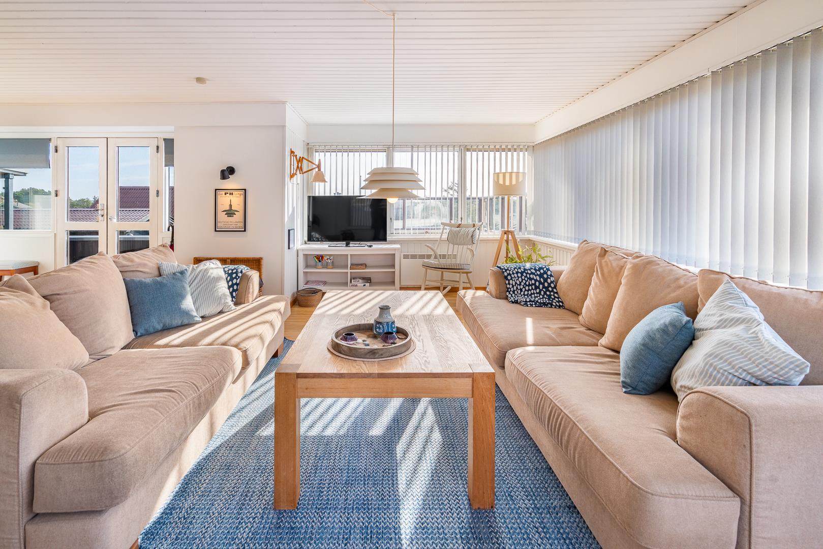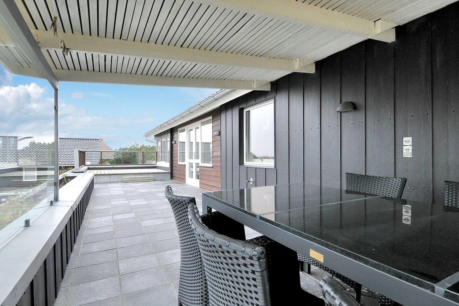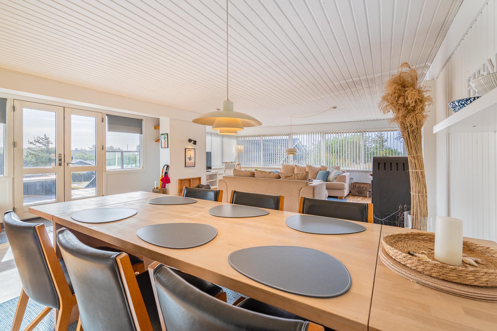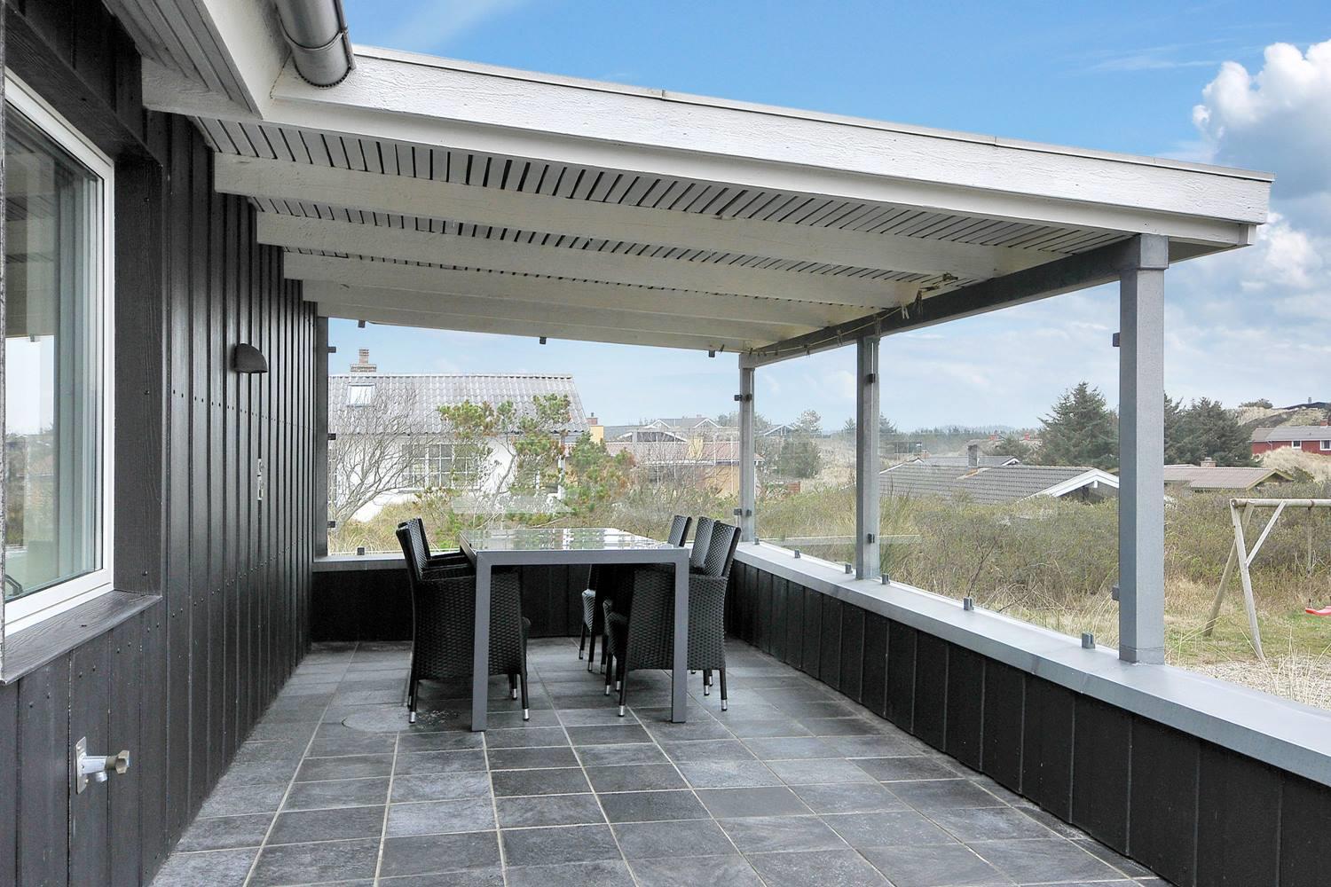 Hyggeligt feriehus med 110 m², tæt på Vesterhavet og Henne Strands centrum, med flere terrasser og 2 badeværelser.