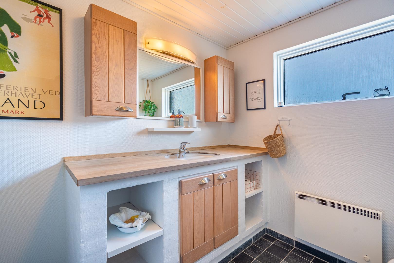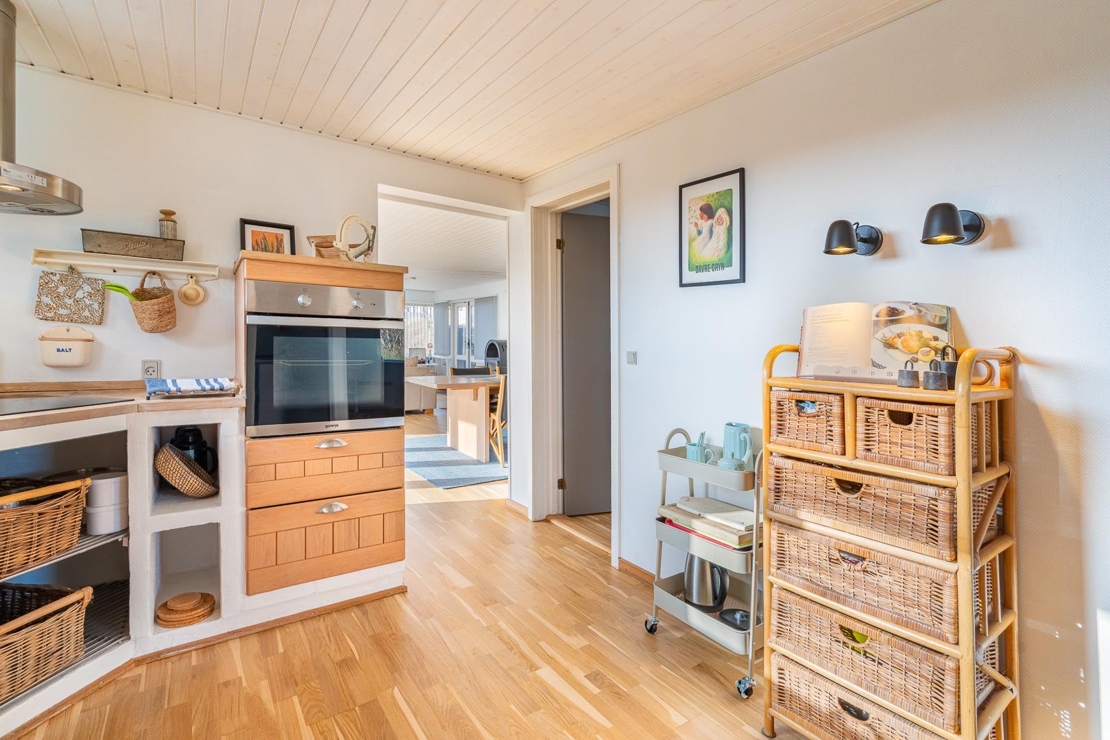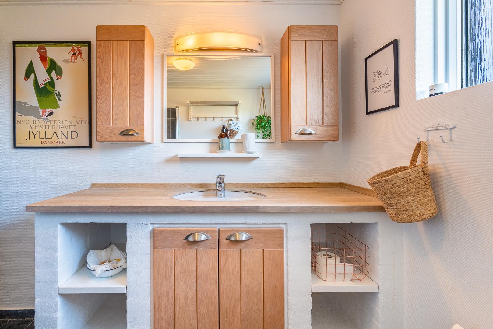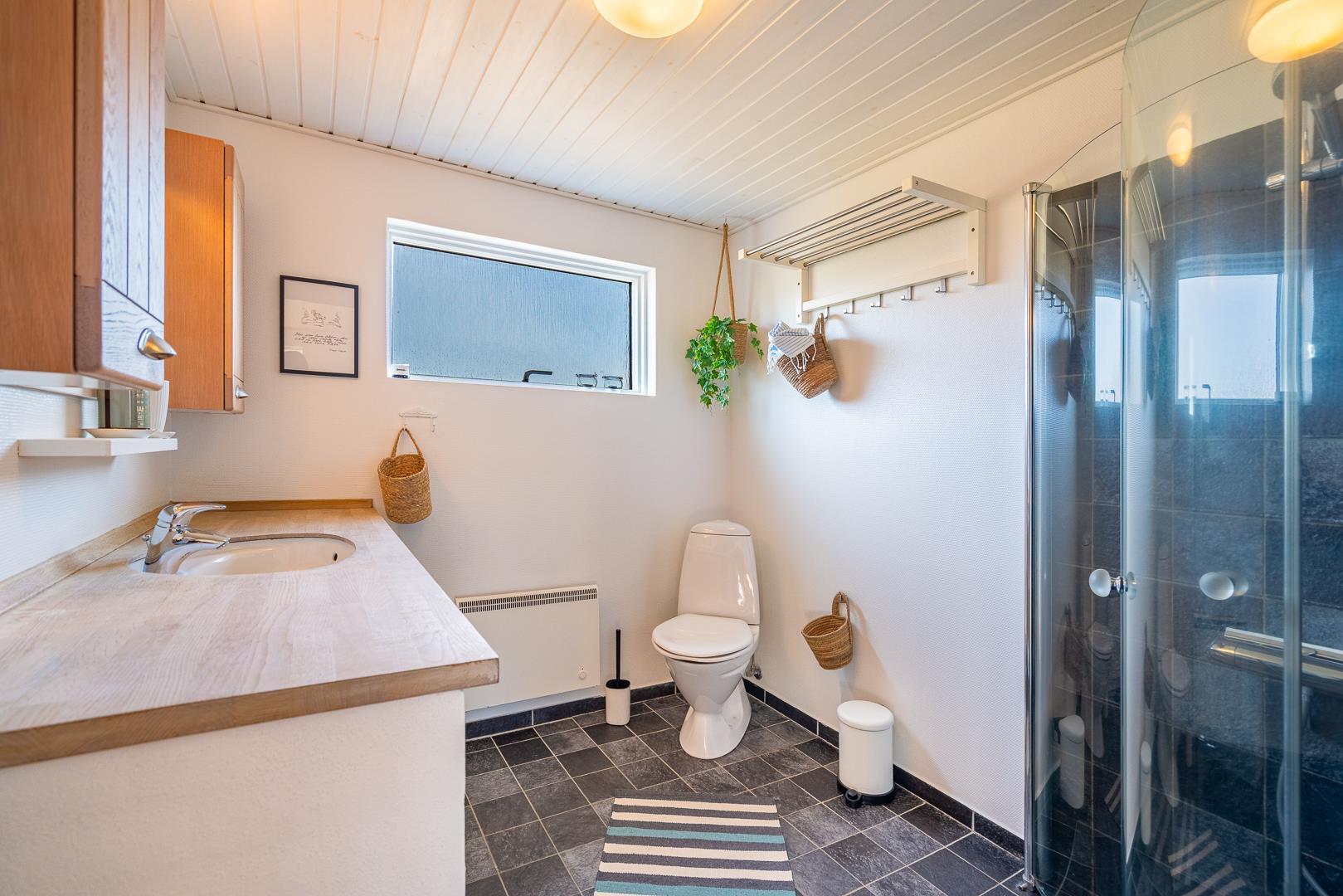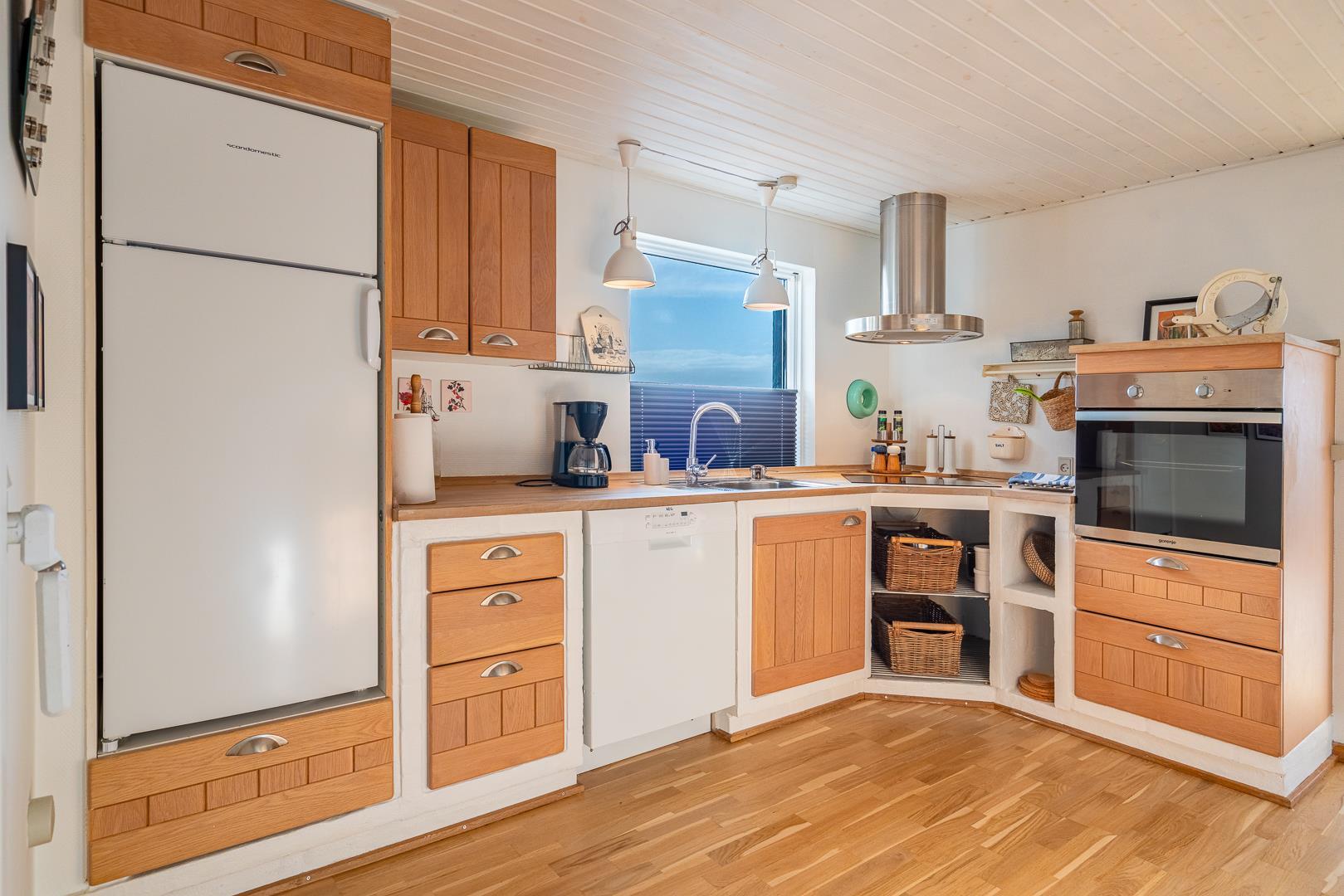 Hyggeligt feriehus med 110 m², tæt på Vesterhavet og Henne Strands centrum, med flere terrasser og 2 badeværelser.