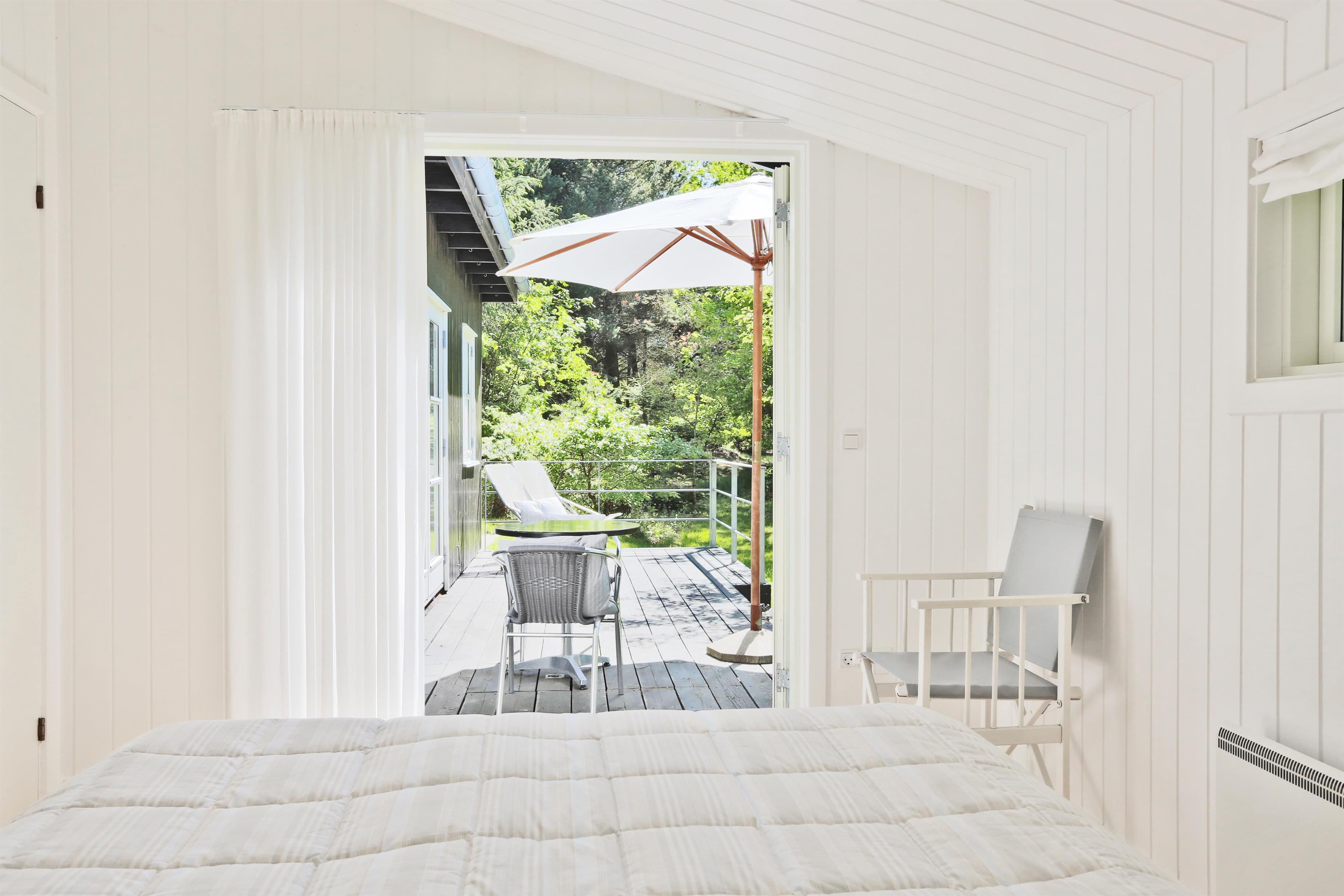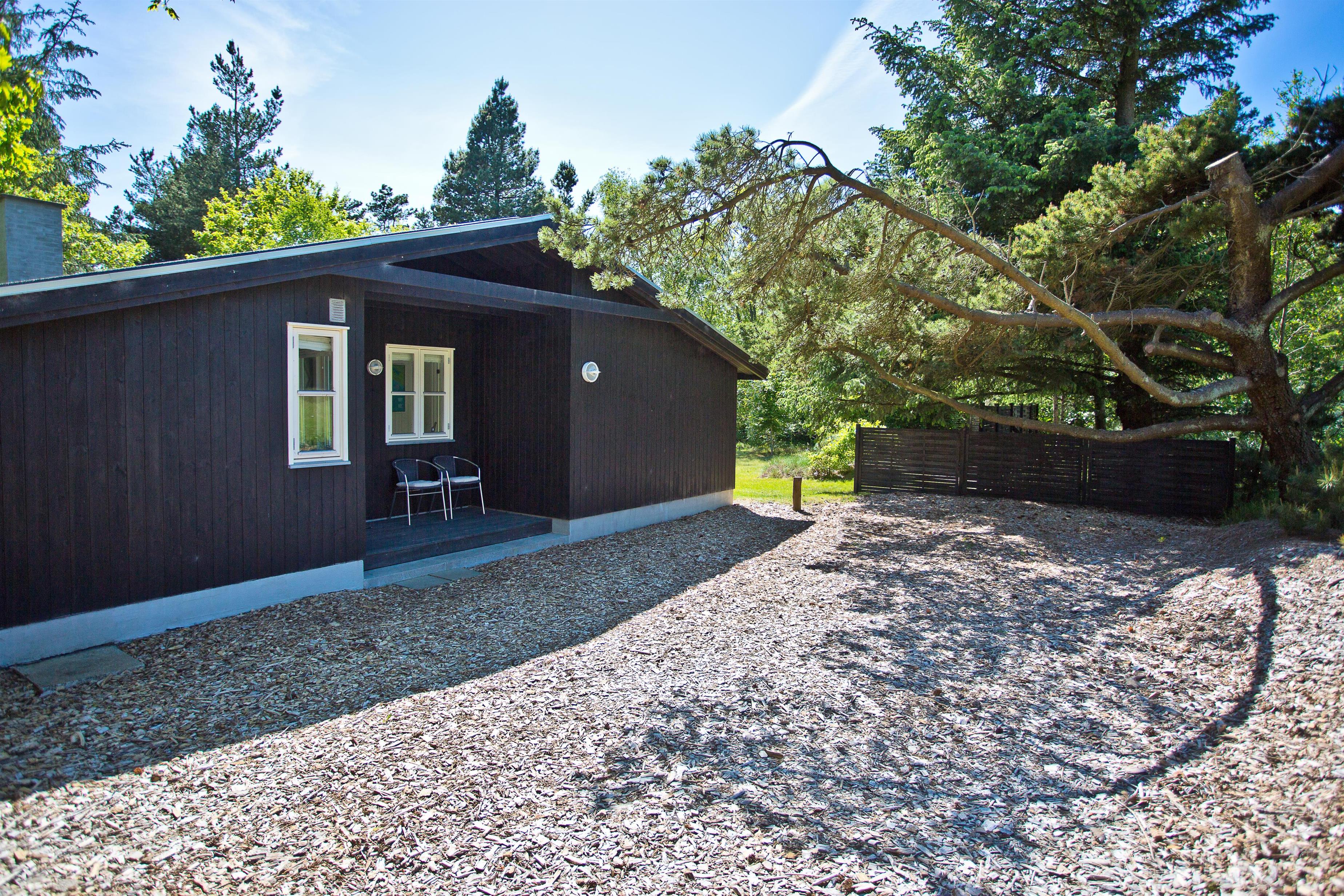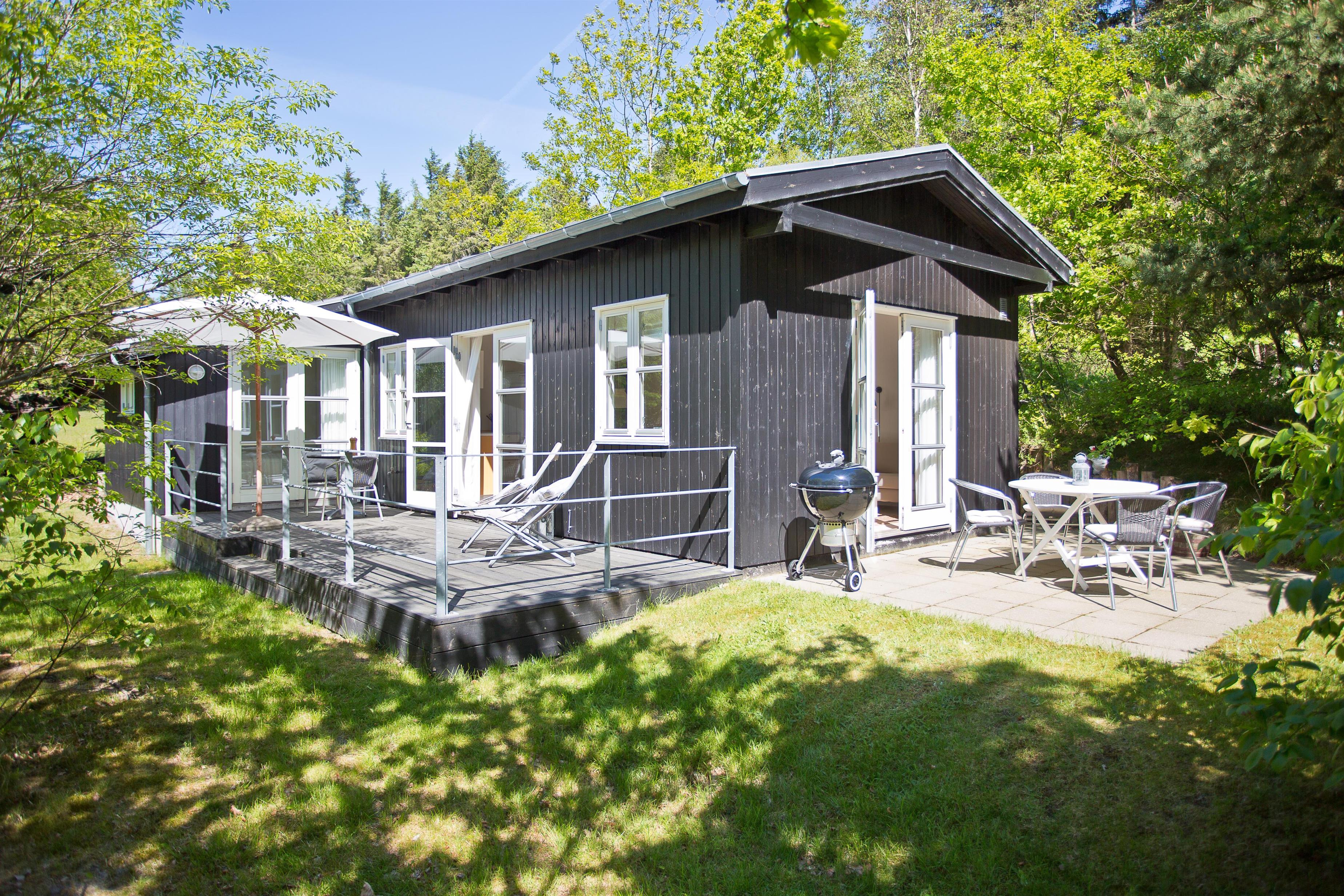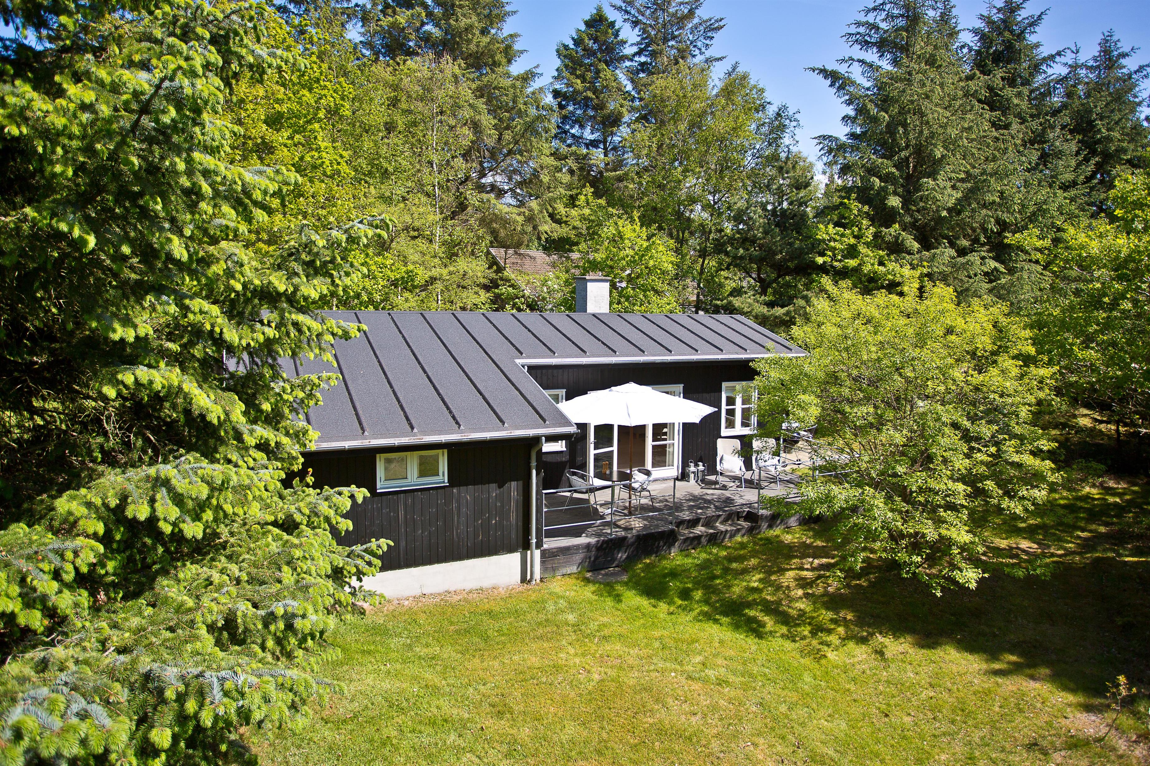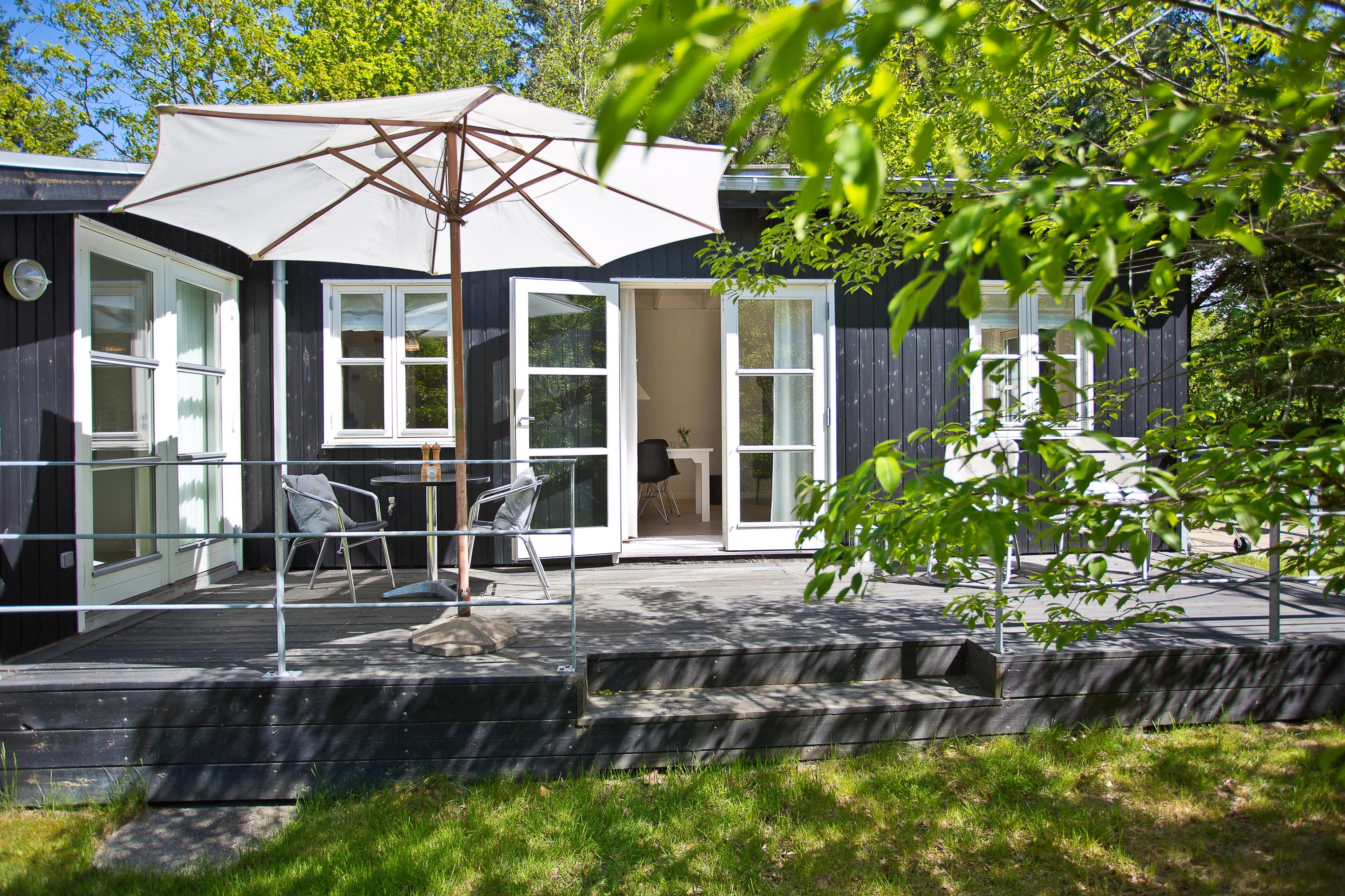 Huset ligger på naturgrund hvor du ugenert kan nyde de dejlige omgivelser. Der er terrasse rundt om huset med havemøbler og grill. Ved indgangen er der også en lille overdækket terrasse med med havestole.