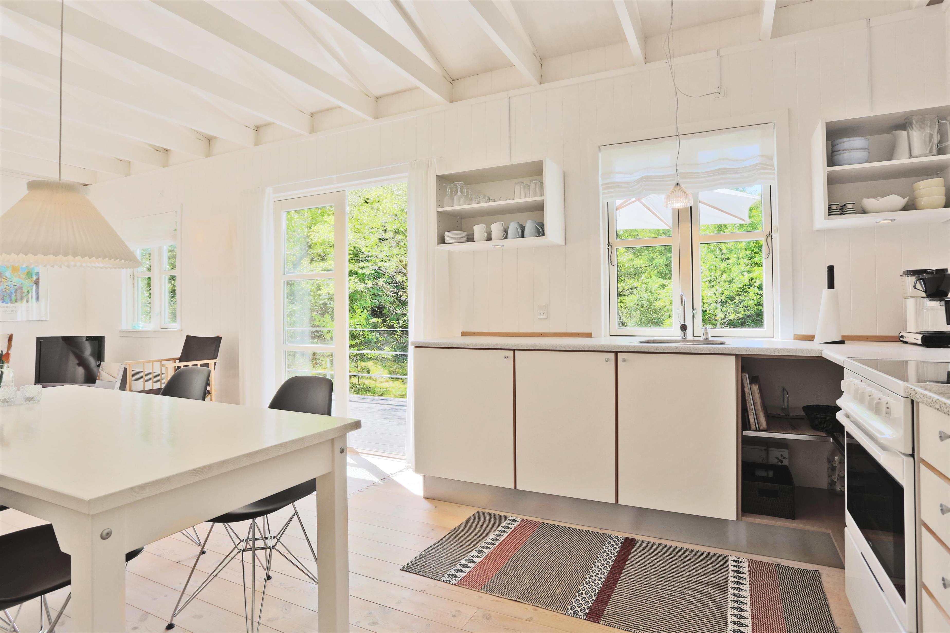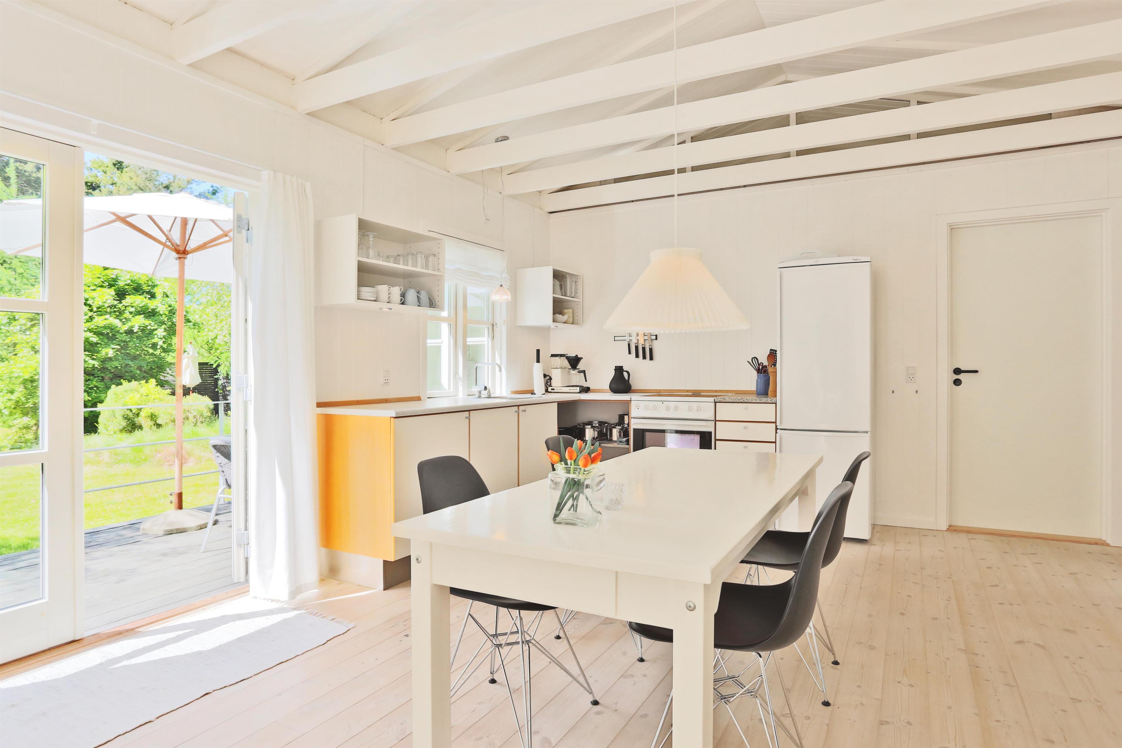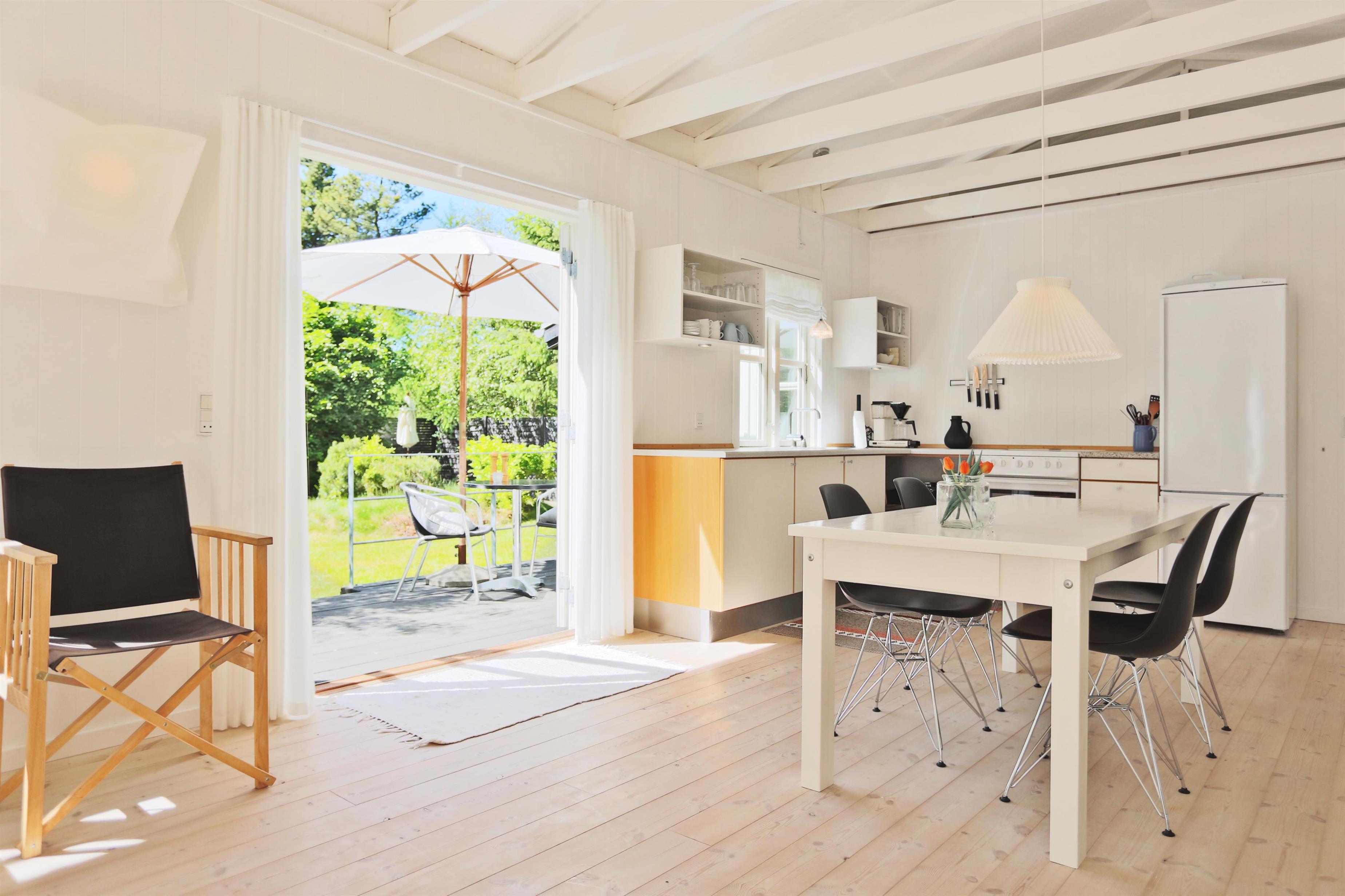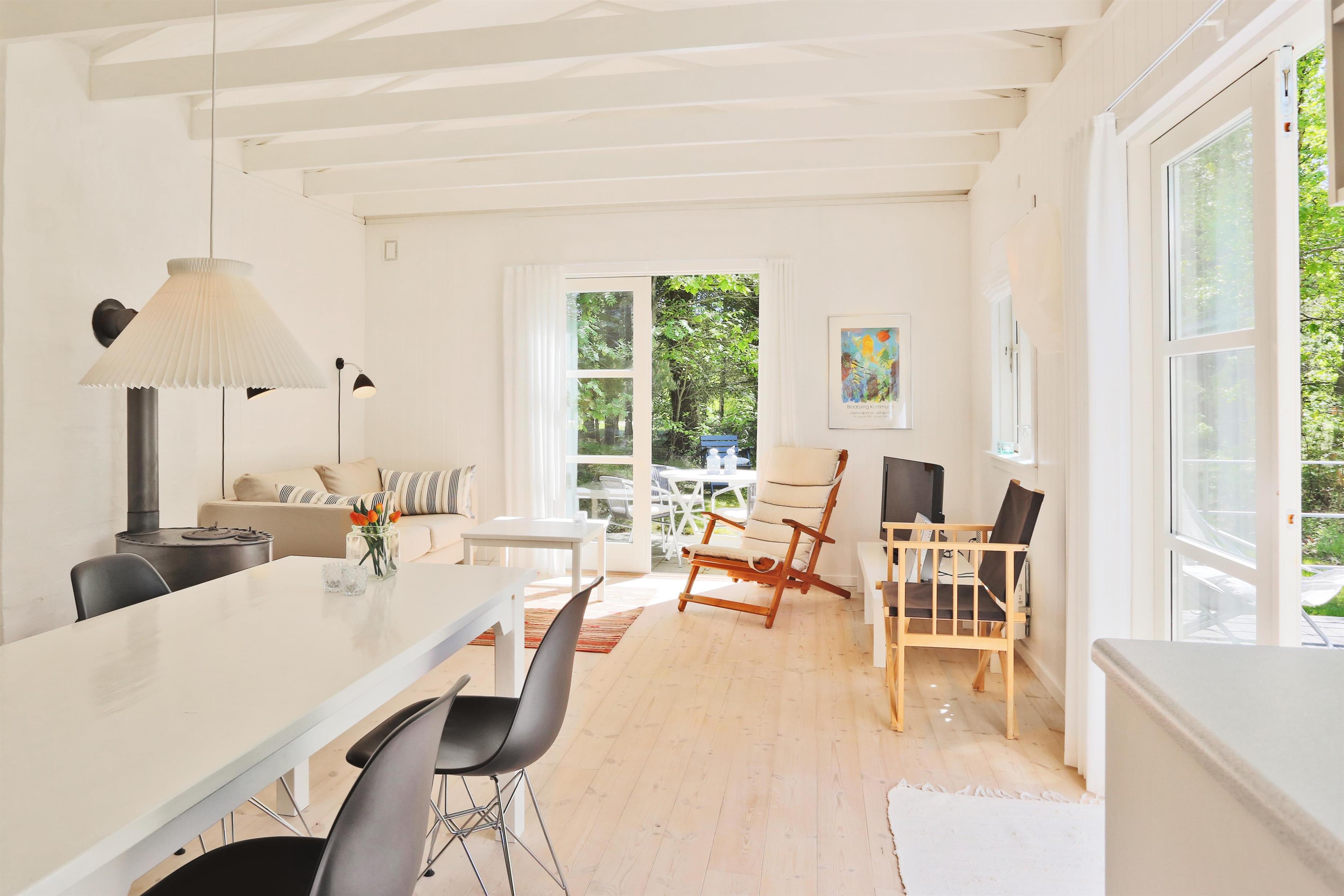 Et super dejligt træsommerhus med smagfuld indretning, renoveret i 2006. Flot badeværelse, gode og hyggelige Soverum, et bryggers hvorfra du går ind husets køkken og stue. Stuen, husets største rum er med brændeovn og er lyst og venligt.