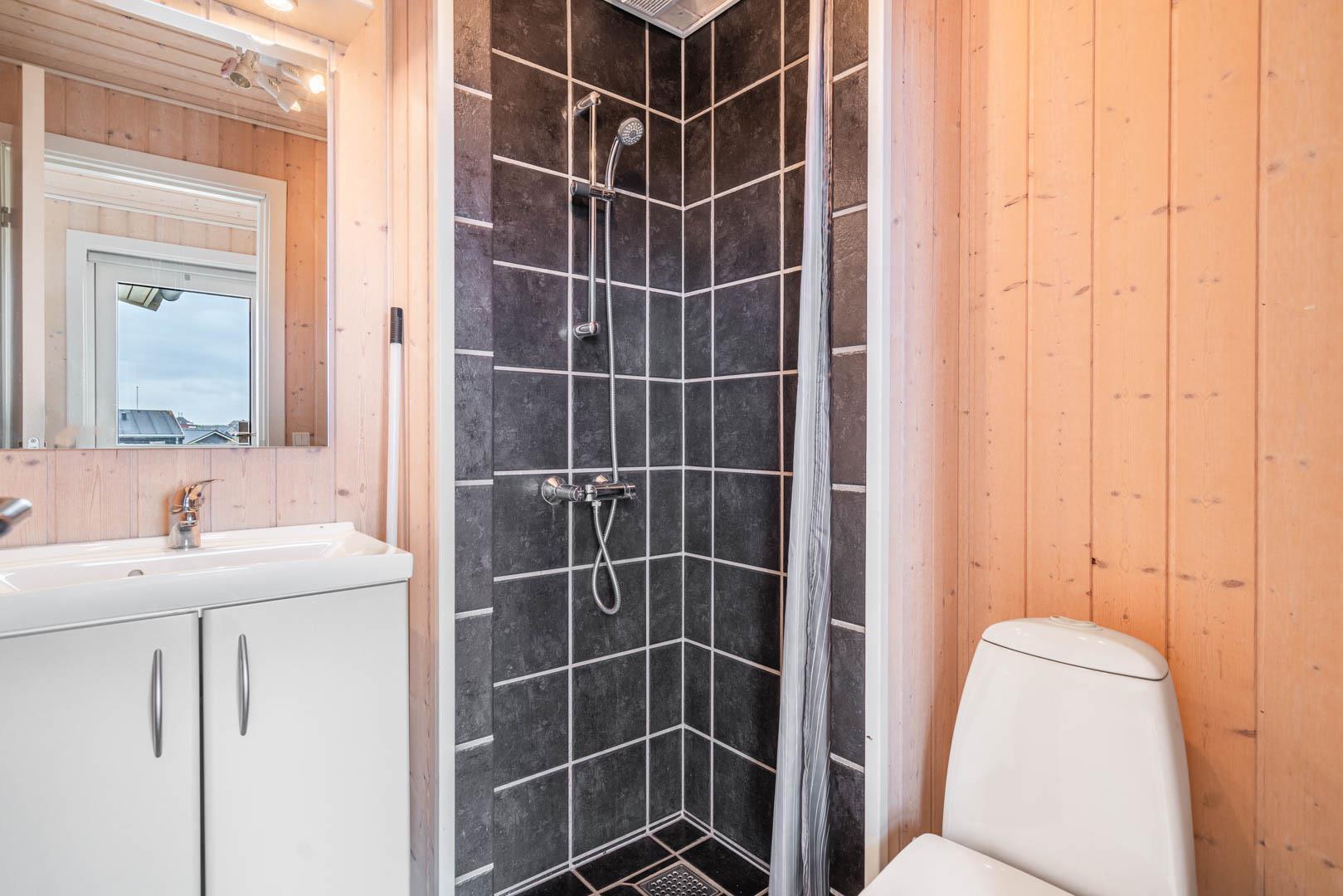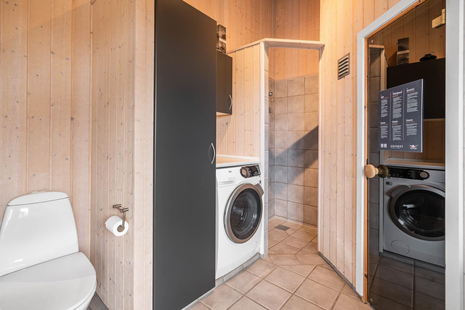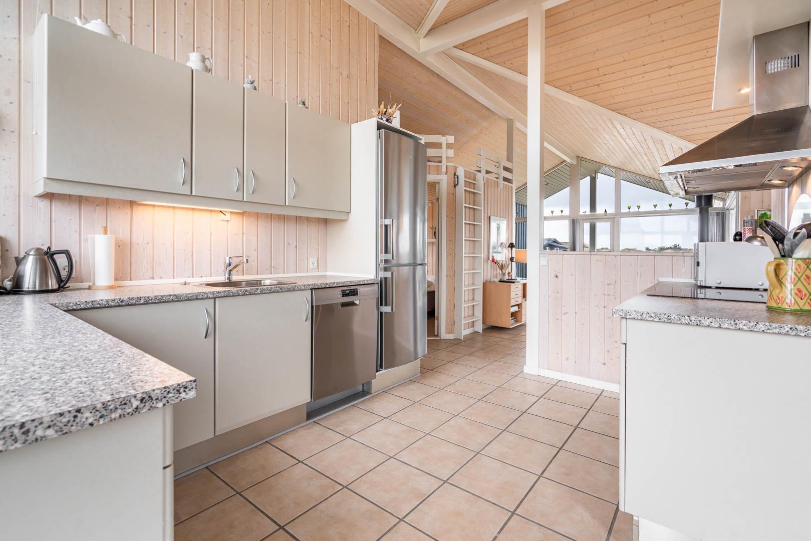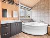 Det åbne køkken er flot og funktionelt, og huset rummer to gode badeværelser – det ene udstyret med både spa og sauna for ekstra komfort og afslapning.