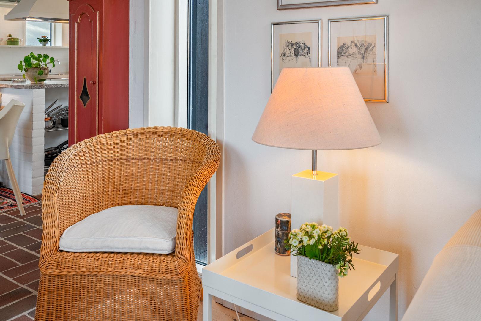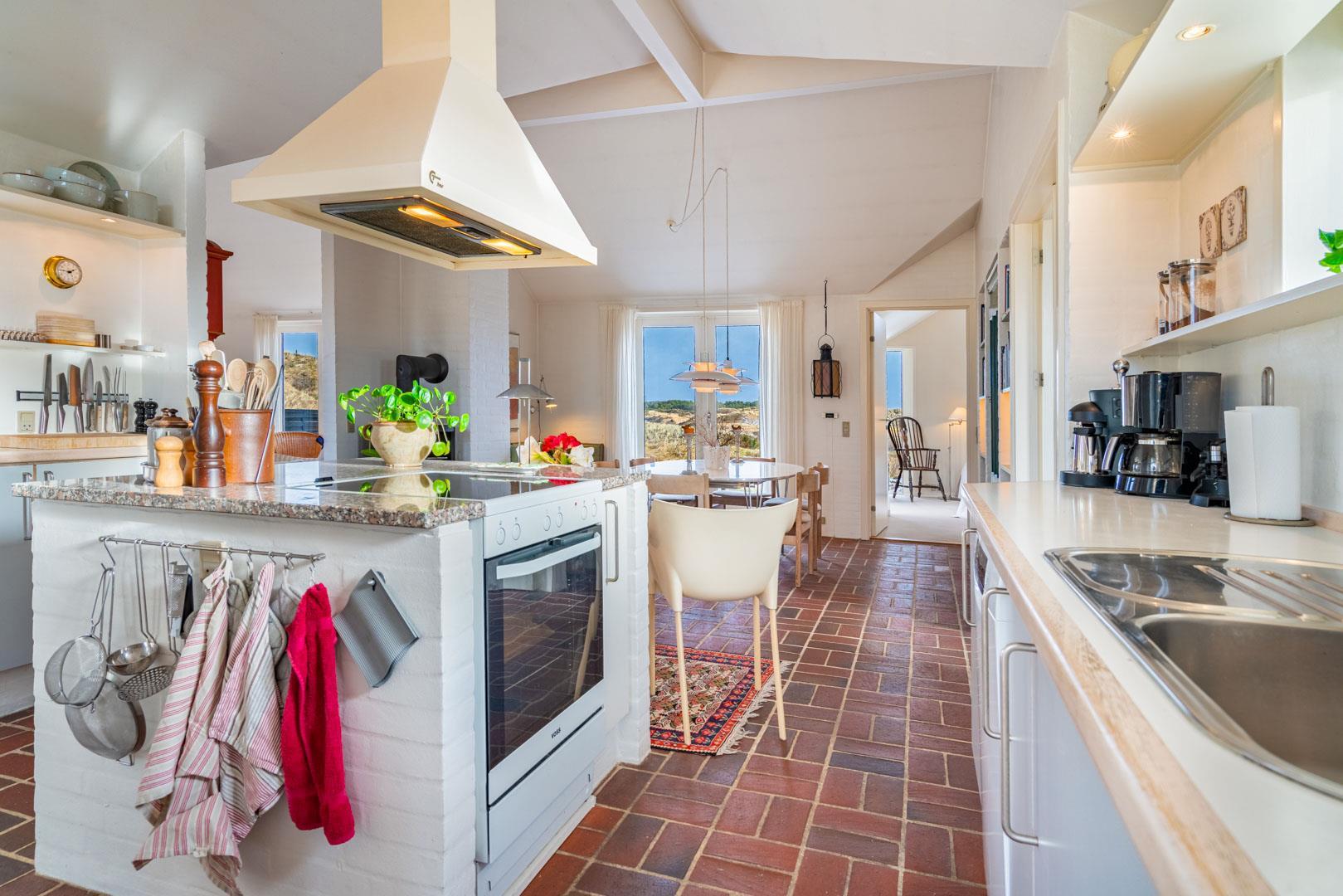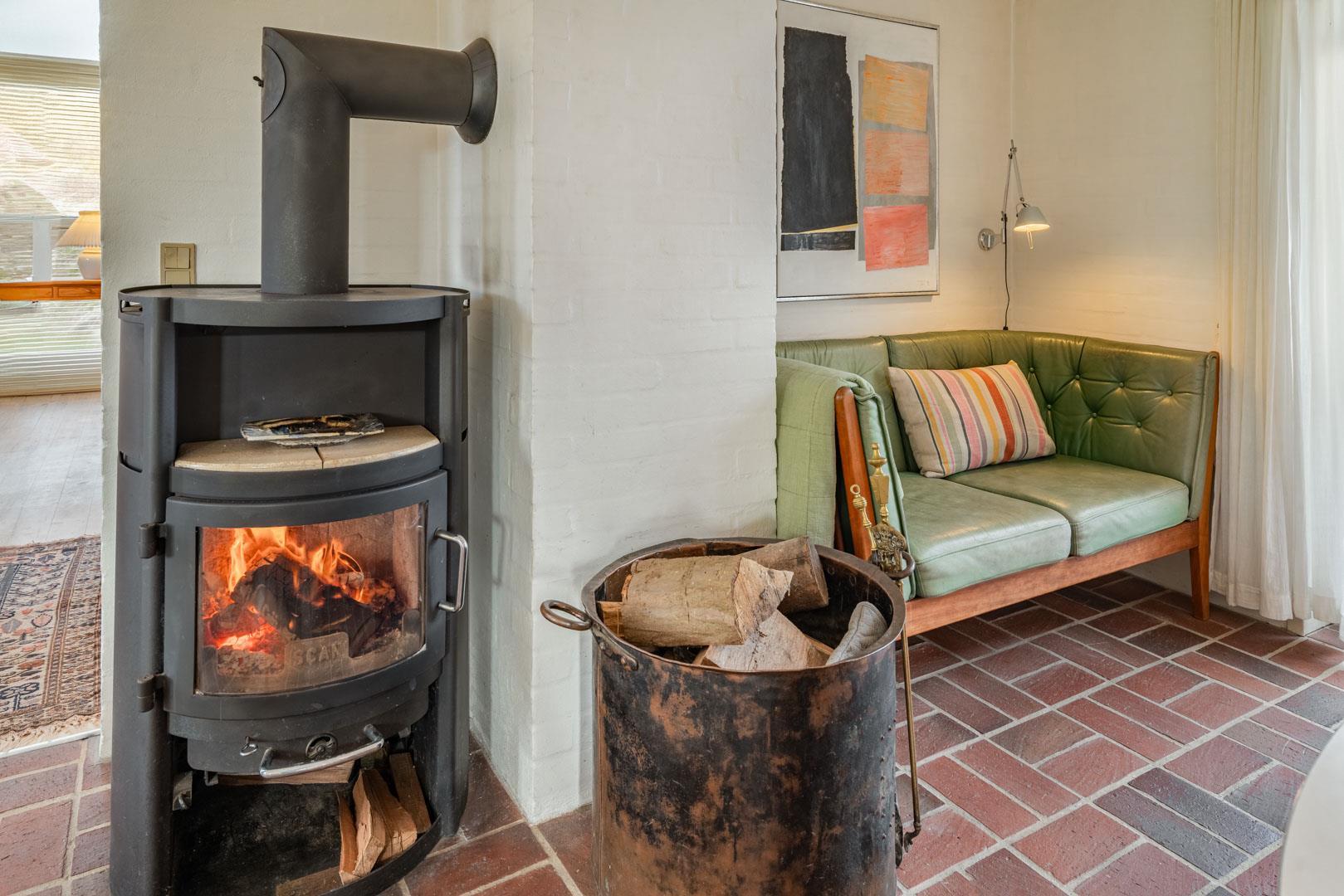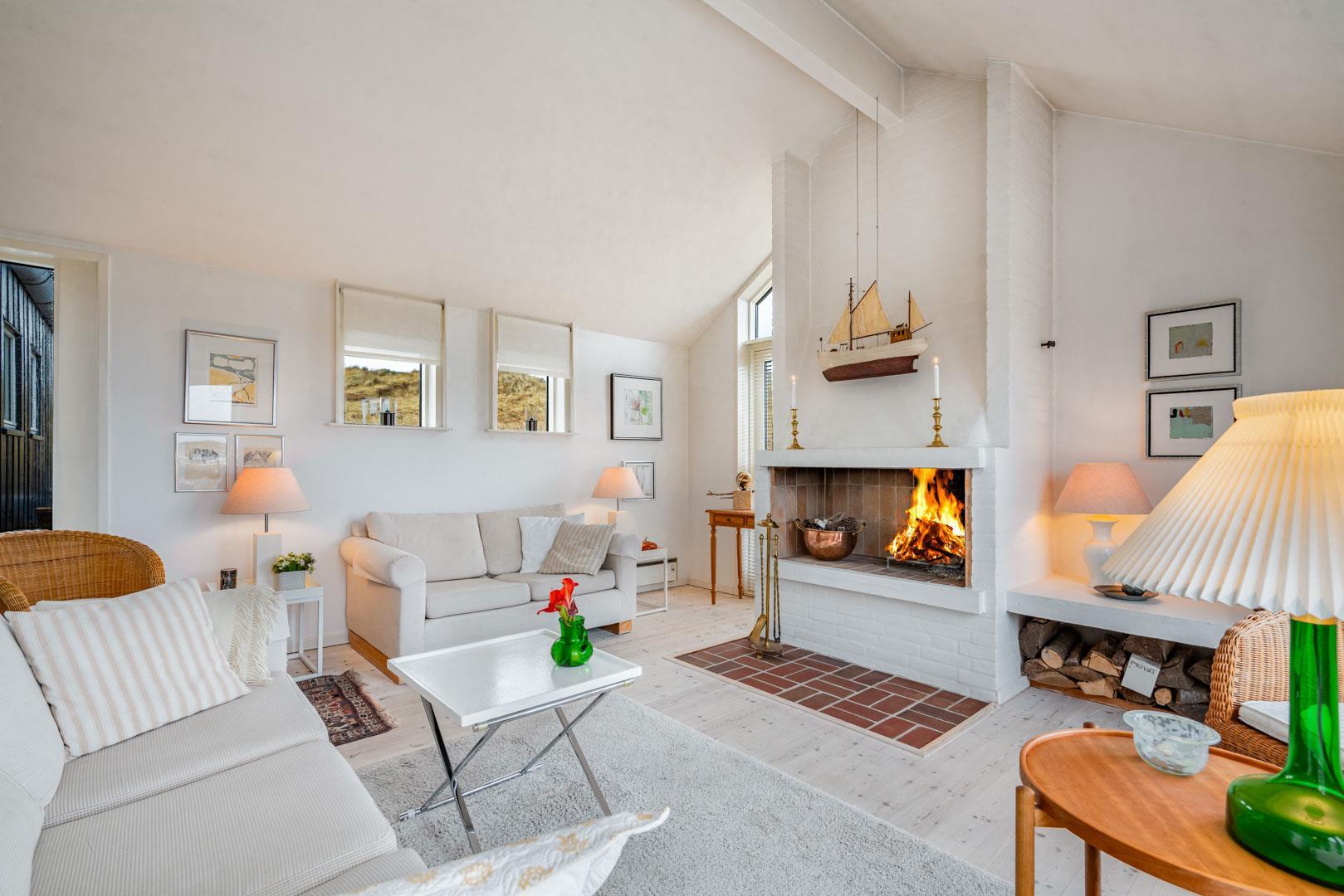 Det lyse og stilfulde sommerhus skaber den perfekte sommerhusstemning i hvert eneste hjørne. Her er en rigtig hyggelig stue med loft til kip og en pejs der indbyder til hyggelige stunder med en god bog. Det åbne og veludstyrede køkken/alrum ligger i forbindelse med spisestuen, her sørger brændeovnen for at sprede varme og hygge til de kolde måneder - et perfekt sted for samvær hvad enten det er over en middag eller et familiespil.
