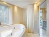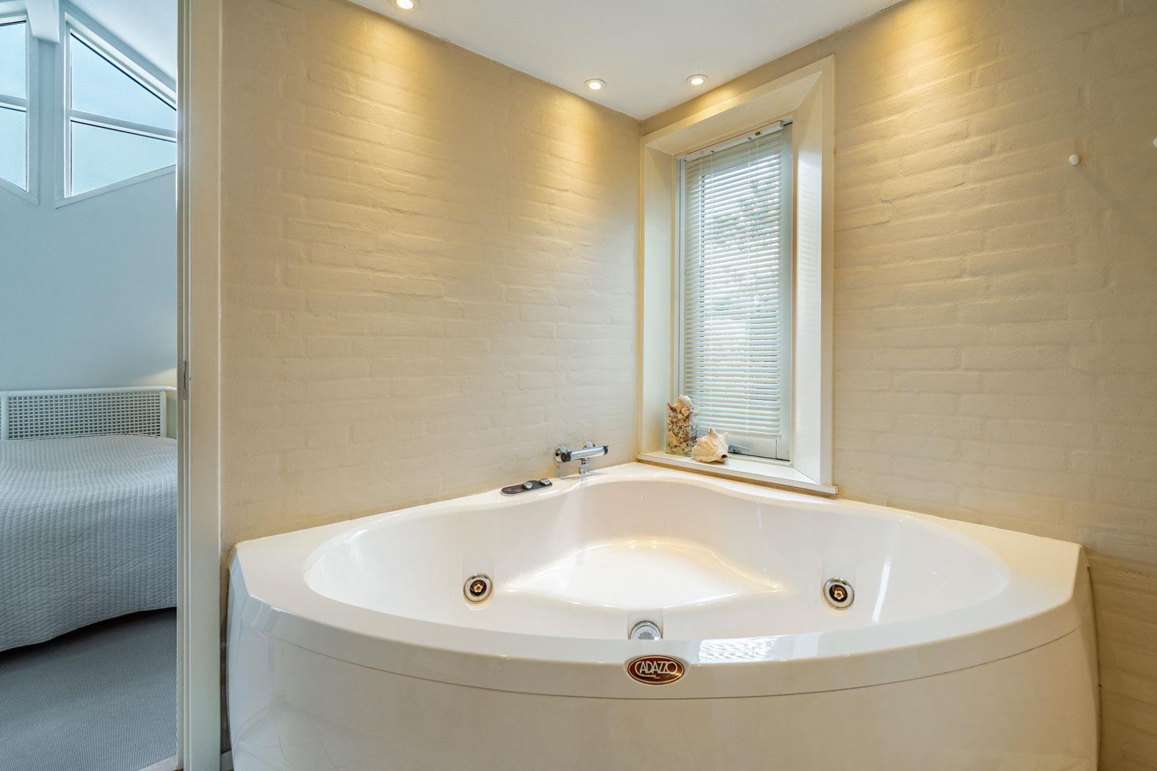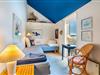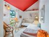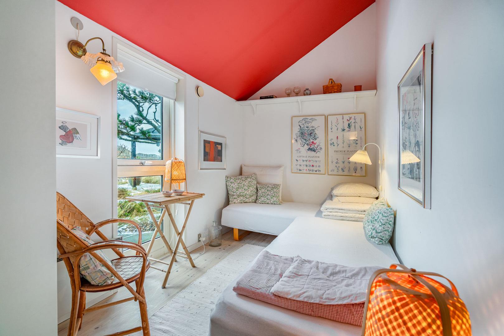 Den imponerende indvendige planløsning inkluderer et stort soveværelse med direkte adgang til et badeværelse med spabad og udgang til en terrasse. Herudover er der to charmerende og farverige soveværelser med to enkeltsenge, samt et ekstra toilet med håndvask. Gennem en praktisk skydedør kan det ekstra toilet forbindes med badeværelset og på den måde skabe et større bademiljø.