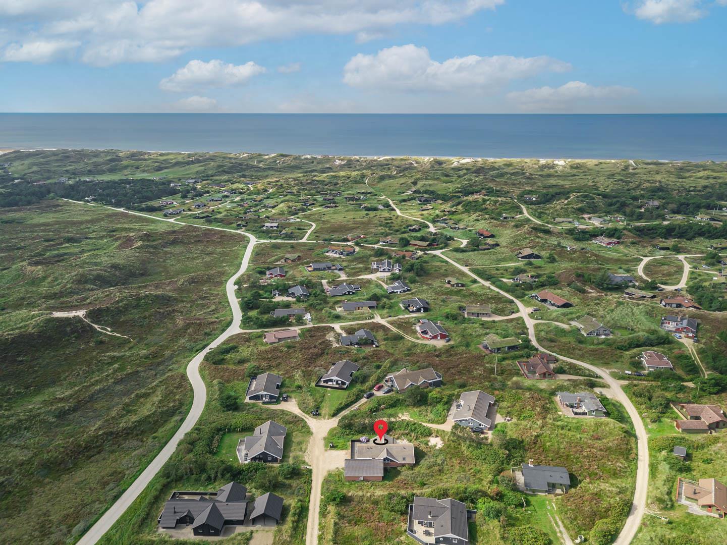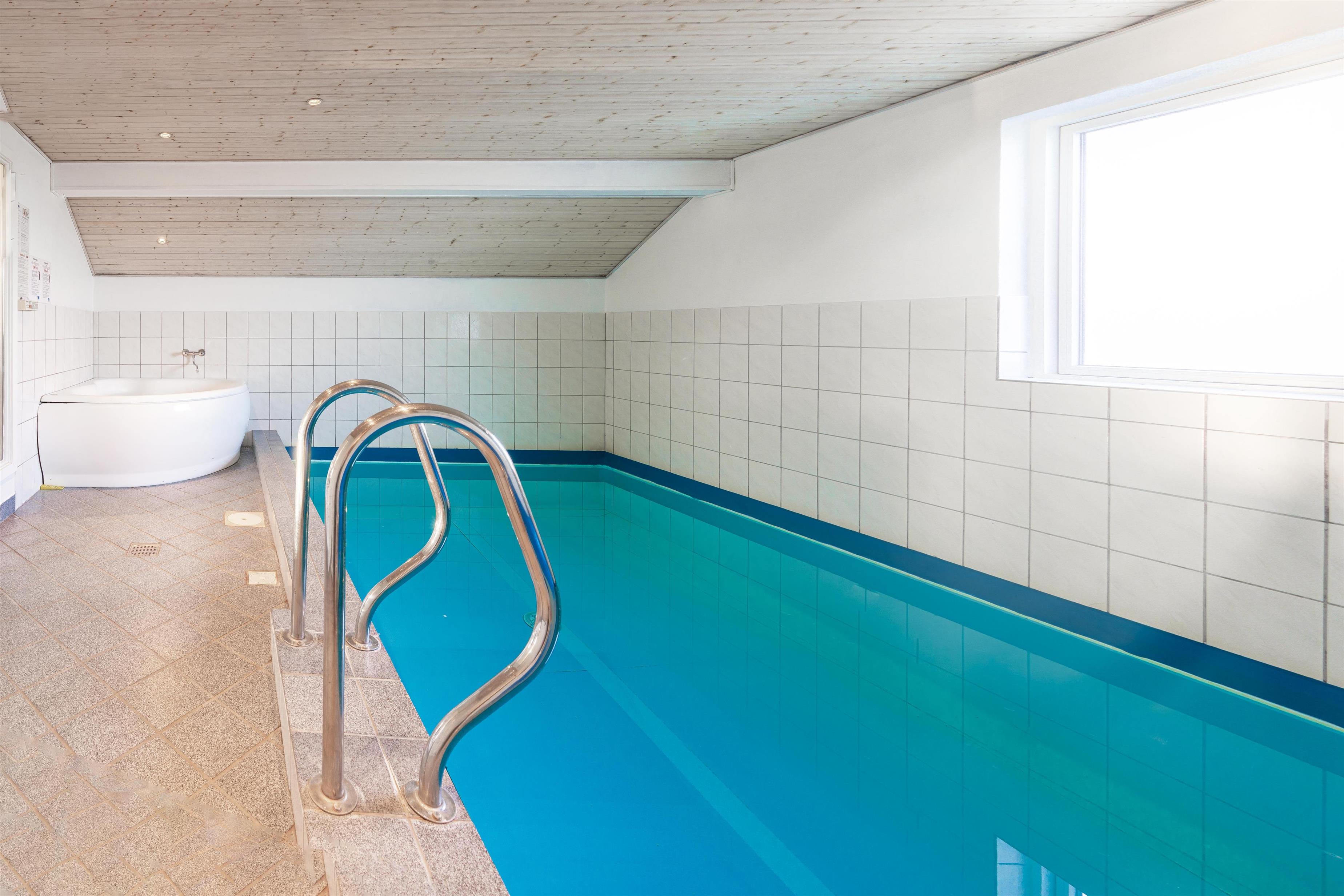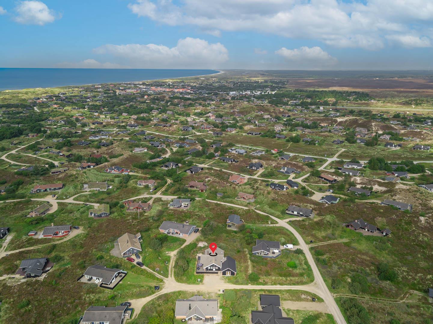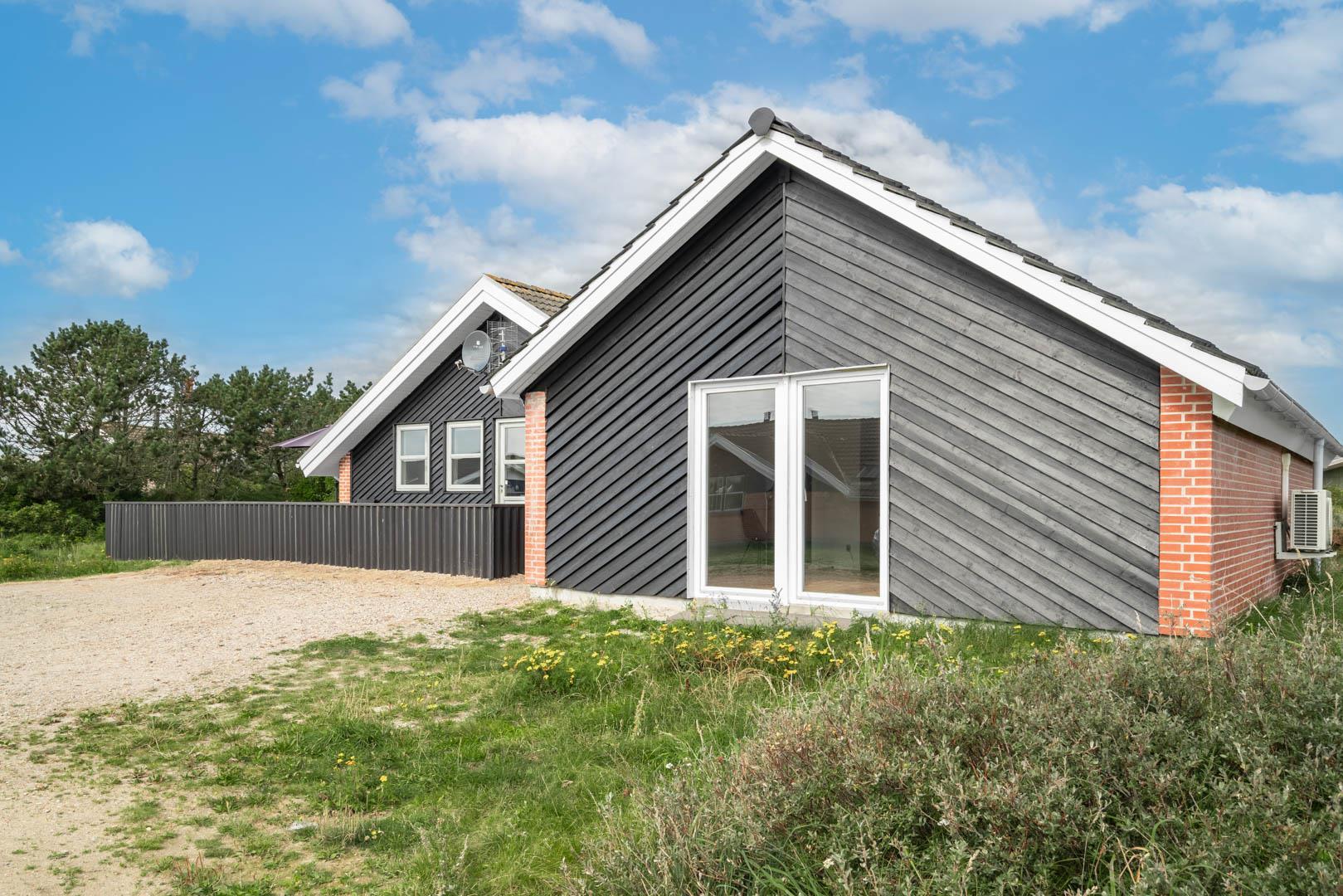 Stort og meget rummeligt aktivitetshus med pool afd. beliggende i gå afstand fra Vesterhavet samt Henne Strand by. Her er virkelig tale om dejligt feriehus til 2 familier. Der er tilbygget stort aktivitetsrum med pollbord samt bordtennis. Feriehuset har en stor køkken/alrum med alt i hårde hvidevarer og herfra er der bla. adgang til huset dejlige pool område samt sauna. Der er også adgang til større ugenert lukket delvis overdækket terrasse hvor der kan hygget ved husets grill. Feriehuset er beliggende ved grusbelagt vej, så der er minimal af trafik. Husk vandreskoene eller cyklerne, da der er mange gode naturstier i området og ikke mindst i Blåbjerg Plantage.