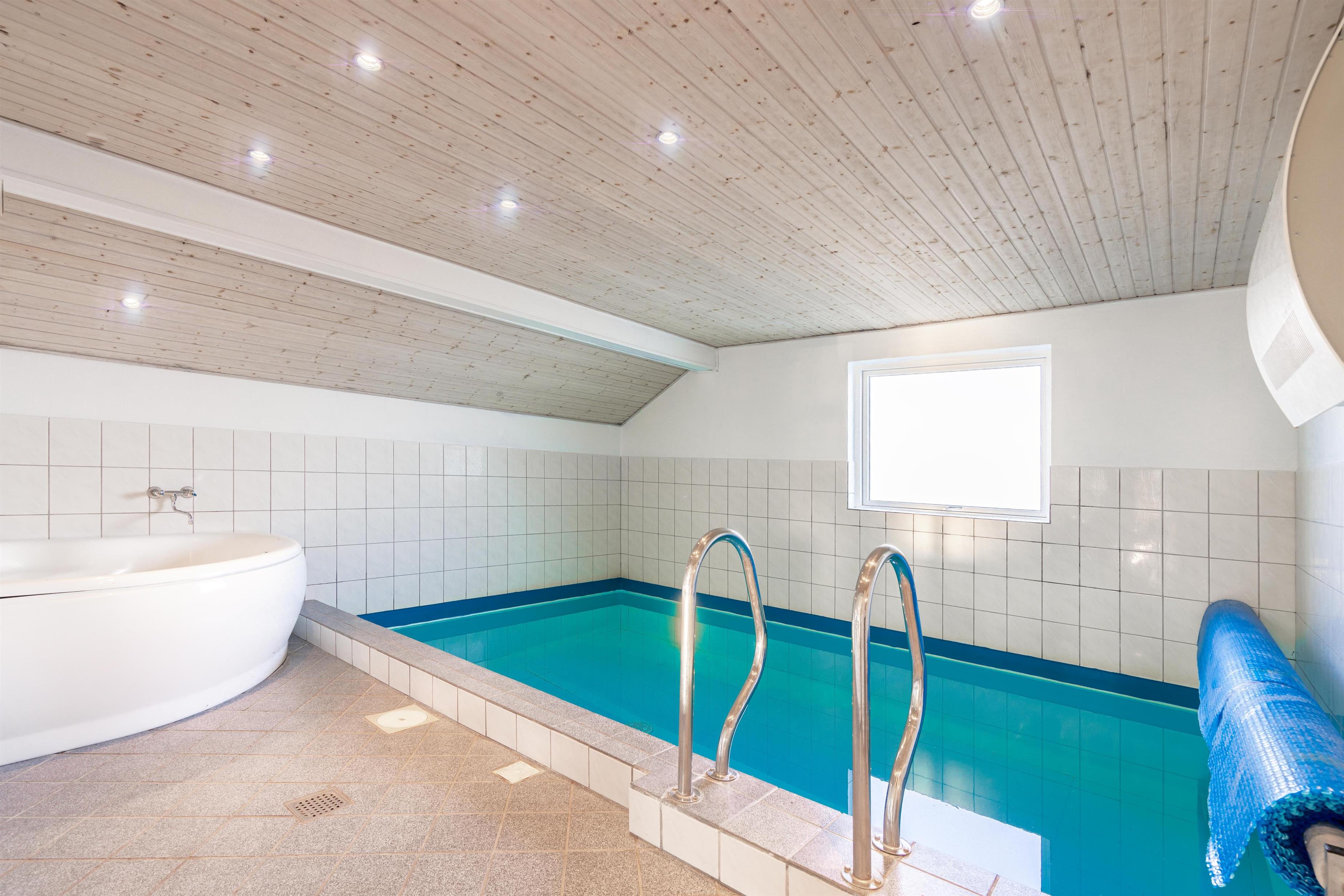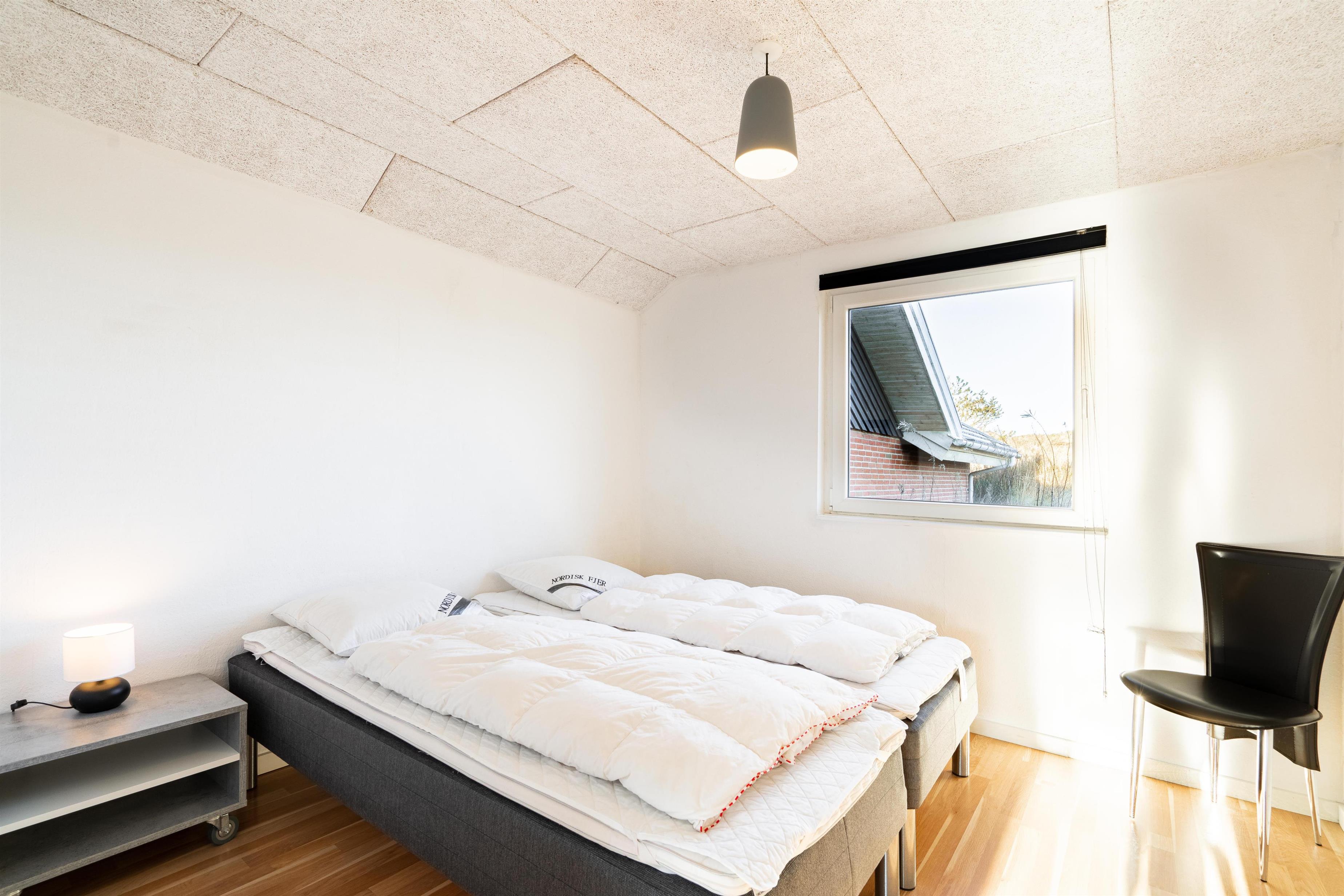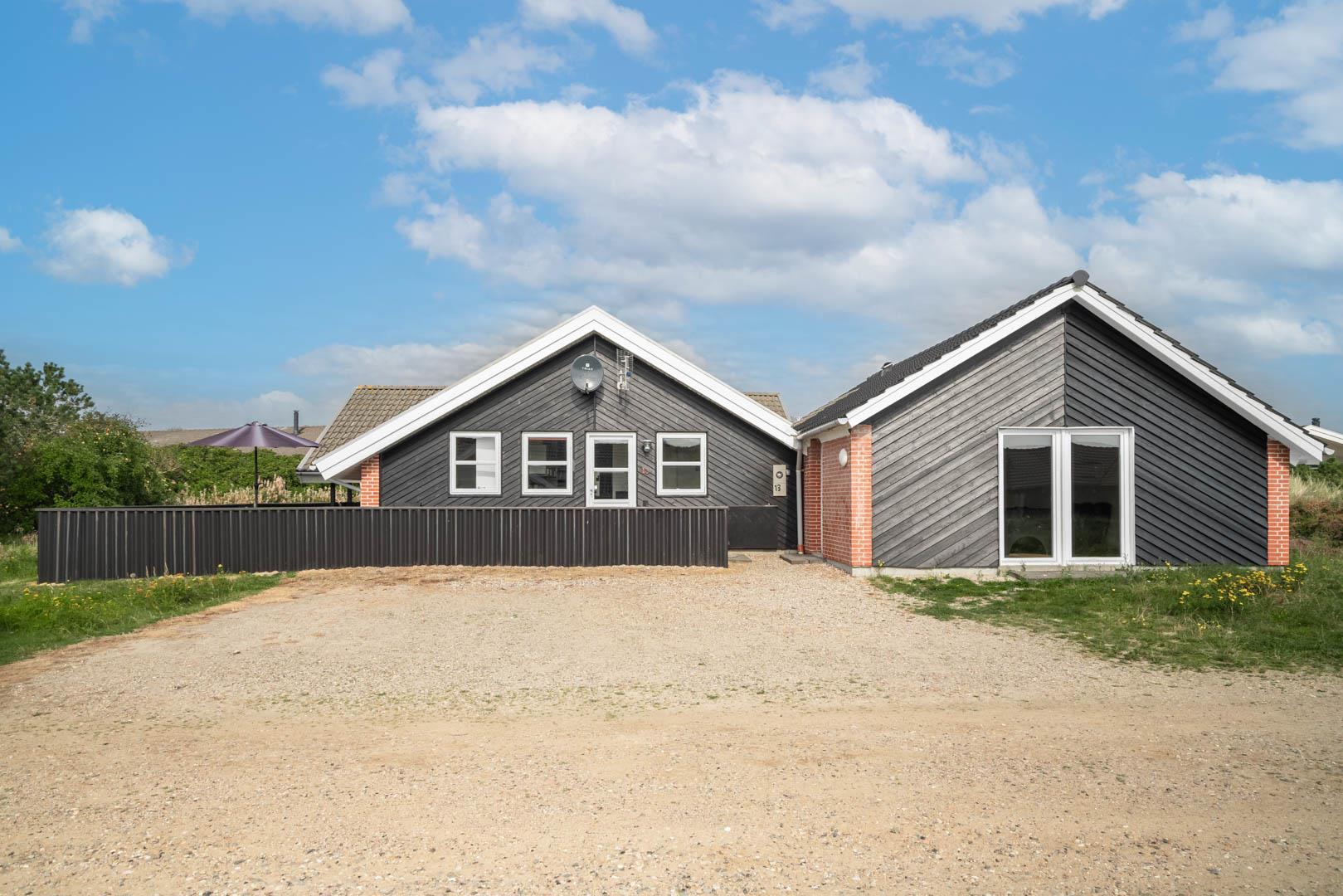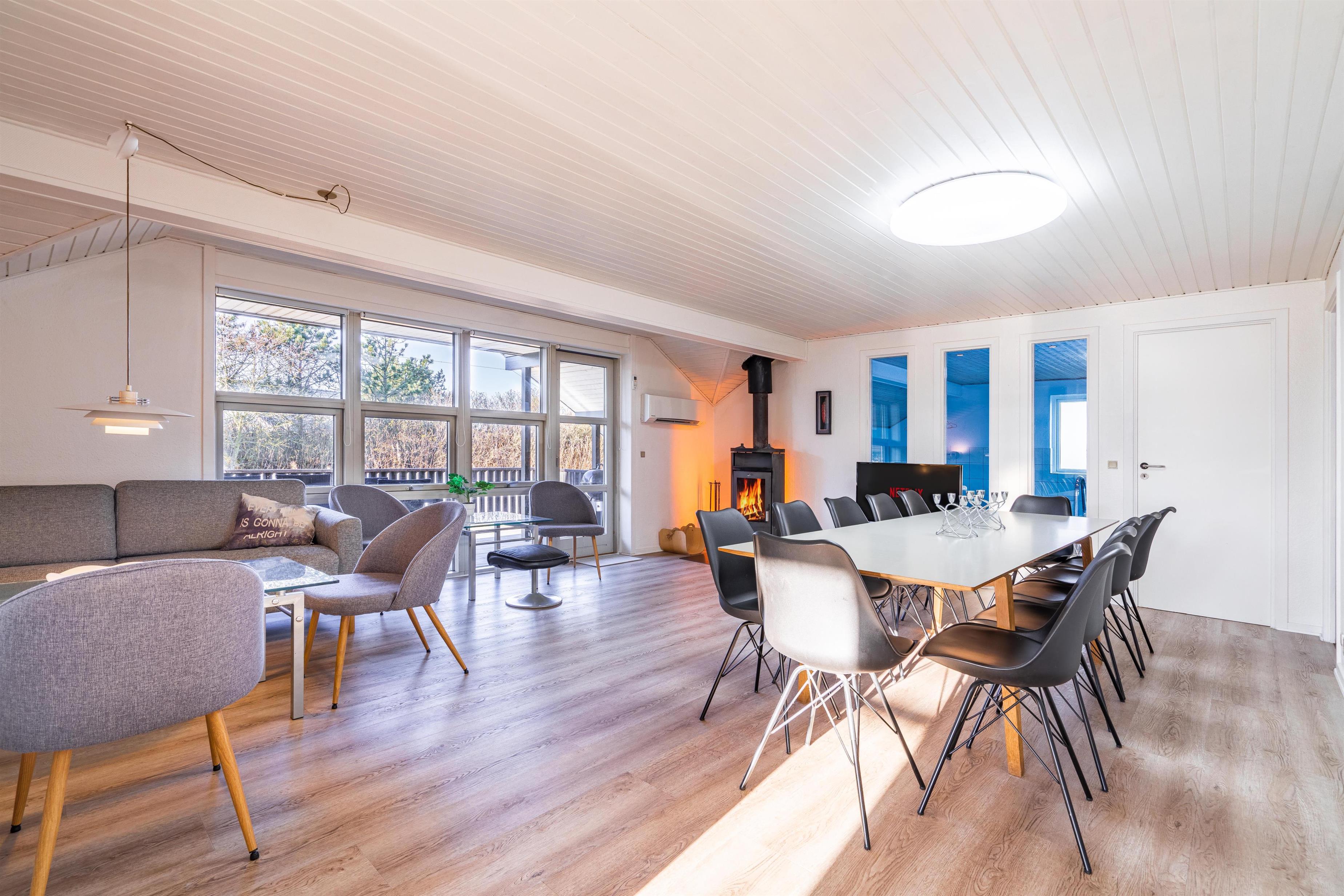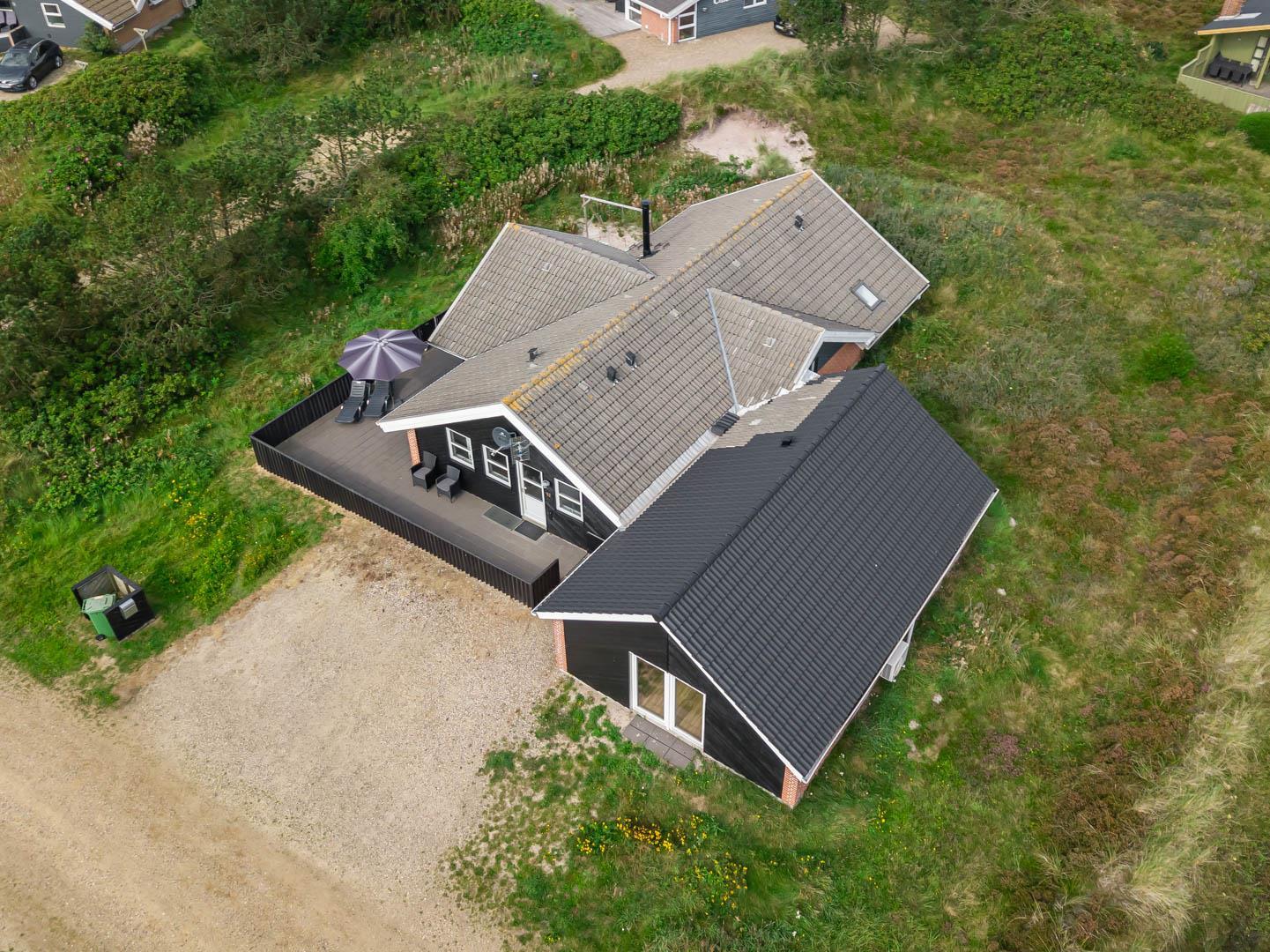 Stort og meget rummeligt aktivitetshus med pool afd. beliggende i gå afstand fra Vesterhavet samt Henne Strand by. Her er virkelig tale om dejligt feriehus til 2 familier. Der er tilbygget stort aktivitetsrum med pollbord samt bordtennis. Feriehuset har en stor køkken/alrum med alt i hårde hvidevarer og herfra er der bla. adgang til huset dejlige pool område samt sauna. Der er også adgang til større ugenert lukket delvis overdækket terrasse hvor der kan hygget ved husets grill. Feriehuset er beliggende ved grusbelagt vej, så der er minimal af trafik. Husk vandreskoene eller cyklerne, da der er mange gode naturstier i området og ikke mindst i Blåbjerg Plantage.