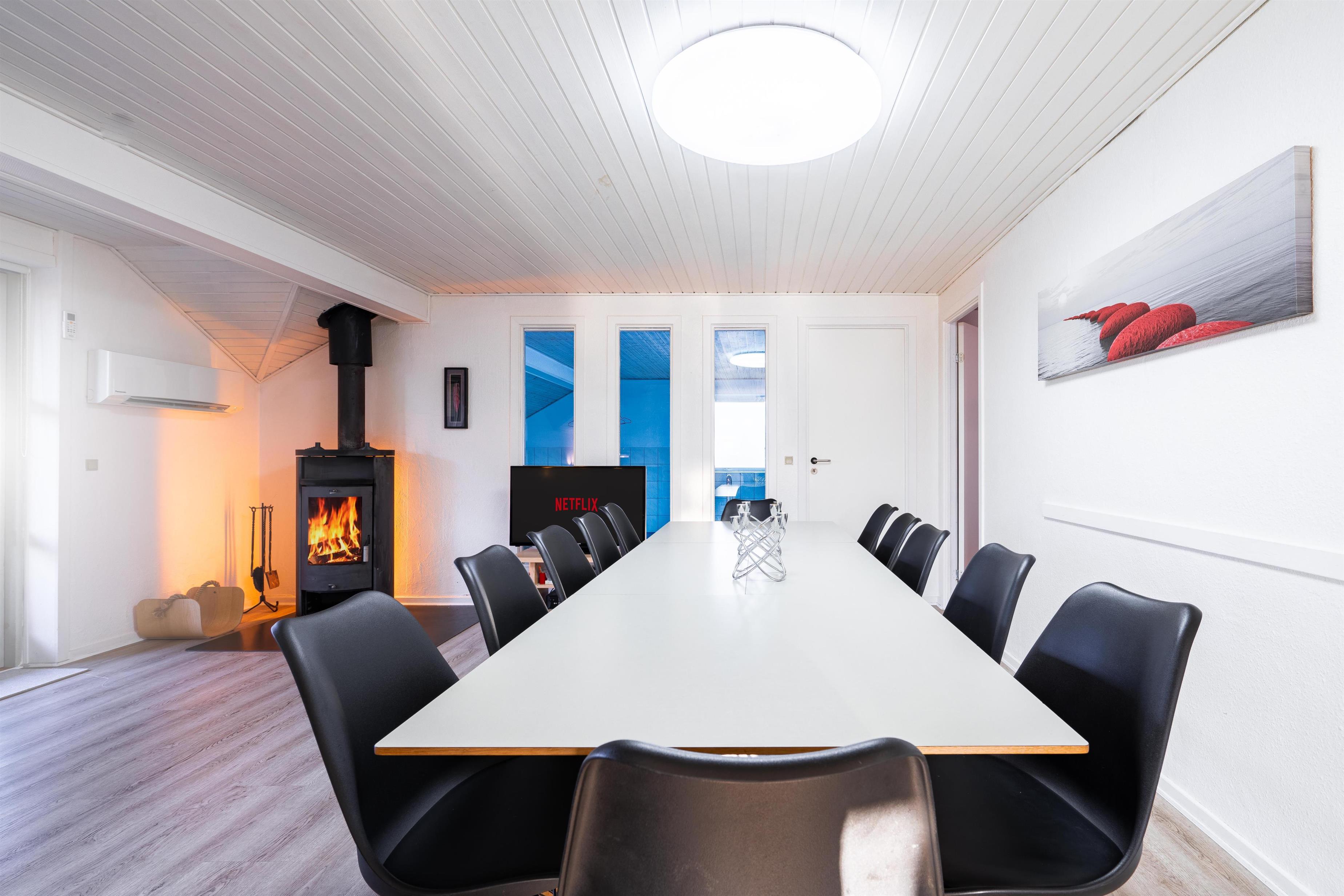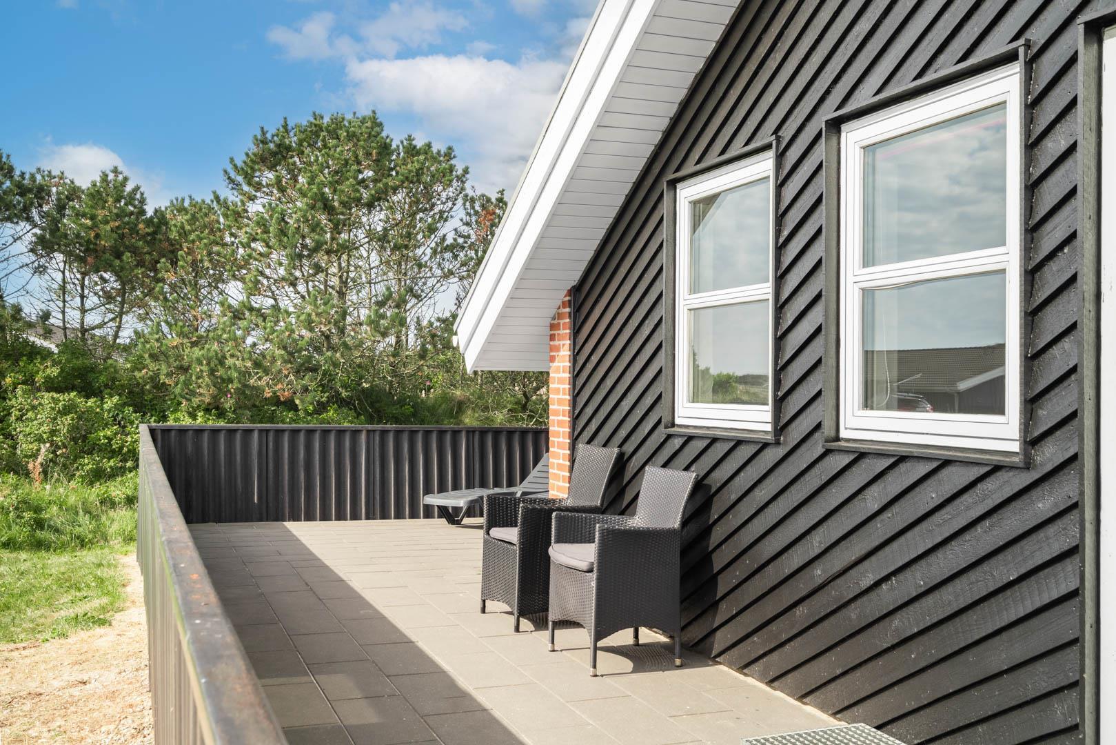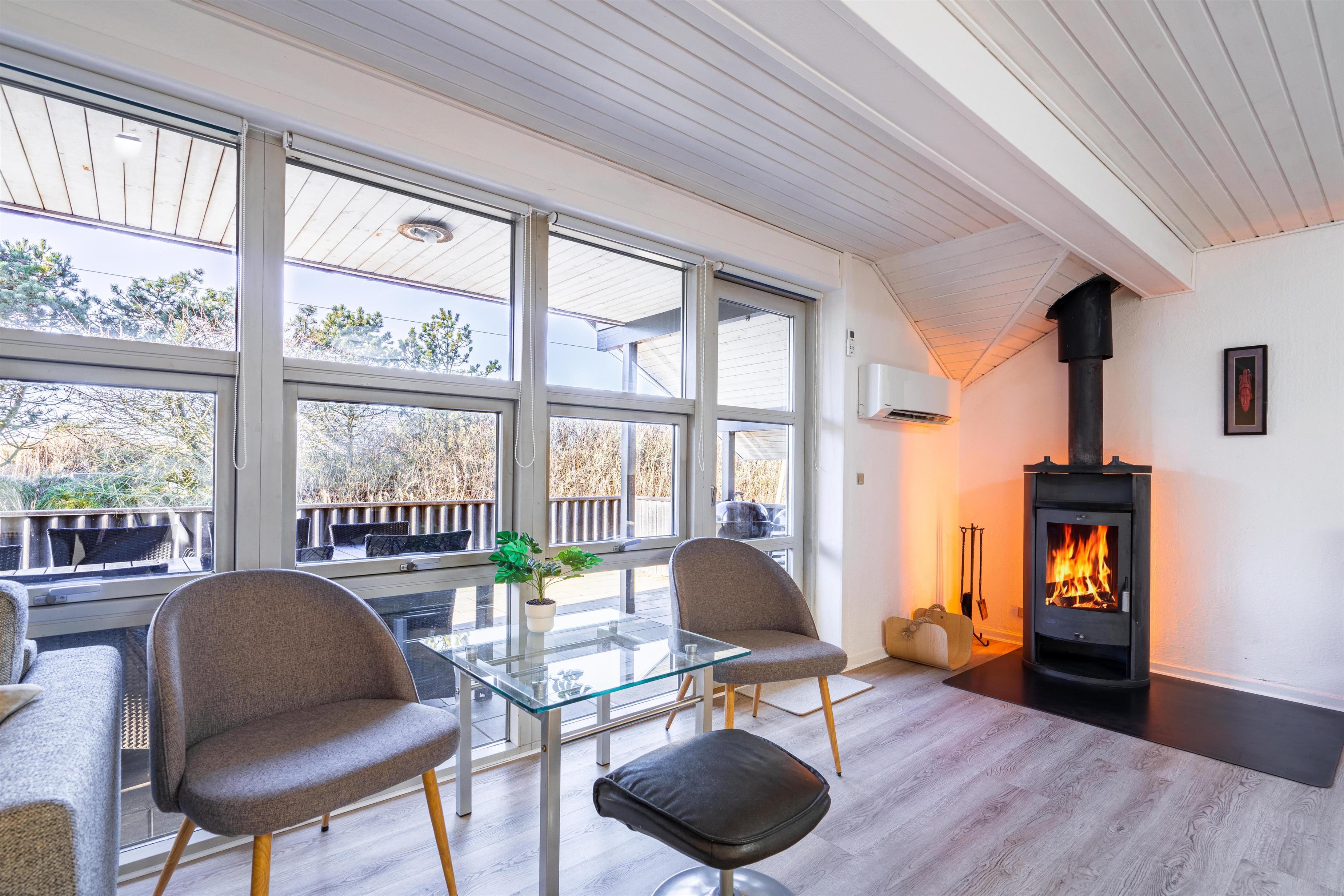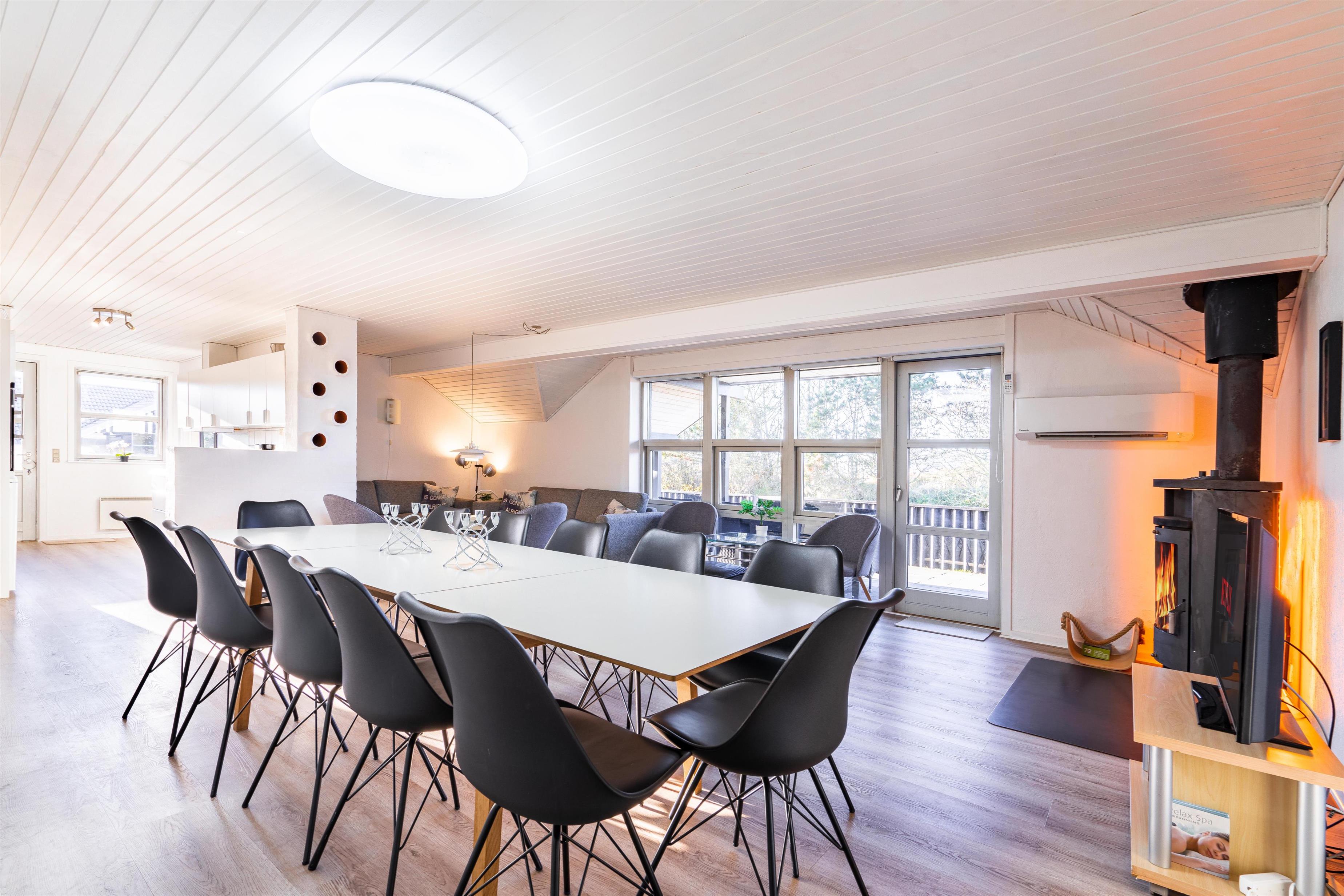 Stort og meget rummeligt aktivitetshus med pool afd. beliggende i gå afstand fra Vesterhavet samt Henne Strand by. Her er virkelig tale om dejligt feriehus til 2 familier. Der er tilbygget stort aktivitetsrum med pollbord samt bordtennis. Feriehuset har en stor køkken/alrum med alt i hårde hvidevarer og herfra er der bla. adgang til huset dejlige pool område samt sauna. Der er også adgang til større ugenert lukket delvis overdækket terrasse hvor der kan hygget ved husets grill. Feriehuset er beliggende ved grusbelagt vej, så der er minimal af trafik. Husk vandreskoene eller cyklerne, da der er mange gode naturstier i området og ikke mindst i Blåbjerg Plantage.