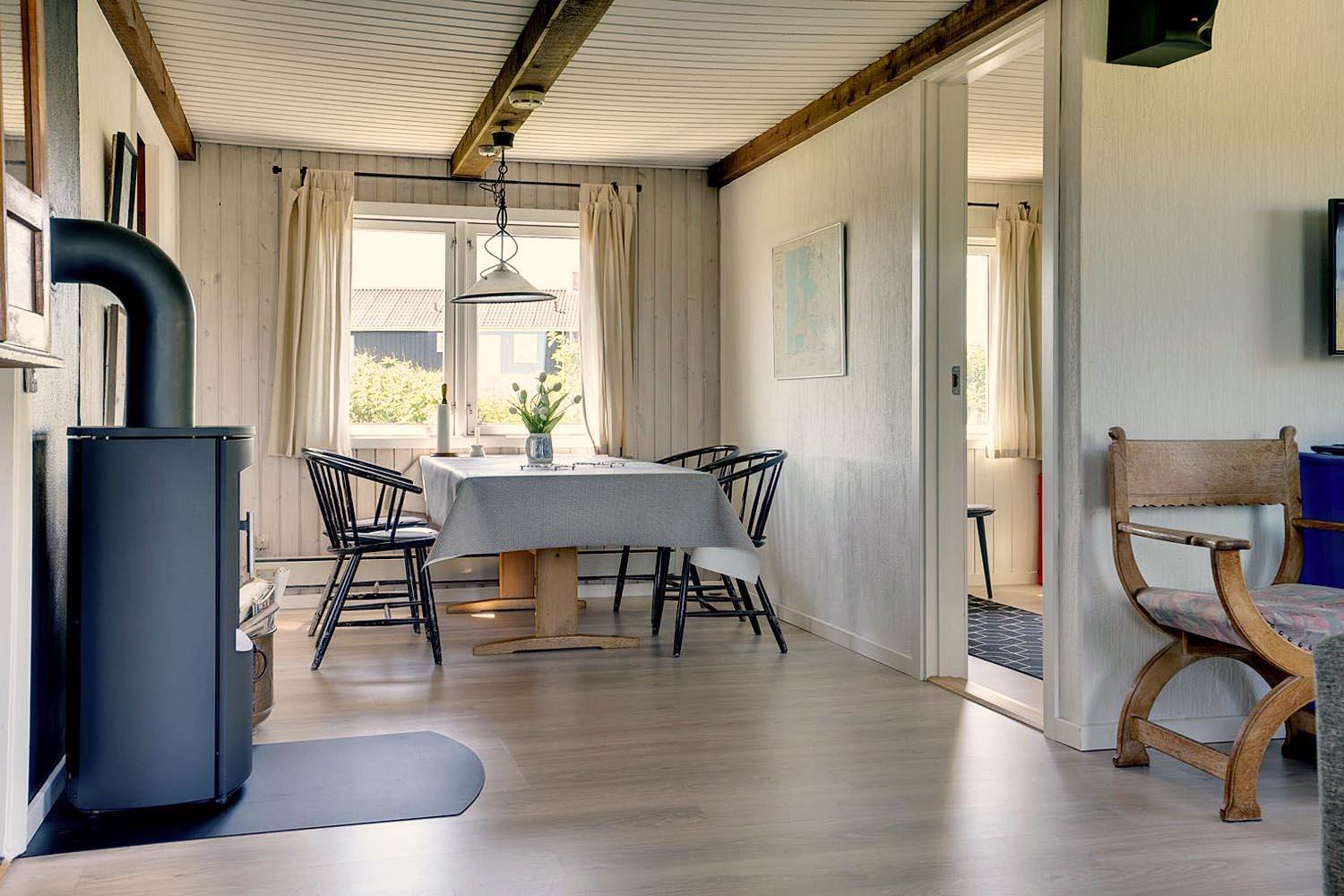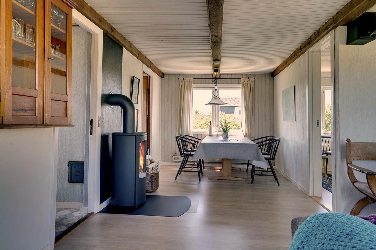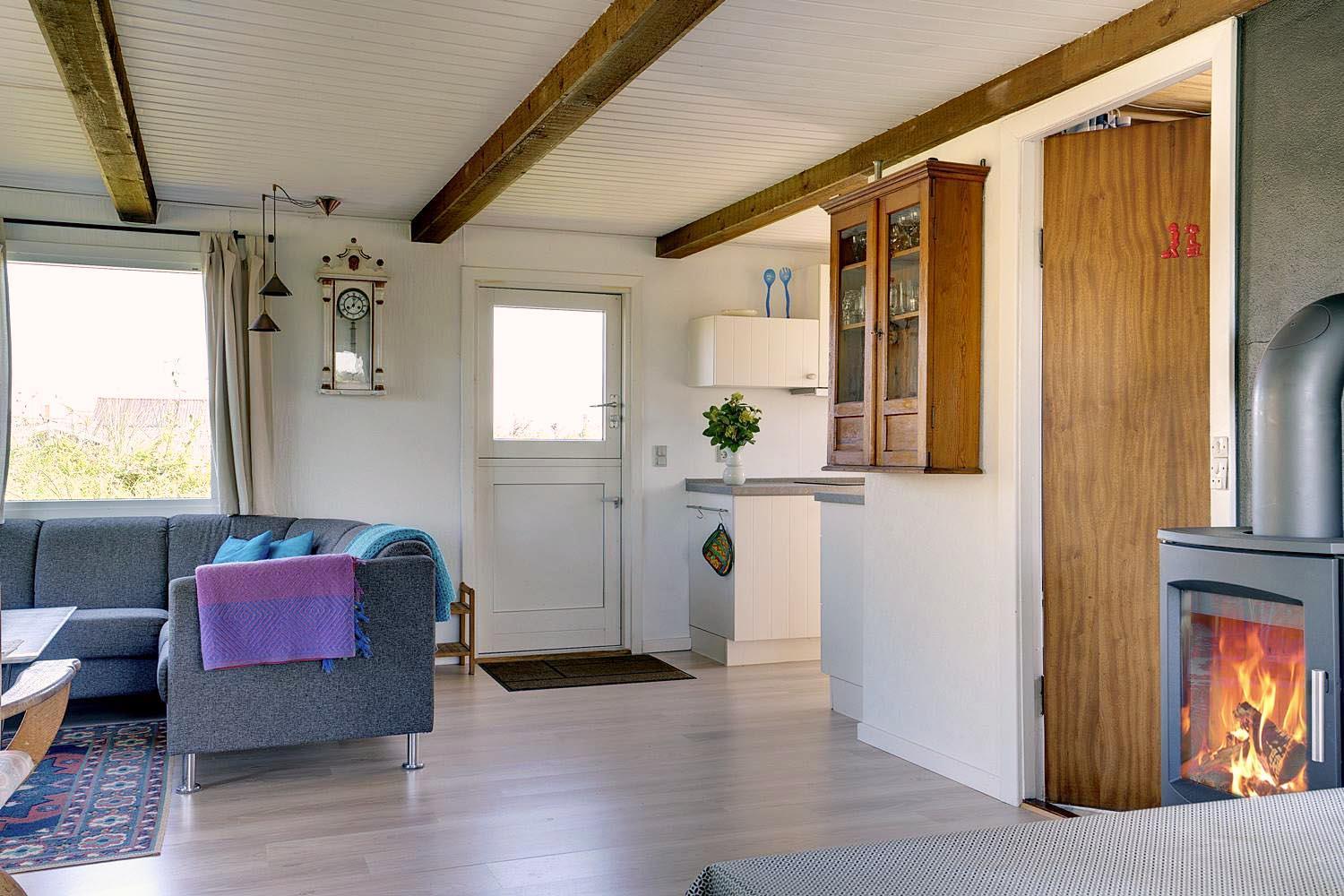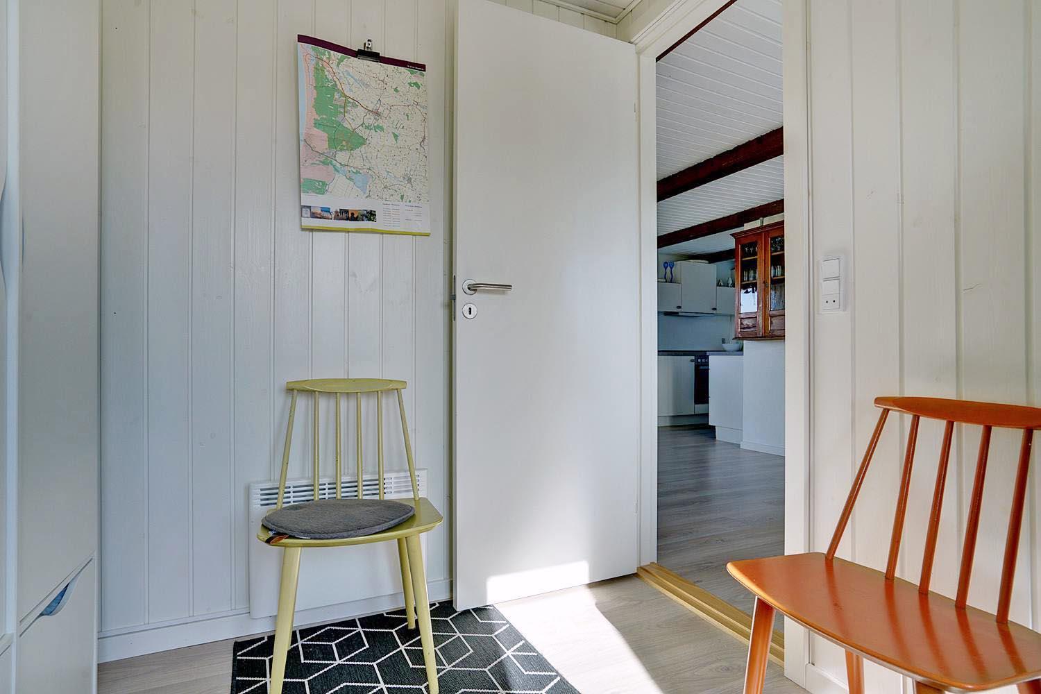 Trappen, der fører fra overetagen til underetagen, befinder sig udenfor, herved kan I finde ro i underetagen. Et rigtigt dejligt, lyst og venligt feriehus.