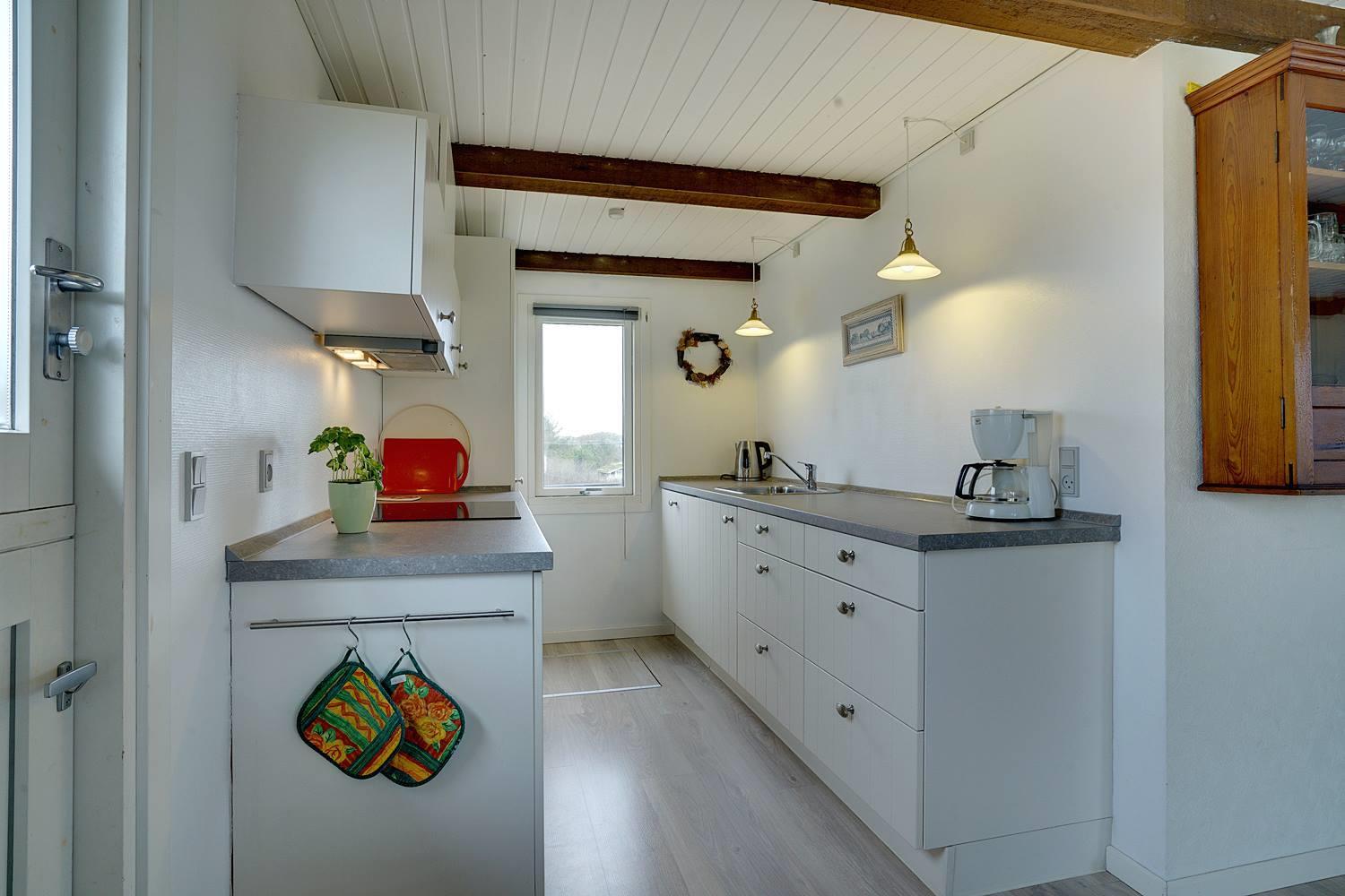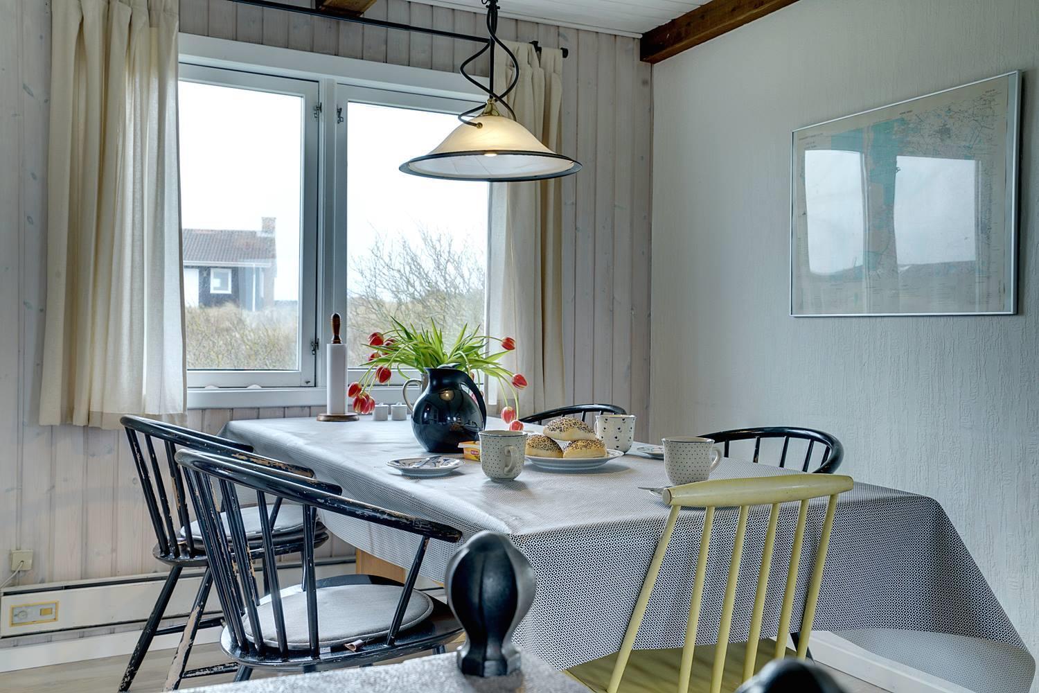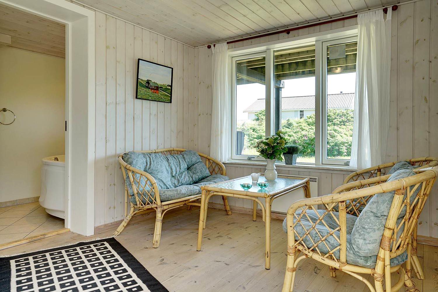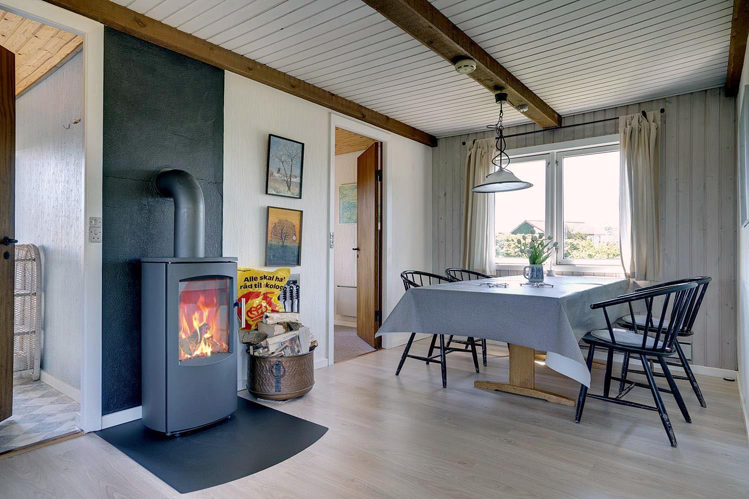 Trappen, der fører fra overetagen til underetagen, befinder sig udenfor, herved kan I finde ro i underetagen. Et rigtigt dejligt, lyst og venligt feriehus.