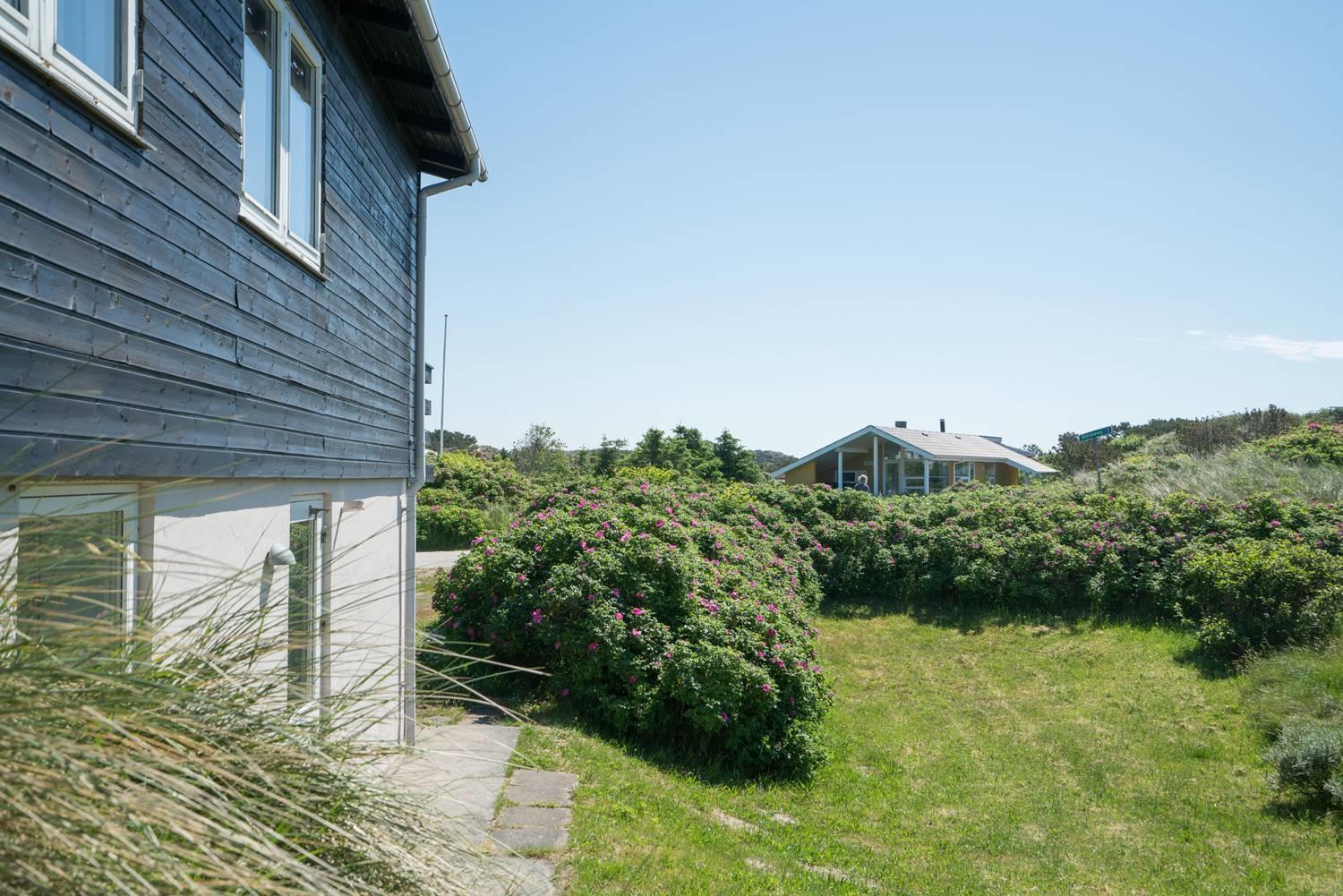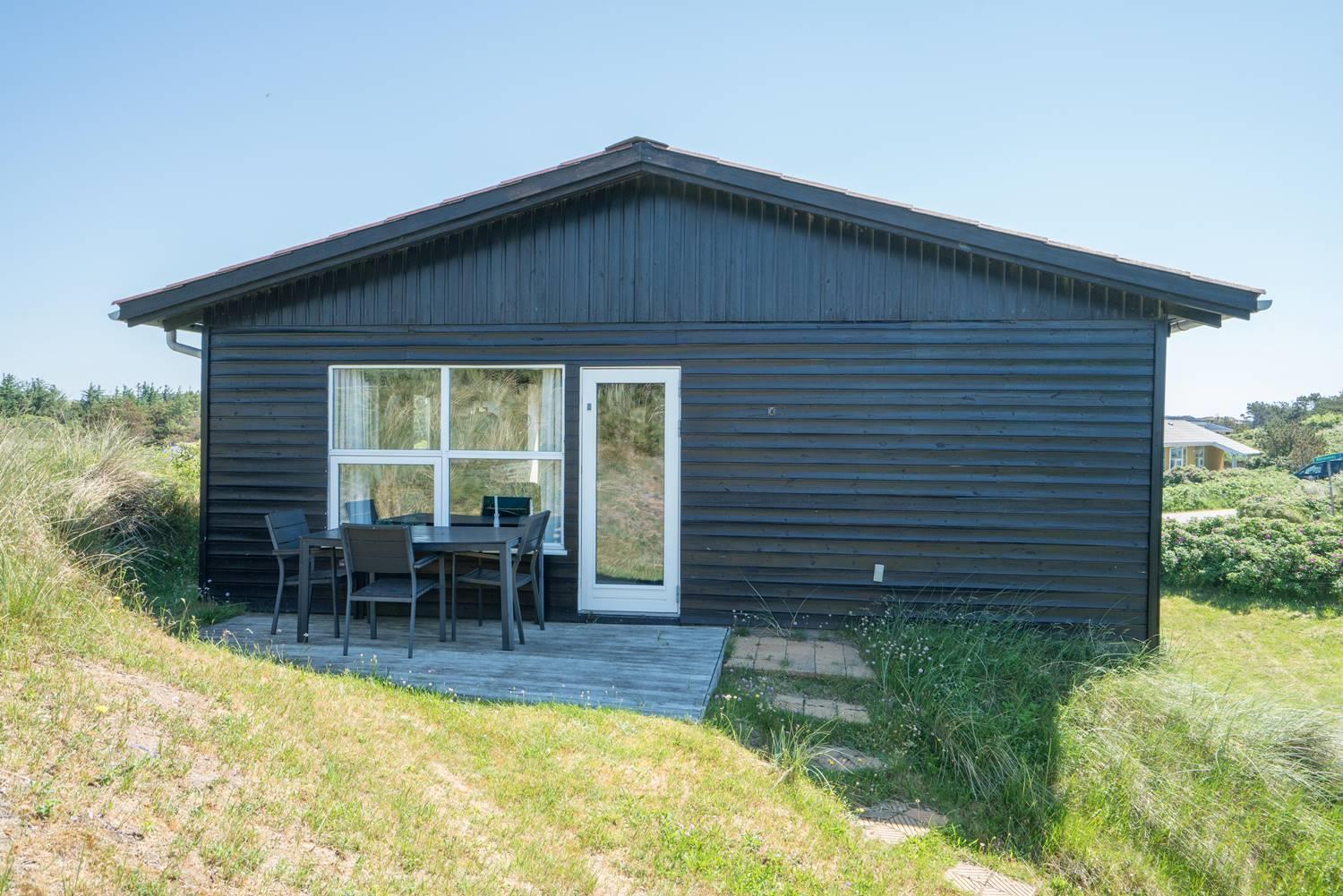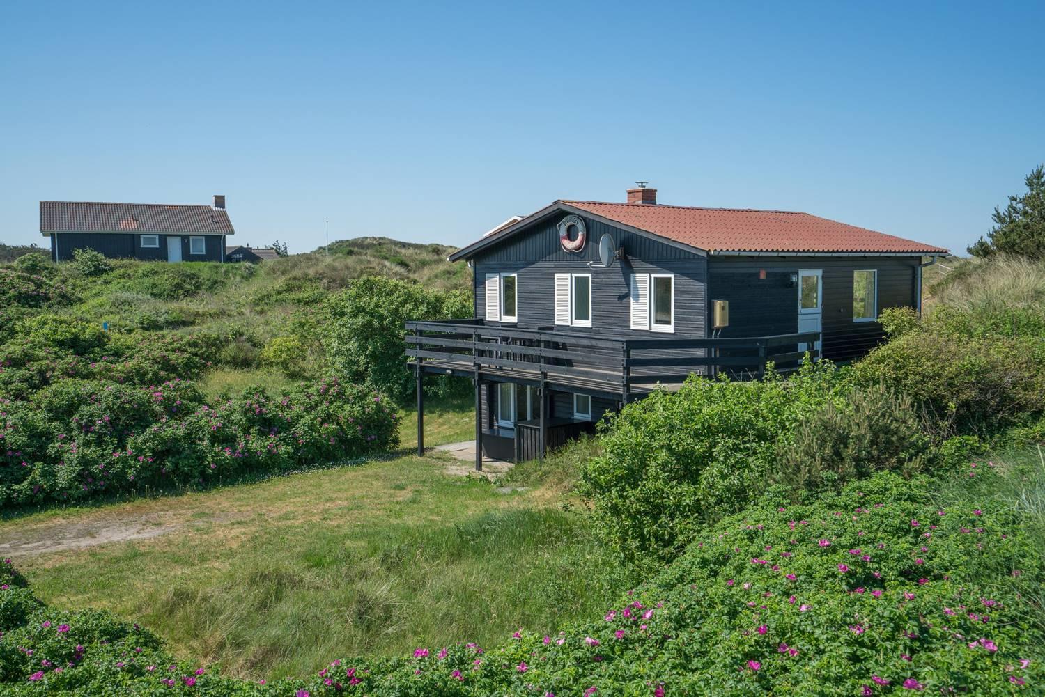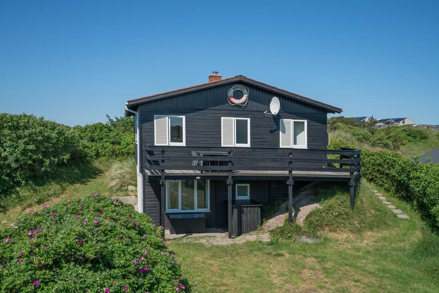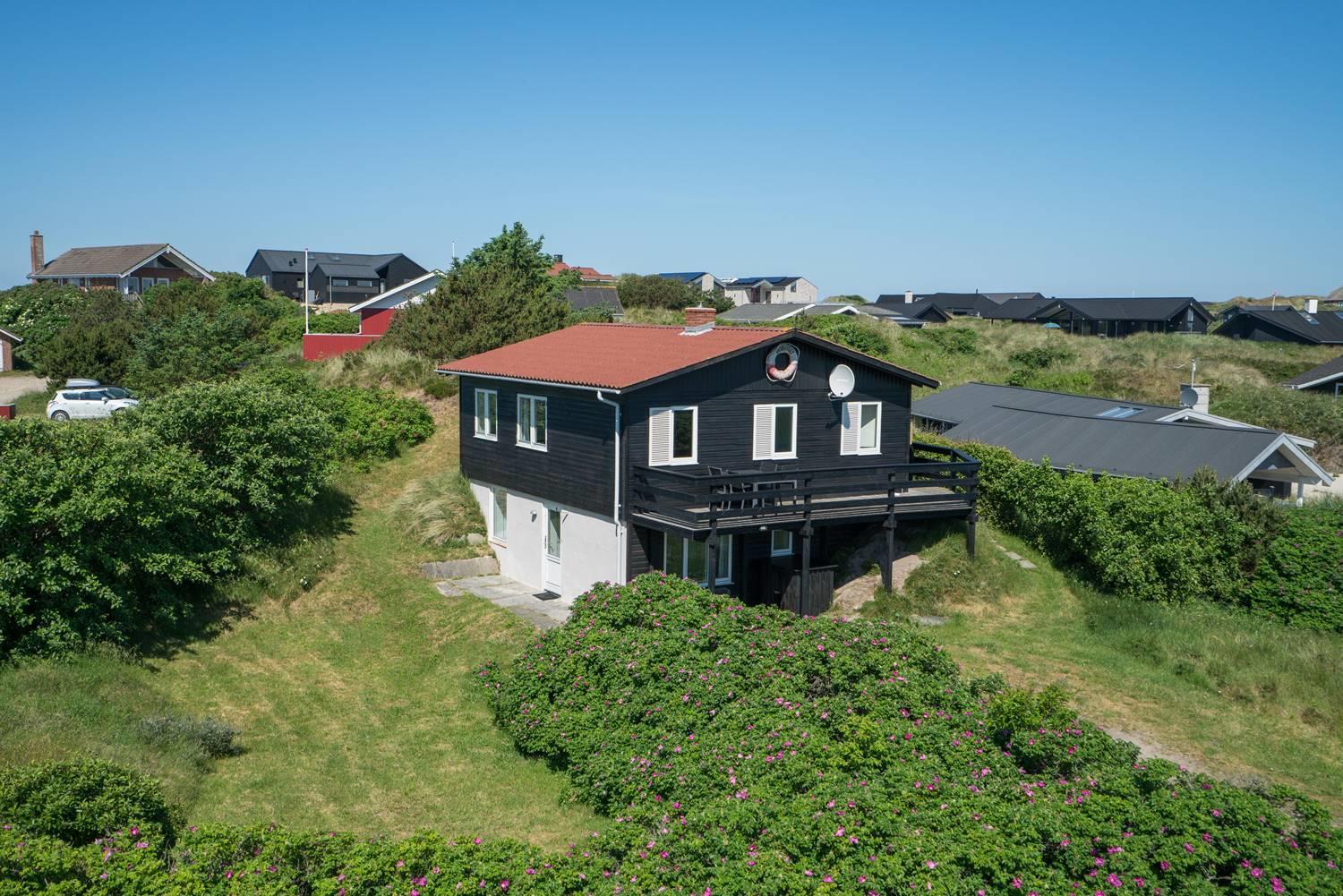 Et godt beliggende feriehus i 2 etager, på en stor klitgrund hvorfra der god udsigt over området. Underhuset er blevet moderniseret, med bl.a. et flot badeværelse med spa, bruseniche, gulvvarme og en vaskemaskine. Derudover opholdsstue samt soverum med dobbeltseng. I stueetagen (1. sal) findes køkkenet, lys og venlig spiseplads og stue. Desuden et badeværelse med bruser, samt 2 soverum. Omkring huset er der flere gode terrasser.