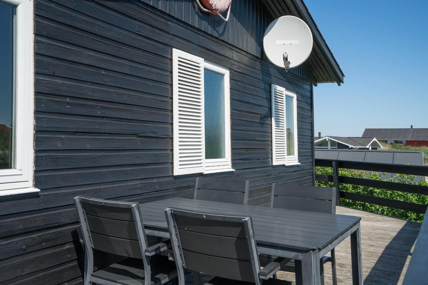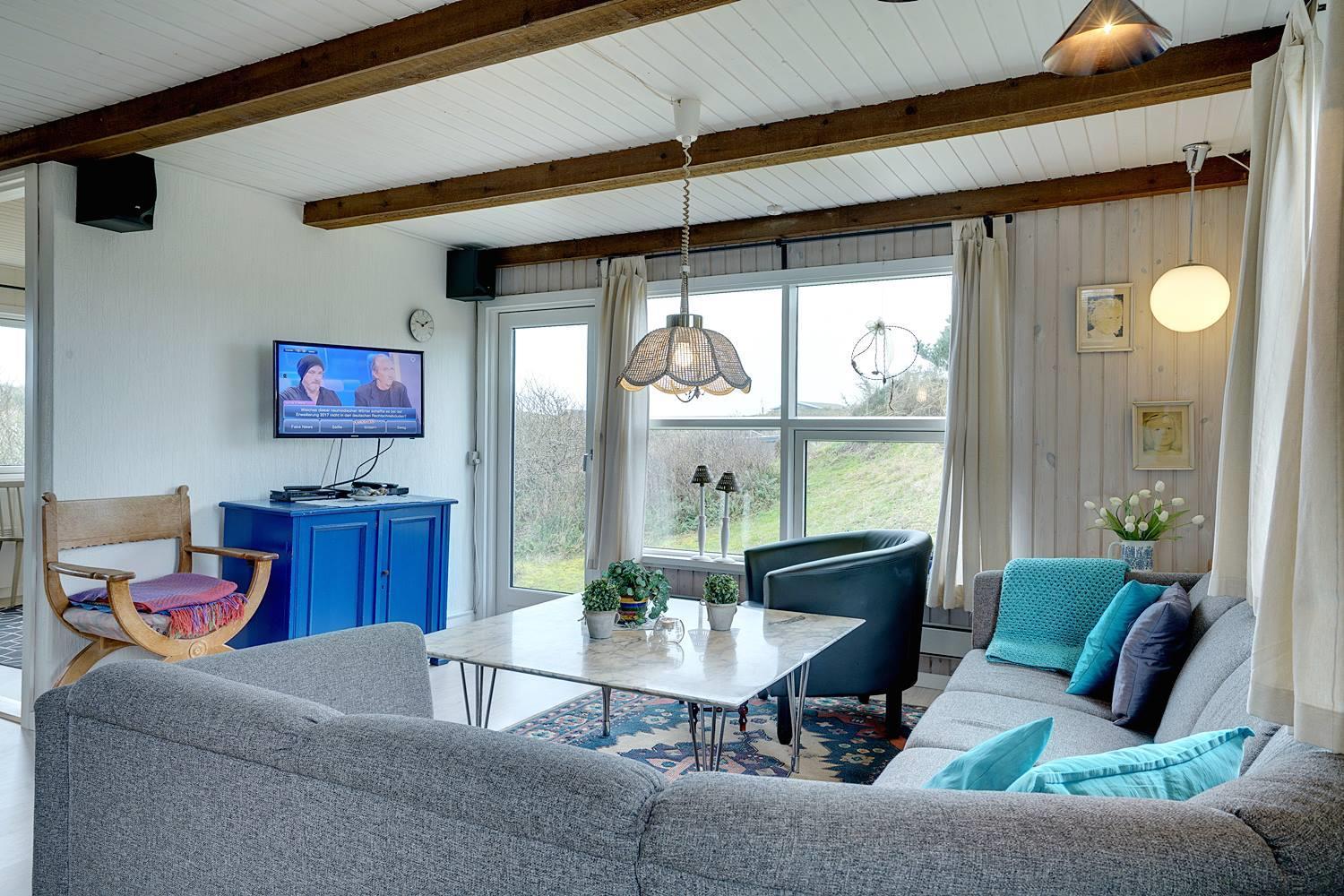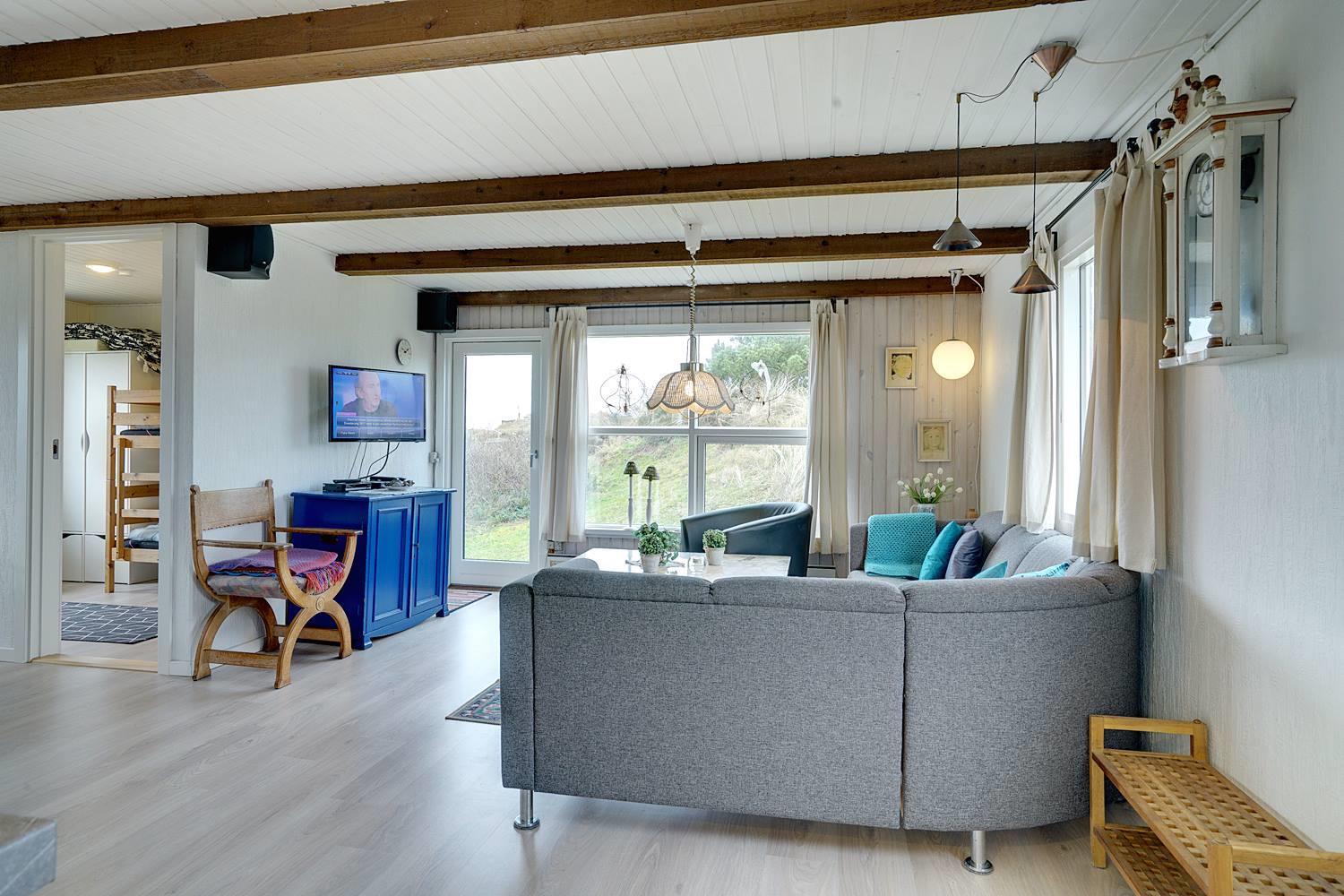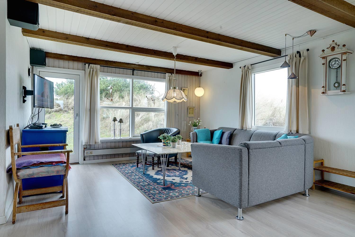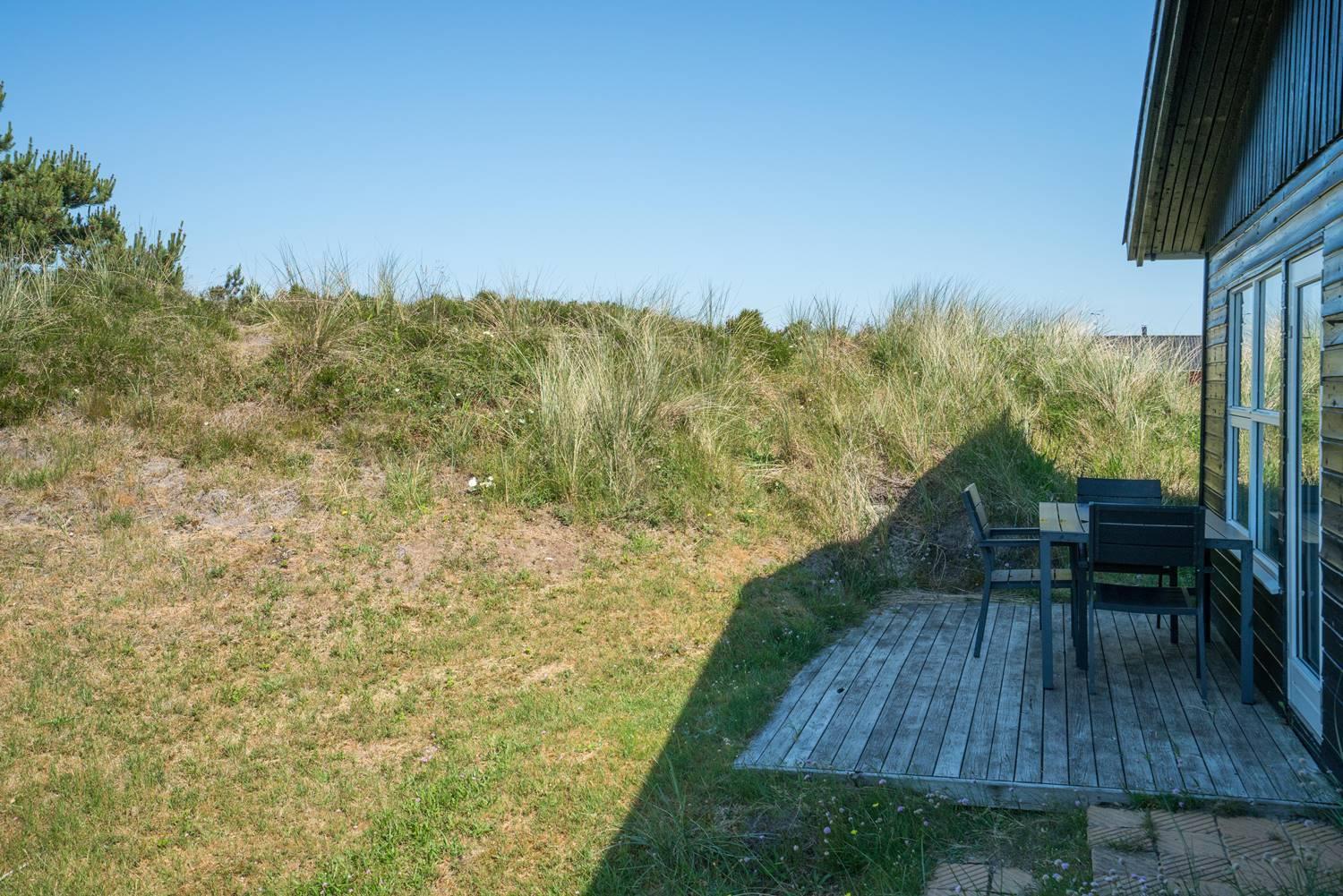 Et godt beliggende feriehus i 2 etager, på en stor klitgrund hvorfra der god udsigt over området. Underhuset er blevet moderniseret, med bl.a. et flot badeværelse med spa, bruseniche, gulvvarme og en vaskemaskine. Derudover opholdsstue samt soverum med dobbeltseng. I stueetagen (1. sal) findes køkkenet, lys og venlig spiseplads og stue. Desuden et badeværelse med bruser, samt 2 soverum. Omkring huset er der flere gode terrasser.