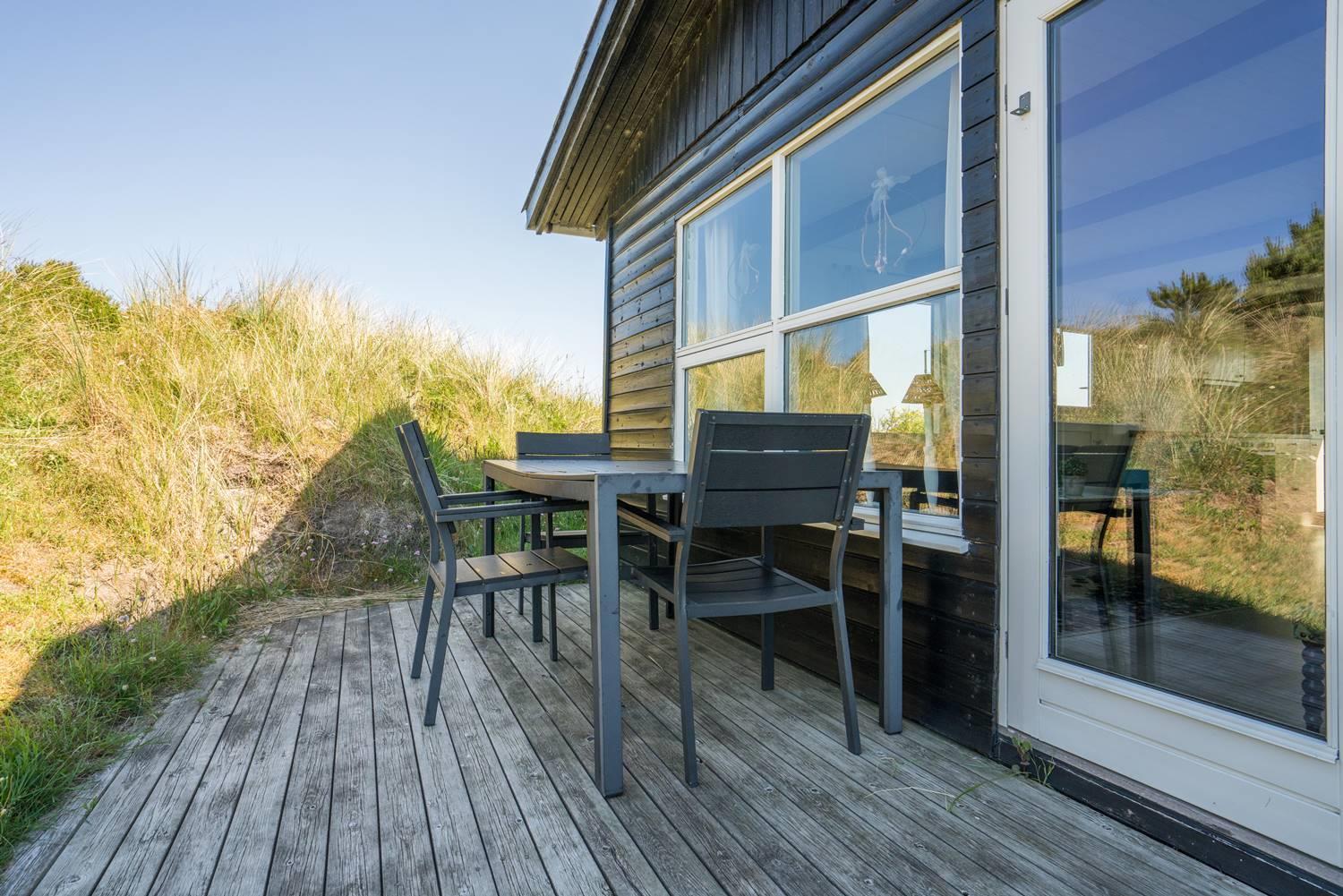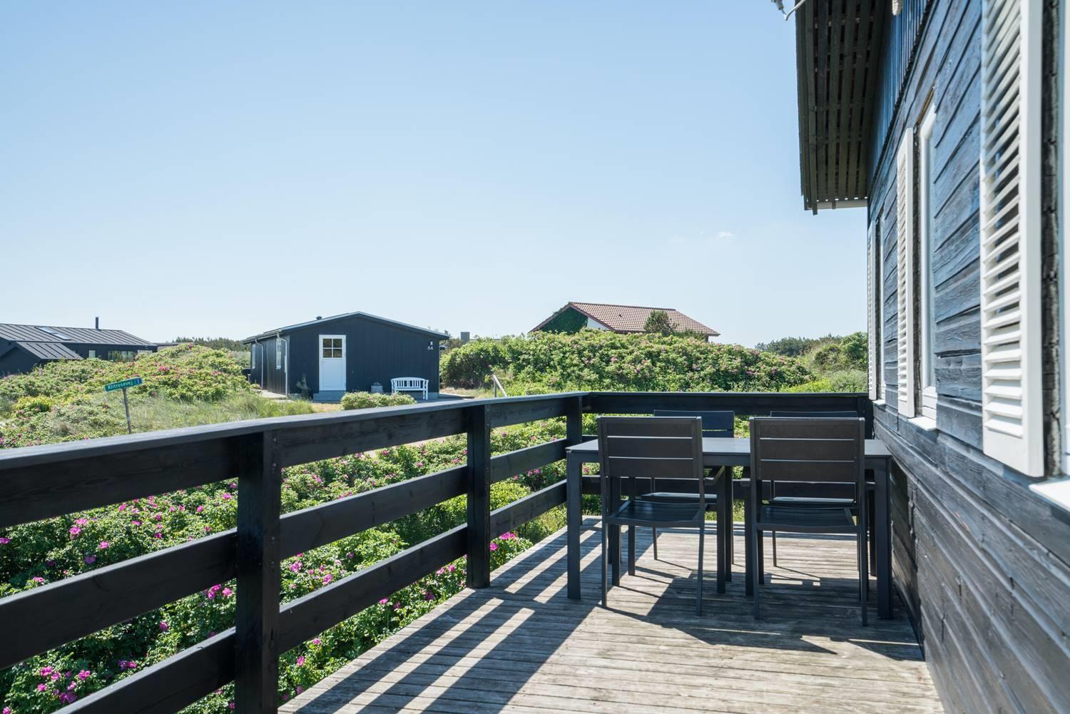 Charmerende feriehus i Henne Strand med spa, flere terrasser og flot udsigt over klitterne.