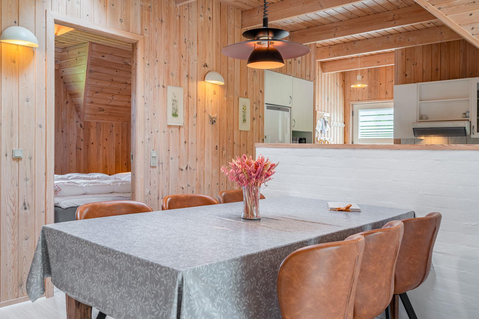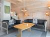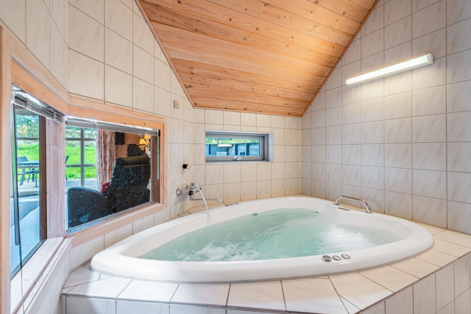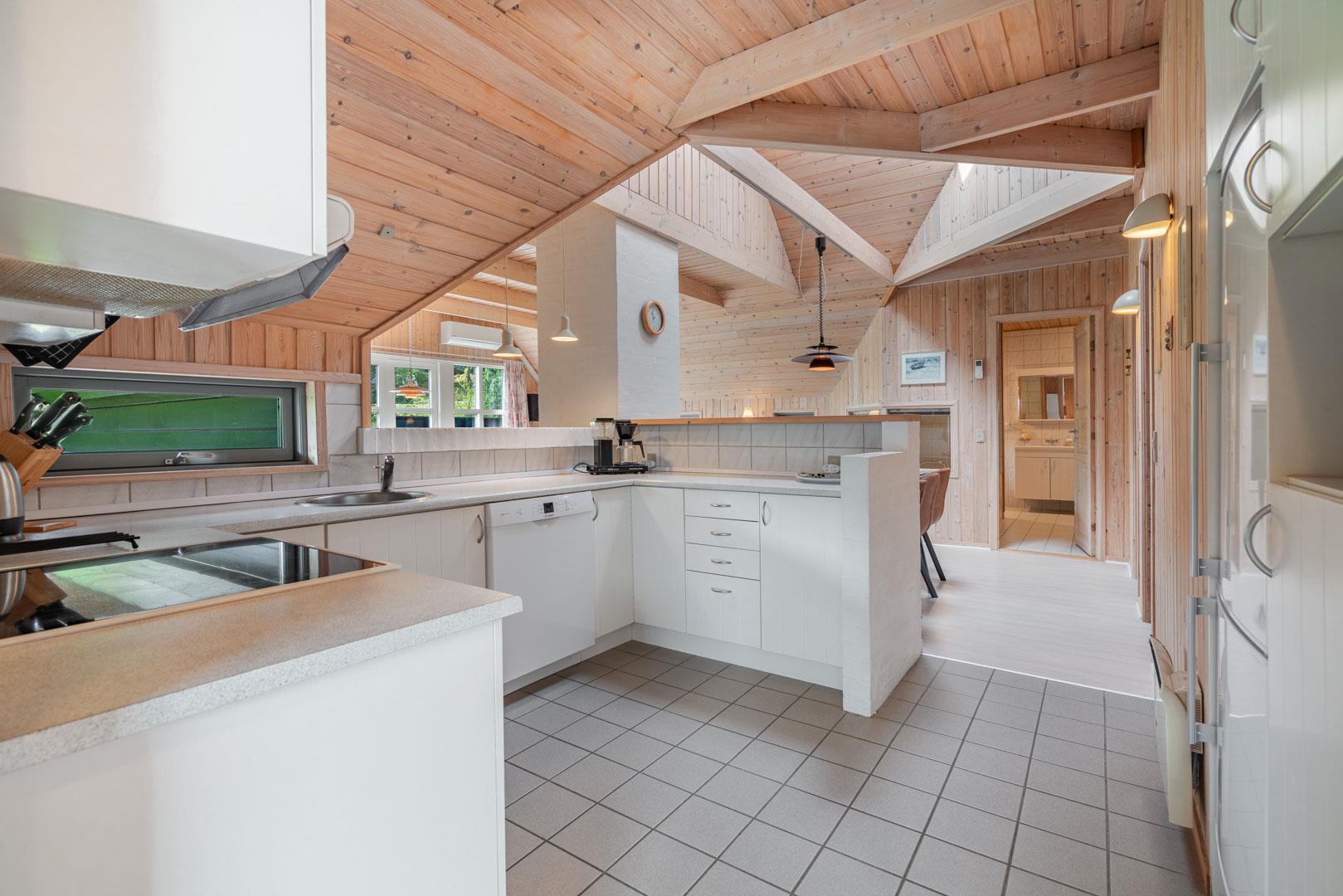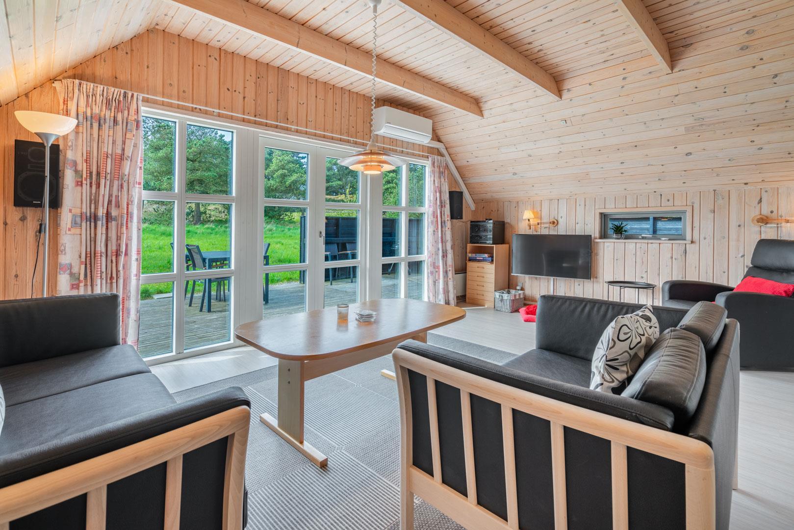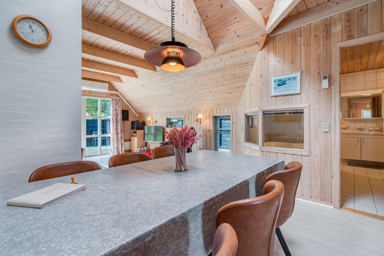 Her kan du opleve den ægte sommerhusstemning i dette hyggelige stråtækte træsommerhus på en stor naturgrund i populære Henne Strand. Her venter dig en ferieoplevelse, der vil tilfredsstille selv de mest kræsne. Indvendigt byder feriehuset på en lys og indbydende atmosfære med smuk træbeklædning og en hyggelig stue, der ligger i åben forbindelse med et velindrettet køkken og spisestue. Fra stuen kan man nyde den skønne udsigt over den store naturgrund gennem det store vinduesparti. Træterrassen, der omkranser en stor del af huset, inviterer til afslapning og hygge under åben himmel. Med to rummelige soveværelser med dobbeltsenge og et børnevenligt værelse med en etageseng og en enkelt seng er der plads til hele familien. Det store badeværelse byder på wellnessoplevelser med både sauna og spabad, mens du også kan finde et ekstra toilet i sommerhuset.