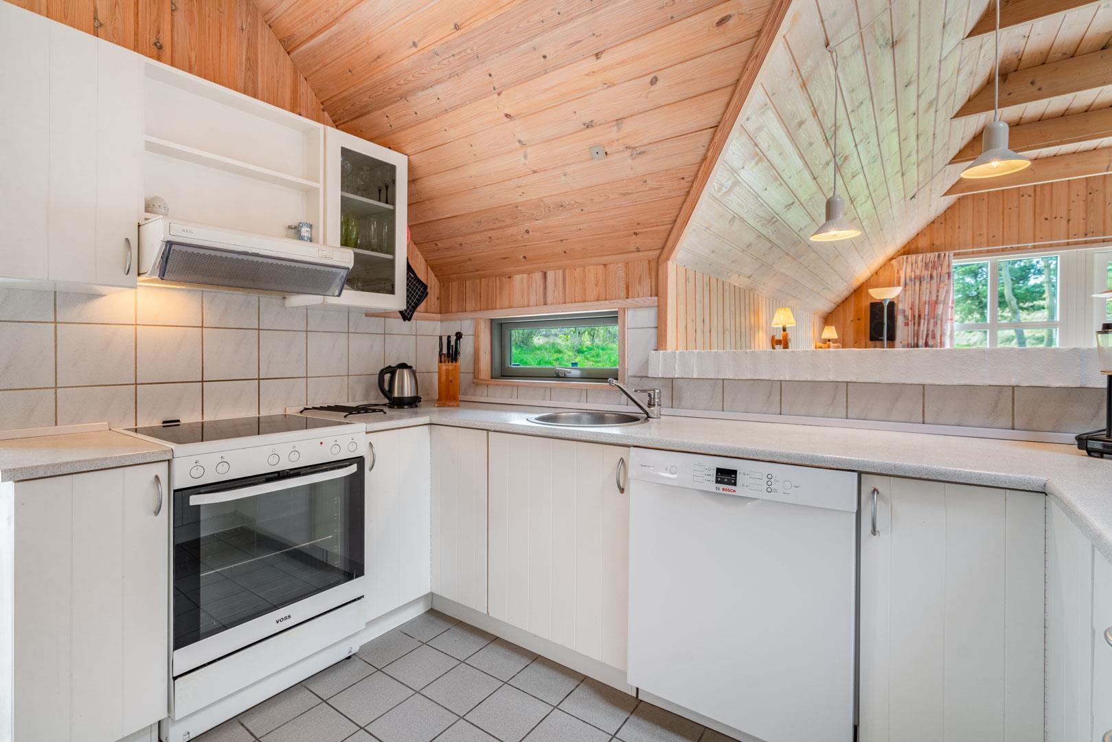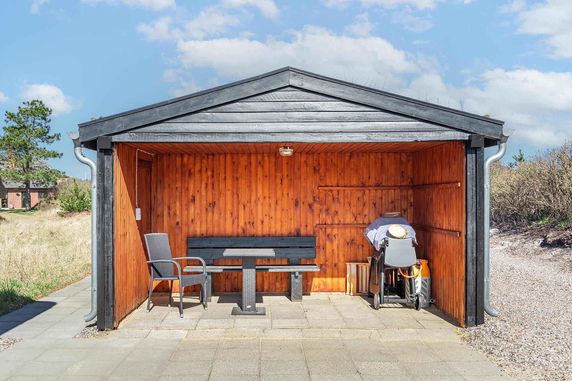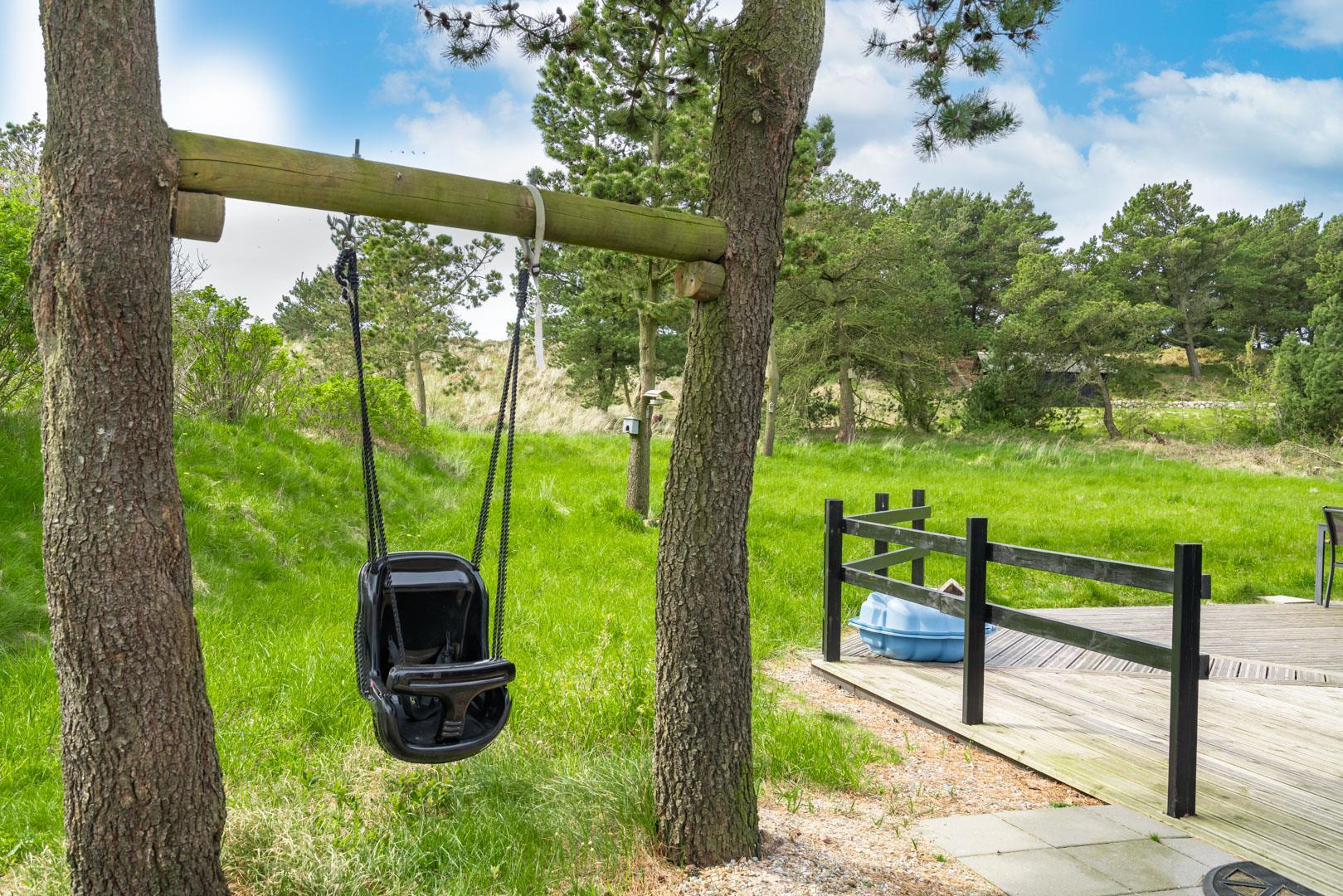 Udendørs kan sommerhalvåret virkelig nydes på den store træterrasse, der er udstyret med både havemøbler og solsenge. Her kan du sidde og nyde en god kop kaffe og den skønne natur, imens de yngste feriegæster vil elske den lille sandkasse og babygyngen. Med en beliggenhed, der er tilbagetrukket nok til ro og fred, men stadig centralt nok til at nyde Henne Strands café- og handelsliv samt den skønne hvide badestrand, er dette virkelig et dejligt sommerhus, der lægger op til en afslappende og behagelig ferieoplevelse.