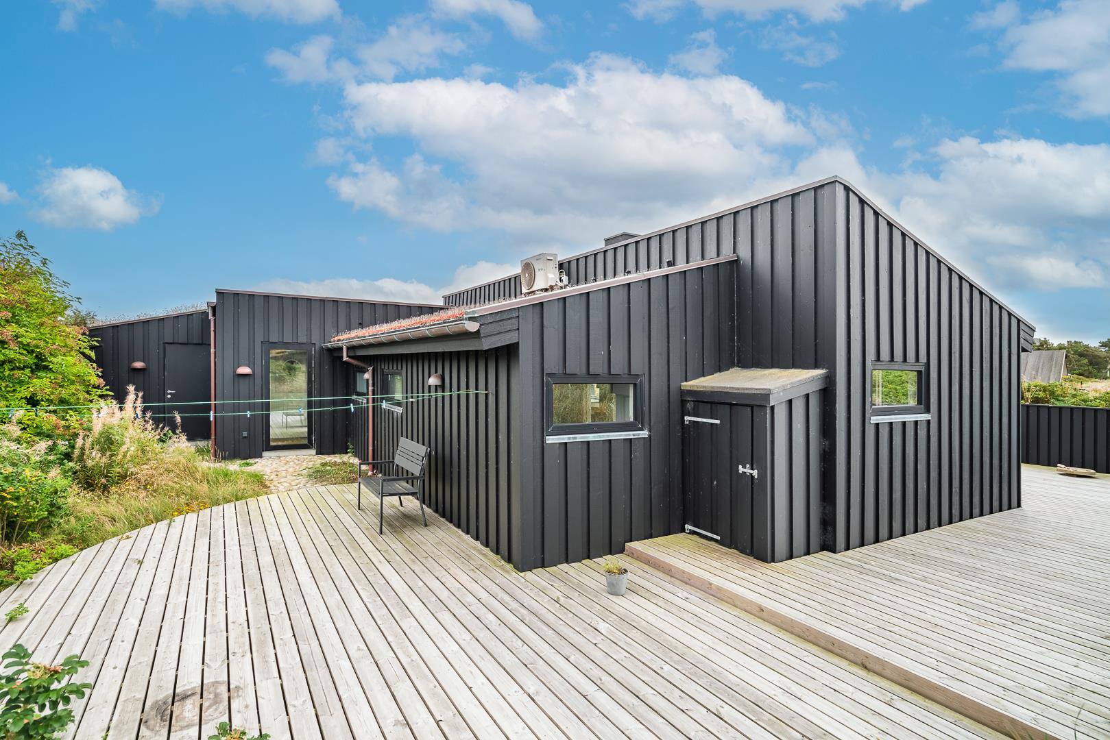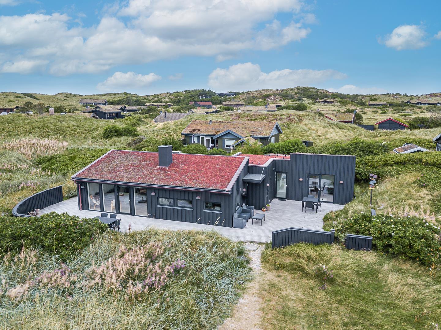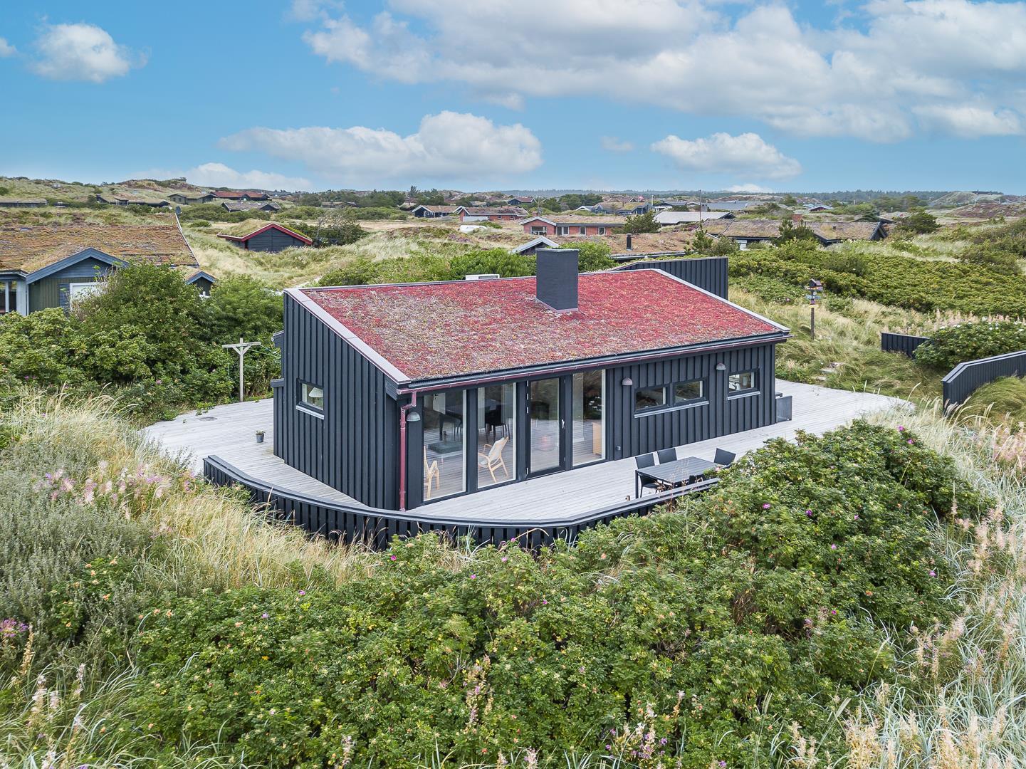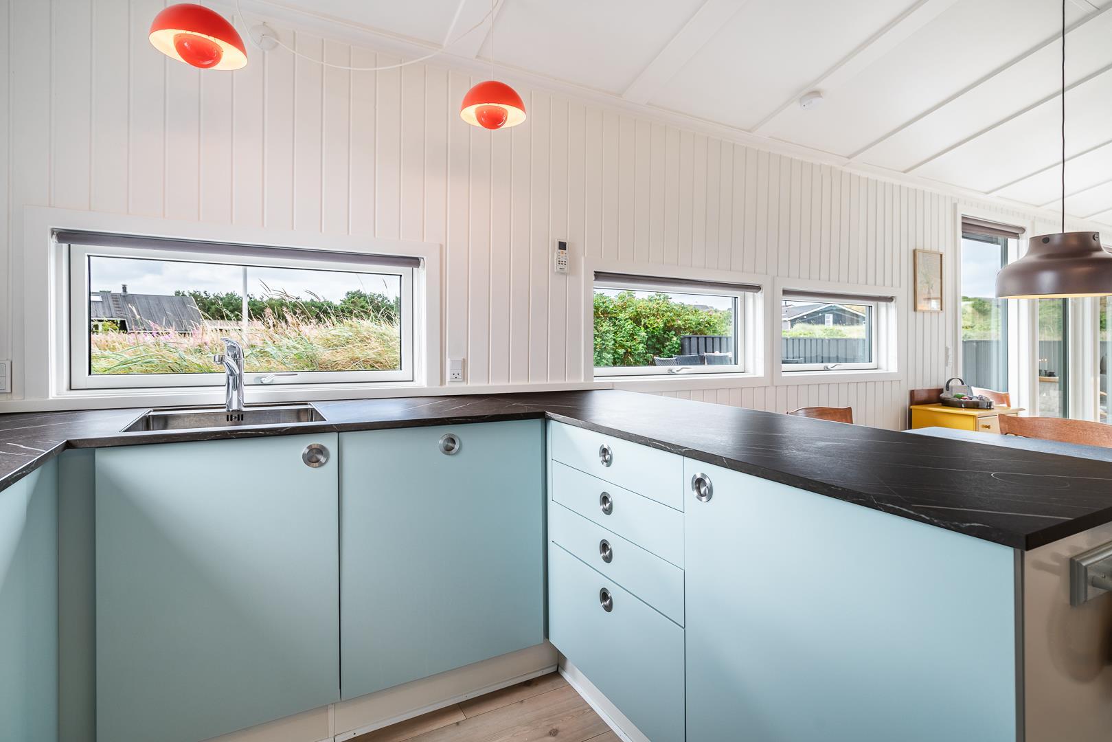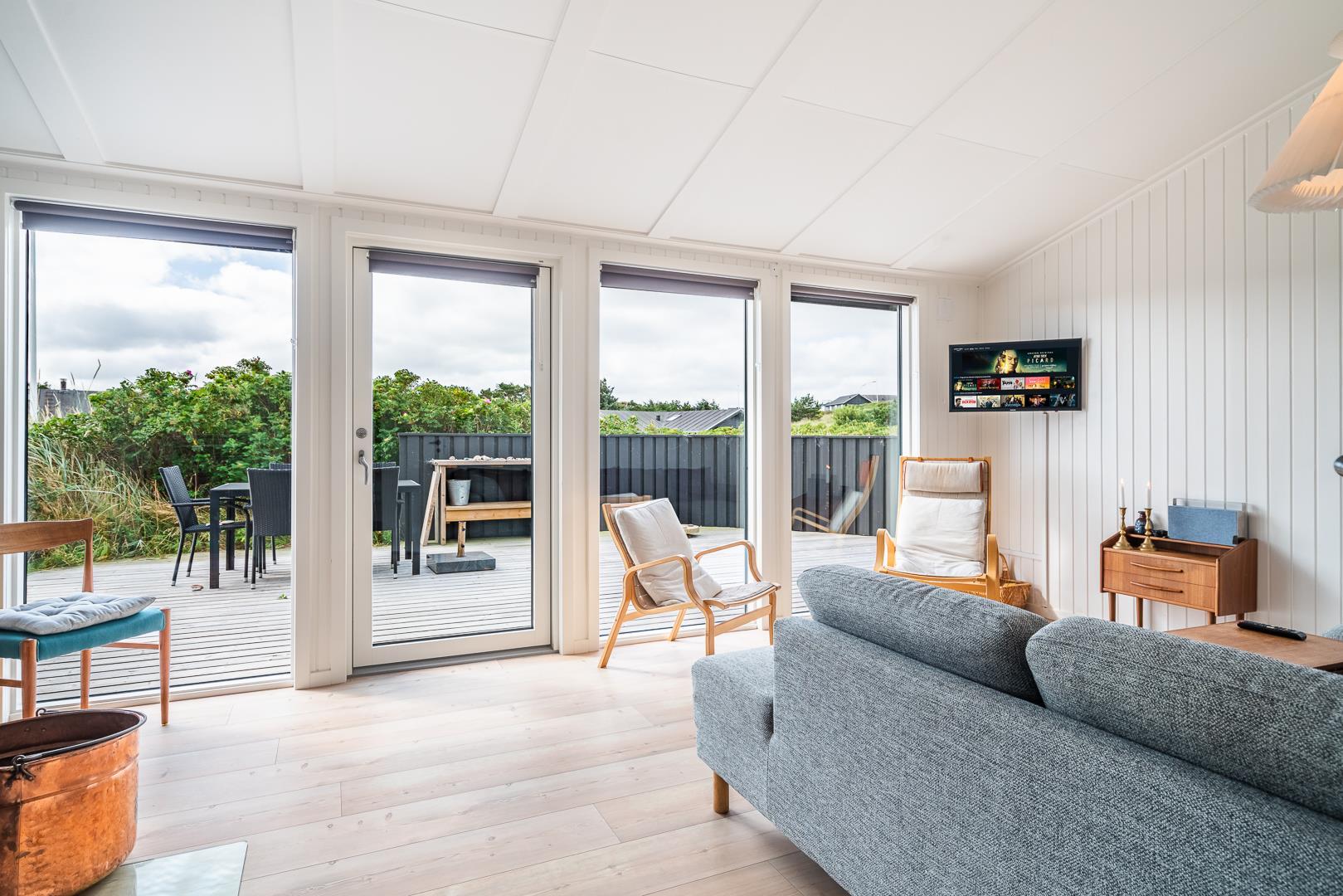 På en pragtfuld naturgrund tæt på Henne Mølle Å og i nærheden af stort fredet hede område ligger dette totalt renoverede feriehus. Huset er moderne indrettet med en smag af retro. Smart køkken med opvaskemaskine og separat fryser i åben forbindelse til spiseafdeling og stue. Hyggelig stue med central placeret brændeovn og udgang til ugeneret sydvendt, stor træ terrasse, hvorfra solen og den flotte natur kan nydes i fulde drag. Der findes 3 soverum, 2 soverum med dobbelt seng, hvoraf det ene har TV, derudover findes mindre værelse med køjer og TV. Energi besparende og miljøvenlig varmepumpe. Et rigtig dejligt feriehus med stil og charme til familien, der ønsker at bo midt i den skønneste natur med udsigt til klitter og ikke langt fra Vesterhavet.