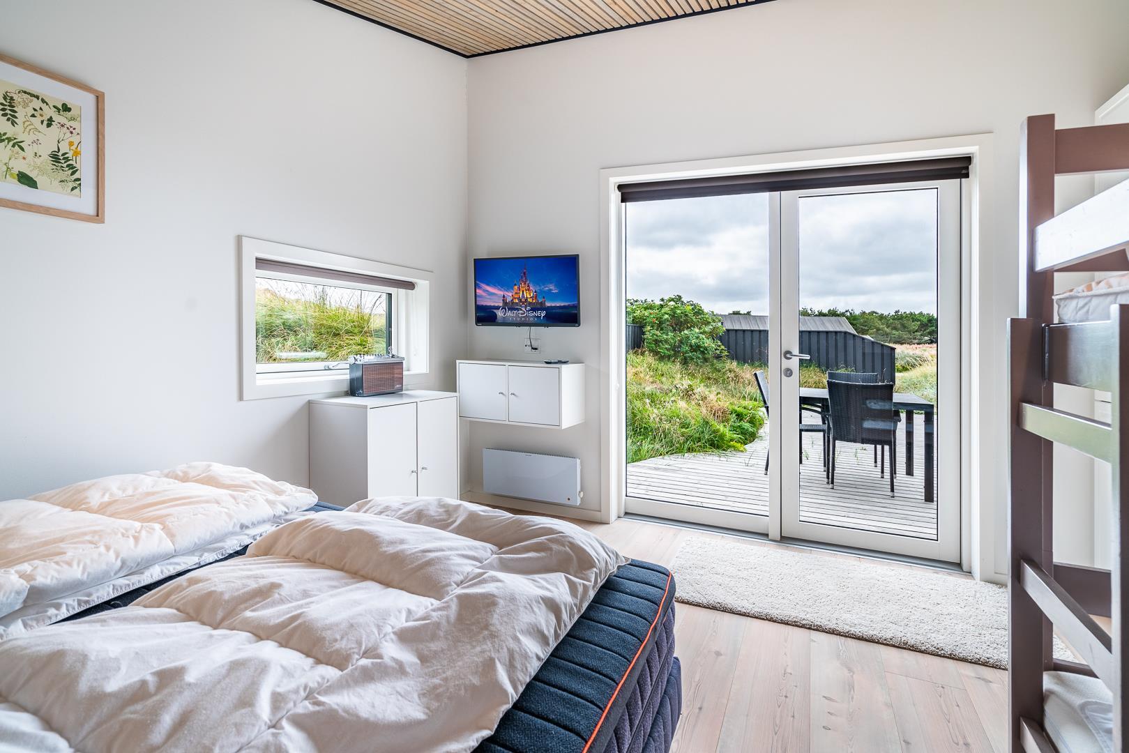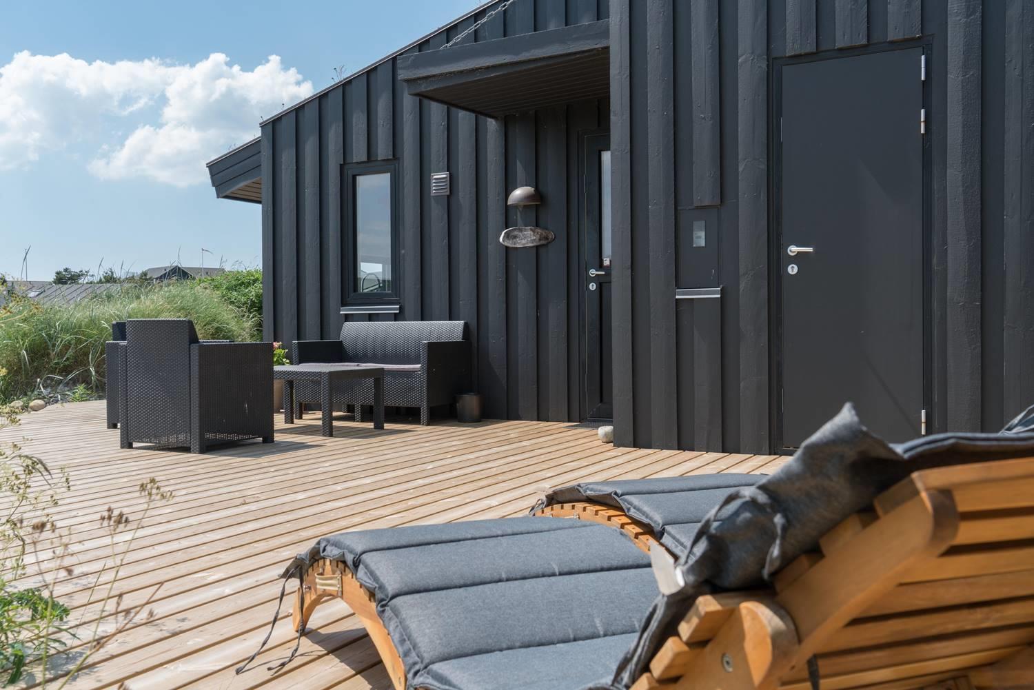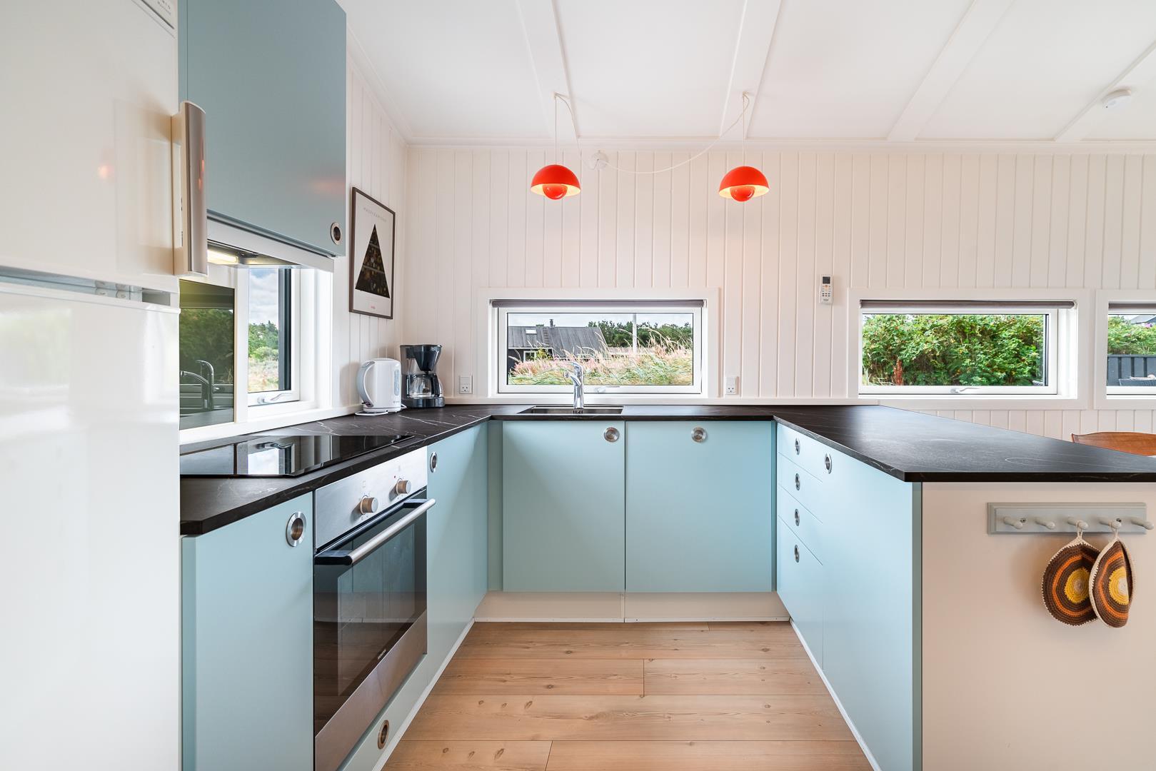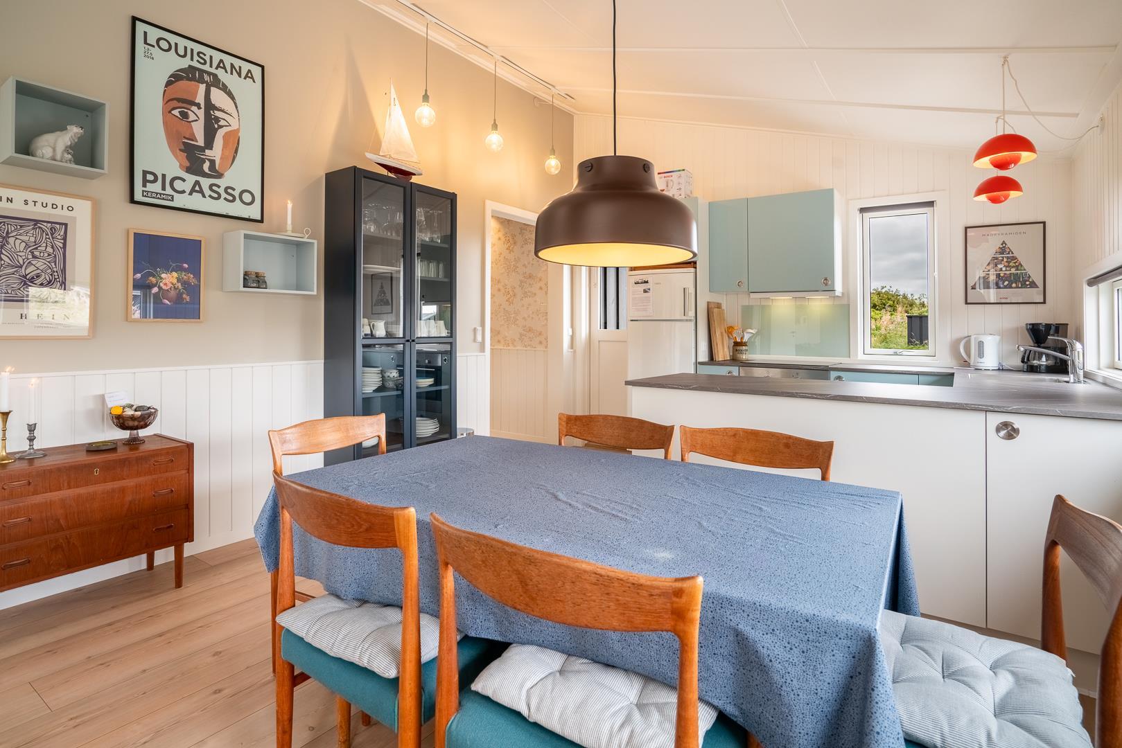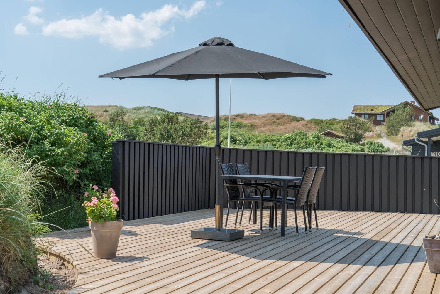 På en pragtfuld naturgrund tæt på Henne Mølle Å og i nærheden af stort fredet hede område ligger dette totalt renoverede feriehus. Huset er moderne indrettet med en smag af retro. Smart køkken med opvaskemaskine og separat fryser i åben forbindelse til spiseafdeling og stue. Hyggelig stue med central placeret brændeovn og udgang til ugeneret sydvendt, stor træ terrasse, hvorfra solen og den flotte natur kan nydes i fulde drag. Der findes 3 soverum, 2 soverum med dobbelt seng, hvoraf det ene har TV, derudover findes mindre værelse med køjer og TV. Energi besparende og miljøvenlig varmepumpe. Et rigtig dejligt feriehus med stil og charme til familien, der ønsker at bo midt i den skønneste natur med udsigt til klitter og ikke langt fra Vesterhavet.