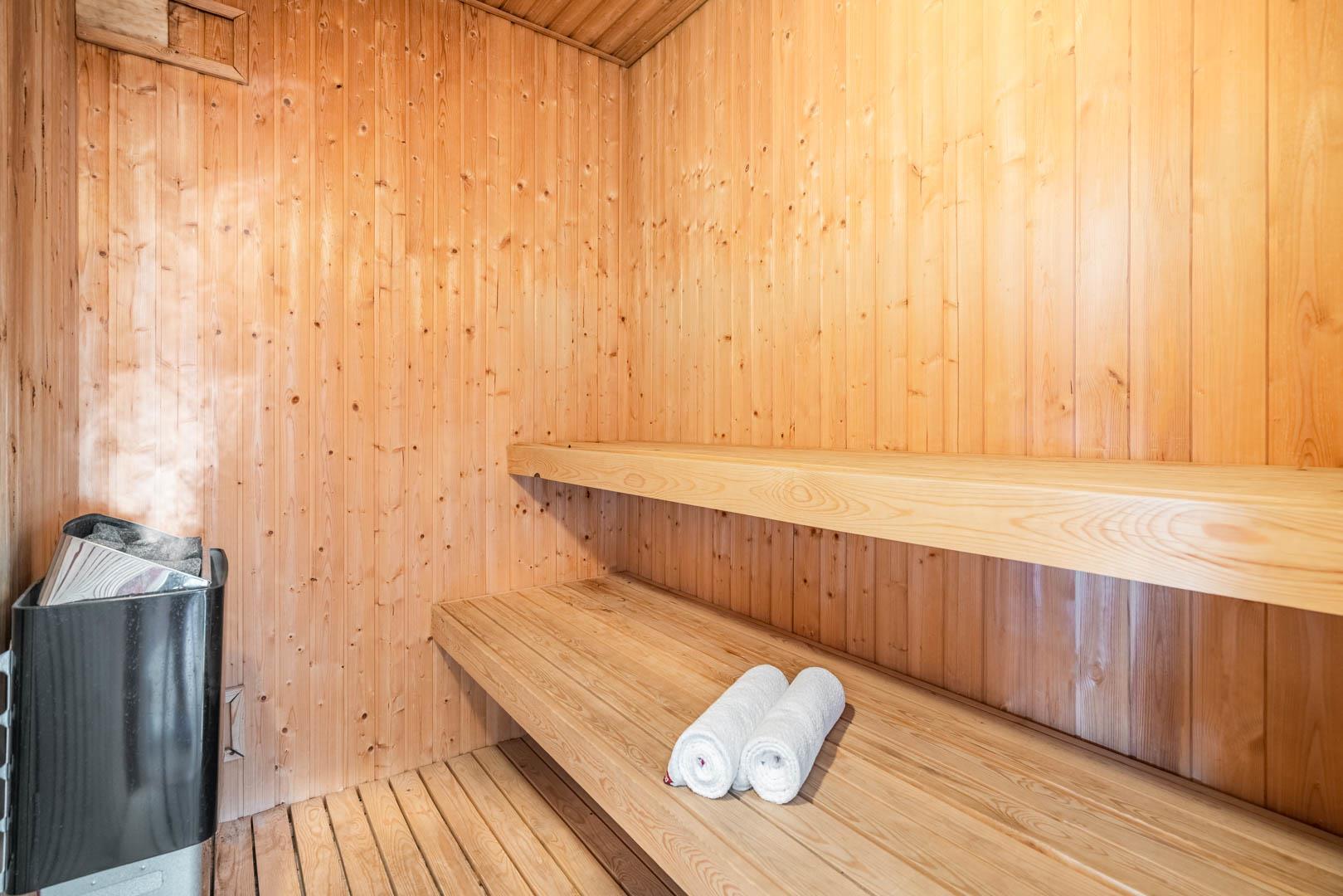 Fra poolafdelingen er der udgang til pragtfuld lukket gårdterrasse, hvilket er skønt i sommermånederne, når dagene er langsomme, og I ikke har lyst til at gå ned til det "rigtige" vand, når I vil køles lidt ned. I de kolde måneder er den nemme adgang til saunaen skøn for friske vinterbadere.