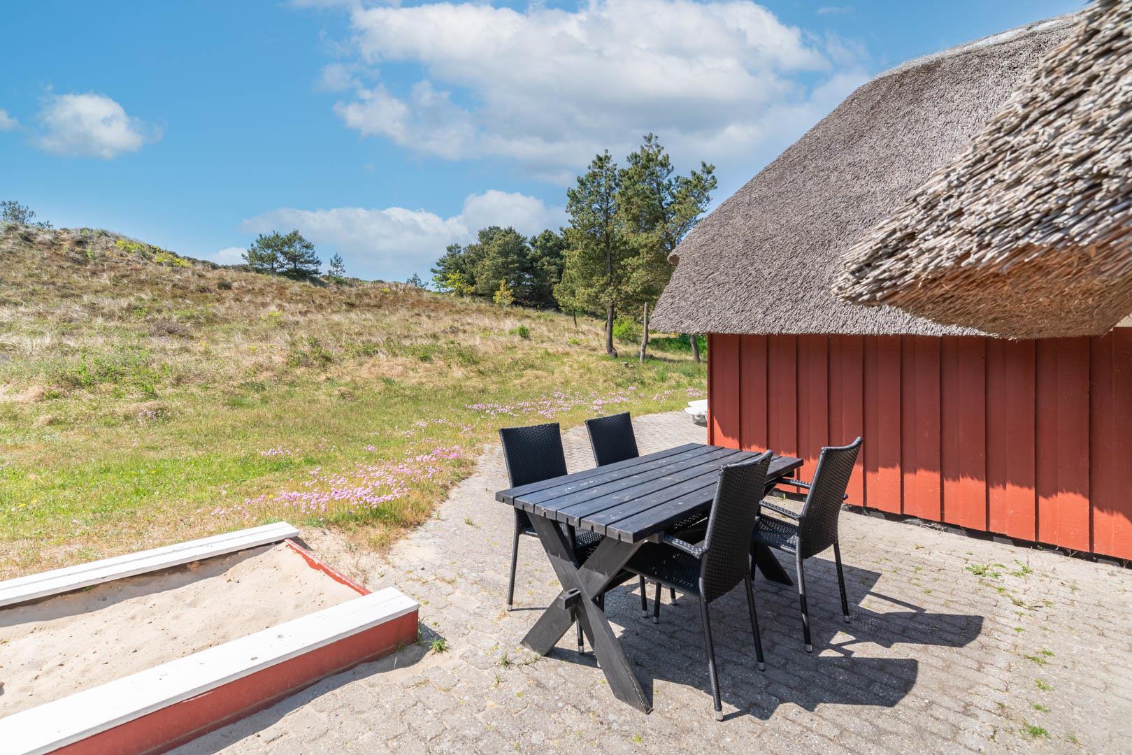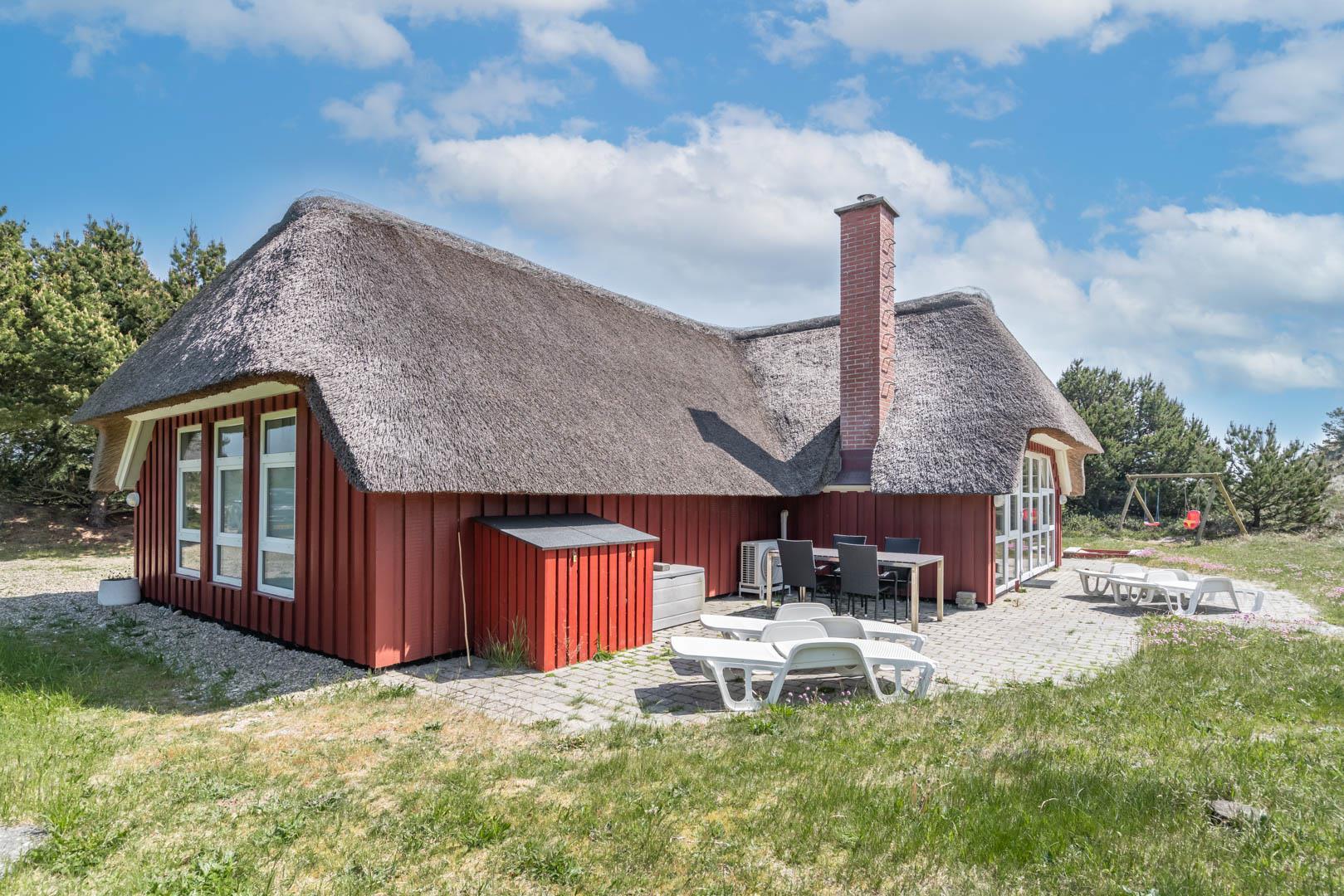 Velkommen til dette skønne og yderst velholdte sommerhus med stråtag, beliggende helt ugeneret på en smuk natur- og klitgrund i gåafstand til Henne Strand by og den fantastiske strand. Her får du det bedste af begge verdener – fred, ro og naturskønne omgivelser tæt på byens liv og faciliteter.