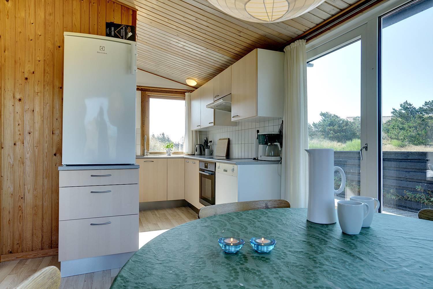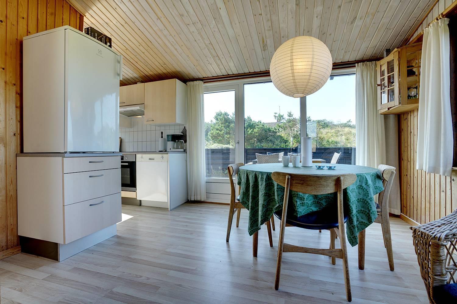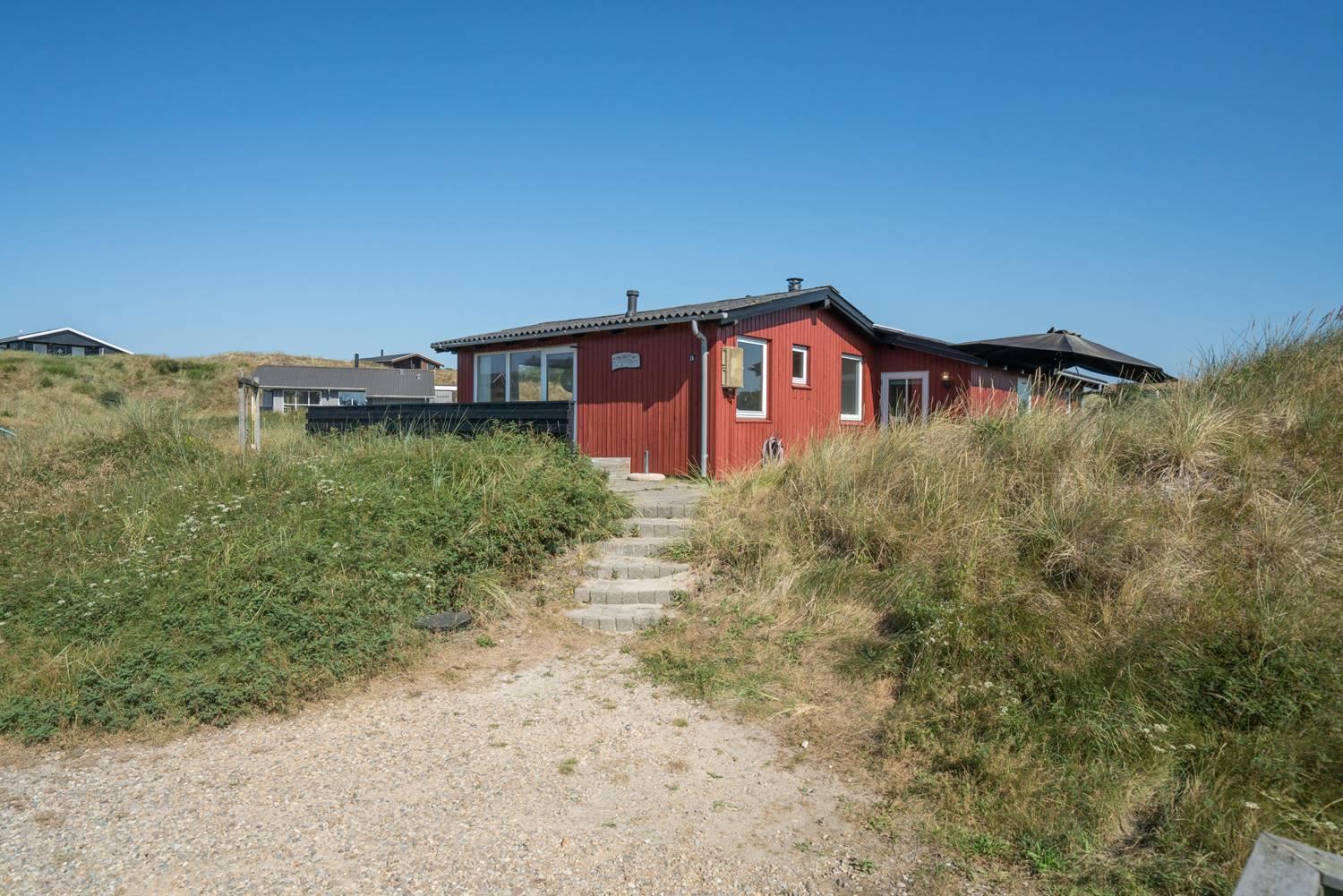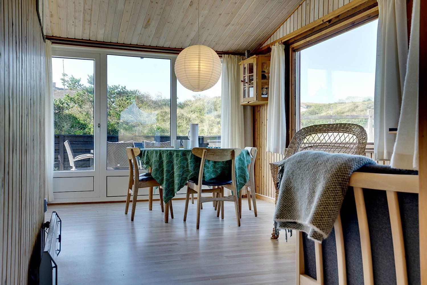 På en dejlig, kuperet naturgrund tæt ved vandet ligger dette hyggelige feriehus med 2 badeværelser med bruser. Lige meget om man sidder i stuen eller på terrassen, kan man nyde udsigten til klitlandskabet. Der er kombineret køkken/spiseafdeling. Der er 3 skønne terrasser, hvor der altid kan findes en lækrog. Der er lavet nyt køkken i 2011.