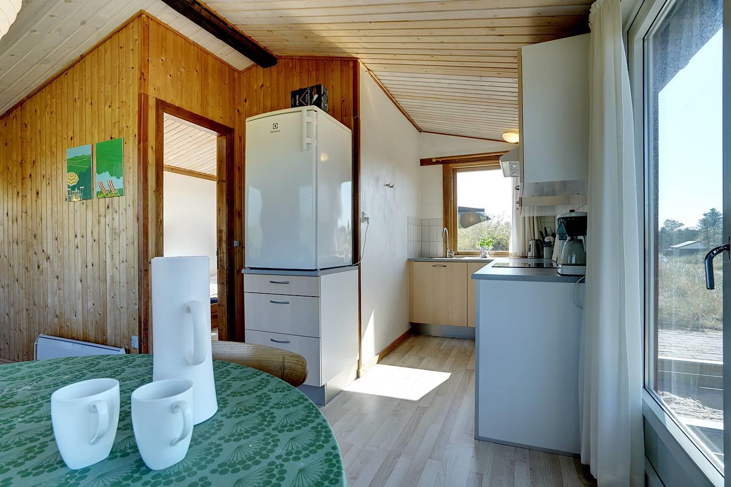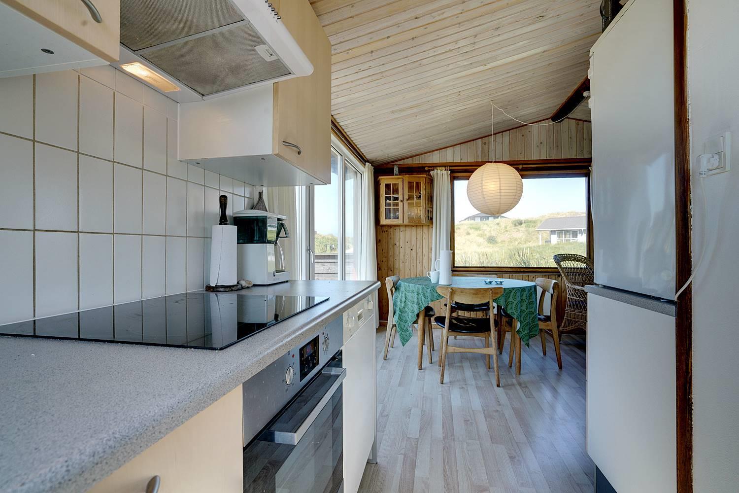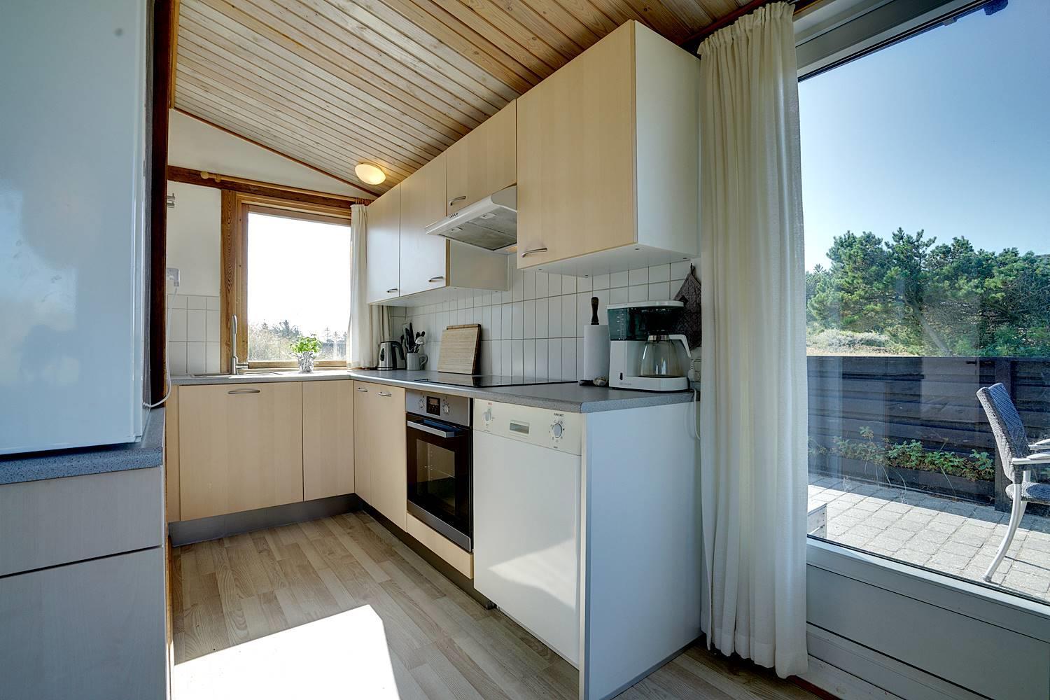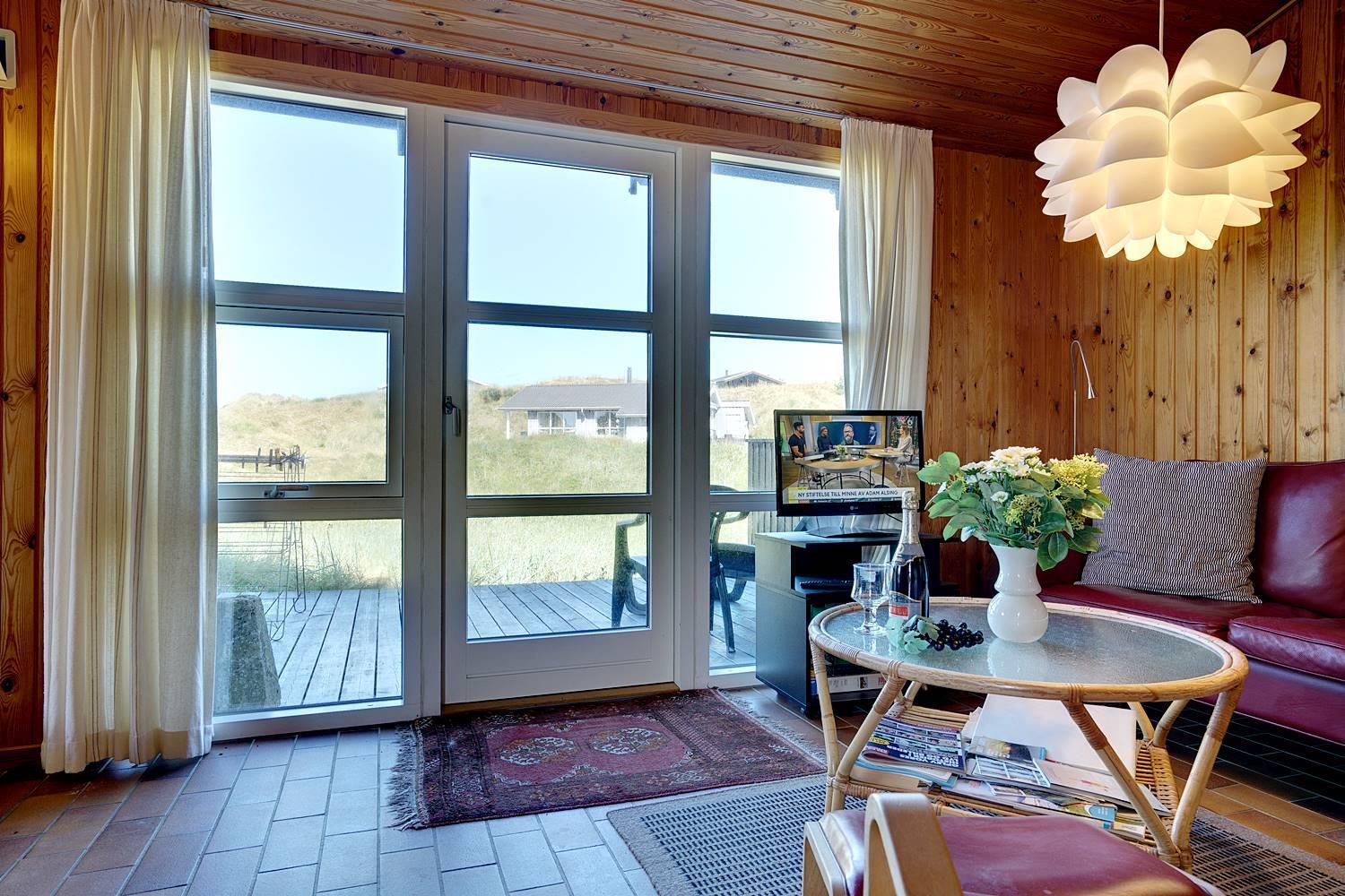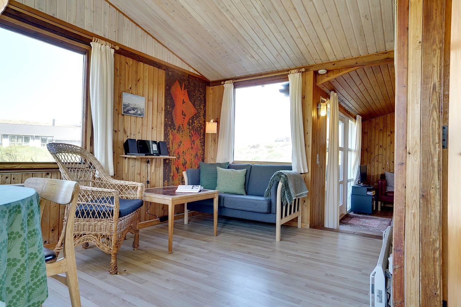 På en dejlig, kuperet naturgrund tæt ved vandet ligger dette hyggelige feriehus med 2 badeværelser med bruser. Lige meget om man sidder i stuen eller på terrassen, kan man nyde udsigten til klitlandskabet. Der er kombineret køkken/spiseafdeling. Der er 3 skønne terrasser, hvor der altid kan findes en lækrog. Der er lavet nyt køkken i 2011.