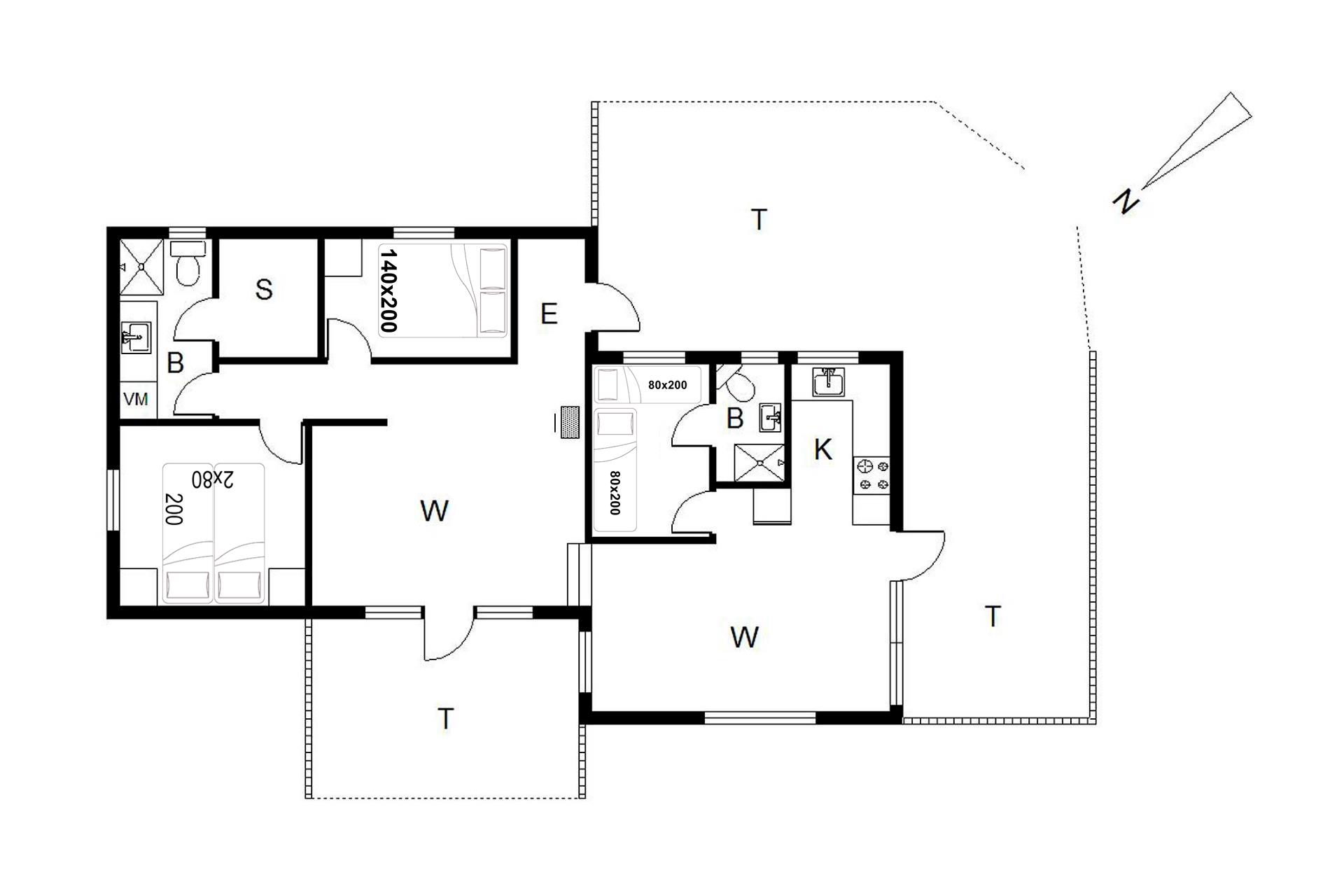 Sengestørrelser: 1 dobbeltseng med 2 madrasser 80 x 200 cm + 1 dobbeltseng 140 x 200 cm + 2 enkeltsenge 80 x 200 cm