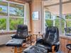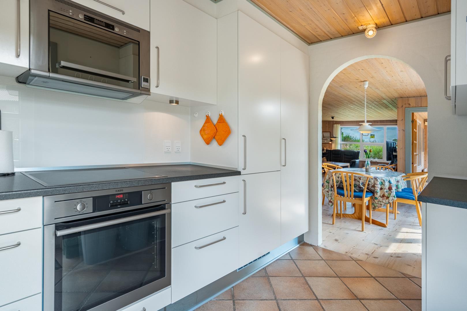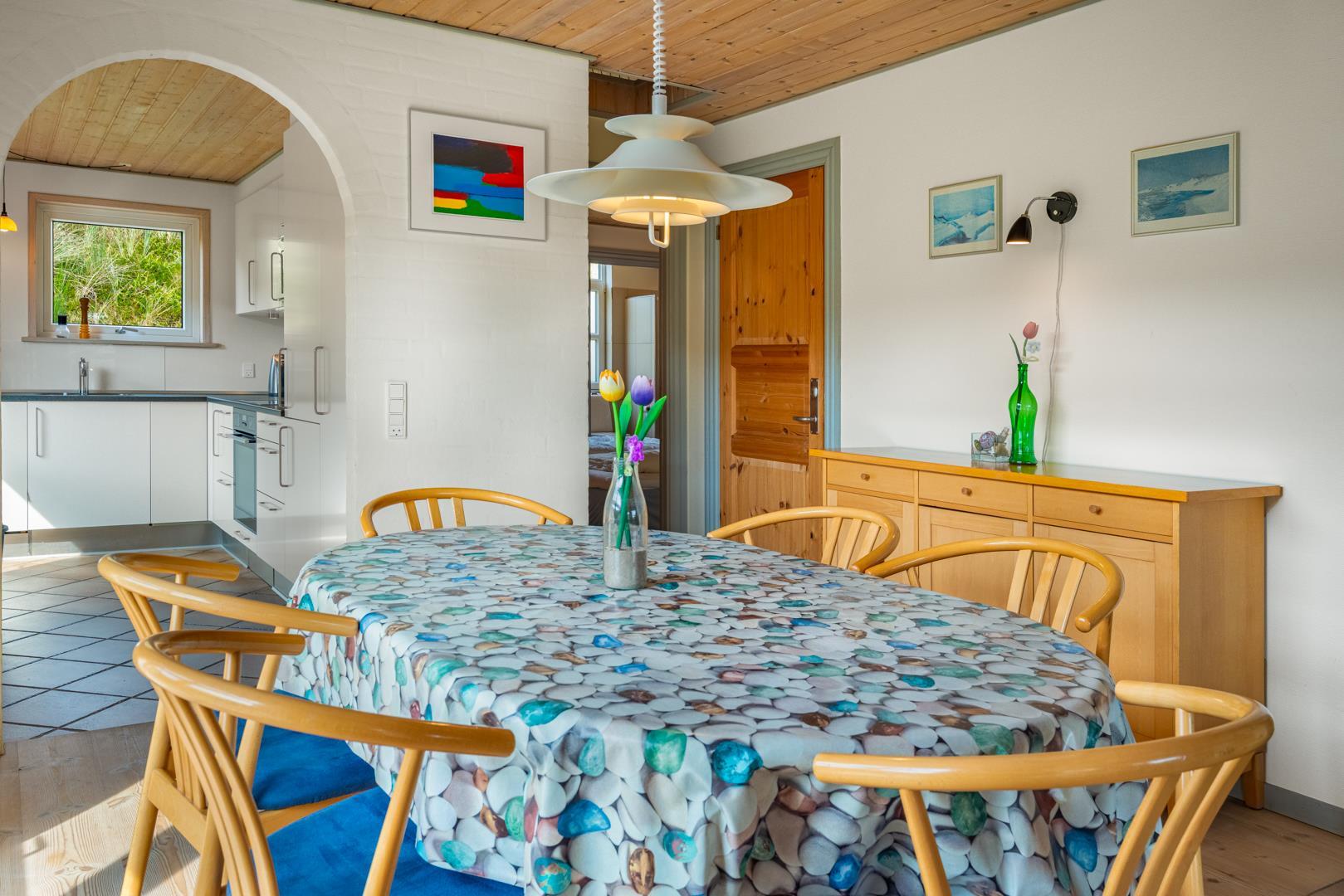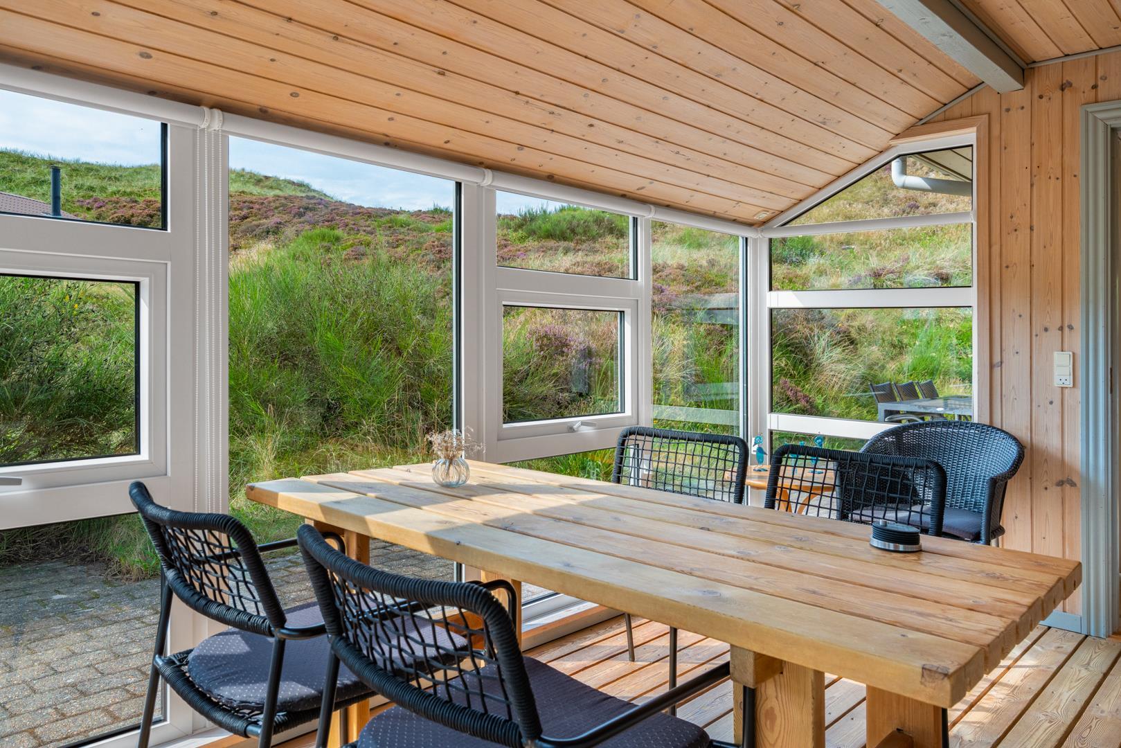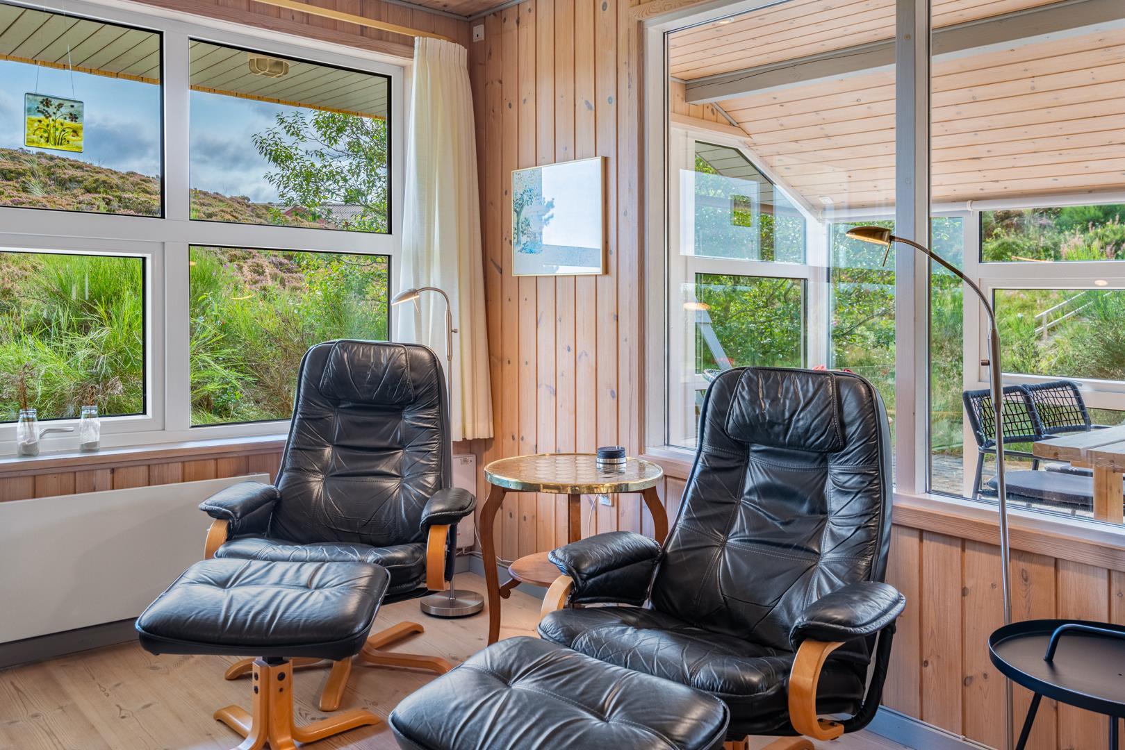 Indendørs finder du entréen med praktisk plads til overtøj og sko, stuen byder velkommen med en hyggelig brændeovn og adgang til en dejlig udestue - perfekt til aftener med spil og bland selv slik, mens du mærker varmen fra brændeovnen.