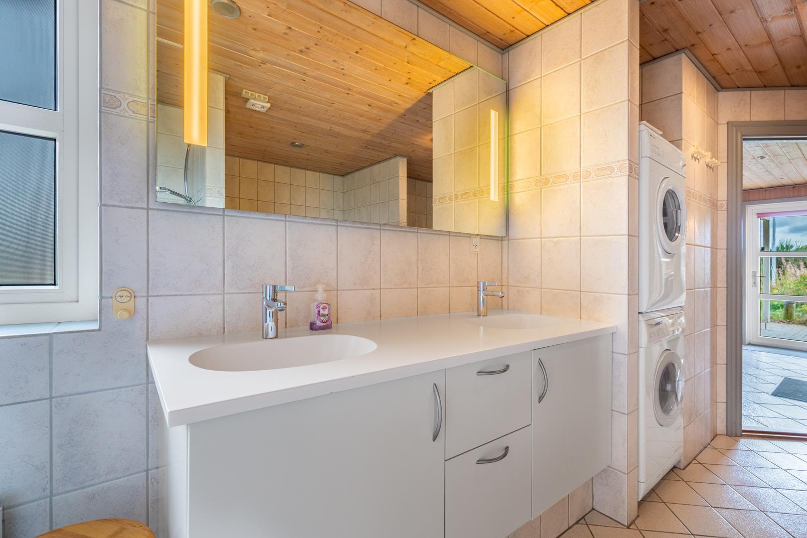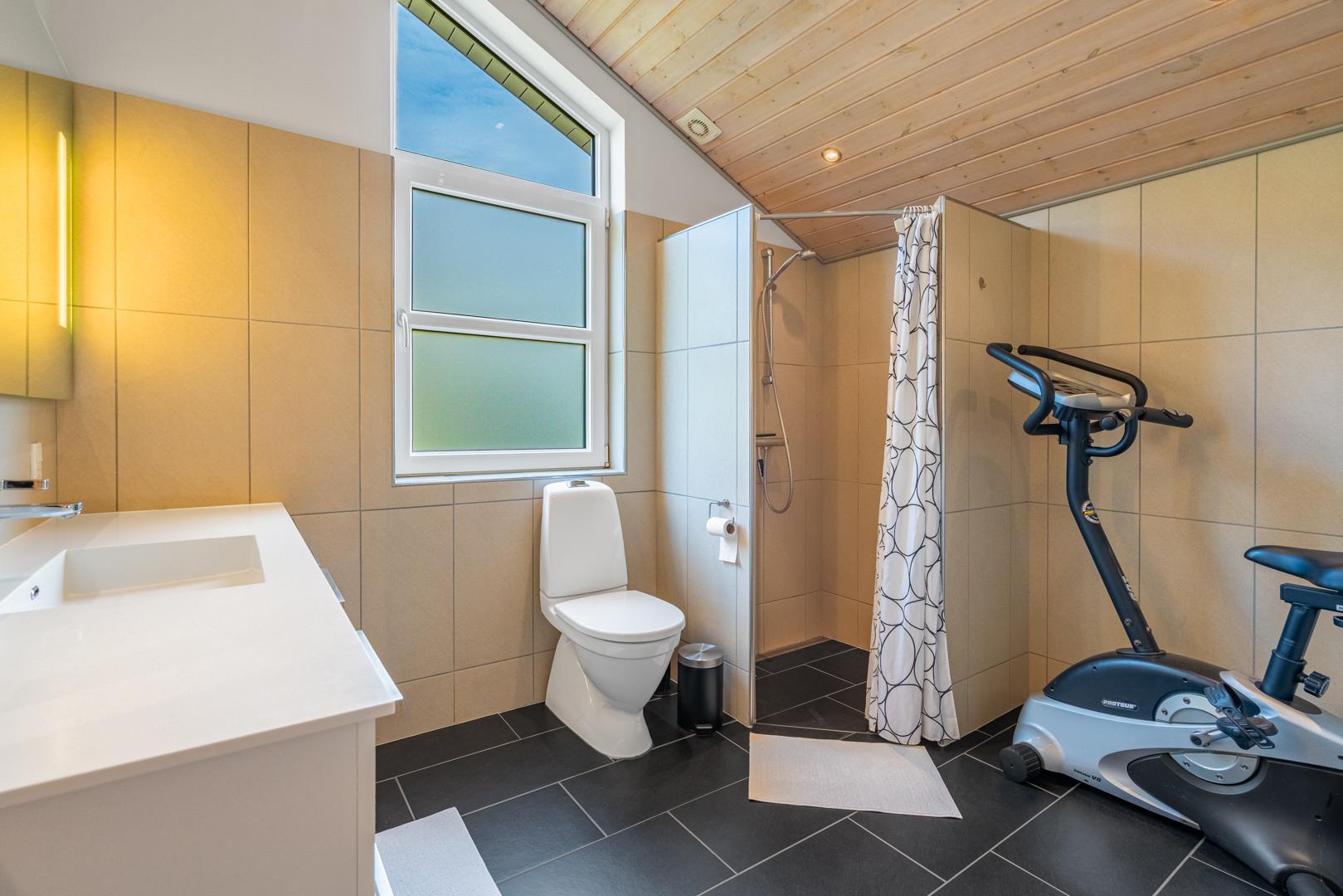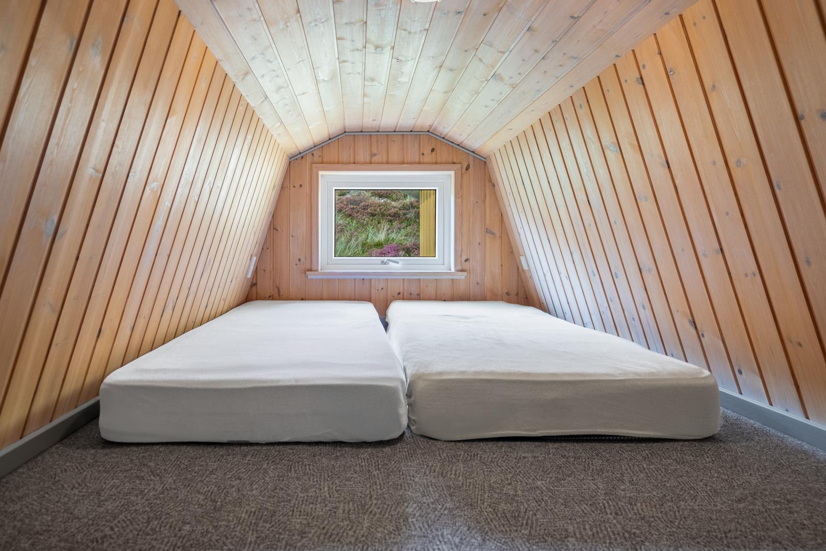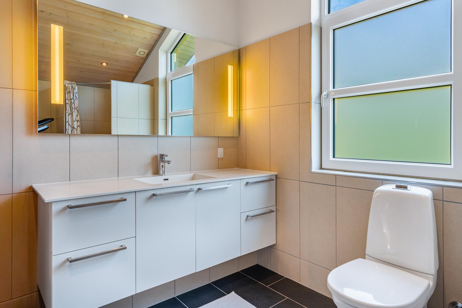 Badeværelset forkæler med en fire-personers spa og sauna, suppleret af et ekstra toilet. I feriehuset finder du to soveværelser med dobbeltsenge på 180x200 cm (1 madras) og 160x200cm (1 madras), et værelse med to køjesenge med sengestørrelser på 80x200 cm samt to sovepladser på hemsen.