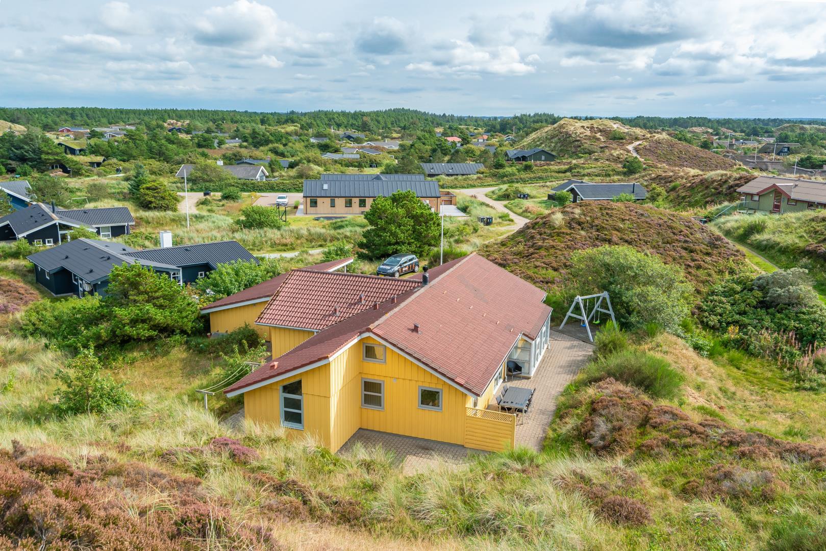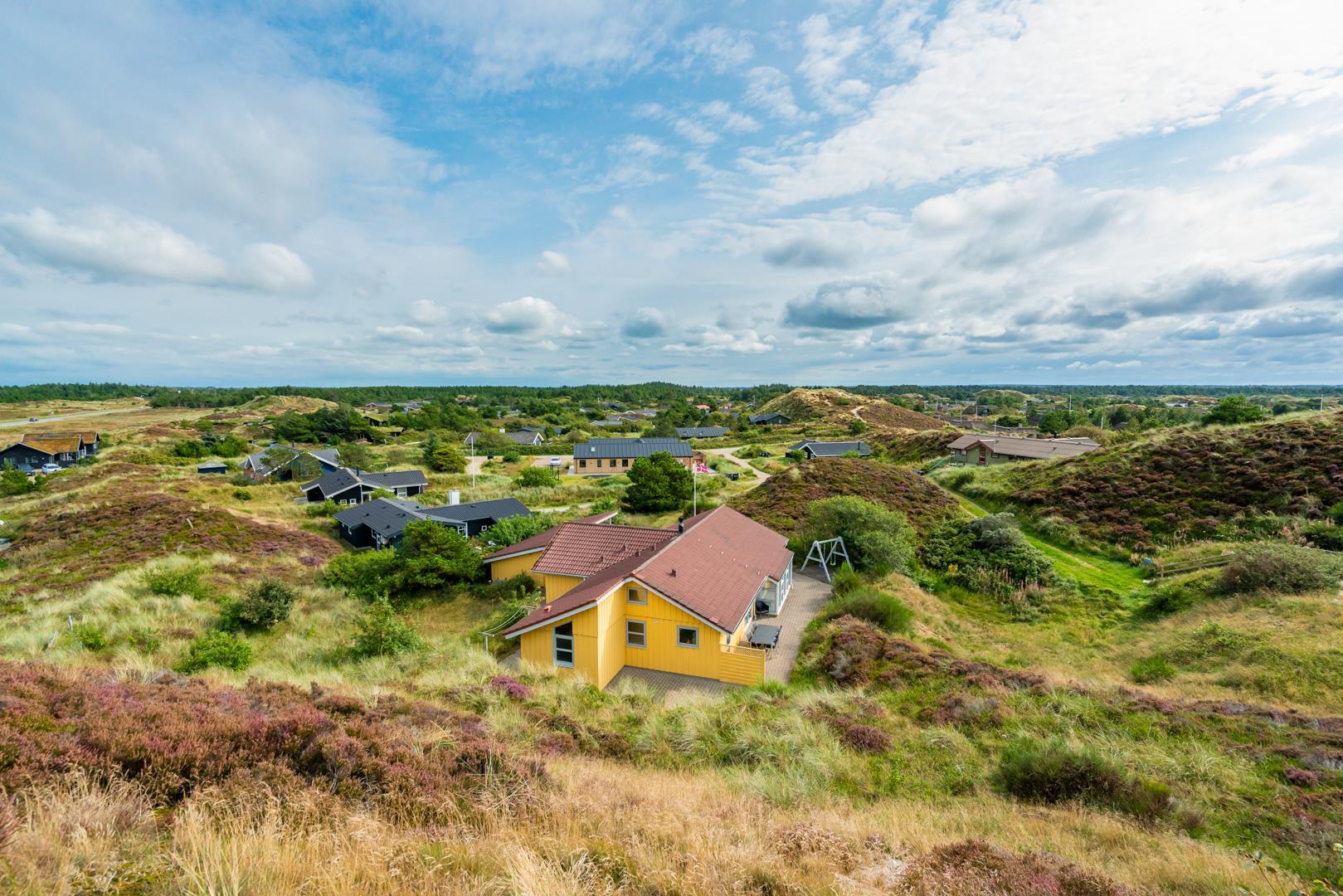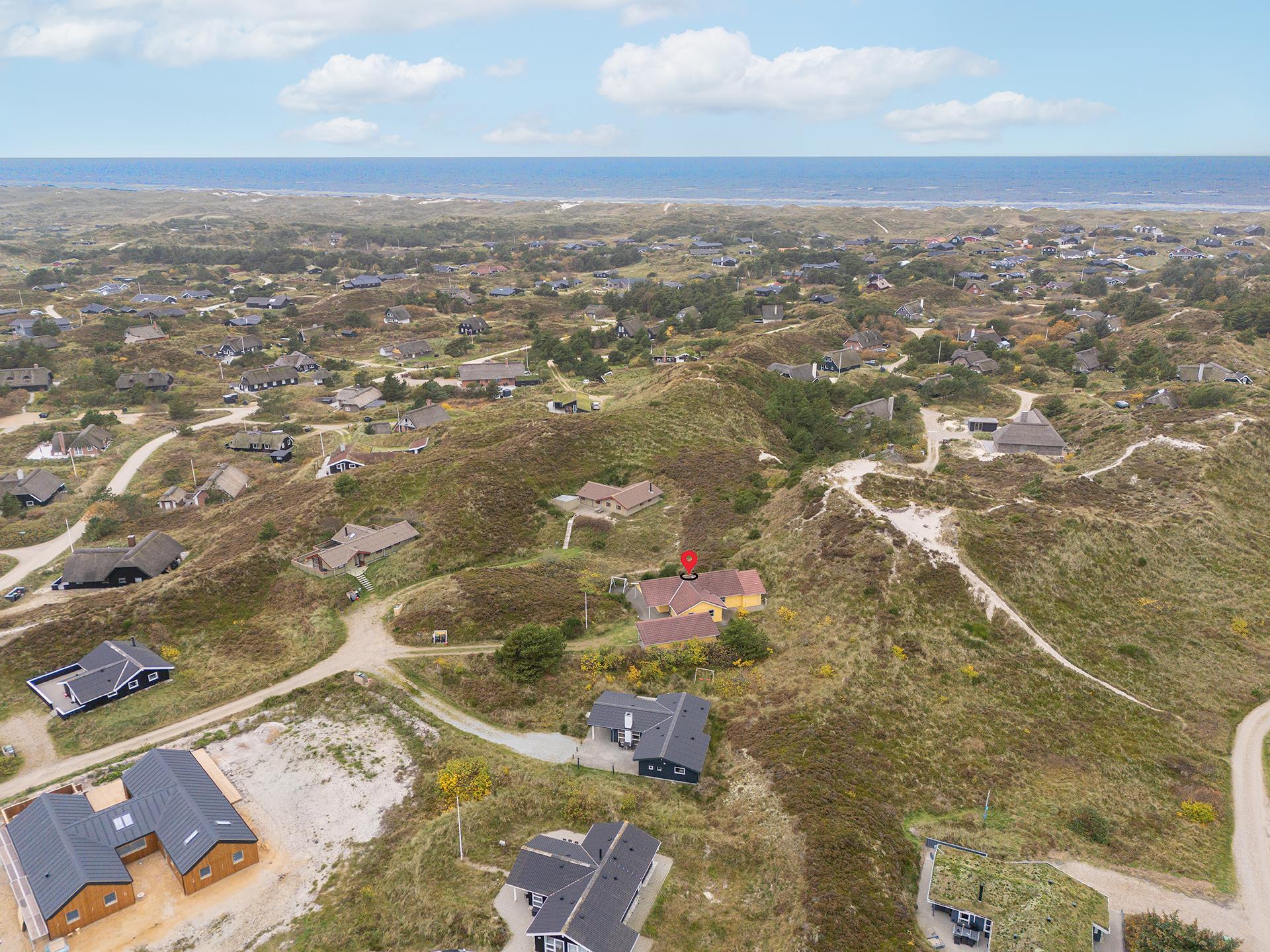 Sommerhuset ligger i gåafstand til Henne Strand by, hvor du kan nyde byens gode shopping muligheder, restauranter og lyden af Vesterhavets brusen. Der er gode muligheder for at udforske de omkringliggende naturstier – husk derfor at medbringe cyklerne.