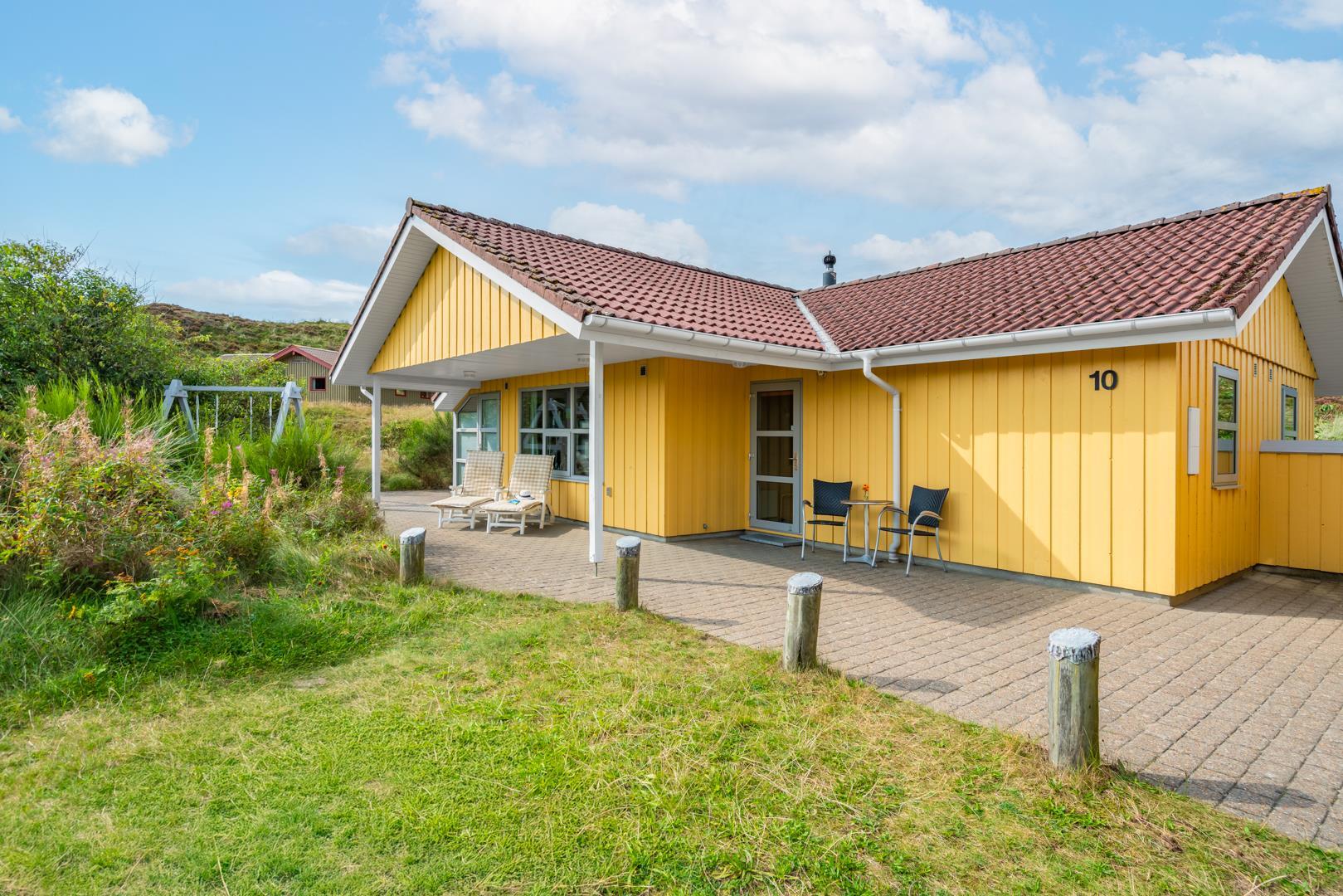 Hyggeligt sommerhus i Henne Strand med spa, sauna og stor terrasse tæt på natur og byliv.