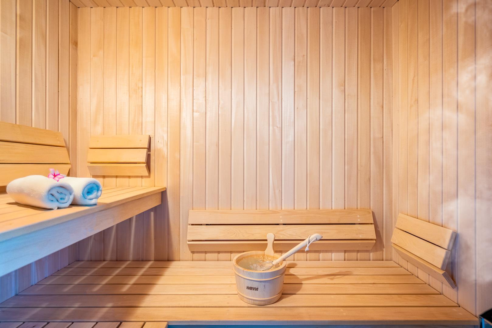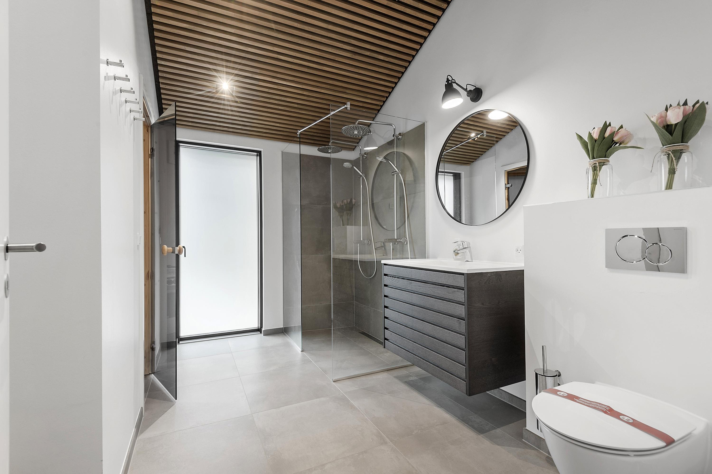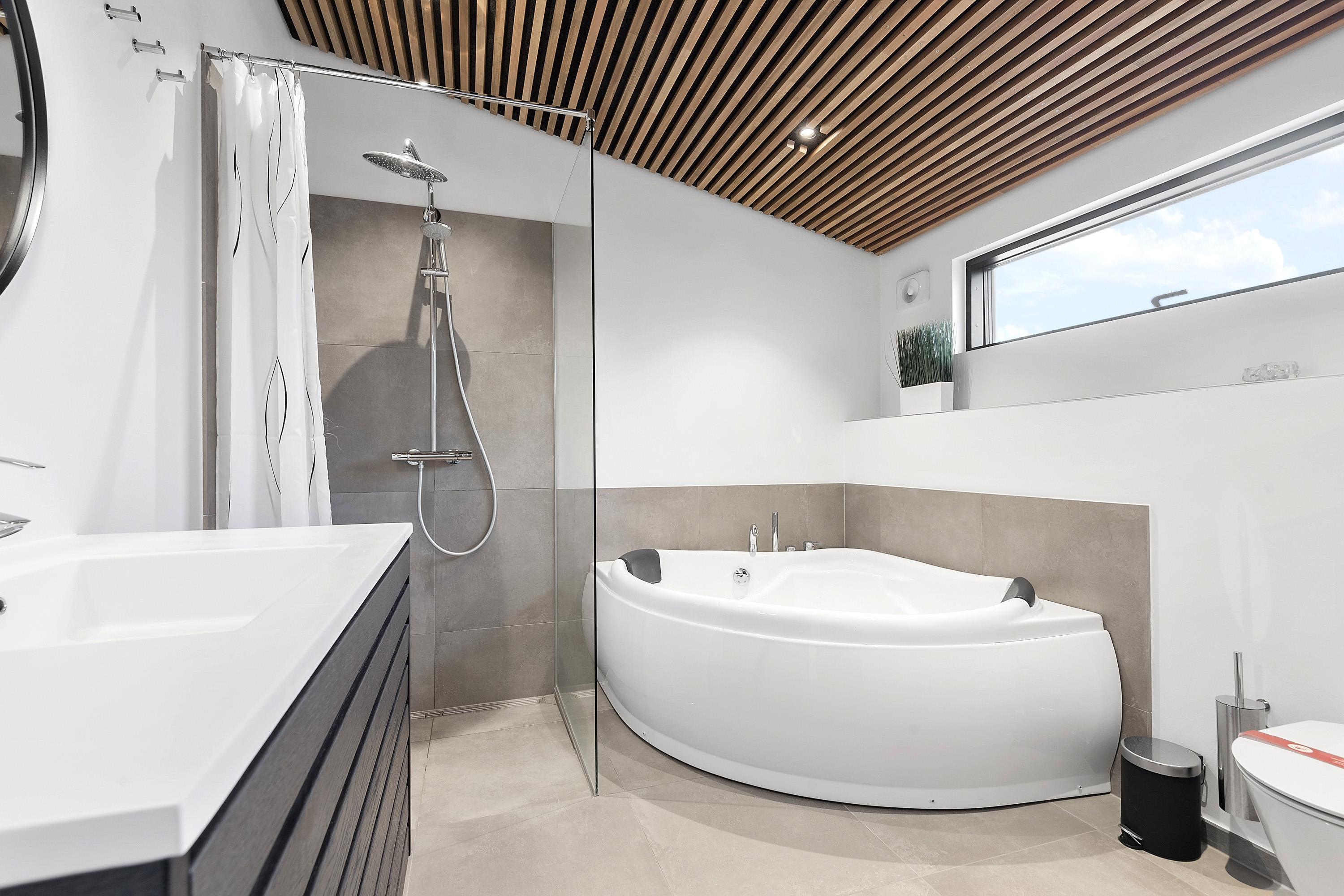 To store lyse badeværelser med bruser/toilet - desuden er der i det ene badeværelse spabad og sauna.